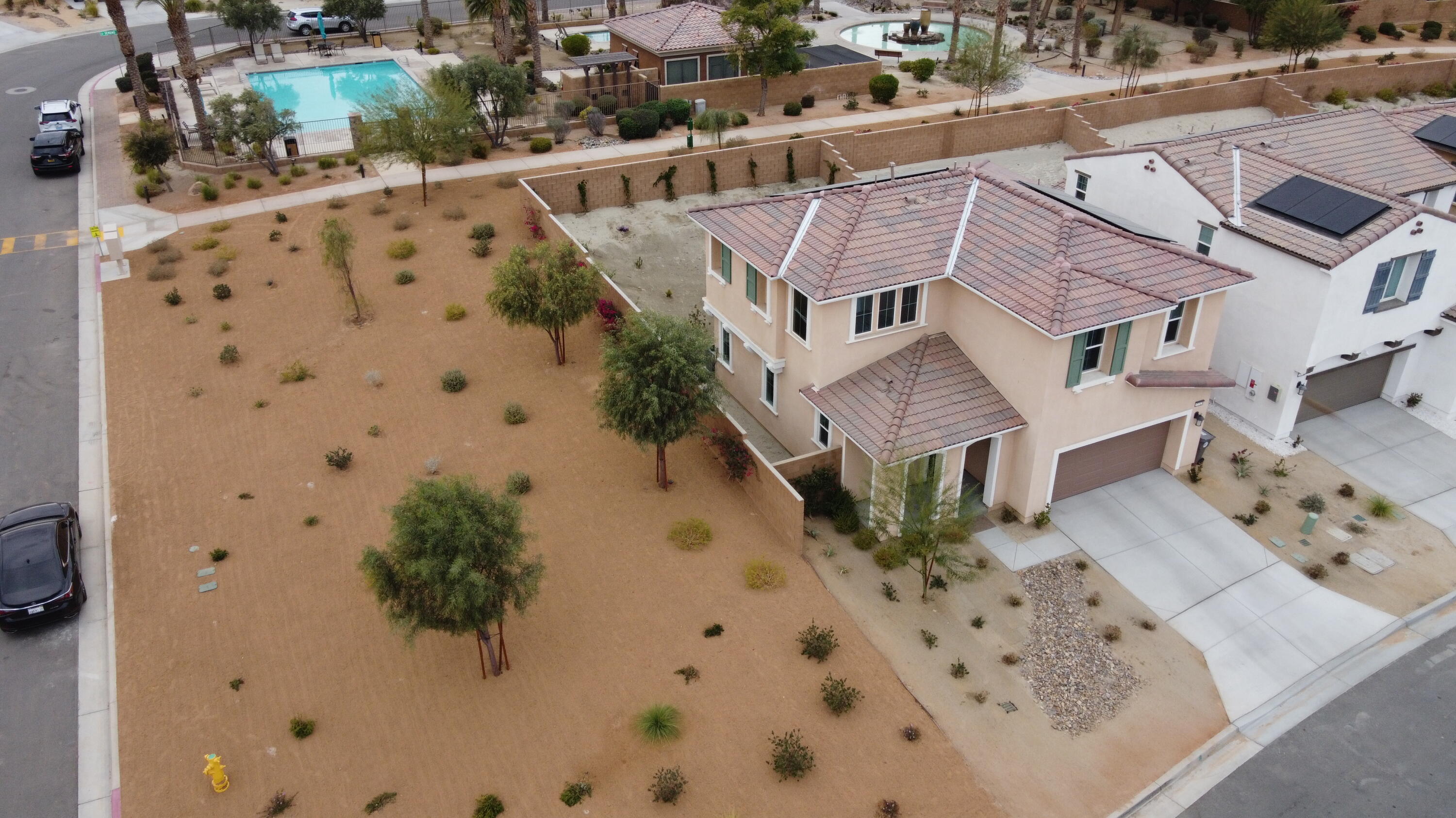 New Construction in 2023 FHA Assumable Laon at 5.25%!!!Welcome to the Dolce Community!Best priced home in all of Dolce. The seller willing to provide a buy down on the interest rate or an allowance to finish backyard.Situated on a prime corner lot, this stunning home in the newly developed, gated Dolce neighborhood offers unparalleled convenience and style. Enjoy immediate access to the community pool and park entrance, just steps from your front door.With a west-facing backyard, this property provides breathtaking views of Mt. San Jacinto and the Shadow Mountains--an ideal backdrop for your perfect desert retreat.The main living space boasts an open-concept design, seamlessly connecting the kitchen, dining room, and living room to a private patio, creating a hub perfect for both daily living and entertaining. The chef's kitchen features quartz countertops, sleek tile floors, and new SS GE appliances, with ample counter space and storage. The flooring was an additional $20k upgrade, appliances and blinds were also additional $12k upgrade.This home offers three bedrooms, two and a half bathrooms, plus a dedicated office and flexible loft space. Upstairs, the expansive primary suite includes a large walk-in closet and an ensuite bathroom complete with quartz countertops, a double vanity, a spacious shower, and a private water closet.Remote-controlled, lighted ceiling fans in the great room, office, and all bedrooms.A serene, fully fenced backyard with newly planted landscaping, including fruit trees, an herb garden, wall foliage and covered patio. Two-car garage, Solar, Low HOADon't miss this incredible opportunity to own a modern, home with luxurious feature. The seller is motivated as he is moving out of state.Interested in this Listing?