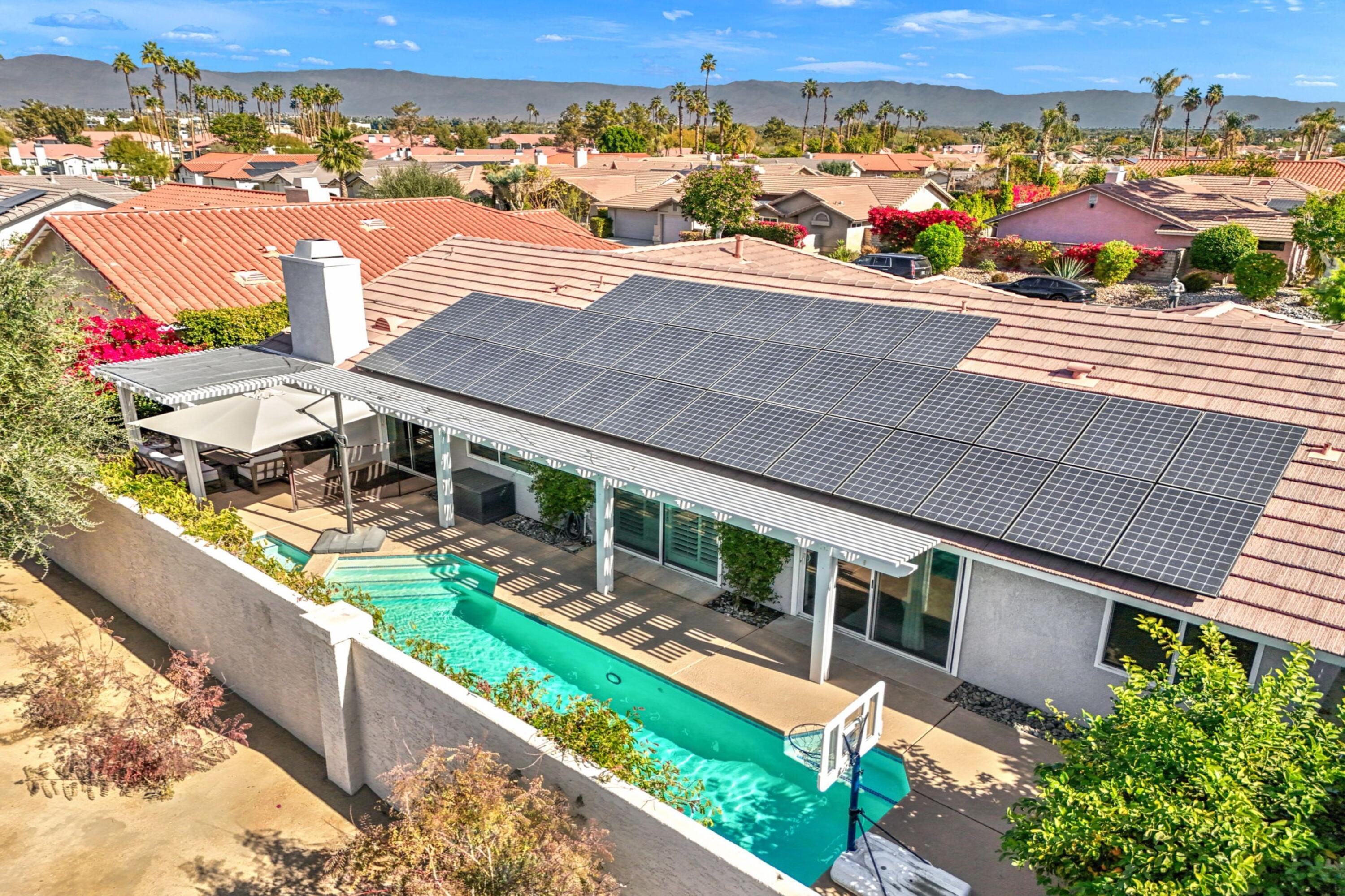 Welcome to La Carmela Drive, a beautiful oasis in the heart of Palm Desert. Located within the gates of Waring Place, offering safety and security for you and your loved ones.As you enter this home, you'll be greeted by an inviting ambiance that seamlessly blends modernity with classic charm. The kitchen has been tastefully remodeled featuring high-end appliances and finishes, offering an ideal setting for culinary enthusiasts. The home also boasts two beautifully updated bathrooms that provide a perfect blend of style and functionality.This property's exterior is just as impressive as its interior. It features a private backyard complemented by lush landscaping which provides serenity and seclusion. The outdoor living area is ideally designed for entertaining or simply relaxing under the California sun. A sparkling pool adds to the allure of this outdoor paradise.The home also comes equipped with a spacious three-car garage providing ample storage space or room for multiple vehicles. Additionally, the property benefits from leased solar panels, offering sustainable energy solutions that are both environmentally friendly and cost-efficient.Located in Palm Desert, this property is surrounded by a wealth of amenities that add to its appeal. From world-class golf courses to upscale shopping centers and fine dining establishments, there's something for everyone in this vibrant community. Outdoor enthusiasts will appreciate the proximity to picturesque hiking trails and stunning nature reserves while art lovers can enjoy the numerous galleries and cultural events that define this region.43911 La Carmela is more than just a house; it's an opportunity to embrace a lifestyle defined by comfort, elegance, and convenience in one of Southern California's most coveted locations.Interested in this Listing?