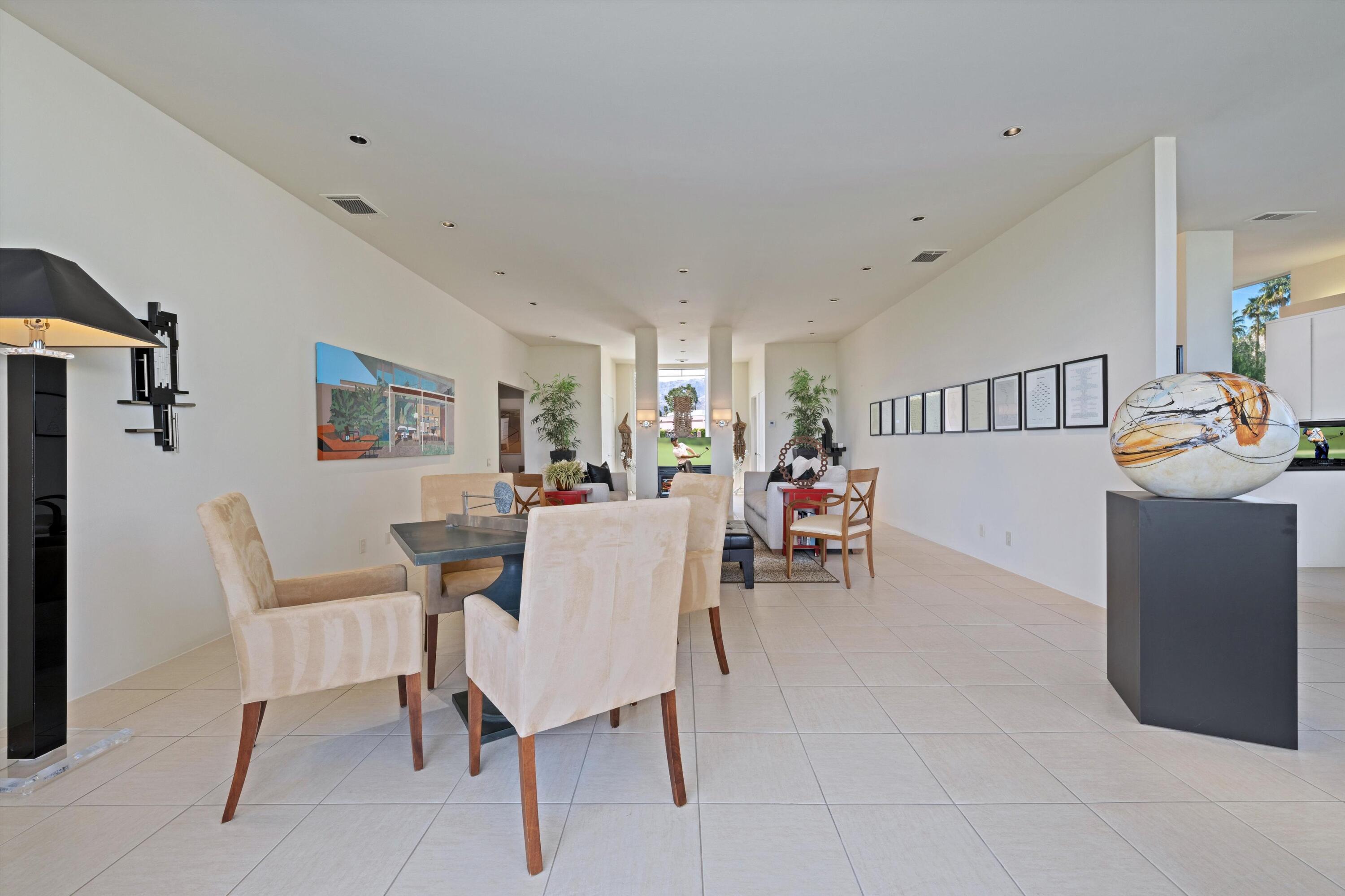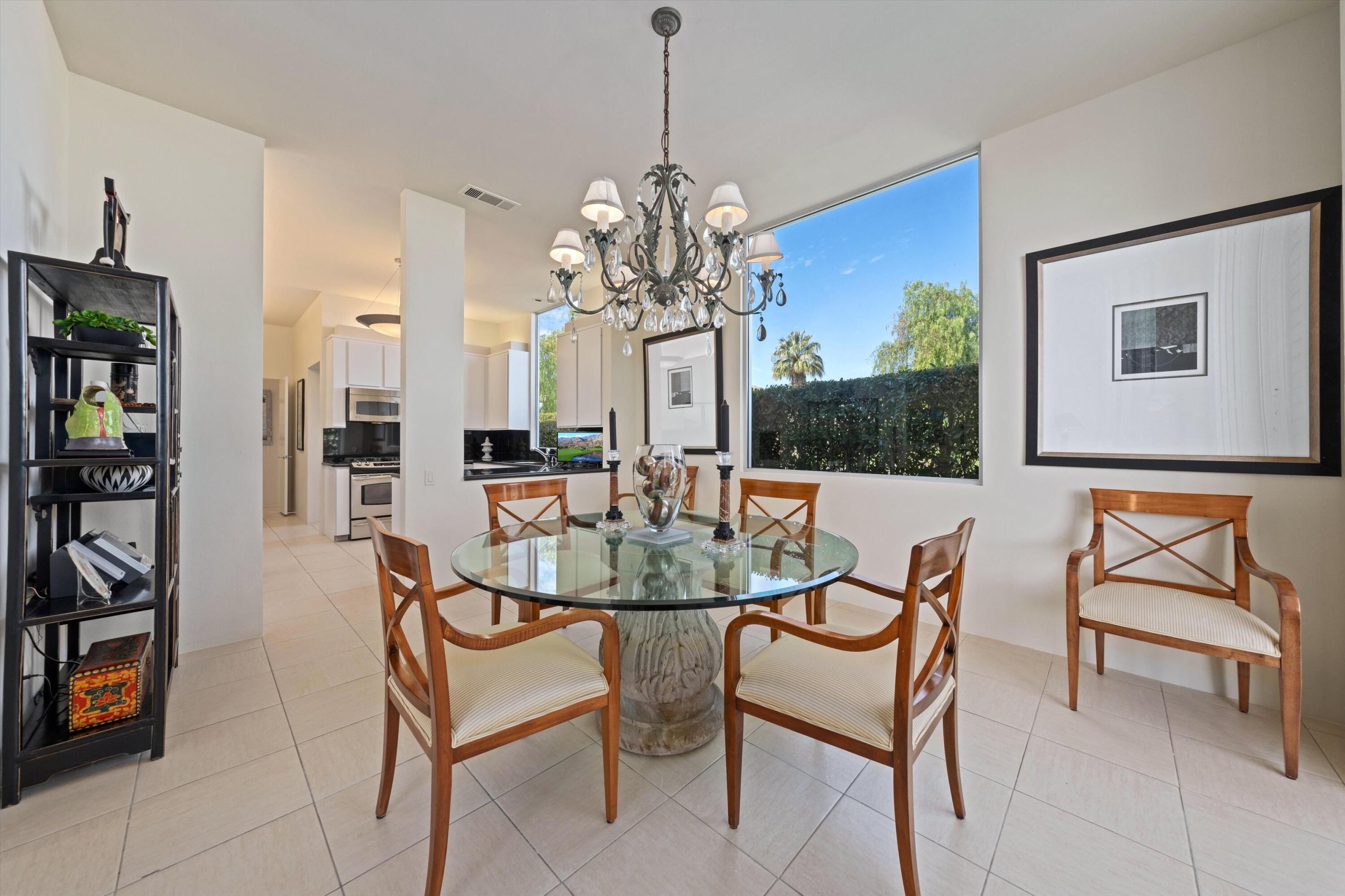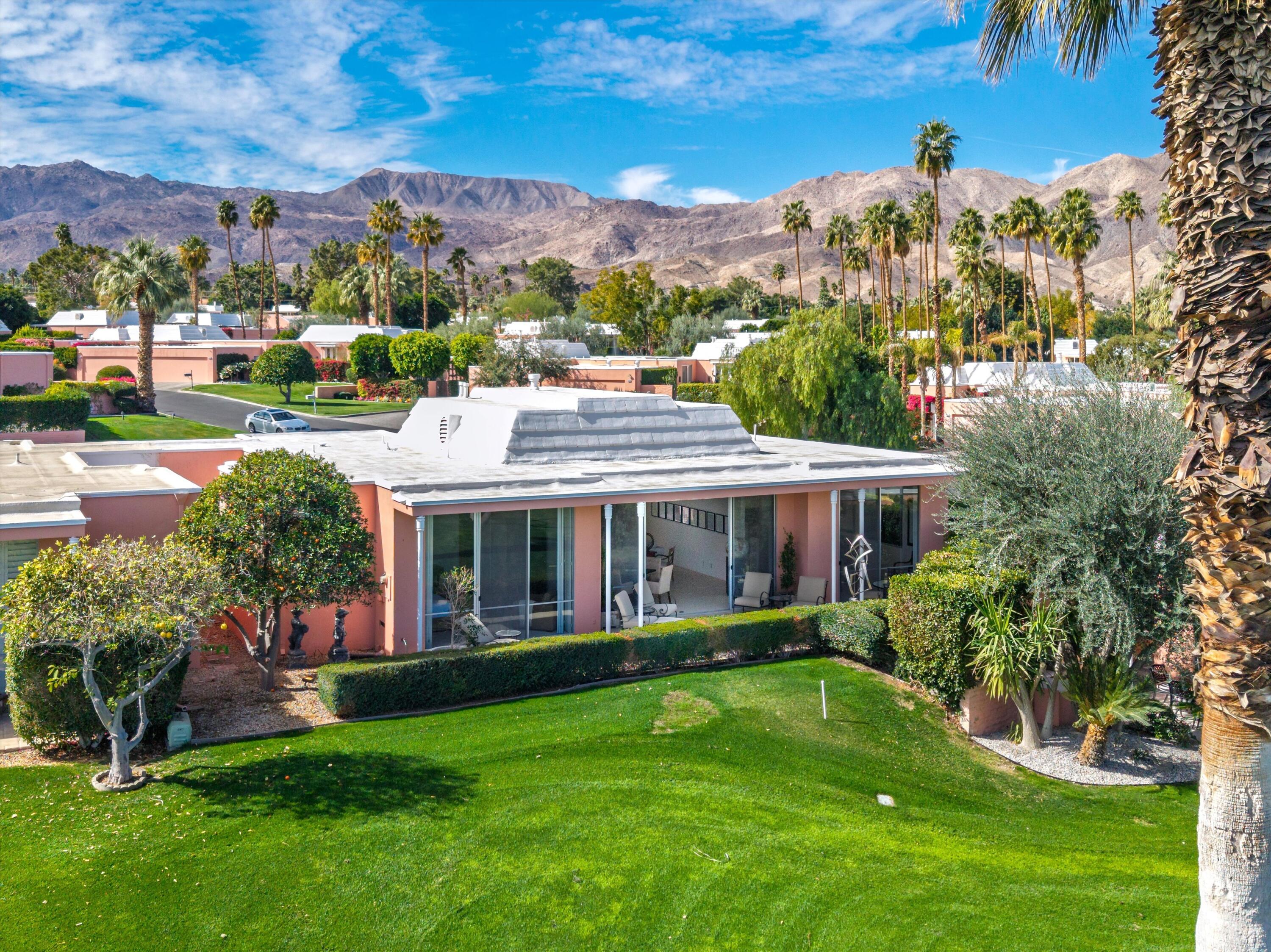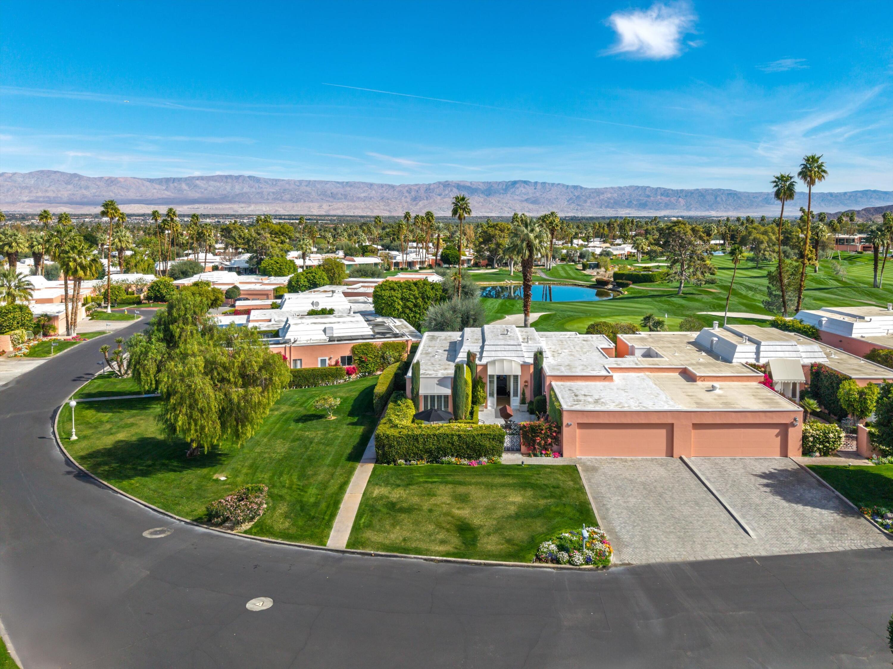 Experience unparalleled desert living in this highly sought-after D Plan home, offering 3 bedrooms and 3 baths of refined sophistication. Nestled on a quiet street, this Hollywood Regency-style villa is perfectly positioned to capture breathtaking views of the majestic mountains, shimmering lake, and emerald-green fairways of the Ted Robinson-designed golf course. A grand front courtyard sets the tone for the elegant interiors, where soaring 10-foot ceilings and expansive walls of glass invite an abundance of natural light, seamlessly blending indoor and outdoor beauty. The spacious living and dining areas, enhanced by a custom picture window, are designed for both relaxation and entertaining, while the gourmet kitchen - featuring sleek black granite countertops, stainless steel appliances, and a gas range - is a chef's delight. The luxurious Primary Suite is a serene retreat, boasting Marrakesh's signature atrium-style bathroom, classic cabinetry, and timeless black granite finishes. An equally spacious Guest Suite includes a private office nook, while the third bedroom is currently used as an inviting den. Marrakesh Country Club, originally designed by renowned architect John Elgin Woolf, is a boutique community celebrated for its architectural significance and world-class amenities. Residents enjoy a newly remodeled clubhouse, fitness center, tennis, pickleball, and a truly unique social lifestyle. Ideally situated in South Palm Desert, Marrakesh is surrounded by some of the desert's most prestigious private clubs - including Bighorn, The Reserve, and The Vintage; and is just minutes from the famed El Paseo Drive with world-class shopping and dining, the McCallum Theatre for extraordinary performing arts experience, and the world-renowned Indian Wells Tennis Garden.Interested in this Listing?