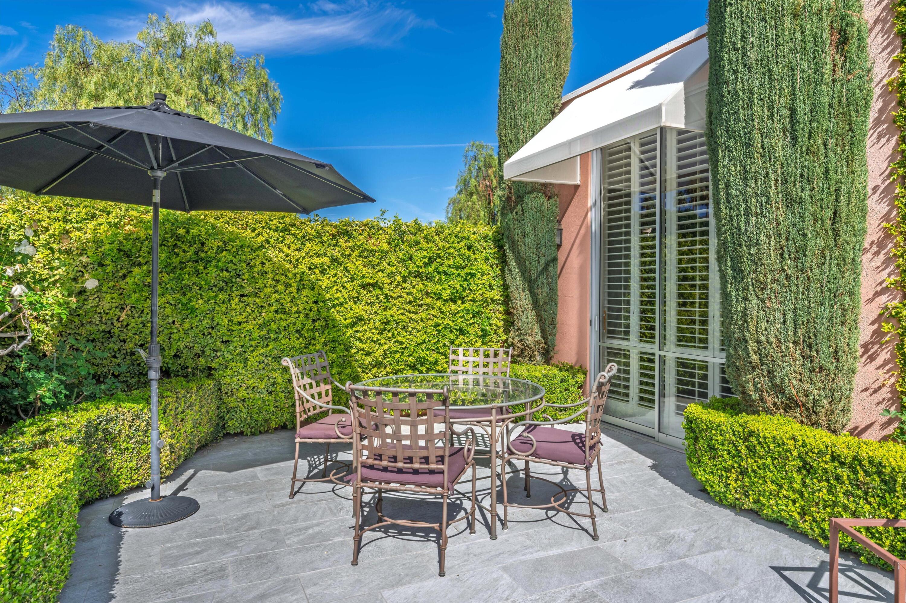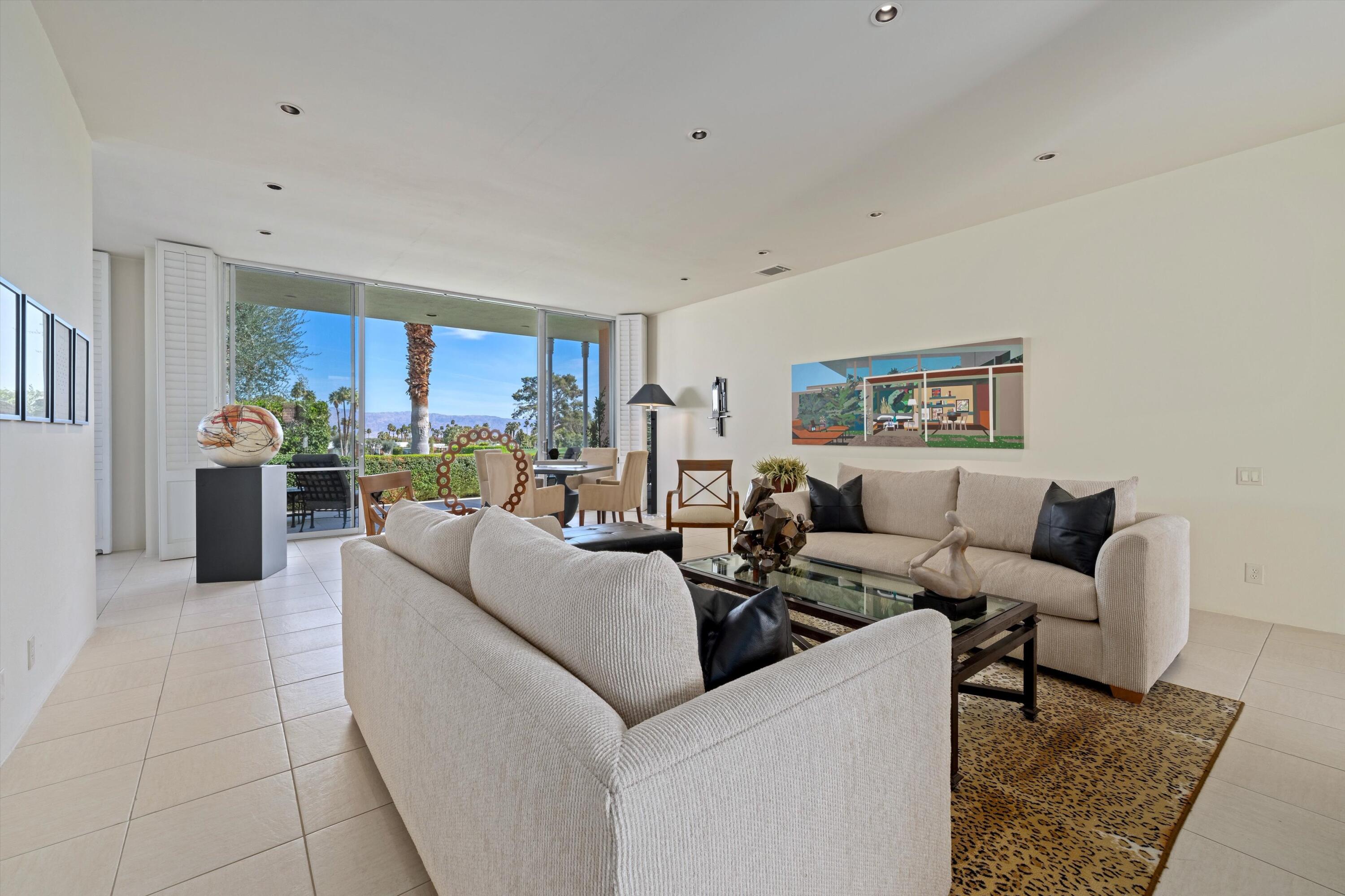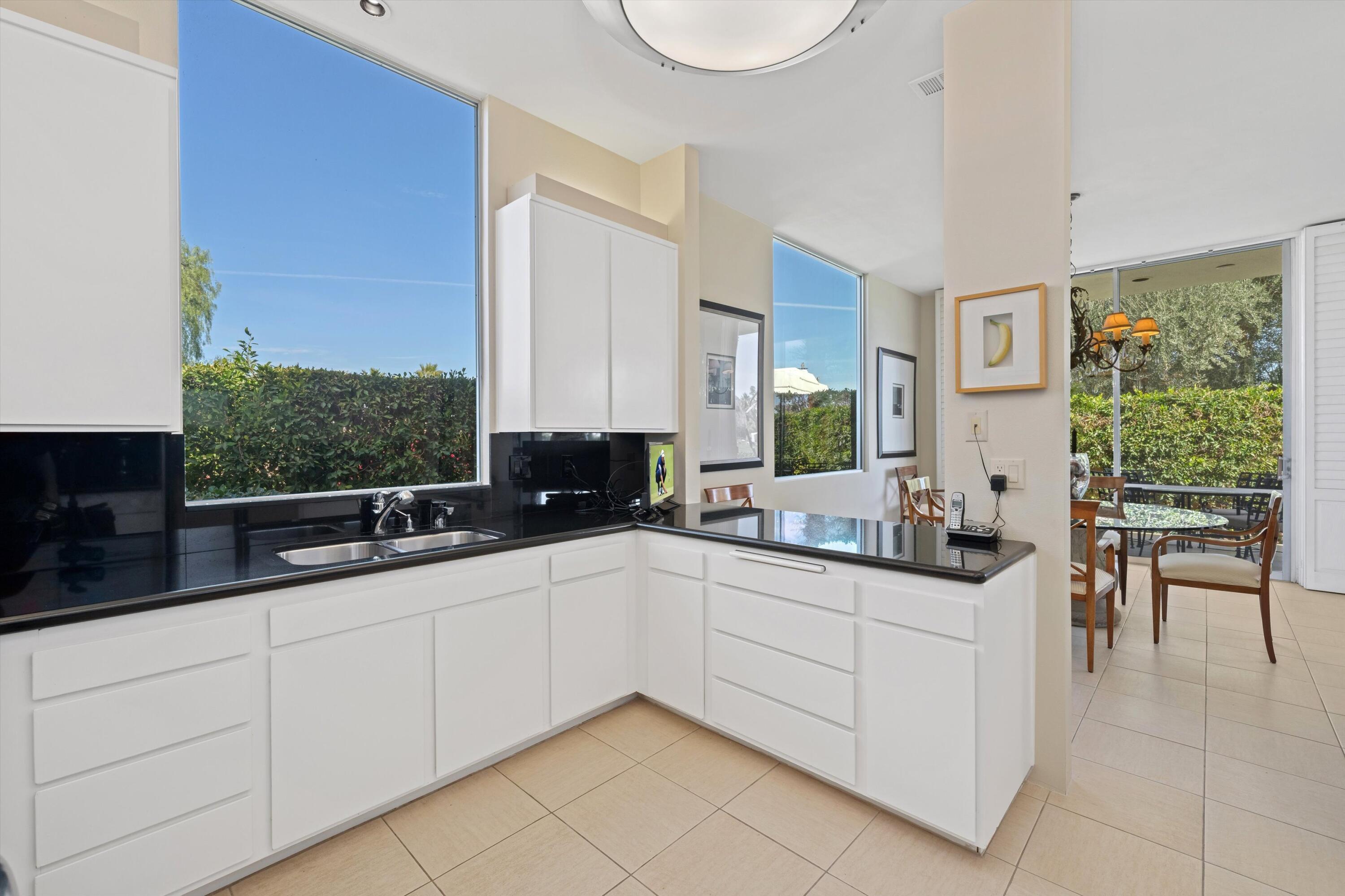 Experience unparalleled desert living in this highly sought-after D Plan home, offering 3 bedrooms and 3 baths of refined sophistication. Nestled on a quiet street, this Hollywood Regency-style villa is perfectly positioned to capture breathtaking views of the majestic mountains, shimmering lake, and emerald-green fairways of the Ted Robinson-designed golf course. A grand front courtyard sets the tone for the elegant interiors, where soaring 10-foot ceilings and expansive walls of glass invite an abundance of natural light, seamlessly blending indoor and outdoor beauty. The spacious living and dining areas, enhanced by a custom picture window, are designed for both relaxation and entertaining, while the gourmet kitchen - featuring sleek black granite countertops, stainless steel appliances, and a gas range - is a chef's delight. The luxurious Primary Suite is a serene retreat, boasting Marrakesh's signature atrium-style bathroom, classic cabinetry, and timeless black granite finishes. An equally spacious Guest Suite includes a private office nook, while the third bedroom is currently used as an inviting den. Marrakesh Country Club, originally designed by renowned architect John Elgin Woolf, is a boutique community celebrated for its architectural significance and world-class amenities. Residents enjoy a newly remodeled clubhouse, fitness center, tennis, pickleball, and a truly unique social lifestyle. Ideally situated in South Palm Desert, Marrakesh is surrounded by some of the desert's most prestigious private clubs - including Bighorn, The Reserve, and The Vintage; and is just minutes from the famed El Paseo Drive with world-class shopping and dining, the McCallum Theatre for extraordinary performing arts experience, and the world-renowned Indian Wells Tennis Garden.Interested in this Listing?