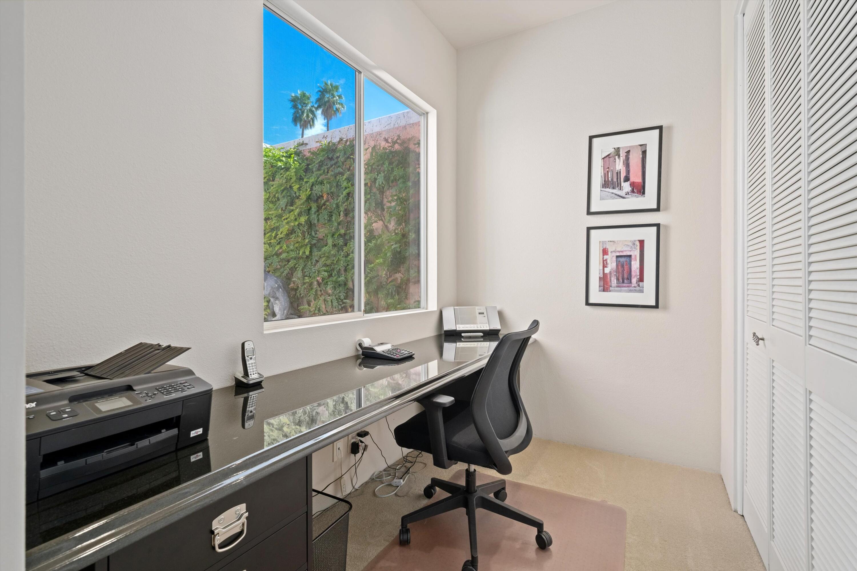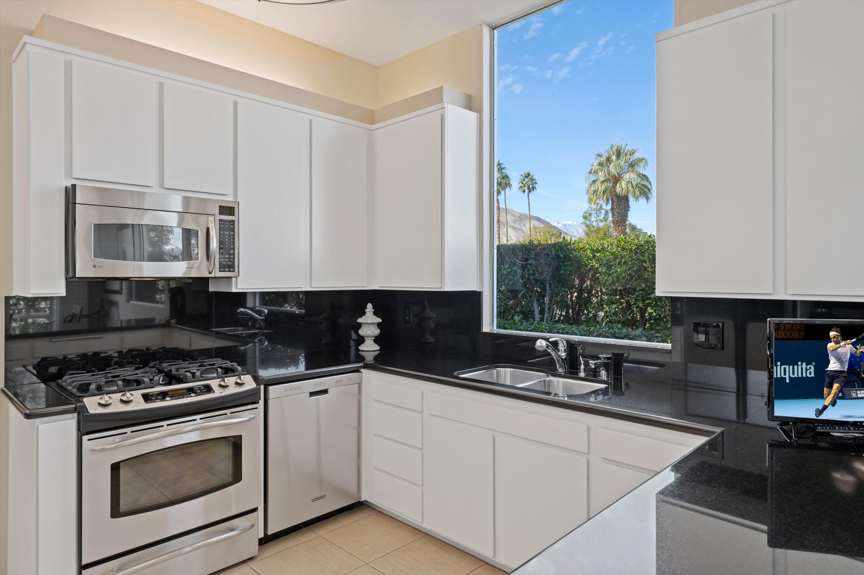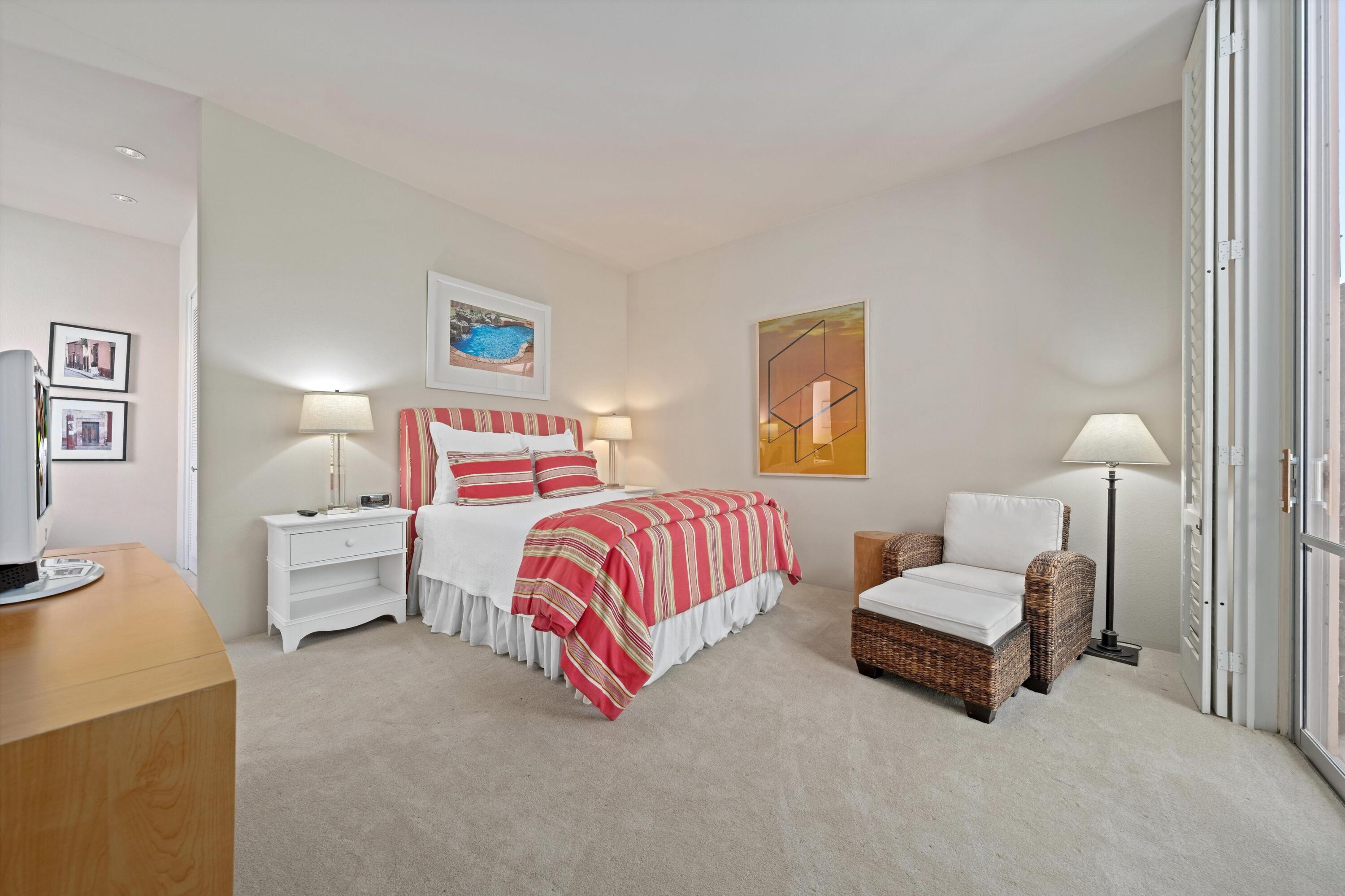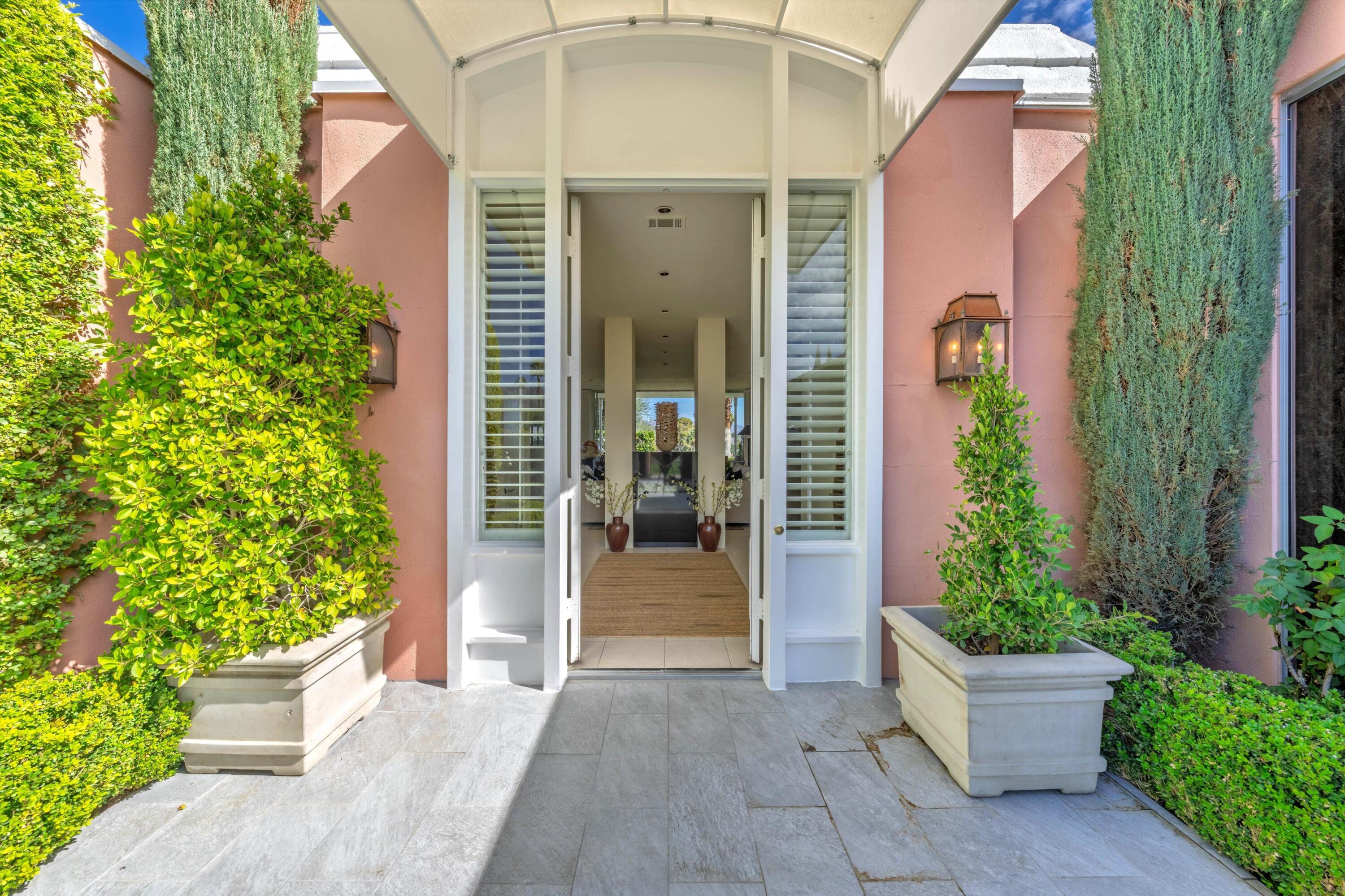Experience unparalleled desert living in this highly sought-after D Plan home, offering 3 bedrooms and 3 baths of refined sophistication. Nestled on a quiet street, this Hollywood Regency-style villa is perfectly positioned to capture breathtaking views of the majestic mountains, shimmering lake, and emerald-green fairways of the Ted Robinson-designed golf course. A grand front courtyard sets the tone for the elegant interiors, where soaring 10-foot ceilings and expansive walls of glass invite an abundance of natural light, seamlessly blending indoor and outdoor beauty. The spacious living and dining areas, enhanced by a custom picture window, are designed for both relaxation and entertaining, while the gourmet kitchen - featuring sleek black granite countertops, stainless steel appliances, and a gas range - is a chef's delight. The luxurious Primary Suite is a serene retreat, boasting Marrakesh's signature atrium-style bathroom, classic cabinetry, and timeless black granite finishes. An equally spacious Guest Suite includes a private office nook, while the third bedroom is currently used as an inviting den. Marrakesh Country Club, originally designed by renowned architect John Elgin Woolf, is a boutique community celebrated for its architectural significance and world-class amenities. Residents enjoy a newly remodeled clubhouse, fitness center, tennis, pickleball, and a truly unique social lifestyle. Ideally situated in South Palm Desert, Marrakesh is surrounded by some of the desert's most prestigious private clubs - including Bighorn, The Reserve, and The Vintage; and is just minutes from the famed El Paseo Drive with world-class shopping and dining, the McCallum Theatre for extraordinary performing arts experience, and the world-renowned Indian Wells Tennis Garden.Interested in this Listing?