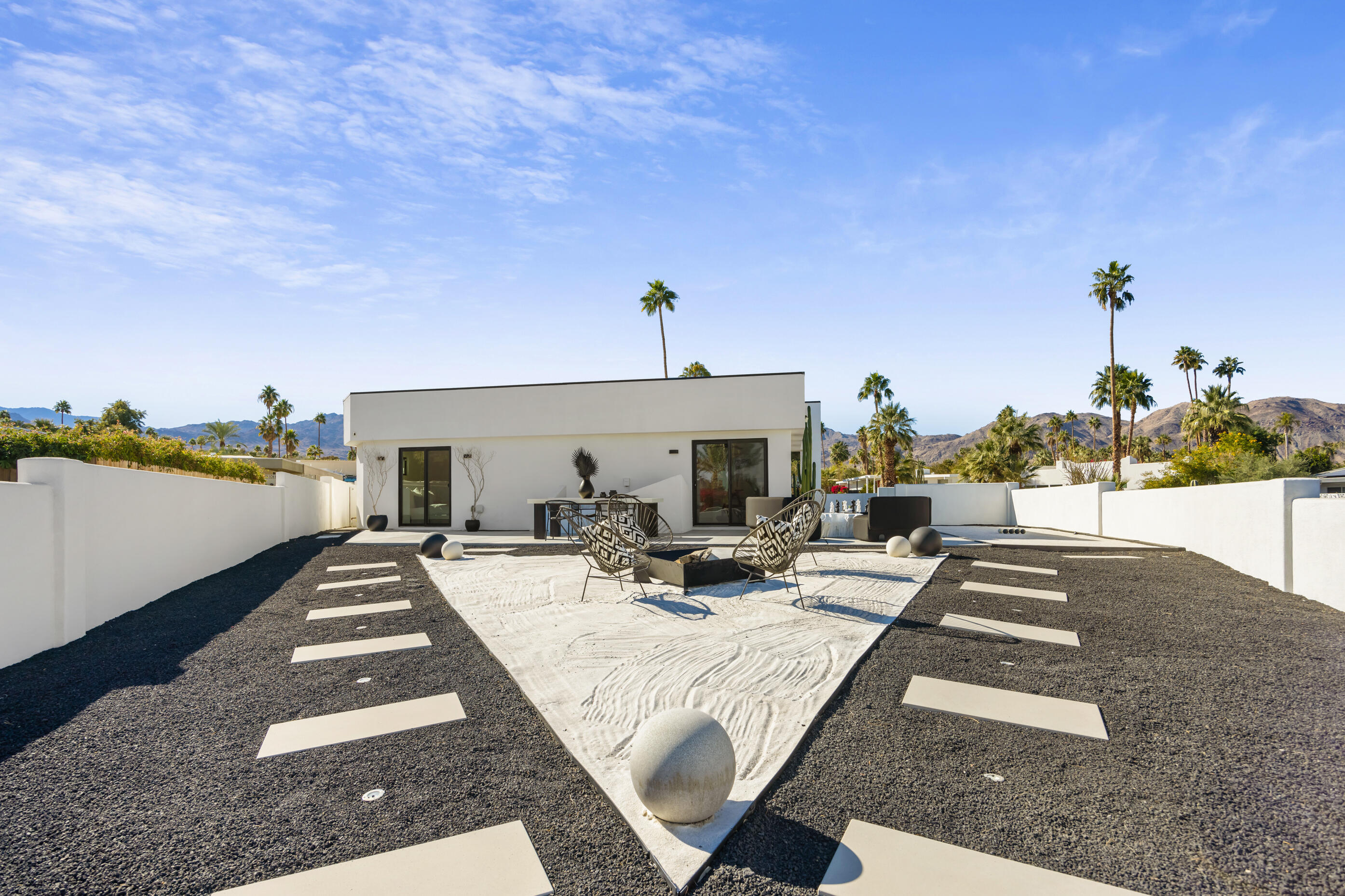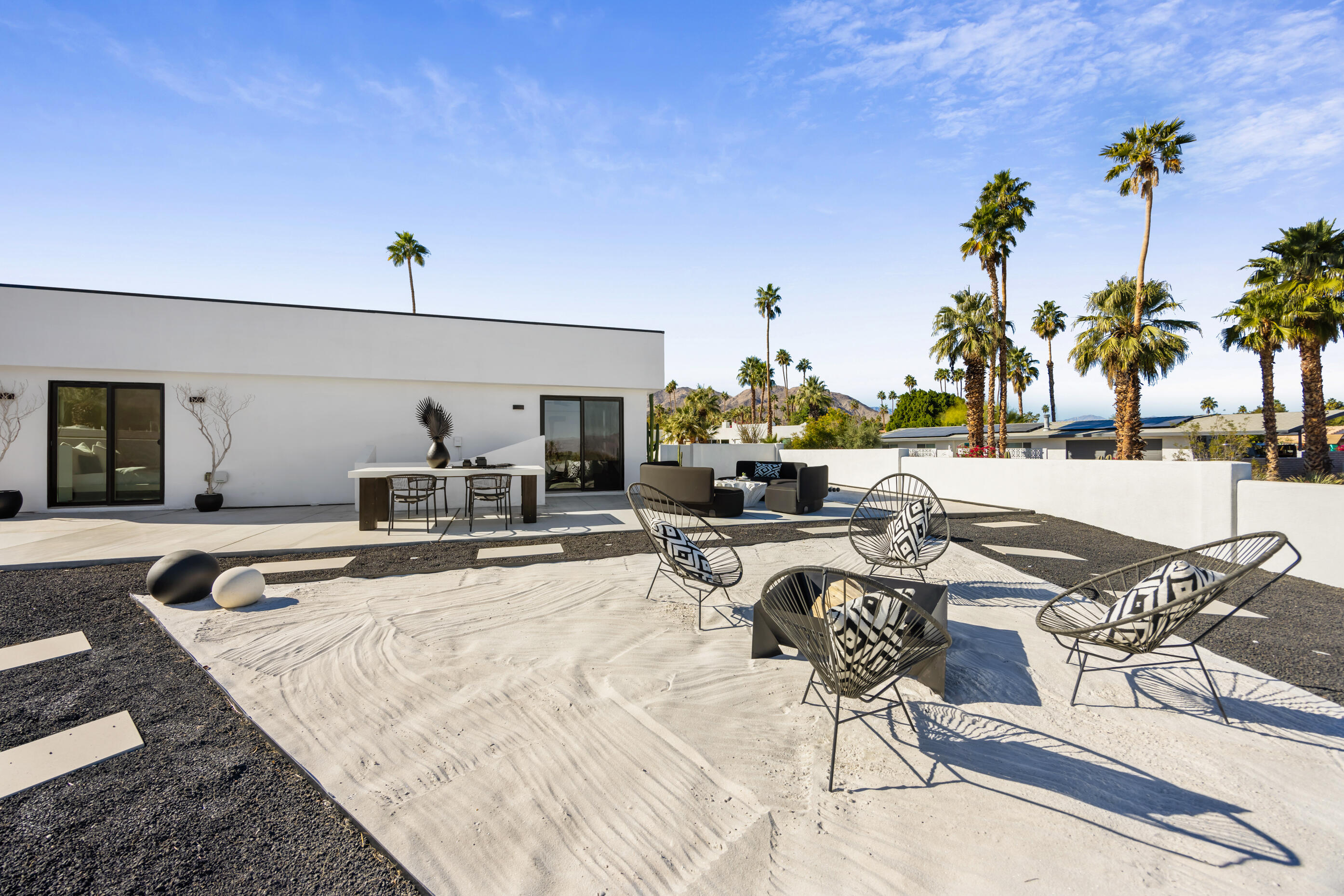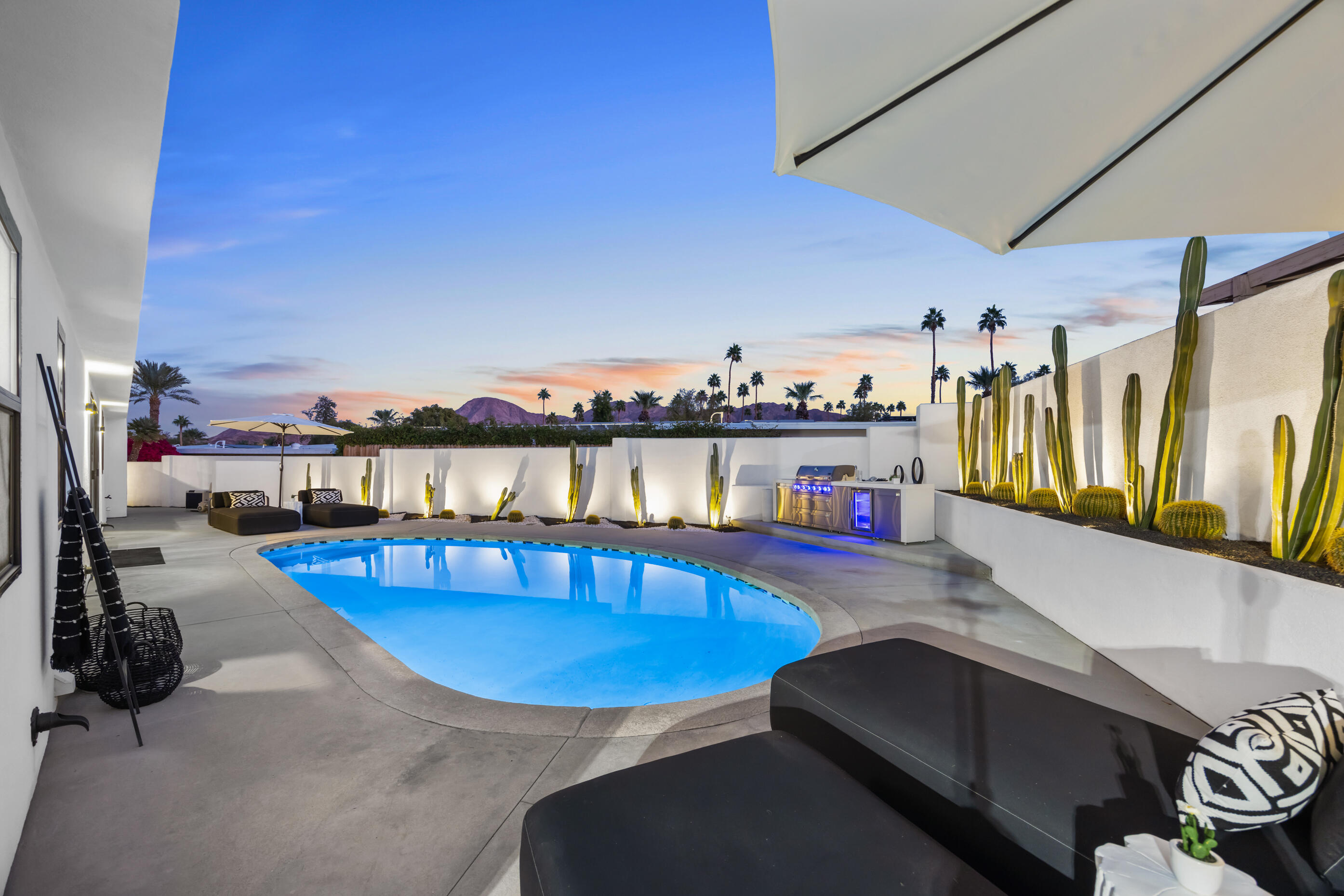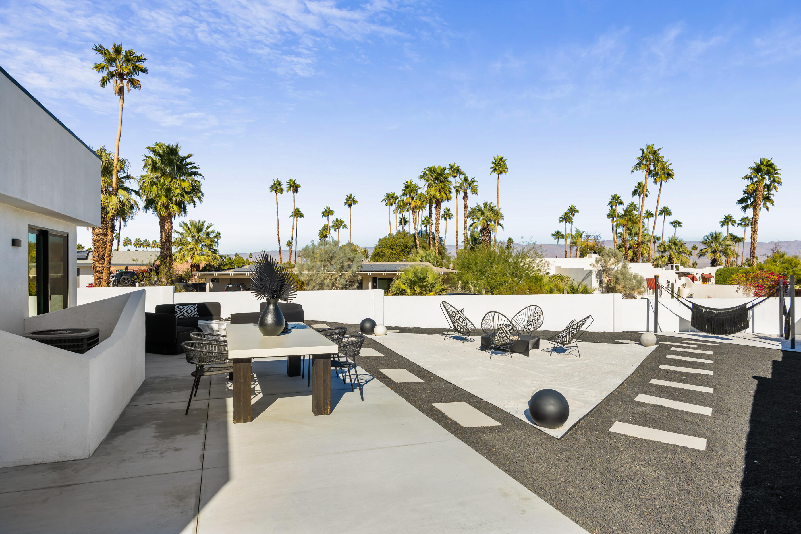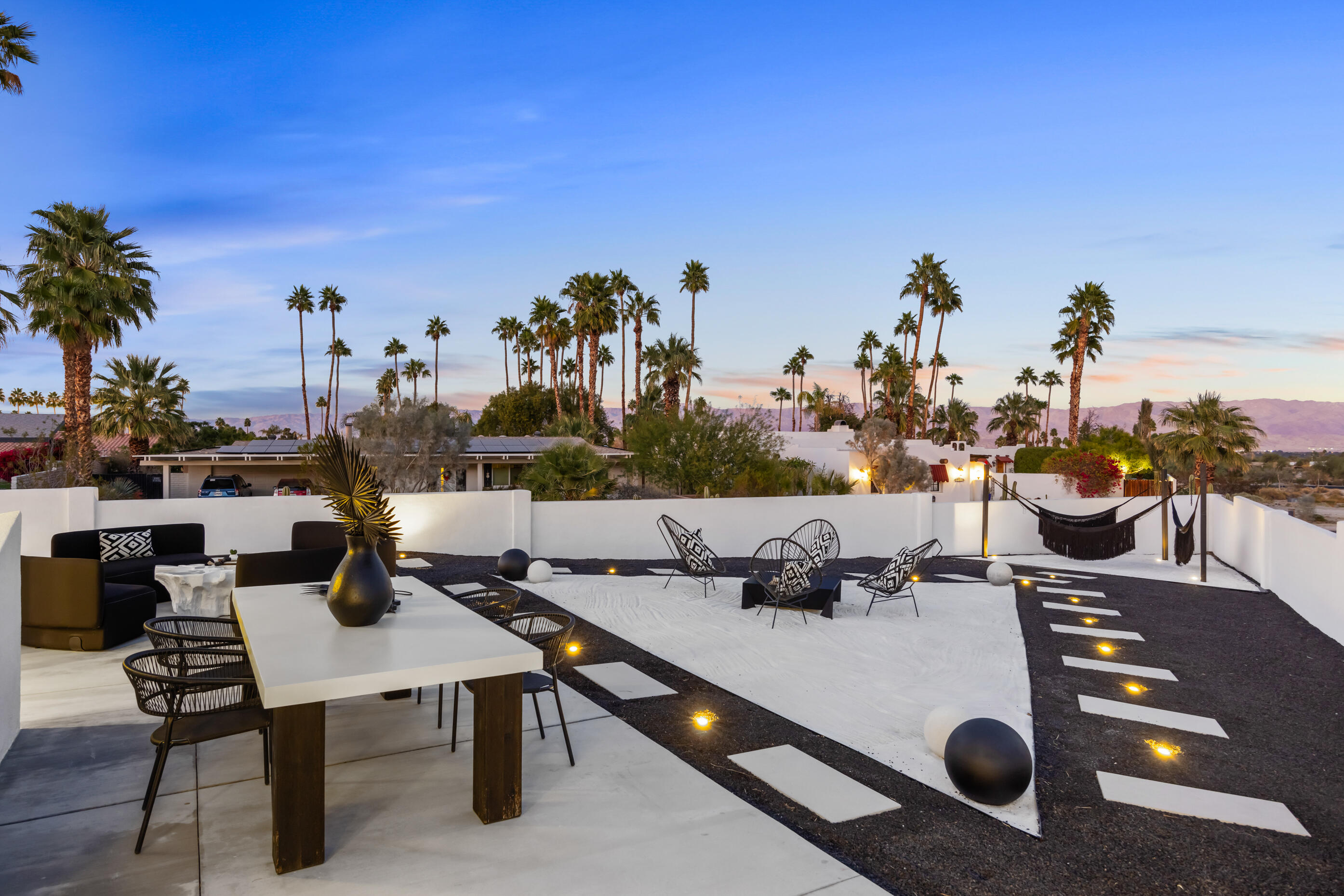 This stunning 3-bedroom, 3-bathroom contemporary home, originally built in 1957, underwent a full ''studs-out'' remodel, blending sleek, modern finishes with exceptional design. Located in the highly sought-after historic Silver Spur Ranch community in South Palm Desert, this home offers an abundance of natural light, creating a warm and luxurious ambiance. Large windows, a custom oversized fireplace, modern cabinetry, high-end finishes, and designer fixtures provide an elegant yet comfortable atmosphere throughout. The chef-inspired kitchen features two sinks, a built-in Dacor smart refrigerator, Z Line appliances, and a spacious island. This home includes two generously sized primary suites on opposite sides, each with walk-in closets and spa-like bathrooms for ultimate privacy. An additional guest room, currently a home gym, can easily convert into a third bedroom with a king-size bed. Set on a low-maintenance, professionally landscaped lot, this home sits elevated for stunning mountain views and complete privacy. Outdoor amenities include a 9-ft deep pool, bocce ball court, life-sized chess set, fire pit, dining area, BBQ, and multiple lounge spaces--ideal for entertaining. Conveniently located near the Living Desert Zoo, hiking trails, golf courses, and just minutes from El Paseo's upscale shopping and dining, this home offers the best of desert living. This is a must-see for those seeking a sophisticated desert retreat!Interested in this Listing?