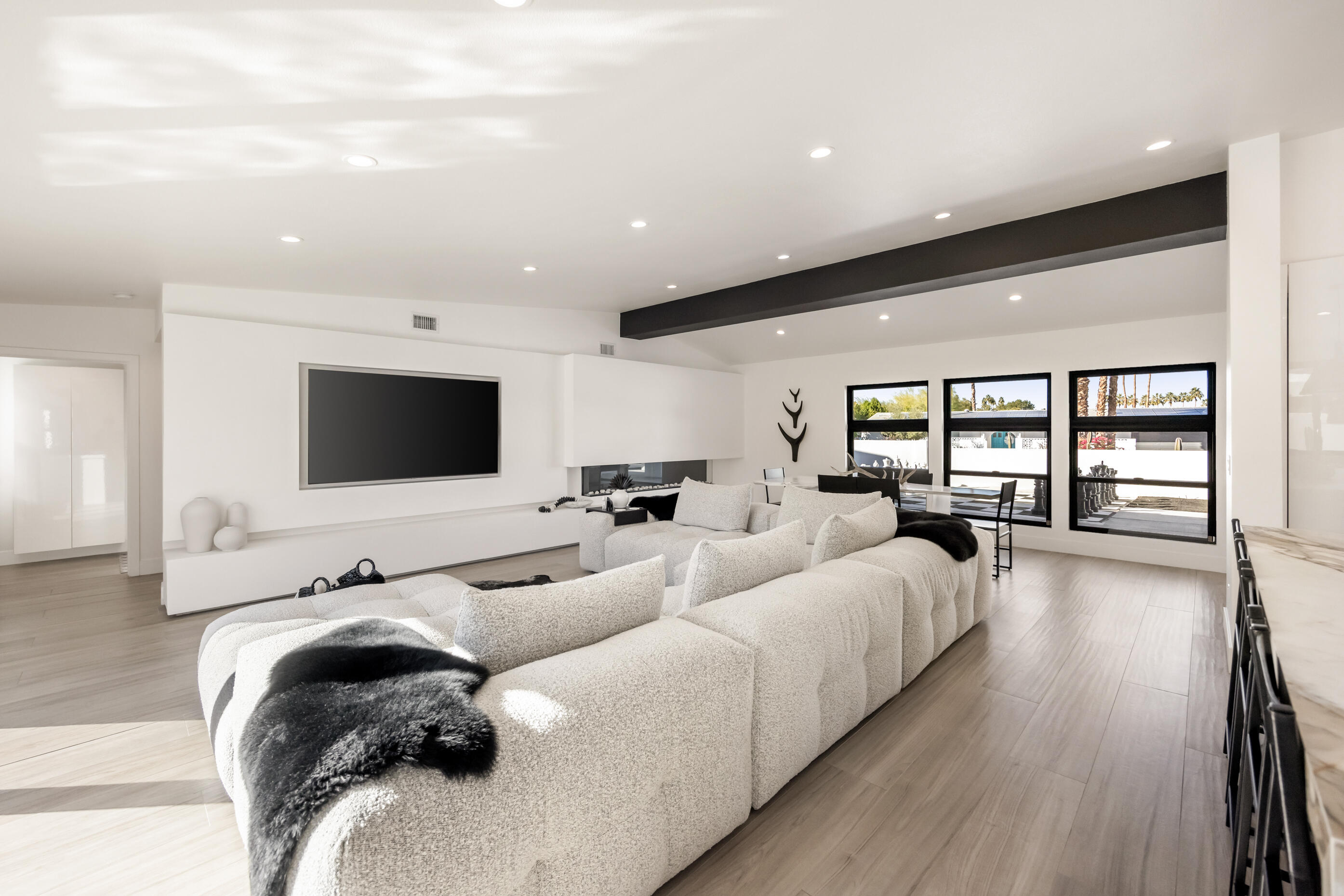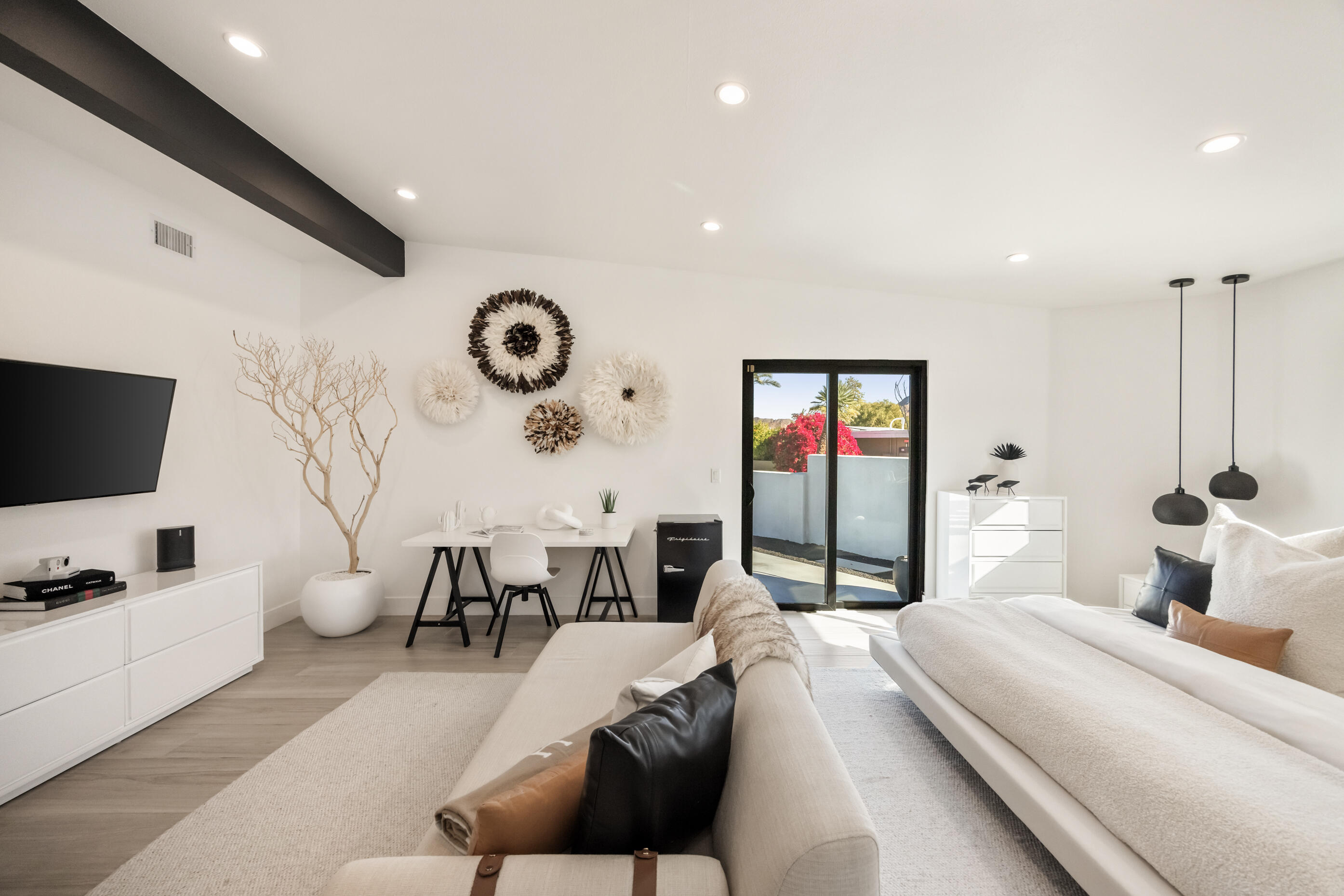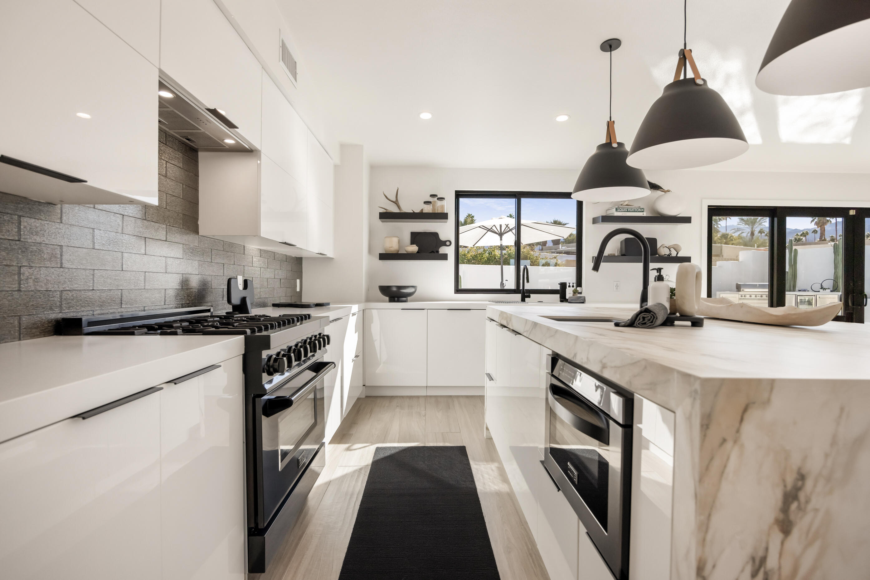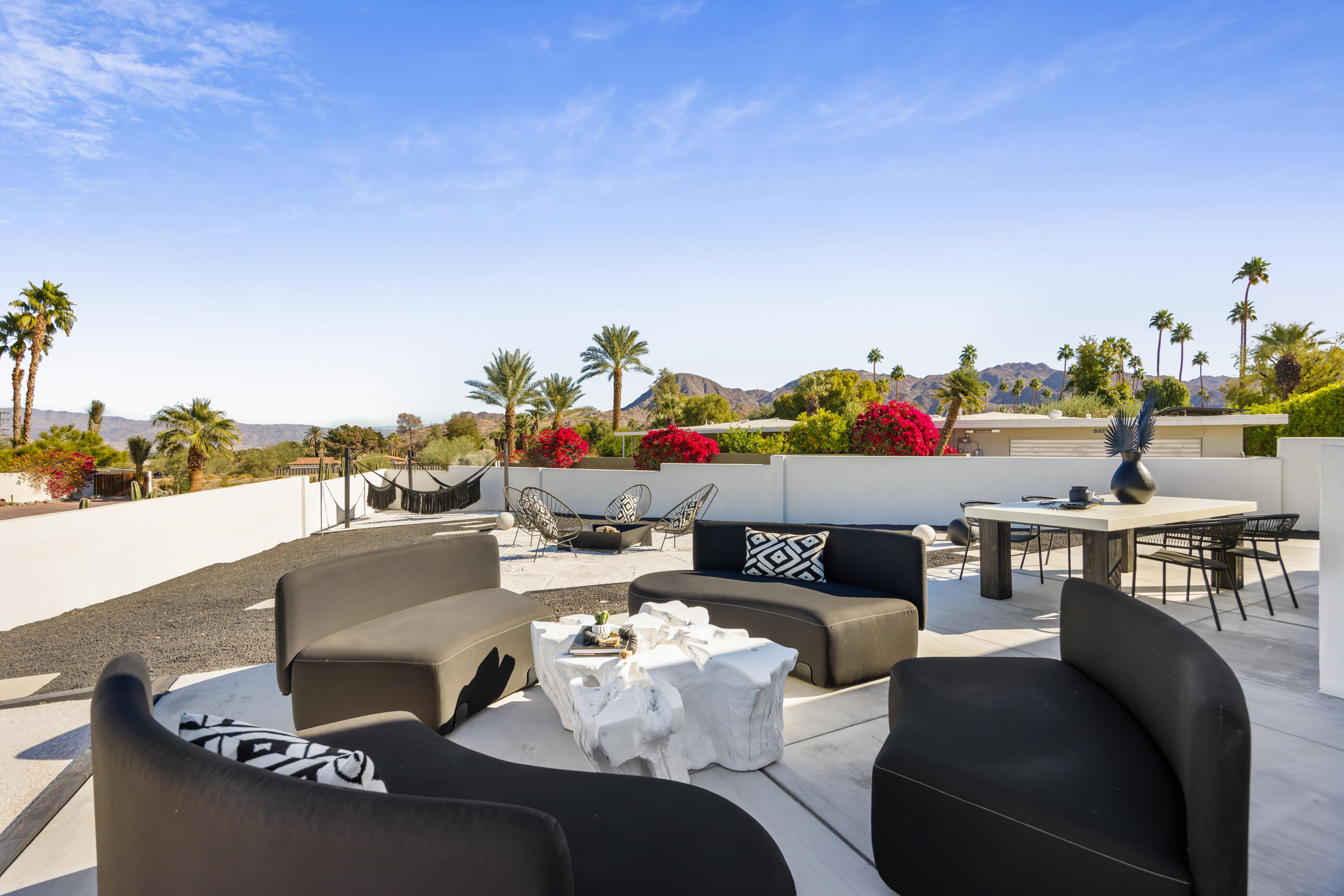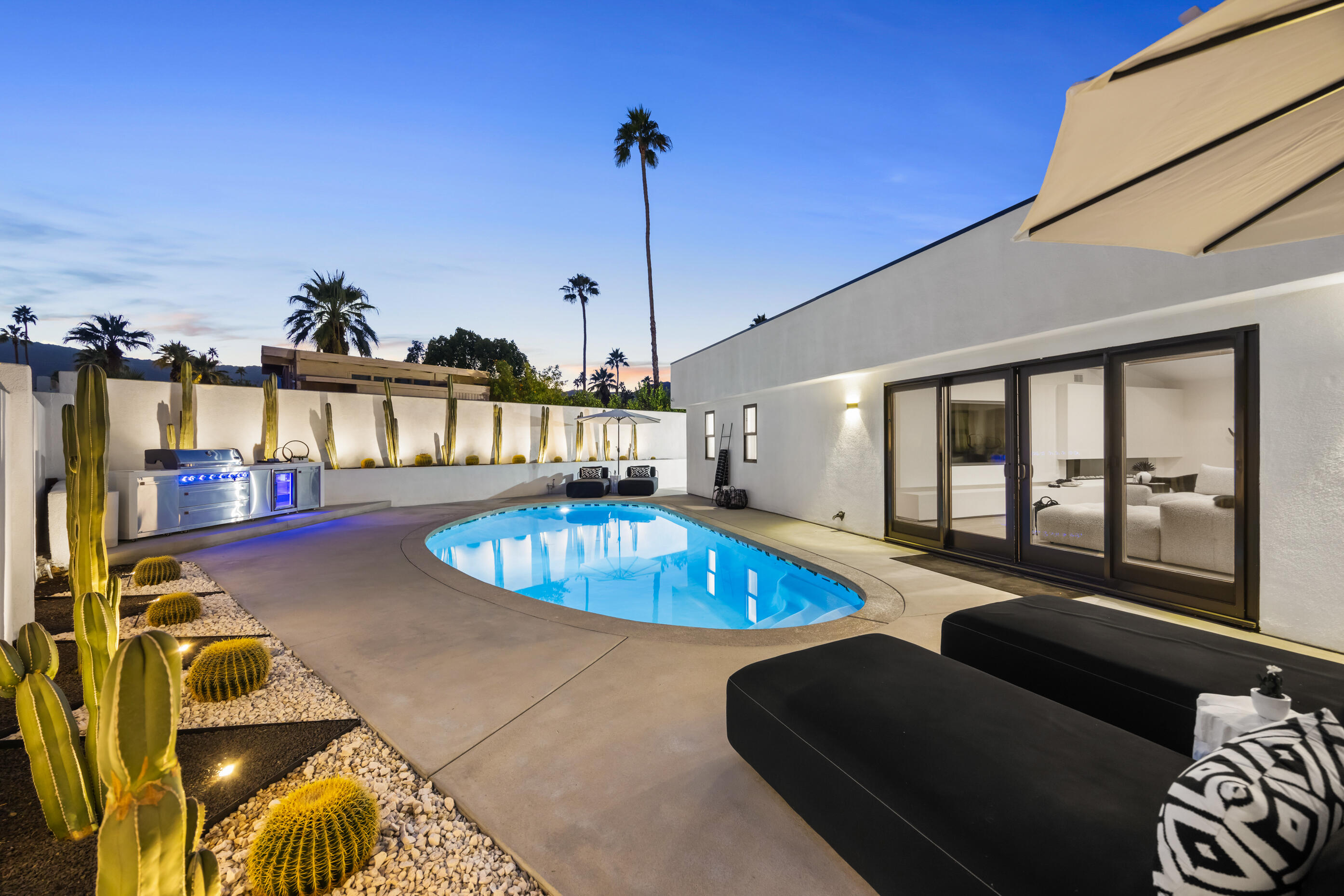 This stunning 3-bedroom, 3-bathroom contemporary home, originally built in 1957, underwent a full ''studs-out'' remodel, blending sleek, modern finishes with exceptional design. Located in the highly sought-after historic Silver Spur Ranch community in South Palm Desert, this home offers an abundance of natural light, creating a warm and luxurious ambiance. Large windows, a custom oversized fireplace, modern cabinetry, high-end finishes, and designer fixtures provide an elegant yet comfortable atmosphere throughout. The chef-inspired kitchen features two sinks, a built-in Dacor smart refrigerator, Z Line appliances, and a spacious island. This home includes two generously sized primary suites on opposite sides, each with walk-in closets and spa-like bathrooms for ultimate privacy. An additional guest room, currently a home gym, can easily convert into a third bedroom with a king-size bed. Set on a low-maintenance, professionally landscaped lot, this home sits elevated for stunning mountain views and complete privacy. Outdoor amenities include a 9-ft deep pool, bocce ball court, life-sized chess set, fire pit, dining area, BBQ, and multiple lounge spaces--ideal for entertaining. Conveniently located near the Living Desert Zoo, hiking trails, golf courses, and just minutes from El Paseo's upscale shopping and dining, this home offers the best of desert living. This is a must-see for those seeking a sophisticated desert retreat!Interested in this Listing?