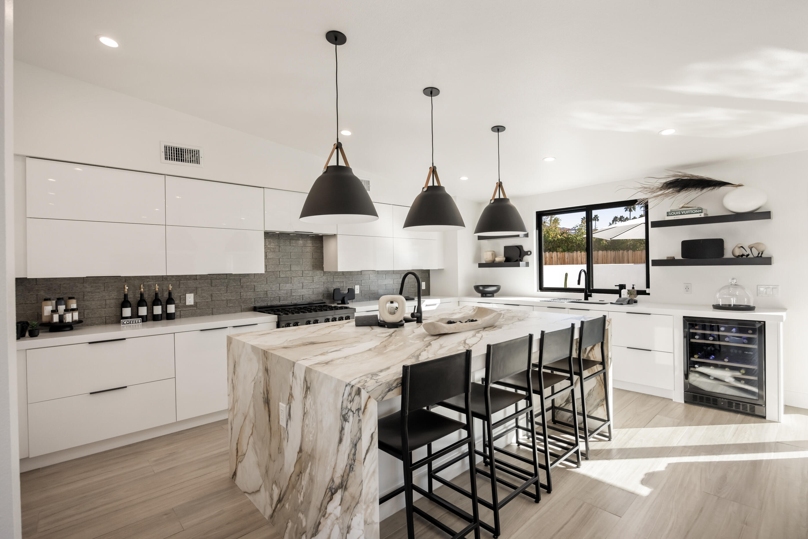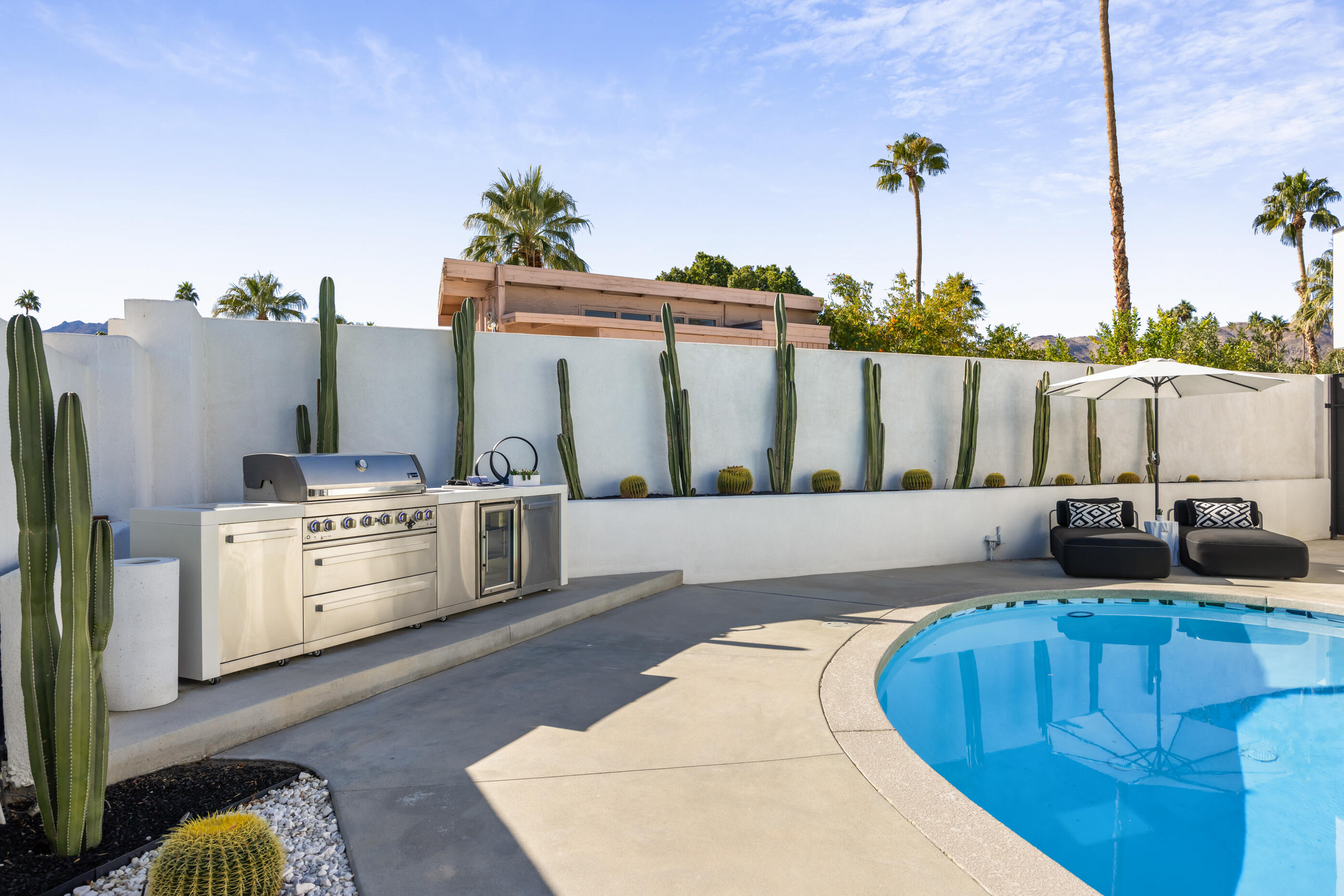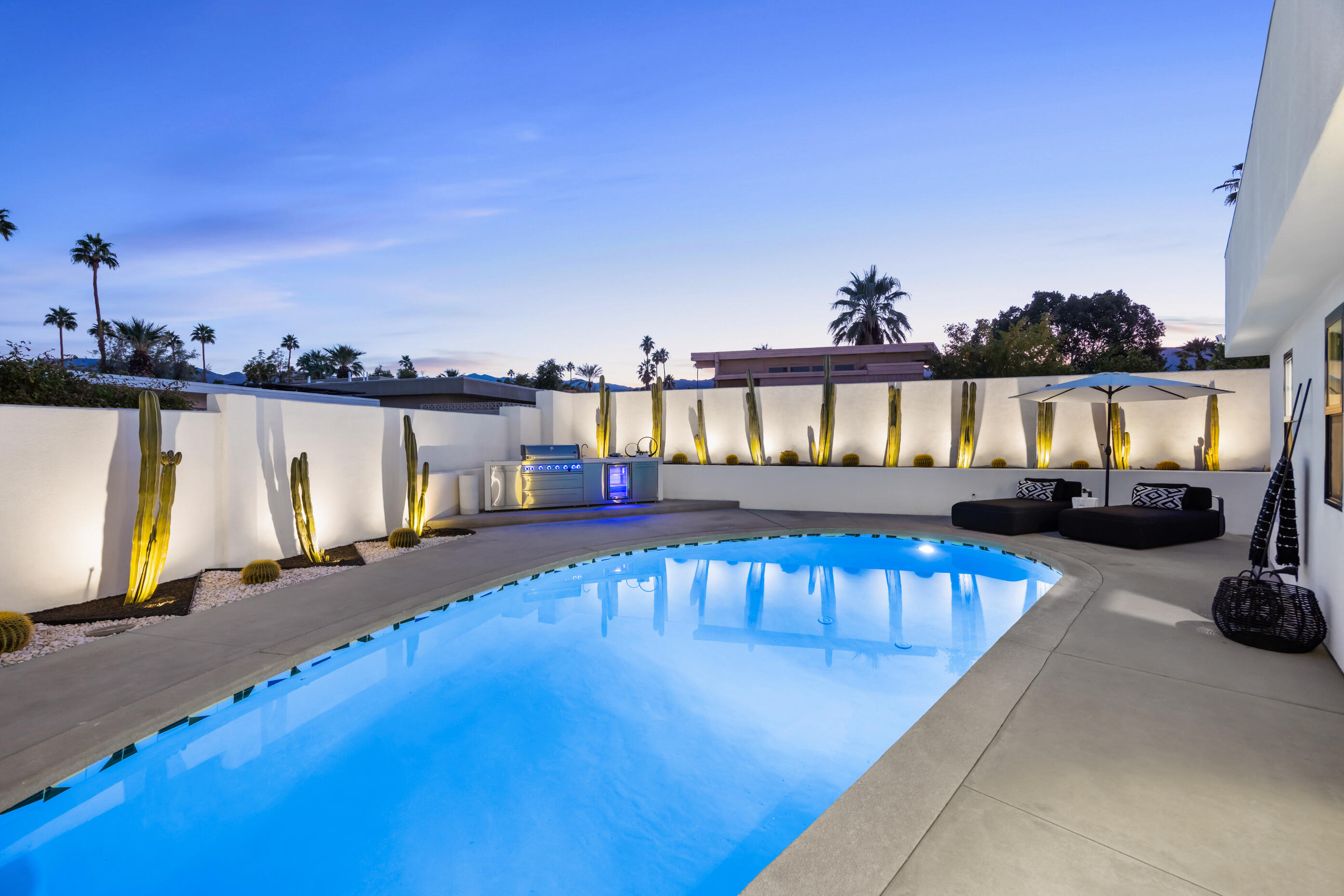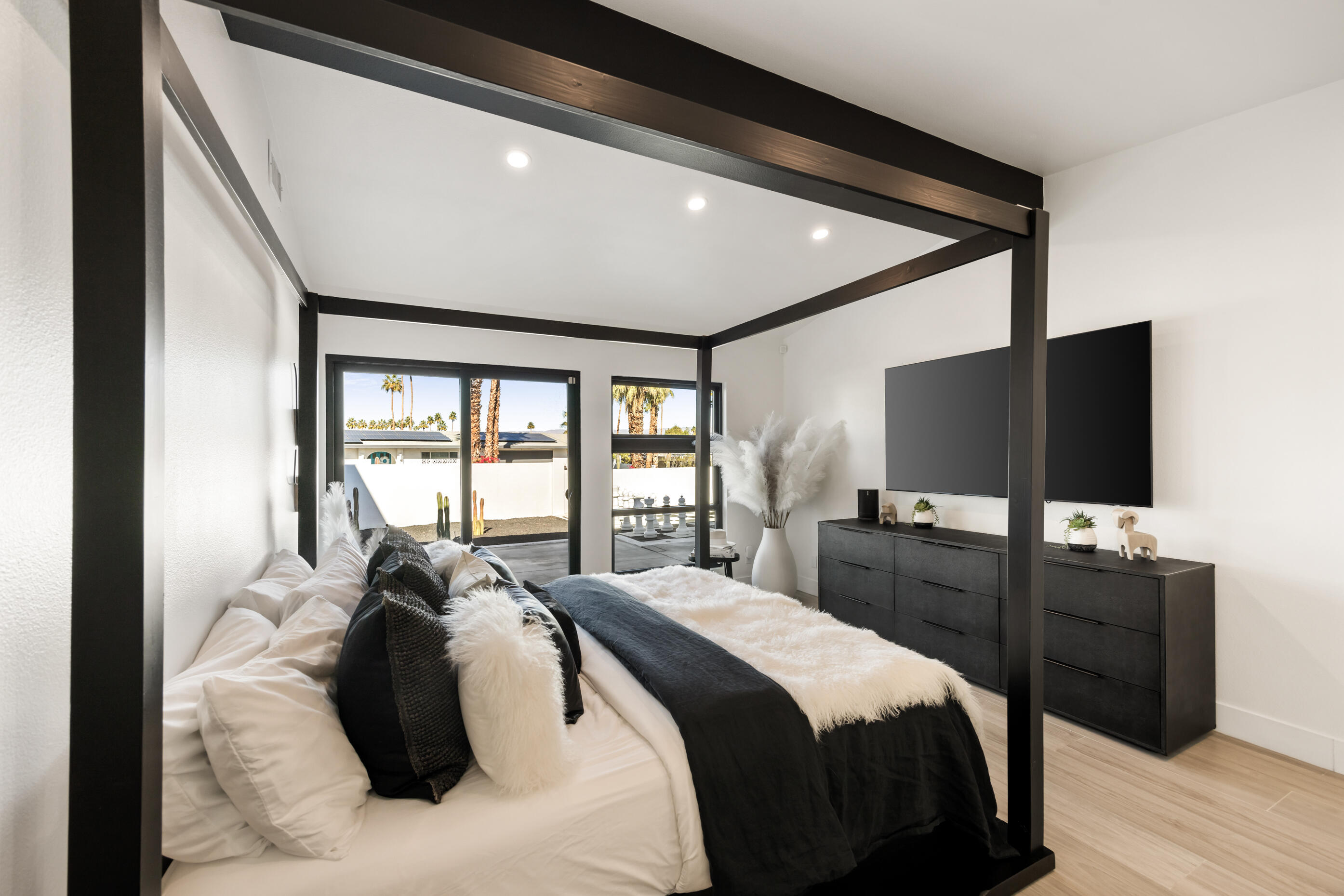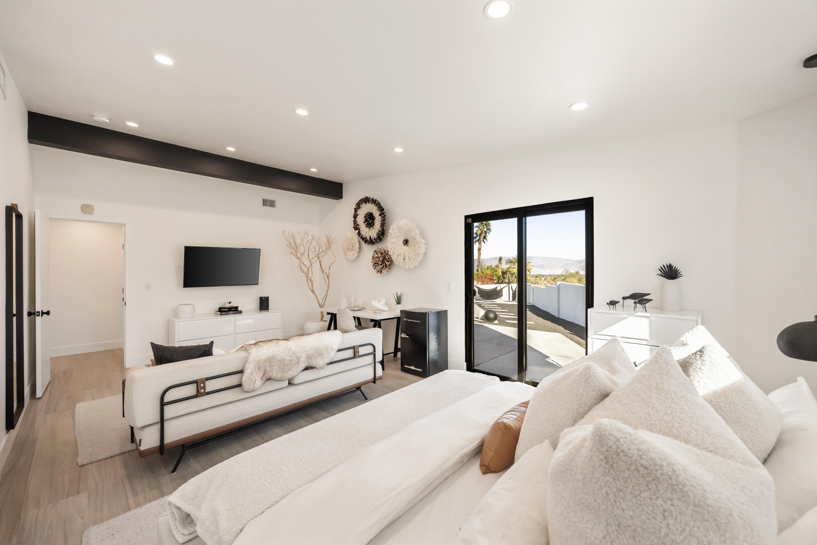 This stunning 3-bedroom, 3-bathroom contemporary home, originally built in 1957, underwent a full ''studs-out'' remodel, blending sleek, modern finishes with exceptional design. Located in the highly sought-after historic Silver Spur Ranch community in South Palm Desert, this home offers an abundance of natural light, creating a warm and luxurious ambiance. Large windows, a custom oversized fireplace, modern cabinetry, high-end finishes, and designer fixtures provide an elegant yet comfortable atmosphere throughout. The chef-inspired kitchen features two sinks, a built-in Dacor smart refrigerator, Z Line appliances, and a spacious island. This home includes two generously sized primary suites on opposite sides, each with walk-in closets and spa-like bathrooms for ultimate privacy. An additional guest room, currently a home gym, can easily convert into a third bedroom with a king-size bed. Set on a low-maintenance, professionally landscaped lot, this home sits elevated for stunning mountain views and complete privacy. Outdoor amenities include a 9-ft deep pool, bocce ball court, life-sized chess set, fire pit, dining area, BBQ, and multiple lounge spaces--ideal for entertaining. Conveniently located near the Living Desert Zoo, hiking trails, golf courses, and just minutes from El Paseo's upscale shopping and dining, this home offers the best of desert living. This is a must-see for those seeking a sophisticated desert retreat!Interested in this Listing?