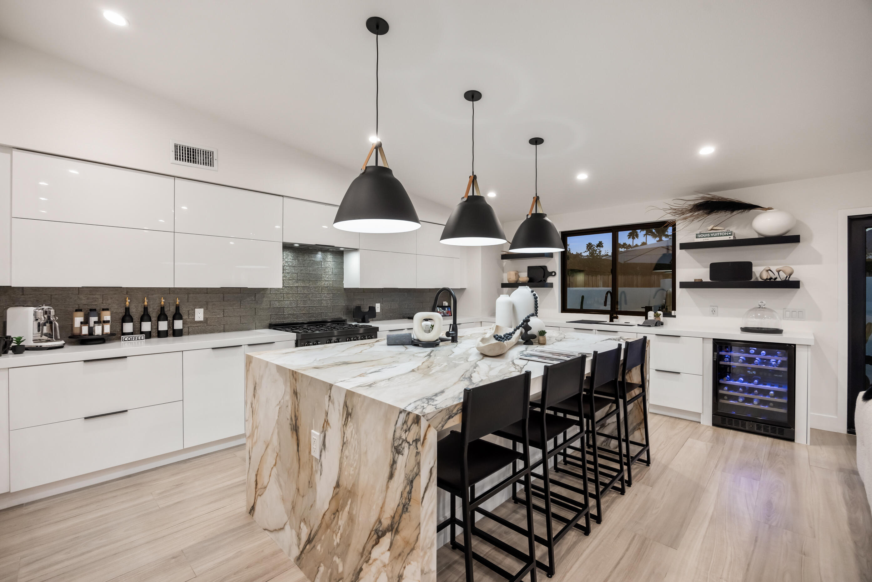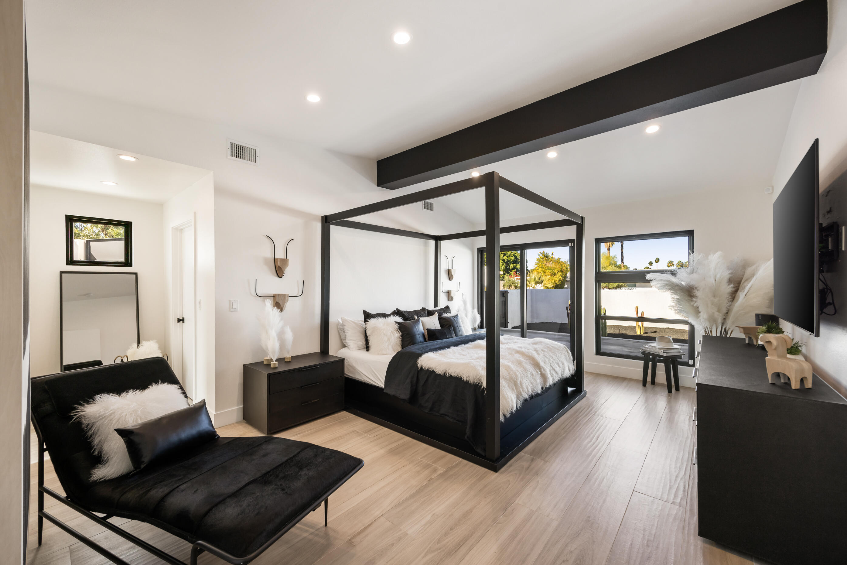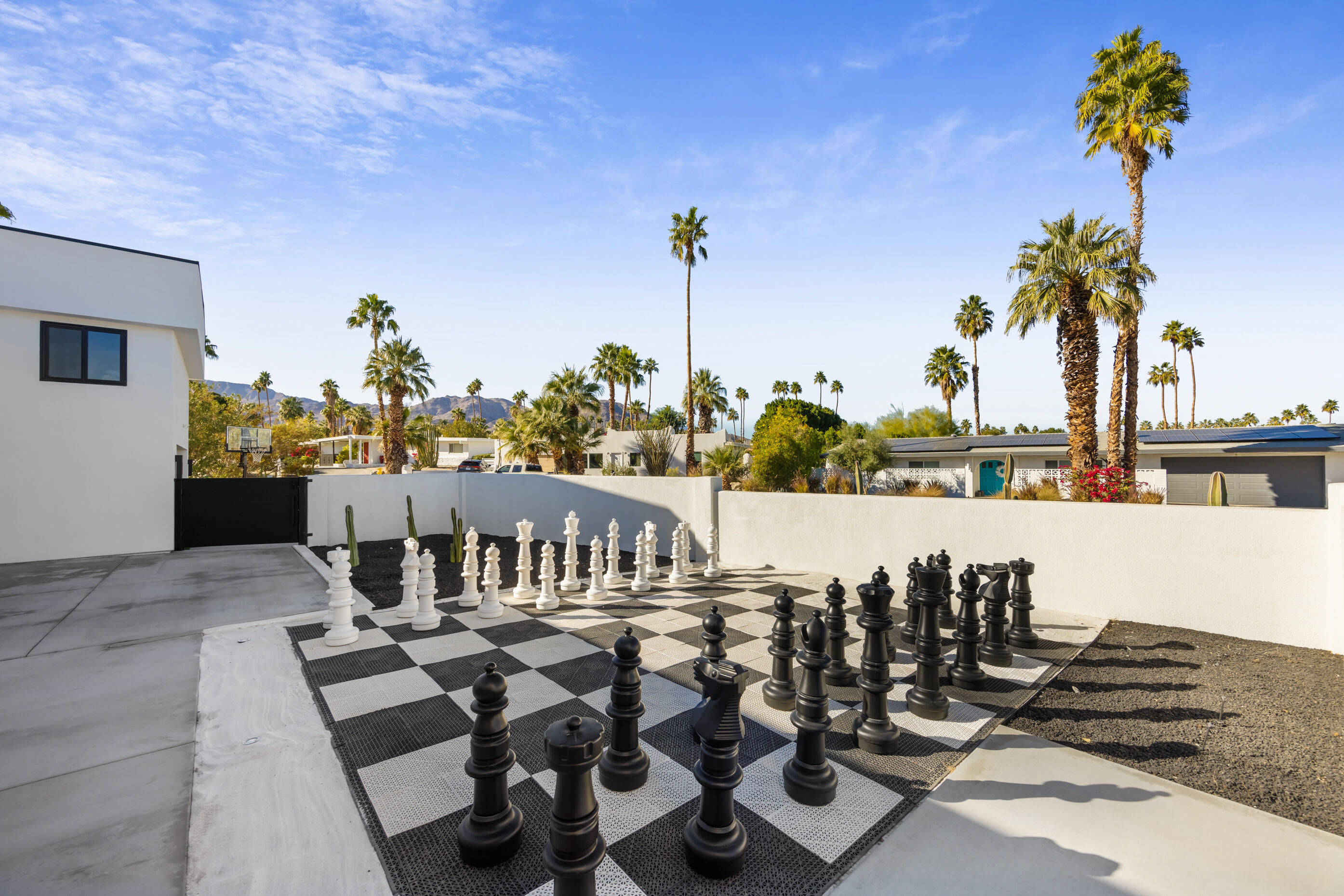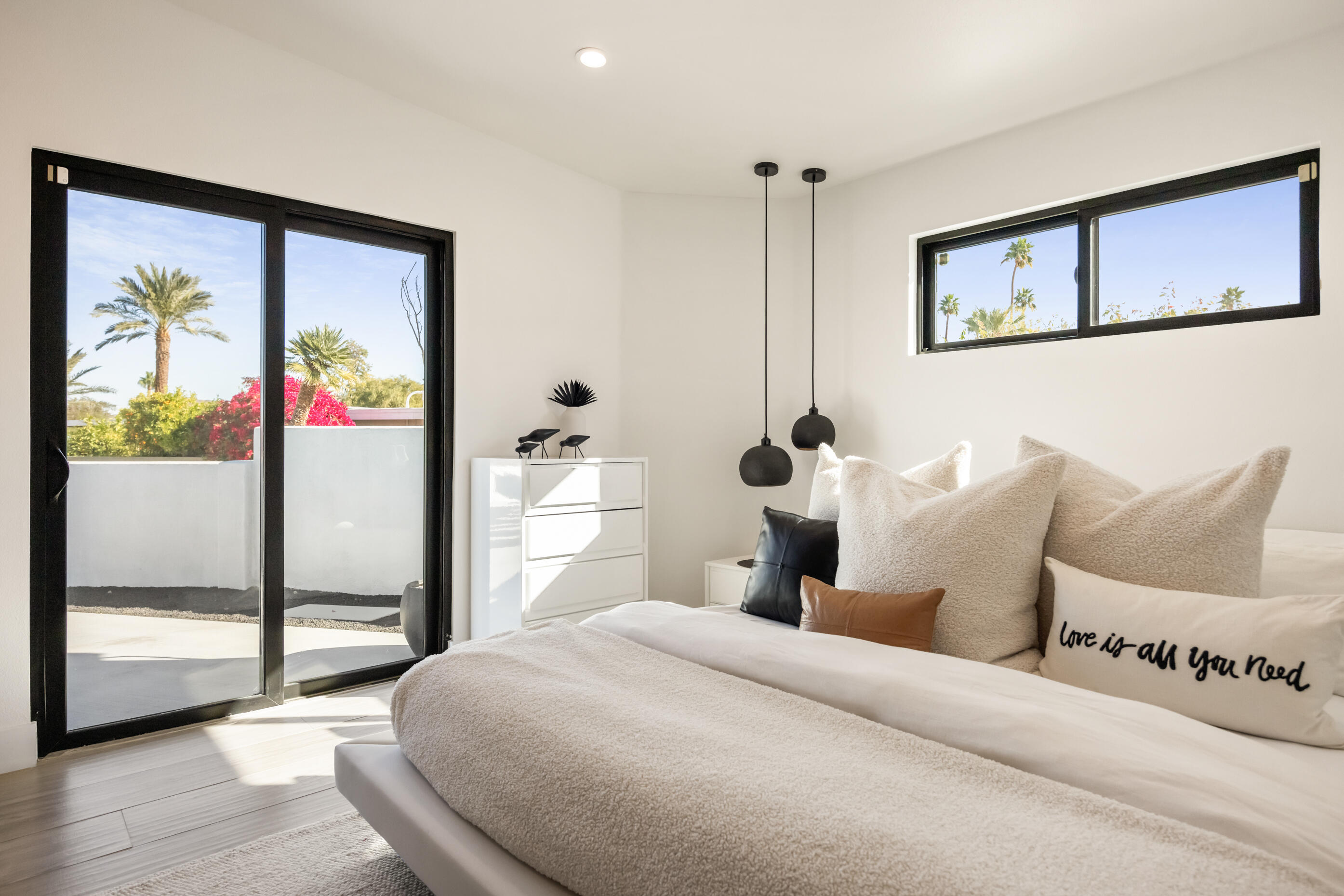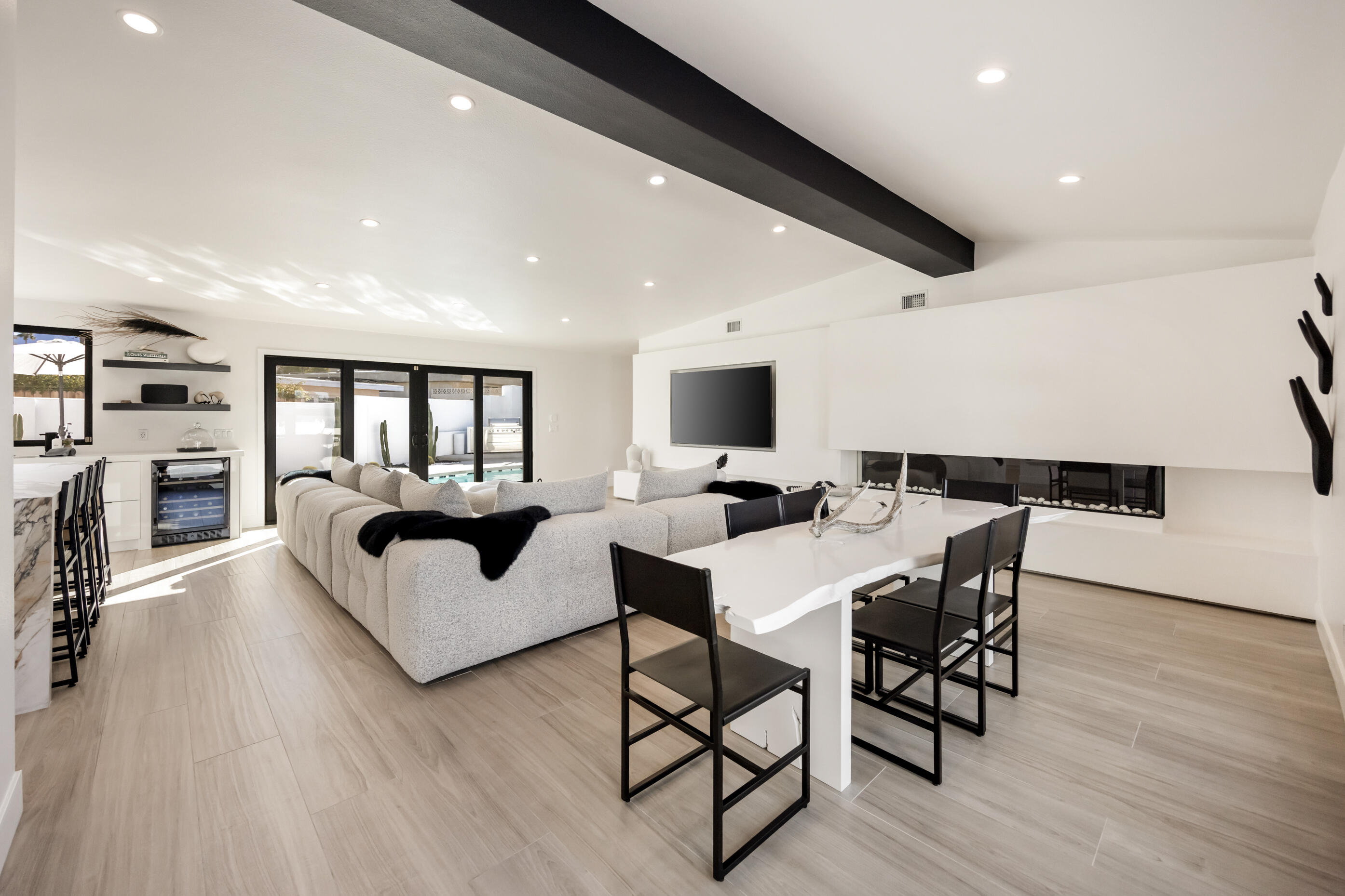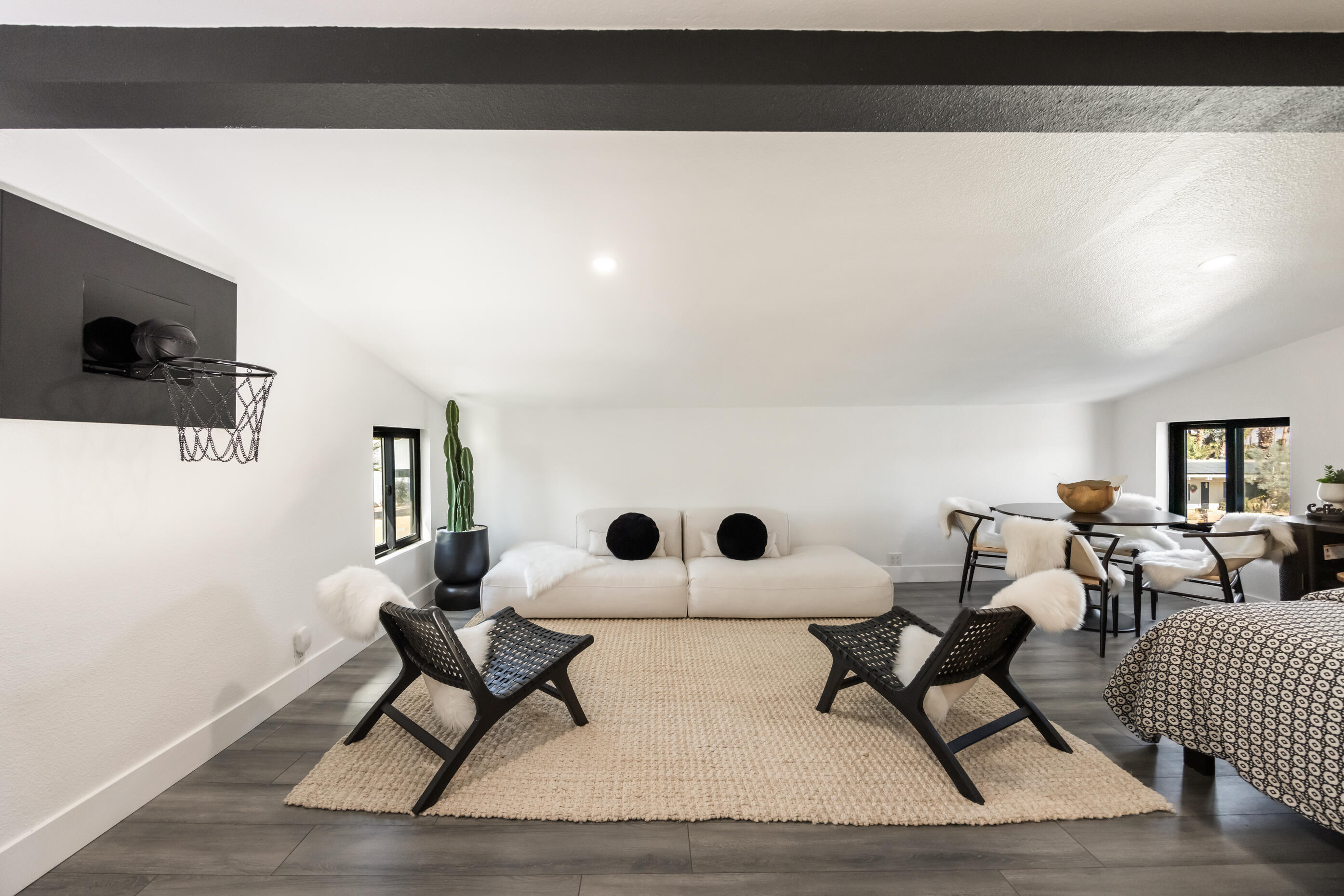 This stunning 3-bedroom, 3-bathroom contemporary home, originally built in 1957, underwent a full ''studs-out'' remodel, blending sleek, modern finishes with exceptional design. Located in the highly sought-after historic Silver Spur Ranch community in South Palm Desert, this home offers an abundance of natural light, creating a warm and luxurious ambiance. Large windows, a custom oversized fireplace, modern cabinetry, high-end finishes, and designer fixtures provide an elegant yet comfortable atmosphere throughout. The chef-inspired kitchen features two sinks, a built-in Dacor smart refrigerator, Z Line appliances, and a spacious island. This home includes two generously sized primary suites on opposite sides, each with walk-in closets and spa-like bathrooms for ultimate privacy. An additional guest room, currently a home gym, can easily convert into a third bedroom with a king-size bed. Set on a low-maintenance, professionally landscaped lot, this home sits elevated for stunning mountain views and complete privacy. Outdoor amenities include a 9-ft deep pool, bocce ball court, life-sized chess set, fire pit, dining area, BBQ, and multiple lounge spaces--ideal for entertaining. Conveniently located near the Living Desert Zoo, hiking trails, golf courses, and just minutes from El Paseo's upscale shopping and dining, this home offers the best of desert living. This is a must-see for those seeking a sophisticated desert retreat!Interested in this Listing?