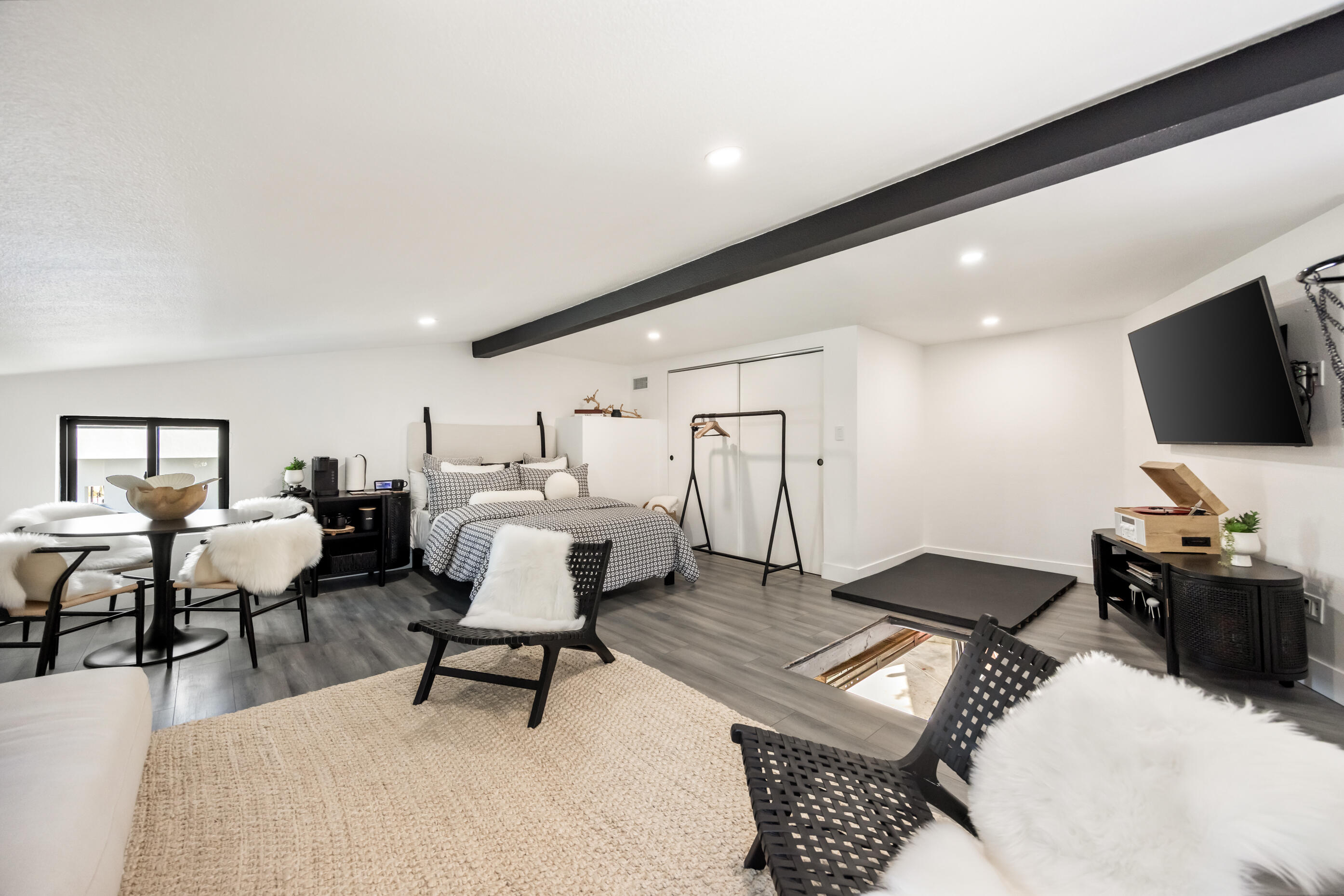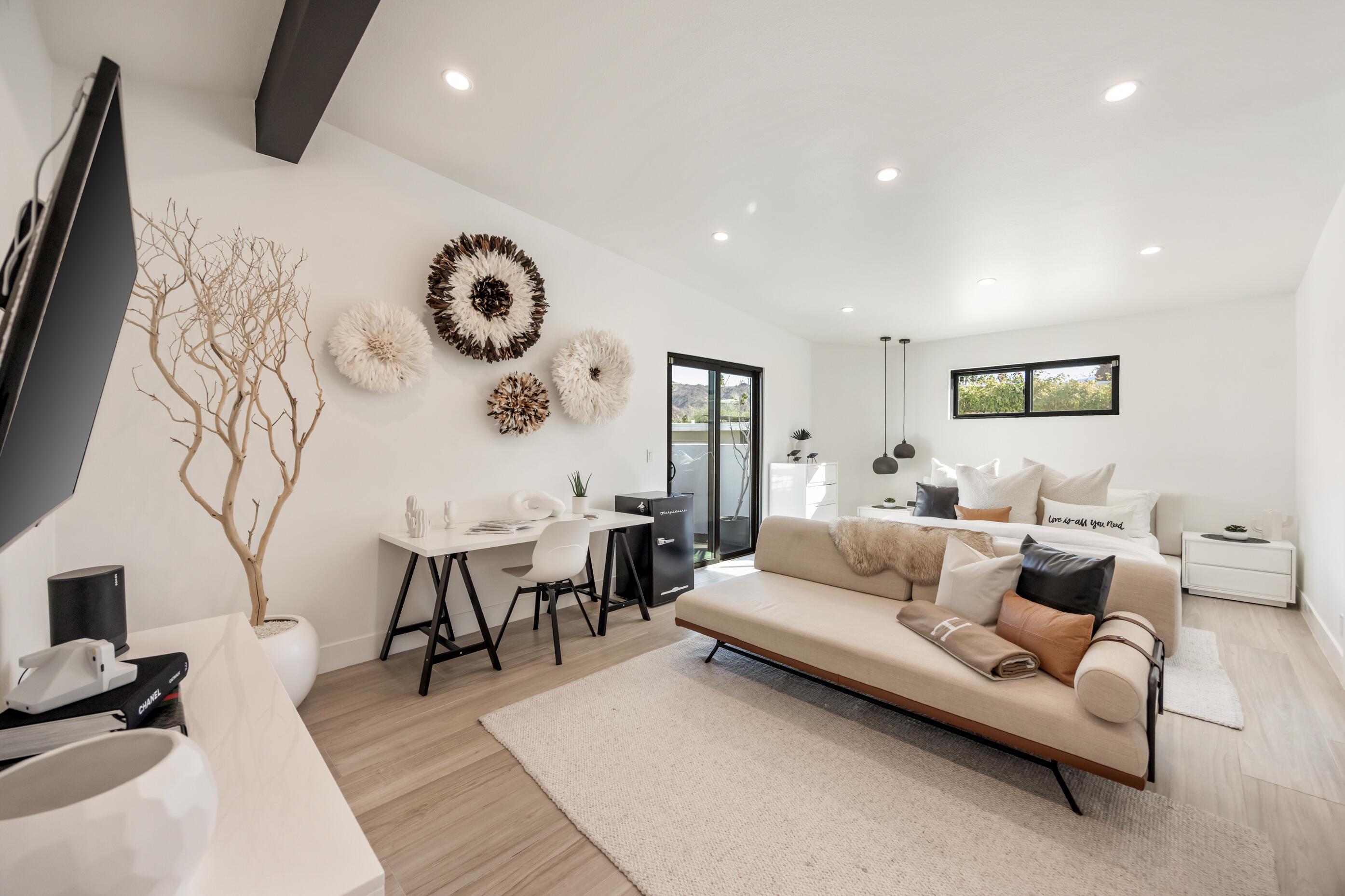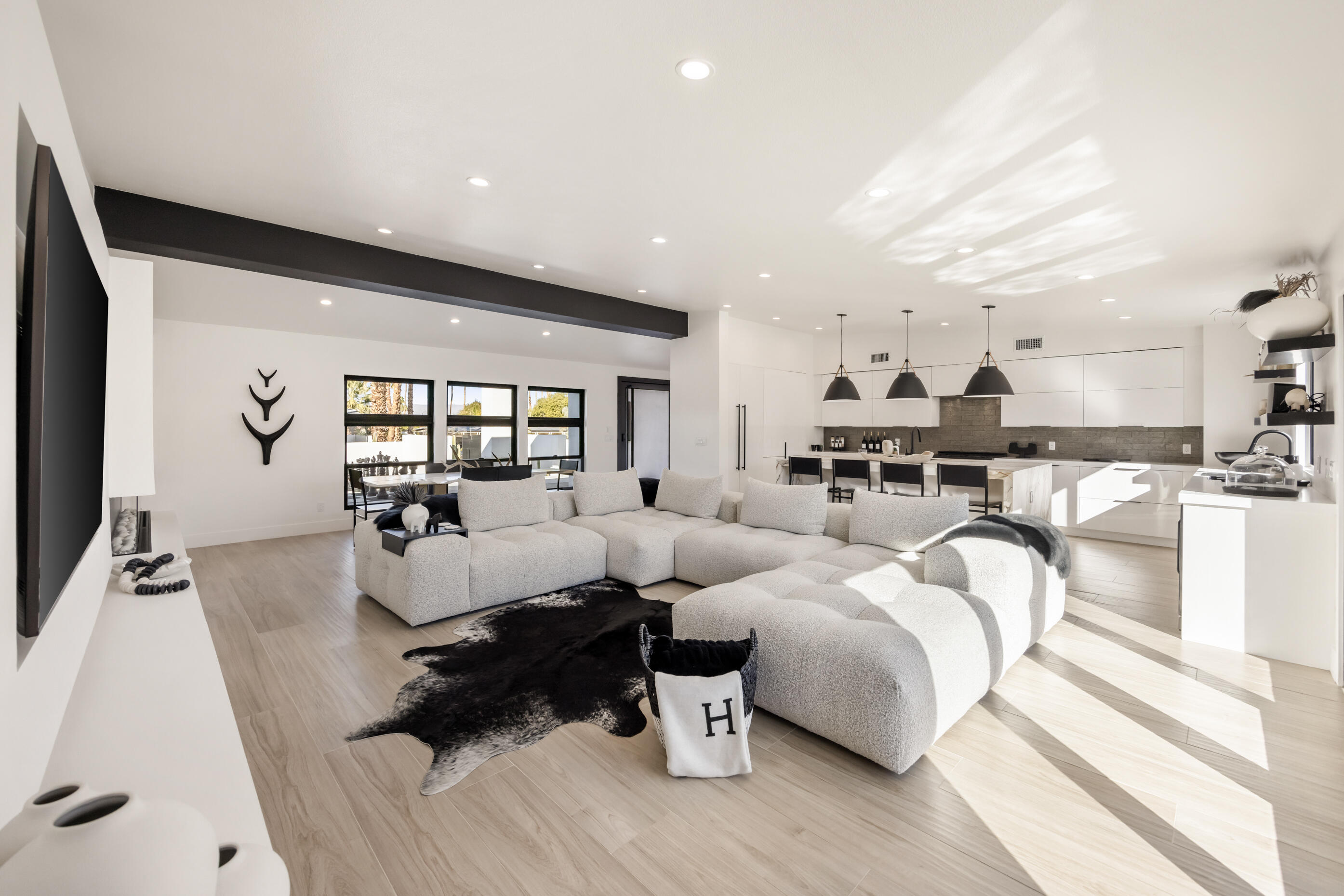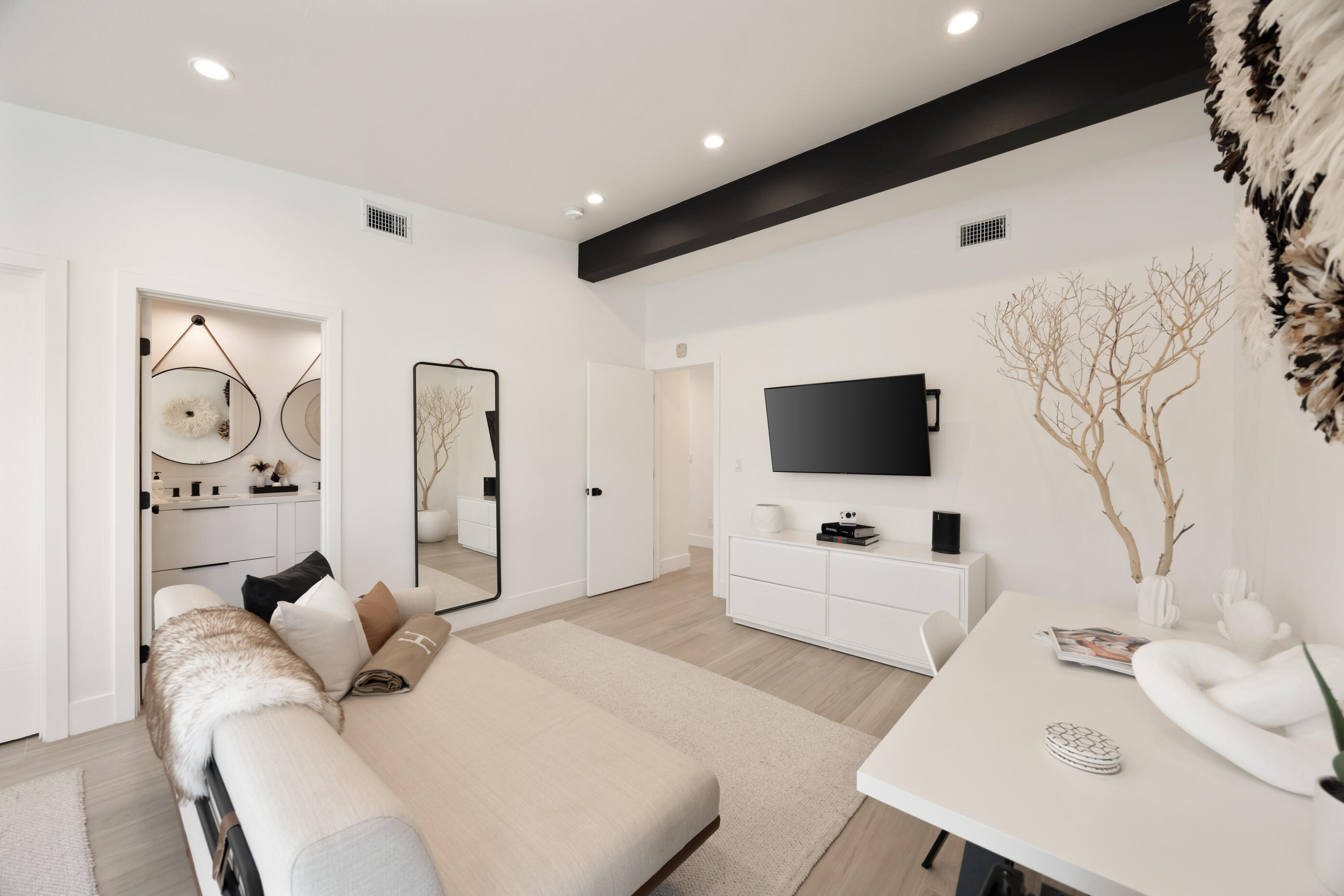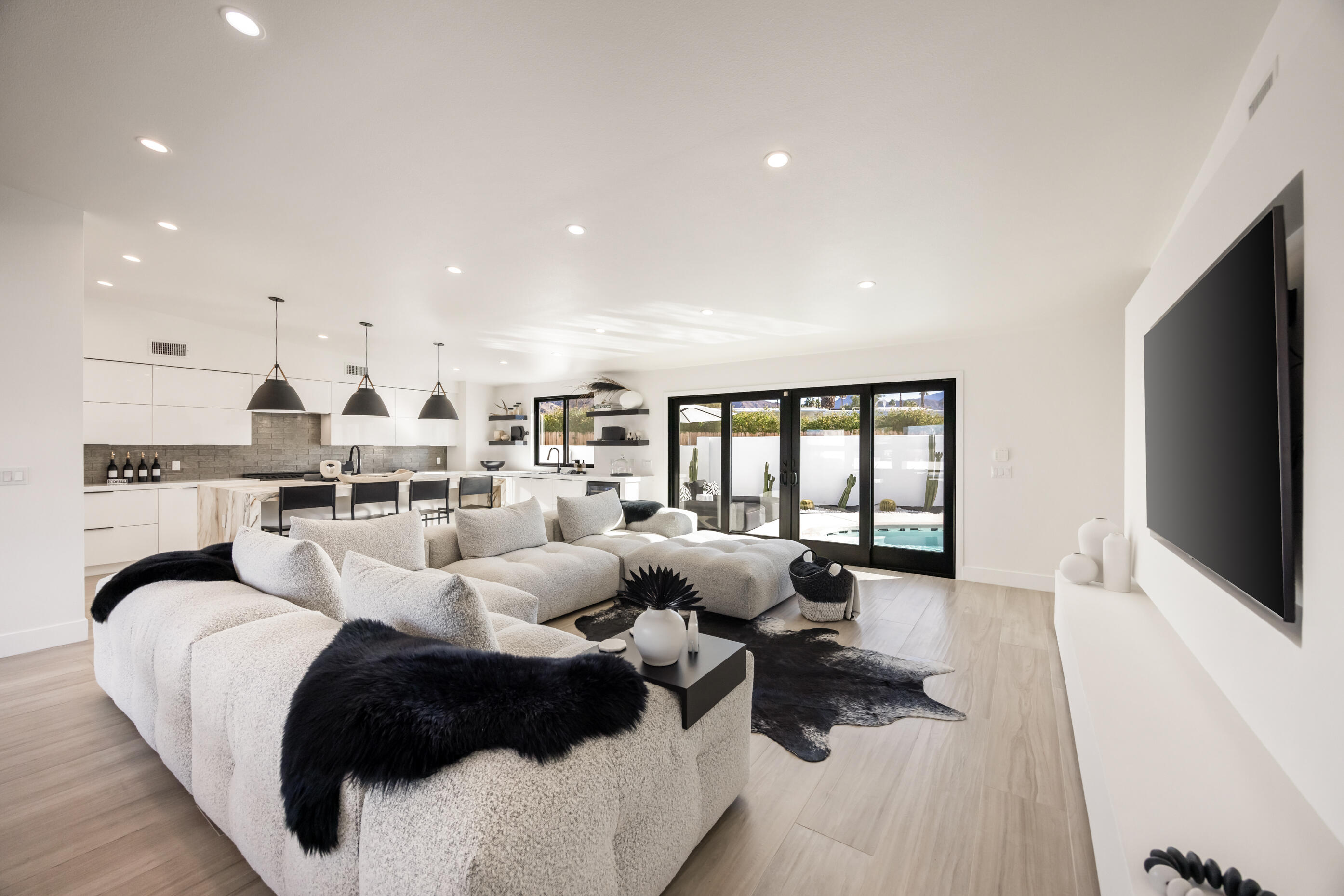 This stunning 3-bedroom, 3-bathroom contemporary home, originally built in 1957, underwent a full ''studs-out'' remodel, blending sleek, modern finishes with exceptional design. Located in the highly sought-after historic Silver Spur Ranch community in South Palm Desert, this home offers an abundance of natural light, creating a warm and luxurious ambiance. Large windows, a custom oversized fireplace, modern cabinetry, high-end finishes, and designer fixtures provide an elegant yet comfortable atmosphere throughout. The chef-inspired kitchen features two sinks, a built-in Dacor smart refrigerator, Z Line appliances, and a spacious island. This home includes two generously sized primary suites on opposite sides, each with walk-in closets and spa-like bathrooms for ultimate privacy. An additional guest room, currently a home gym, can easily convert into a third bedroom with a king-size bed. Set on a low-maintenance, professionally landscaped lot, this home sits elevated for stunning mountain views and complete privacy. Outdoor amenities include a 9-ft deep pool, bocce ball court, life-sized chess set, fire pit, dining area, BBQ, and multiple lounge spaces--ideal for entertaining. Conveniently located near the Living Desert Zoo, hiking trails, golf courses, and just minutes from El Paseo's upscale shopping and dining, this home offers the best of desert living. This is a must-see for those seeking a sophisticated desert retreat!Interested in this Listing?