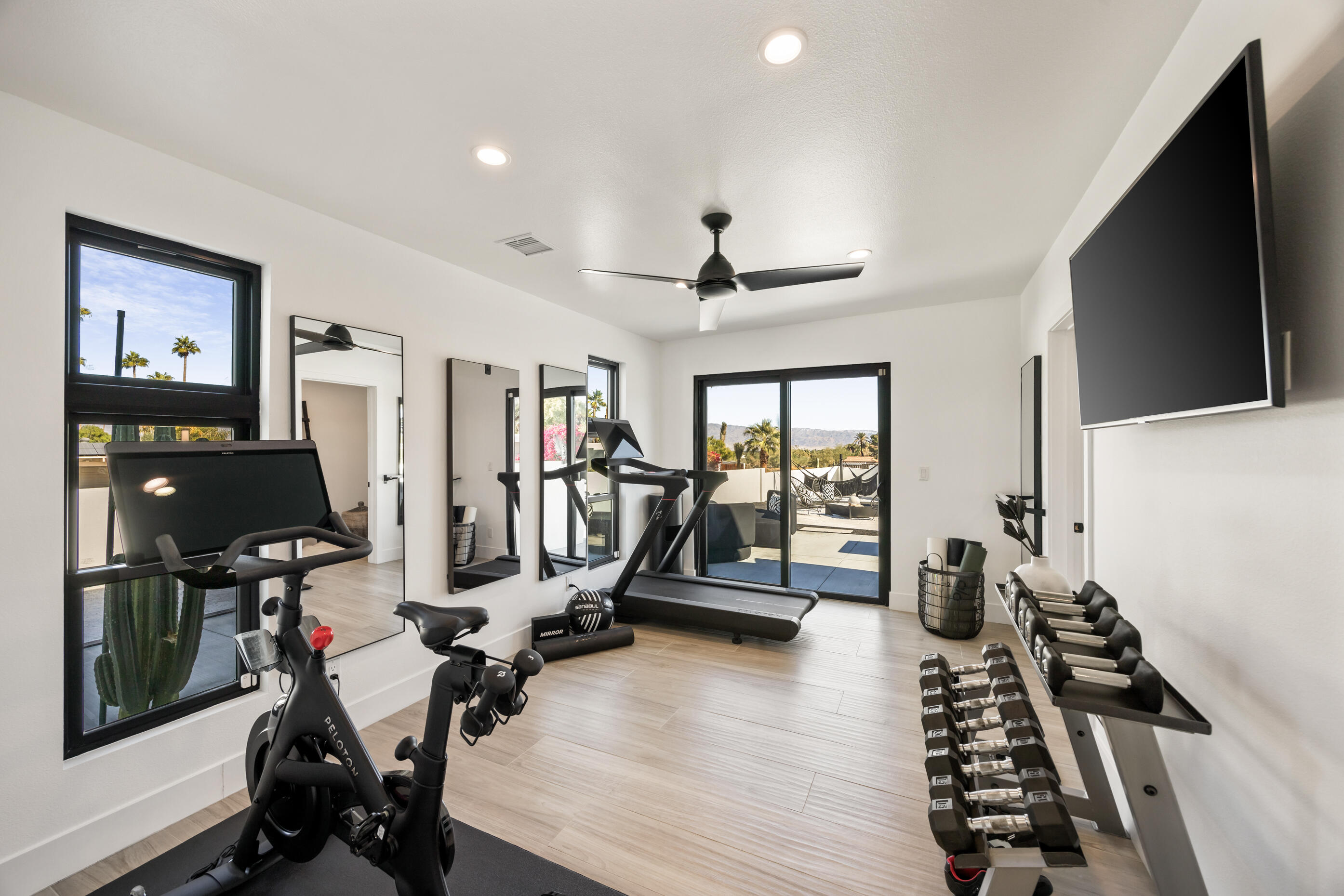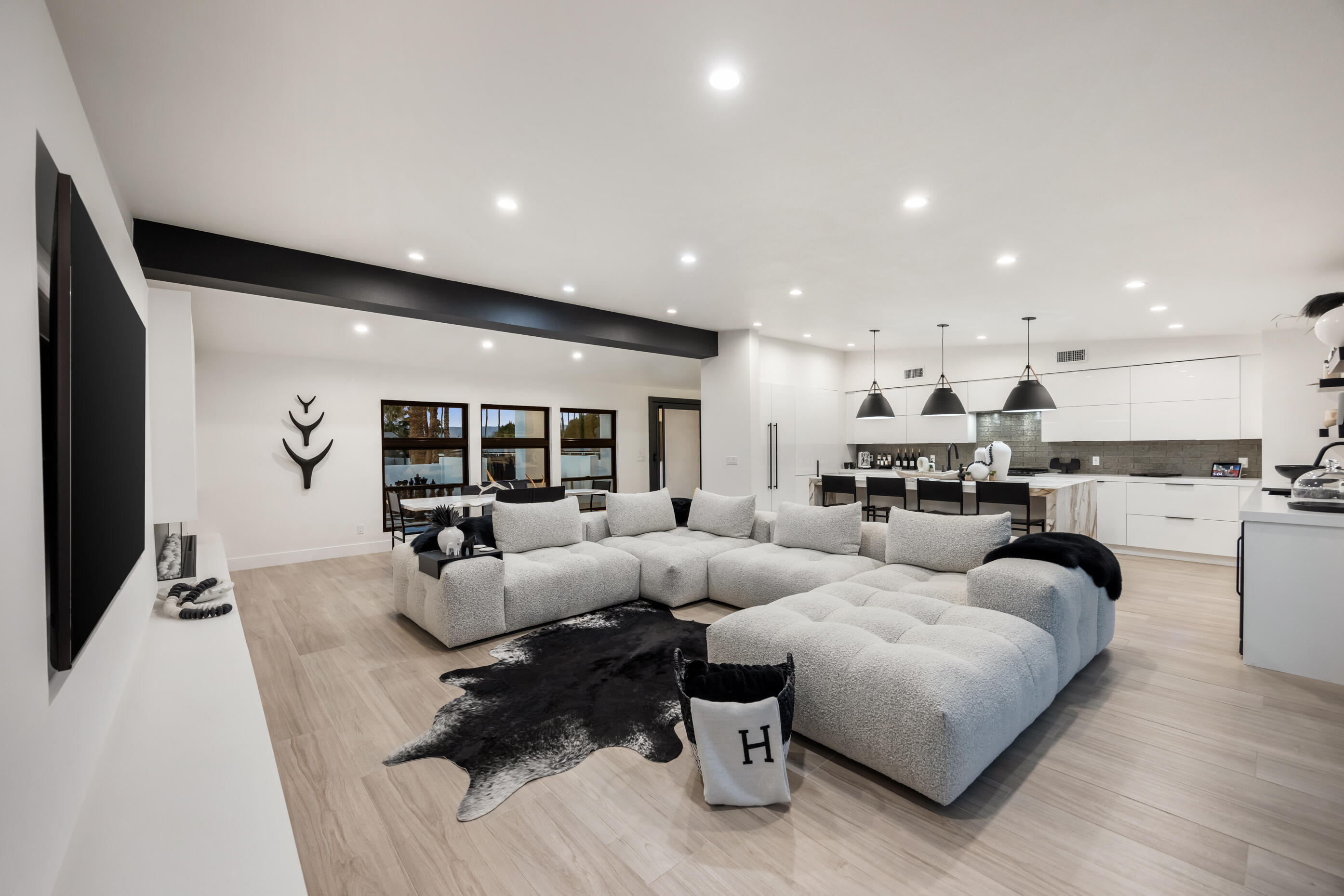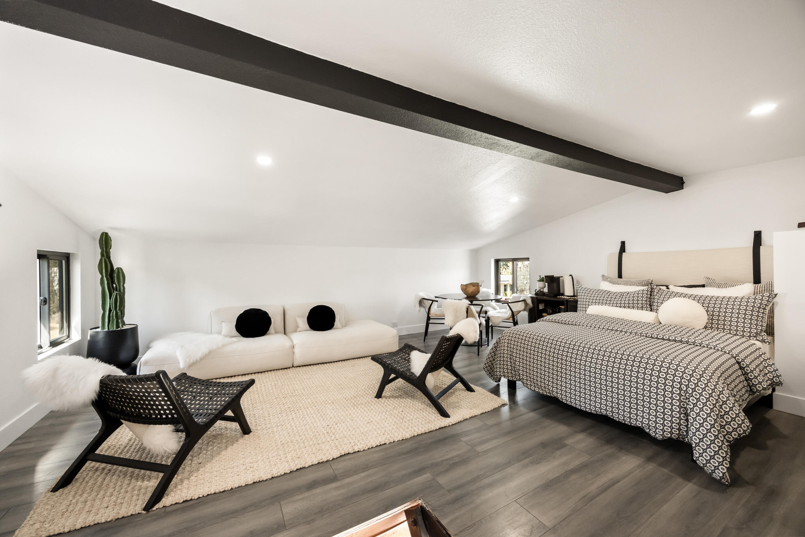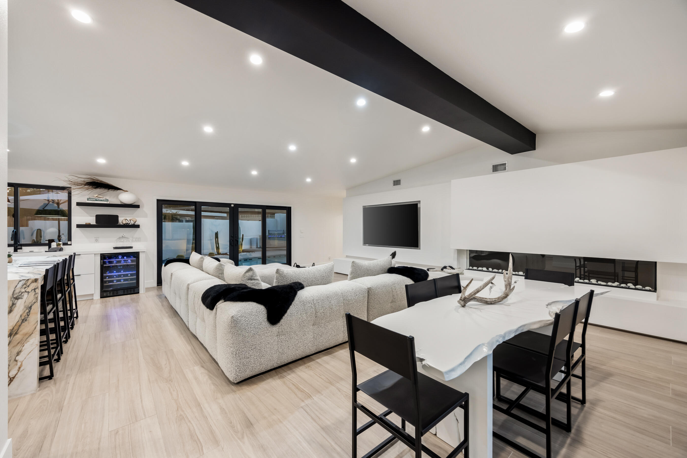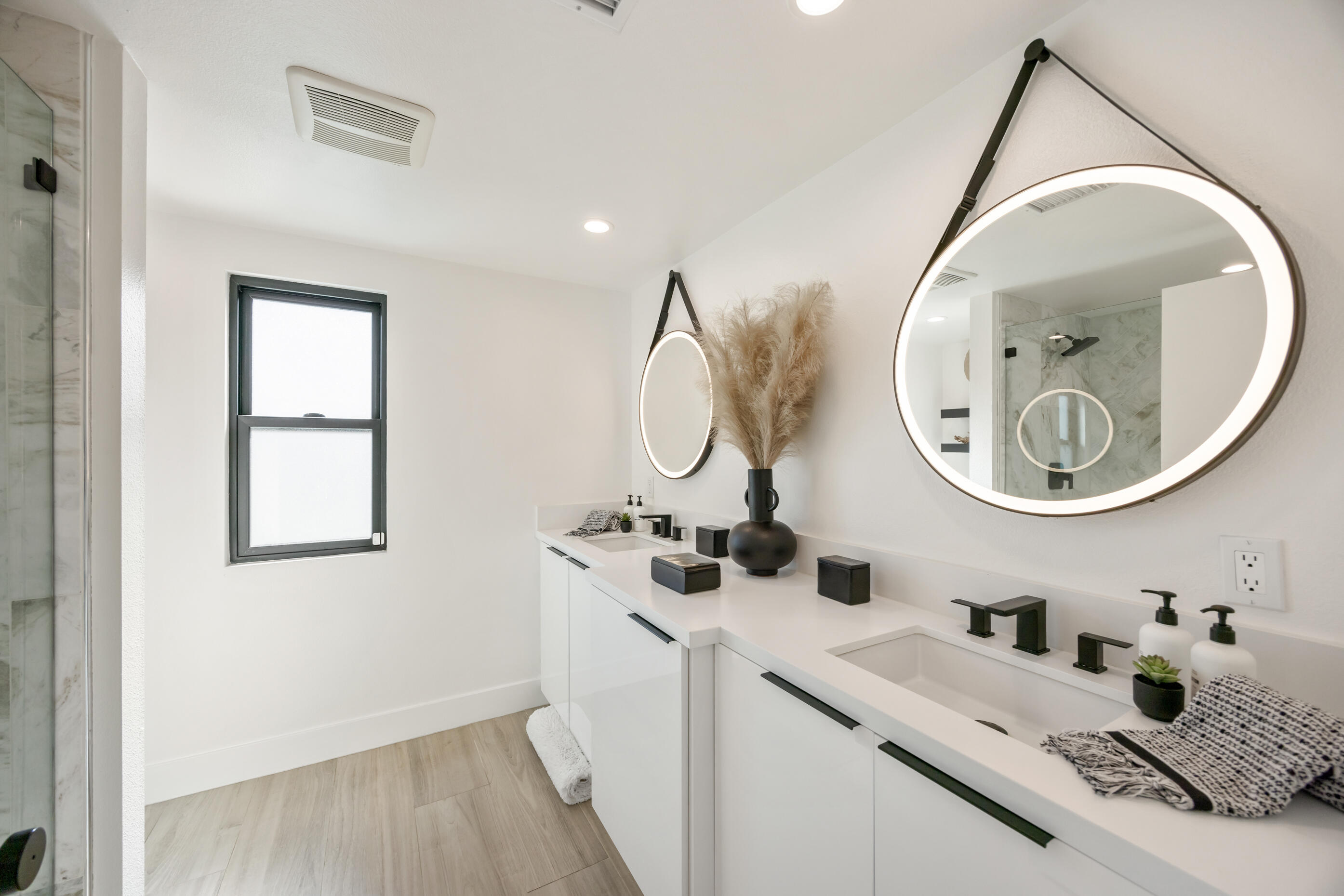 This stunning 3-bedroom, 3-bathroom contemporary home, originally built in 1957, underwent a full ''studs-out'' remodel, blending sleek, modern finishes with exceptional design. Located in the highly sought-after historic Silver Spur Ranch community in South Palm Desert, this home offers an abundance of natural light, creating a warm and luxurious ambiance. Large windows, a custom oversized fireplace, modern cabinetry, high-end finishes, and designer fixtures provide an elegant yet comfortable atmosphere throughout. The chef-inspired kitchen features two sinks, a built-in Dacor smart refrigerator, Z Line appliances, and a spacious island. This home includes two generously sized primary suites on opposite sides, each with walk-in closets and spa-like bathrooms for ultimate privacy. An additional guest room, currently a home gym, can easily convert into a third bedroom with a king-size bed. Set on a low-maintenance, professionally landscaped lot, this home sits elevated for stunning mountain views and complete privacy. Outdoor amenities include a 9-ft deep pool, bocce ball court, life-sized chess set, fire pit, dining area, BBQ, and multiple lounge spaces--ideal for entertaining. Conveniently located near the Living Desert Zoo, hiking trails, golf courses, and just minutes from El Paseo's upscale shopping and dining, this home offers the best of desert living. This is a must-see for those seeking a sophisticated desert retreat!Interested in this Listing?