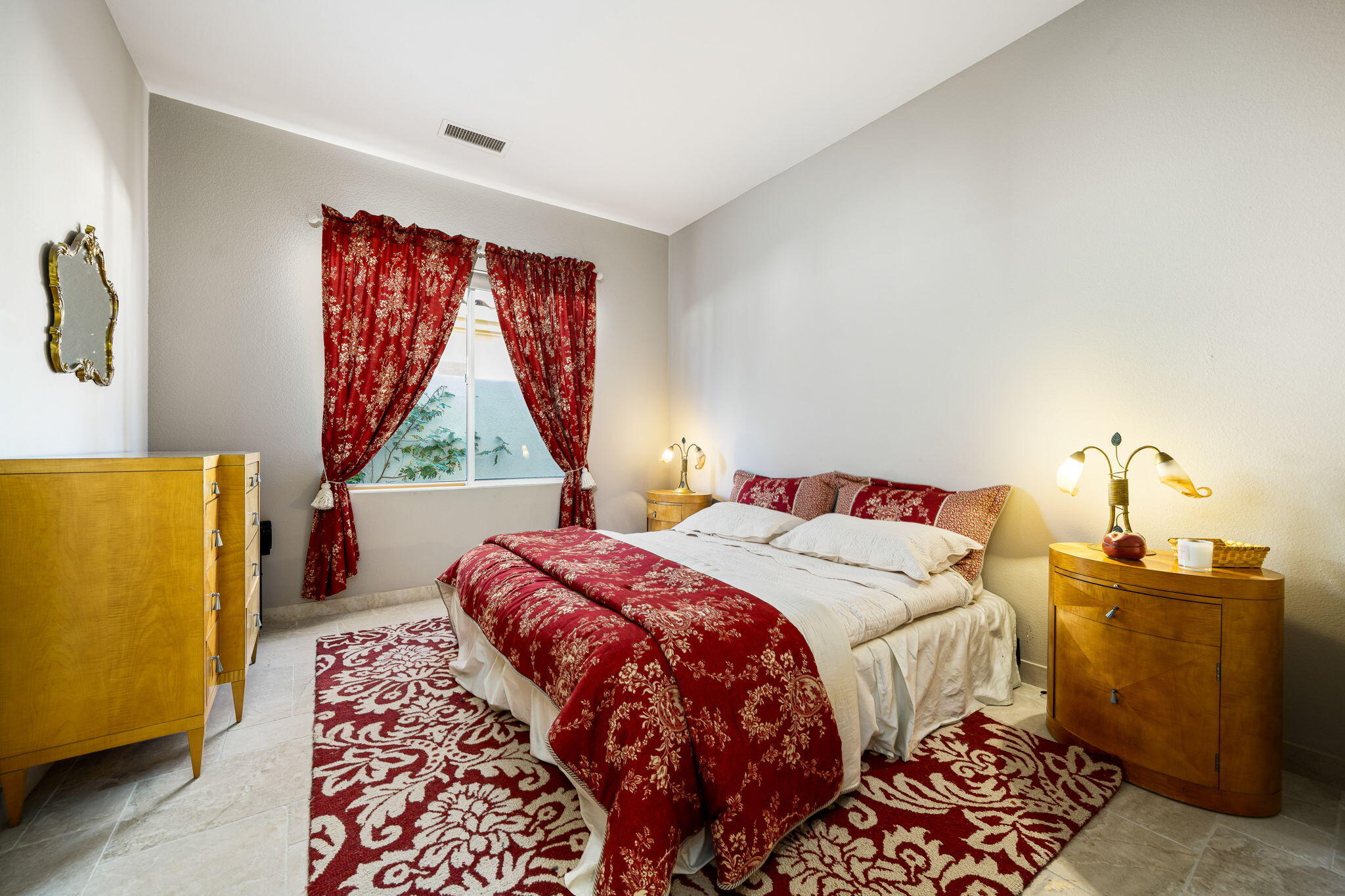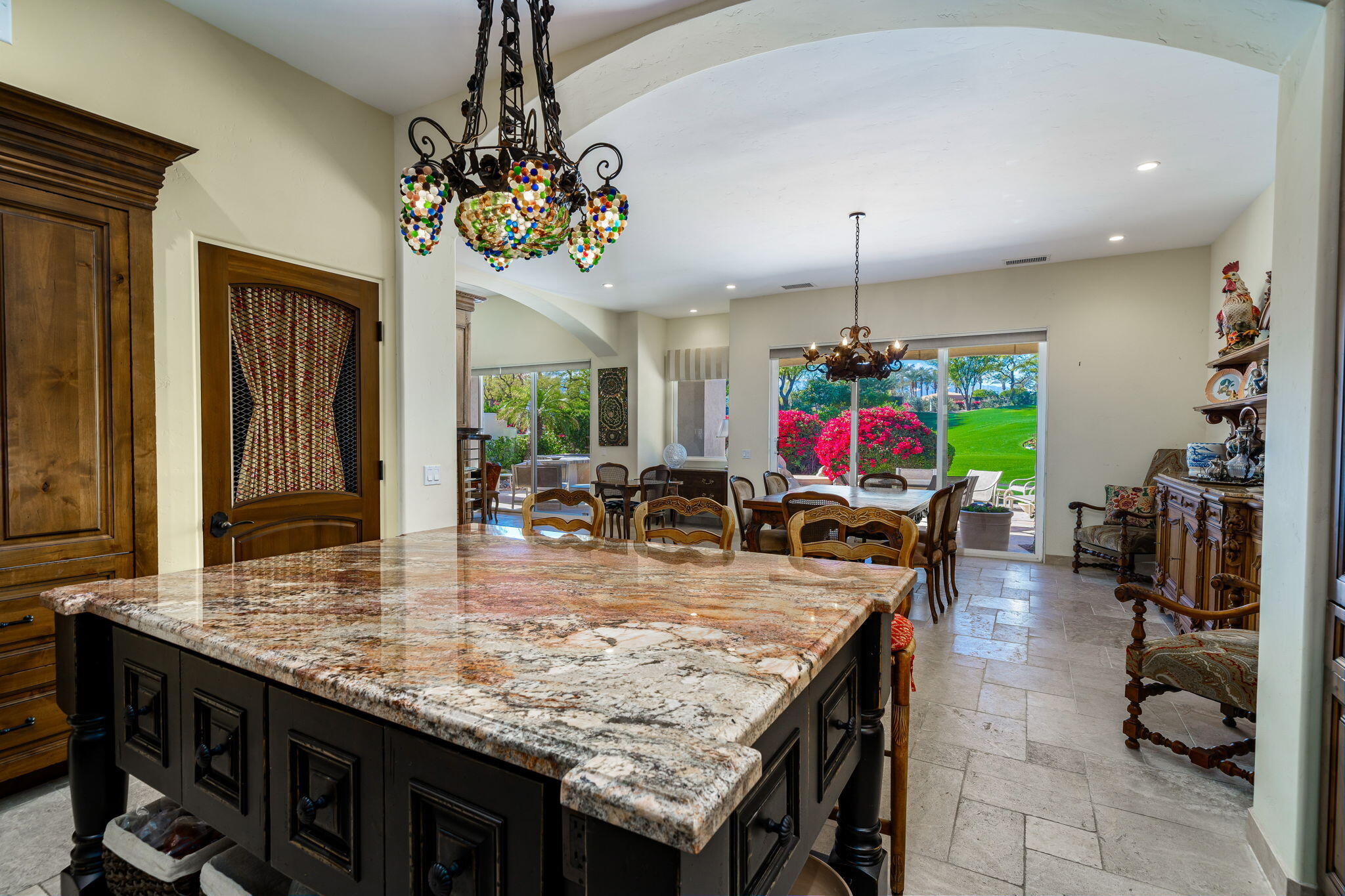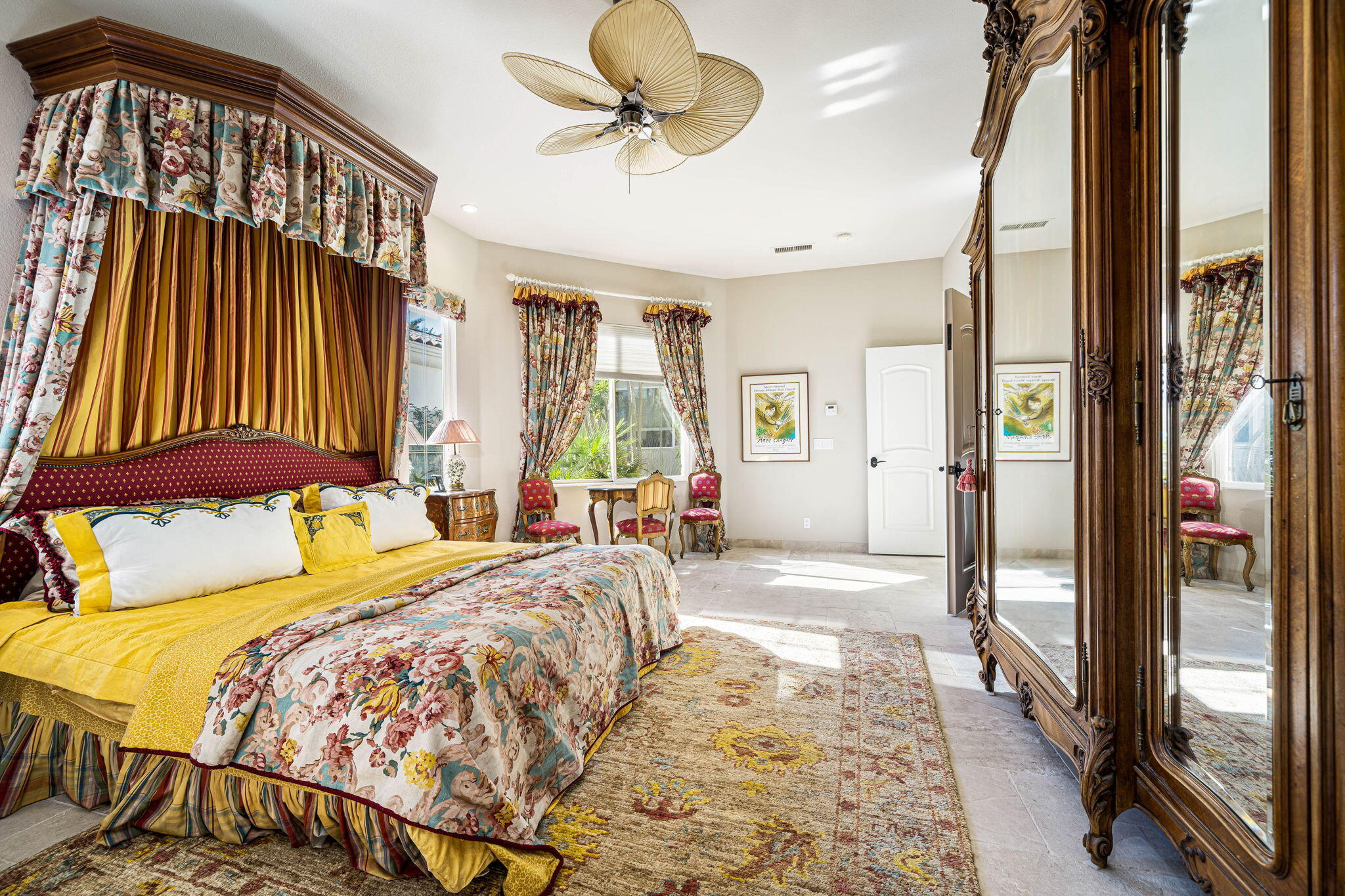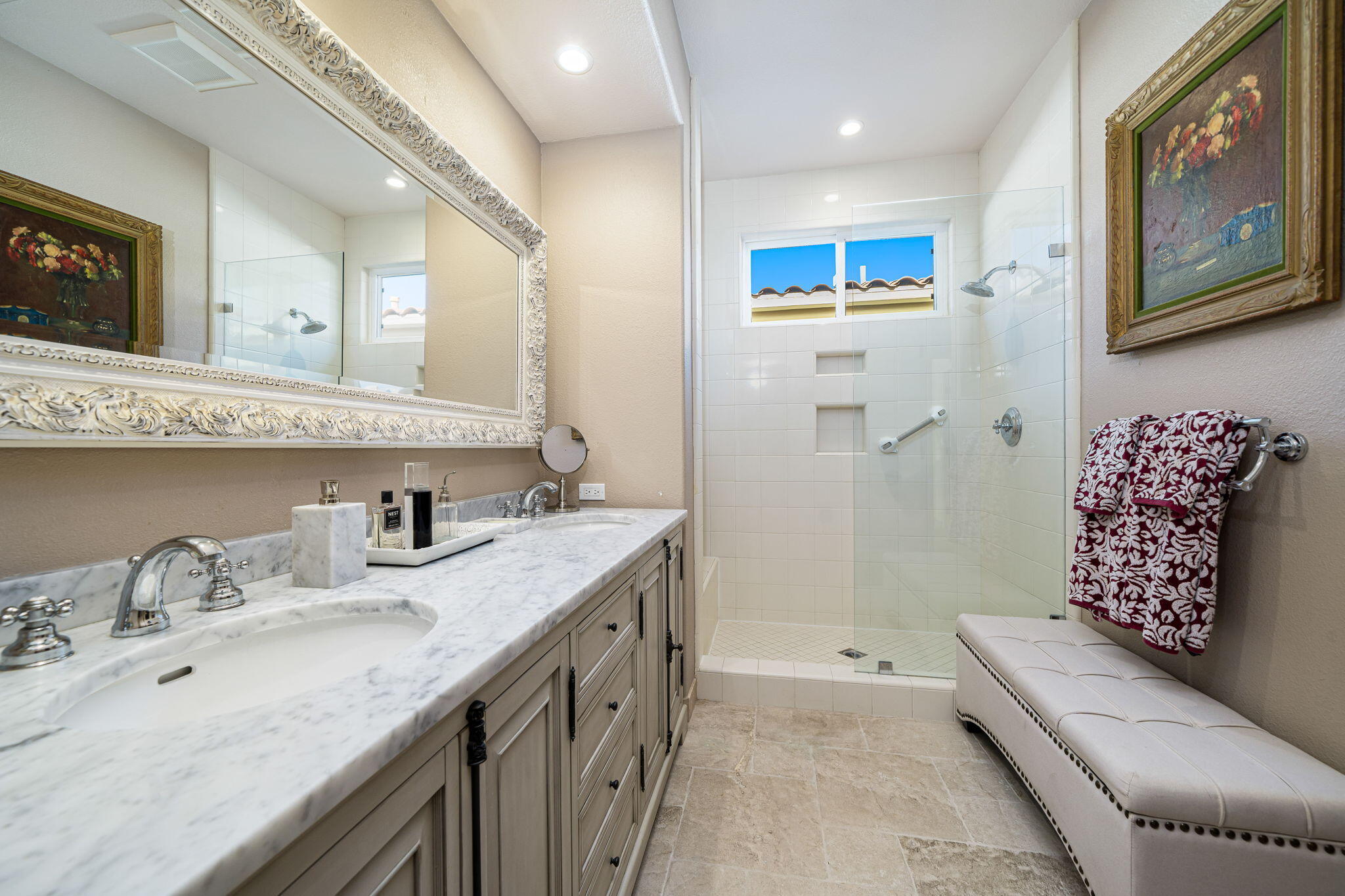 Elegant Spa Bougainvillea 2! Featuring 3 bedrooms & 3.5 bathrooms, with an open floor plan, this beautiful home has west views of the mountains and Grove #1. Offered furnished per inventory. Upon entering the foyer, there is a private den/library with built-ins. The living room, dining area, and open kitchen all have views of the patio pool area. The fairway patio is very private, offering several dining and lounging spaces, awnings, spa with water features and a built-in BBQ area. The kitchen feels like you are in Europe! Beautiful woodwork, a large island with seating, an enclosed pantry, and a gorgeous La Cornue CornuFe range! The large Primary suite features 2 closets (1 large walk-in) and a totally remodeled bathroom with a tub & open shower. There are 2 ensuite guest rooms - one is currently used as an office. Both en suite guest bathrooms have been updated. This home has a gated front courtyard and attached 2-car + golf cart garage. Close to the Clubhouse and all that Indian Ridge CC has to offer! Club Membership available to the Buyer with no wait!Interested in this Listing?