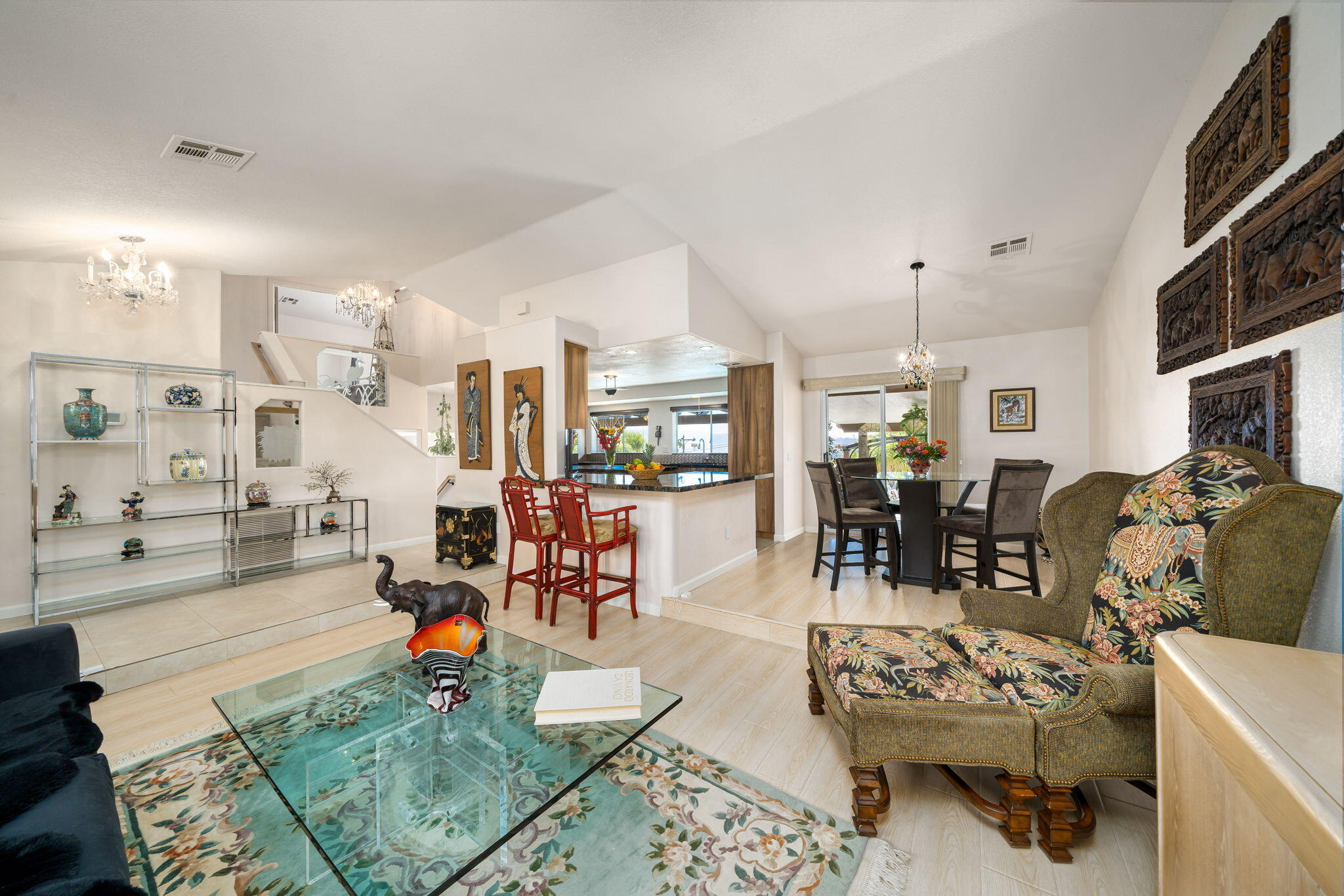 *NEW PRICE* ...Can you imagine waking up to this view every day? Experience the beauty, serenity and tranquility of Cahuilla Hills in South Palm Desert...rural in feeling, yet just minutes from El Paseo's upscale stores and restaurants, Whole Foods Market, Trader Joes and more! Nestled against the Santa Rosa mountains, property overlooks city lights on 1.11 acres. Surrounded by nature, this amazing private sanctuary is designed to take full advantage of breathtaking views. Open floor plan, split-level home, 1,960 sqft, with 3-bedrooms and 2.5-bath. Custom renovated kitchen features an oversized island & decorative backsplash. Adjacent den (with fireplace) leads to sliding door that invites a lush-feeling, private, fully enclosed backyard. Landscape captures your senses to showcase mountain views while providing the ultimate in entertaining & relaxation areas. Alumawood patio covers provide shade & overlooks inviting Pebble Tec pool. Sweeping deck area perfect for lounging, bird watching & star gazing! Air conditioned 2-car garage. New 10X10 storage shed (also with air conditioning) and a window is privately situated--ideal for a craft studio. Enjoy fragrance from 2 kinds of orange & lemon trees. Property has been updated sensibly by attentive owner. Cahuilla Hills is uniquely situated in the foothills amid multiple hiking trails, between Stone Eagle & Big Horn Golf club. Looking for an enchanting setting featuring true privacy & endless views? You have found it! Call for an appointment to view this exceptional propertyInterested in this Listing?