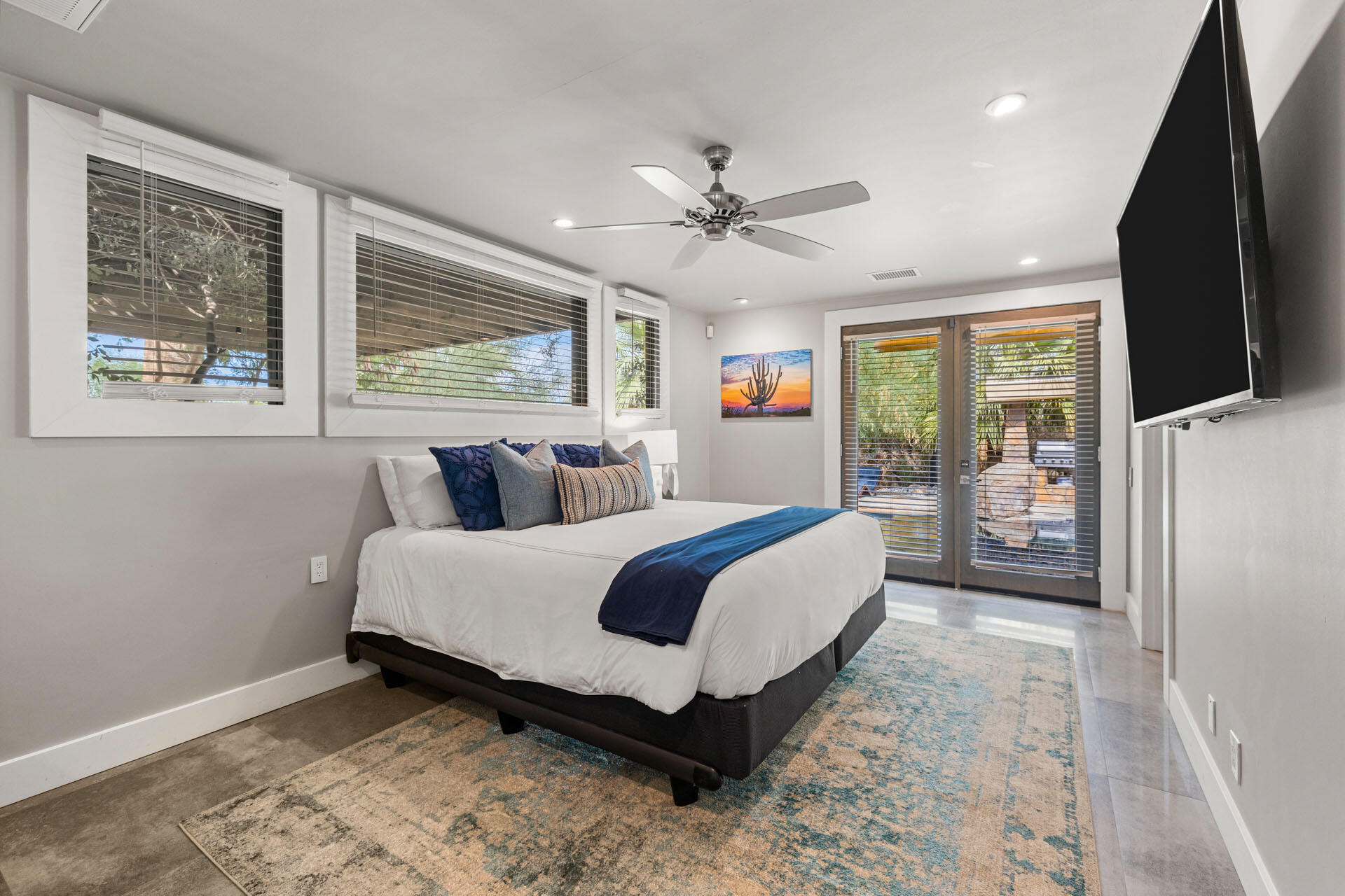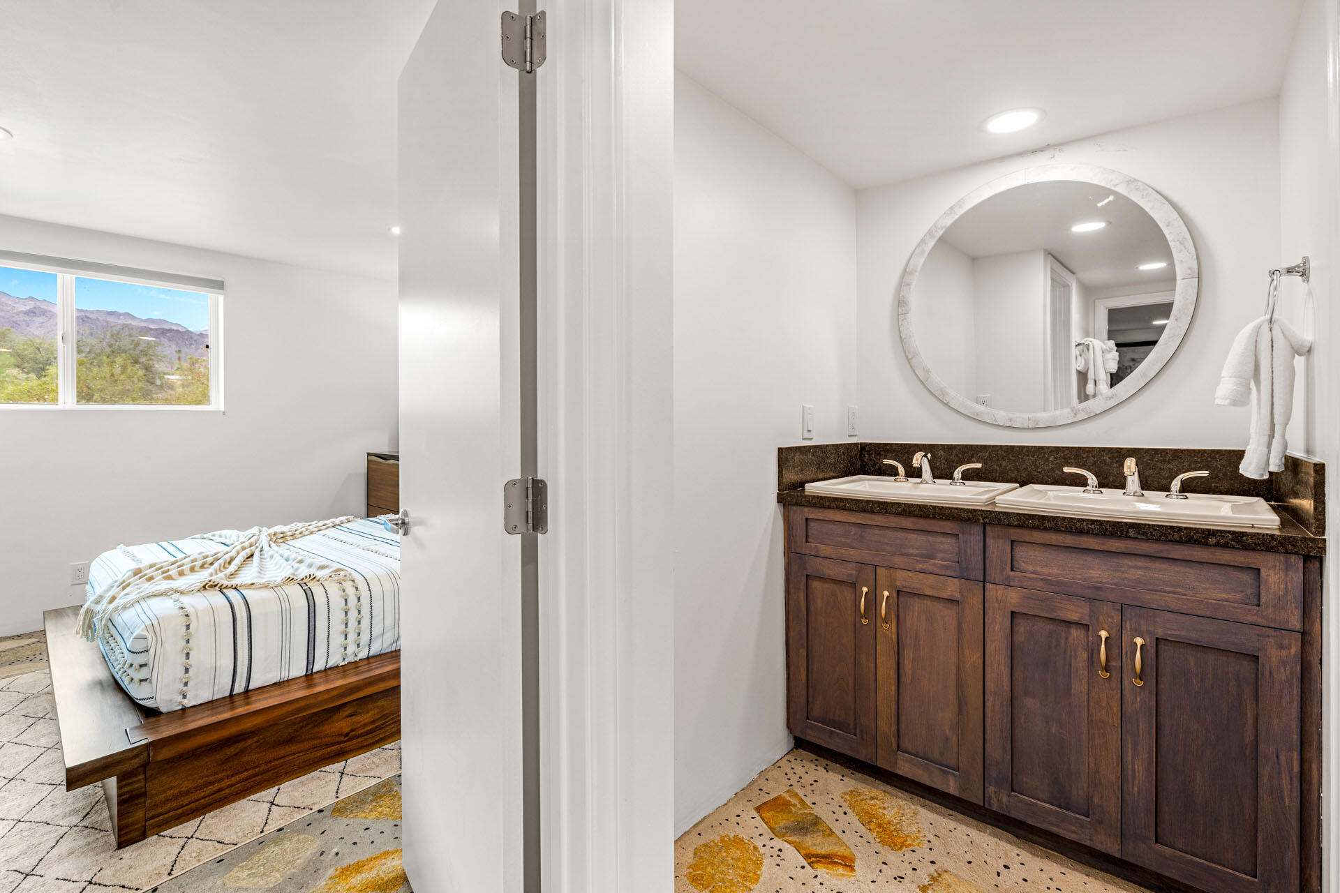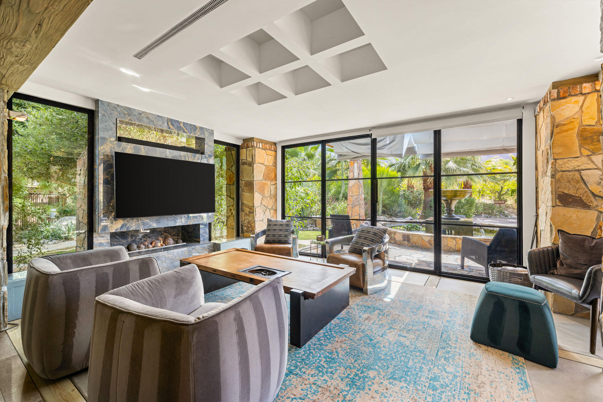 Extraordinary 6 bedrooms, 5.5 bath, 1.36 acre private desert oasis. Extremely secluded with private gates, cobblestone walkways, lush gardens, fountains, private pool, fire pits and stunning mountain views. The main house features an open floorplan with walls of glass, living area, gourmet kitchen with Italian appliances from Bertazzoni, and dining room with wet bar. The suites are arranged between three separate structures. The main house features 2 spacious bedroom en-suites each with doors to the pool. The detached 2 bedroom, 1 bath lower guest house has bedrooms three and four, and share a jack n Jill bathroom. A detached Casita has the fifth ensuite bedroom. A beautifully restored 1948 Spartan Aircraft Trailer measuring 25 feet is home to suite six, with a bedroom and full bath. The game room is in a temperature controlled garage, and features doors that completely open up the game room to the side yard, with ping pong, foosball, shuffleboard. The landscaping makes this hideaway feel like a private paradise, mature cactus, ficus, palms, trailing bougainvillea and the incredible mountains, all add to the magic of this very special property. Located in the exclusive Cahuilla Hills area of Palm Desert with El Paseo just a couple miles away. Theaters, spas, hiking trails, golf courses and tennis are also close by. No short term rental restrictions.Interested in this Listing?