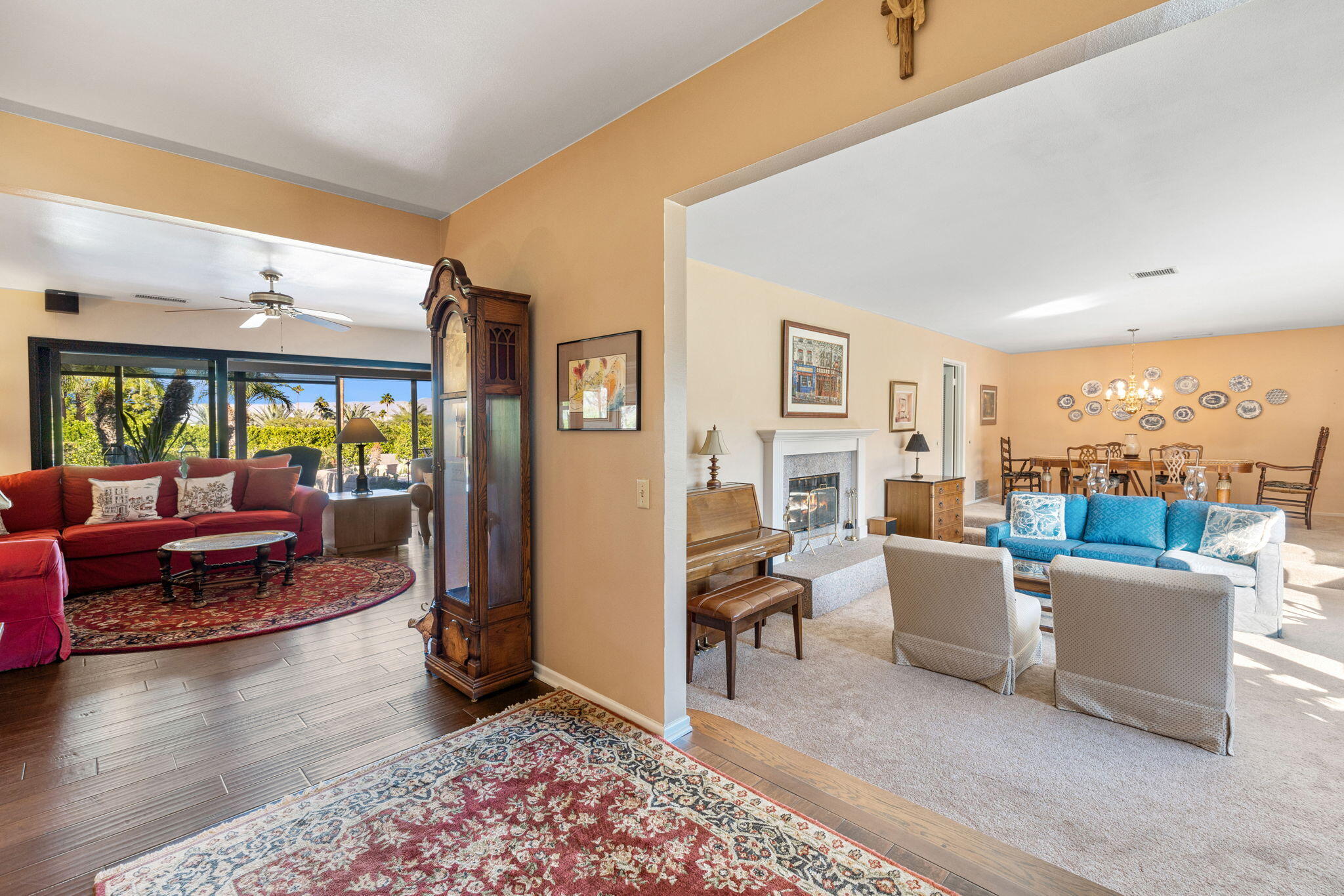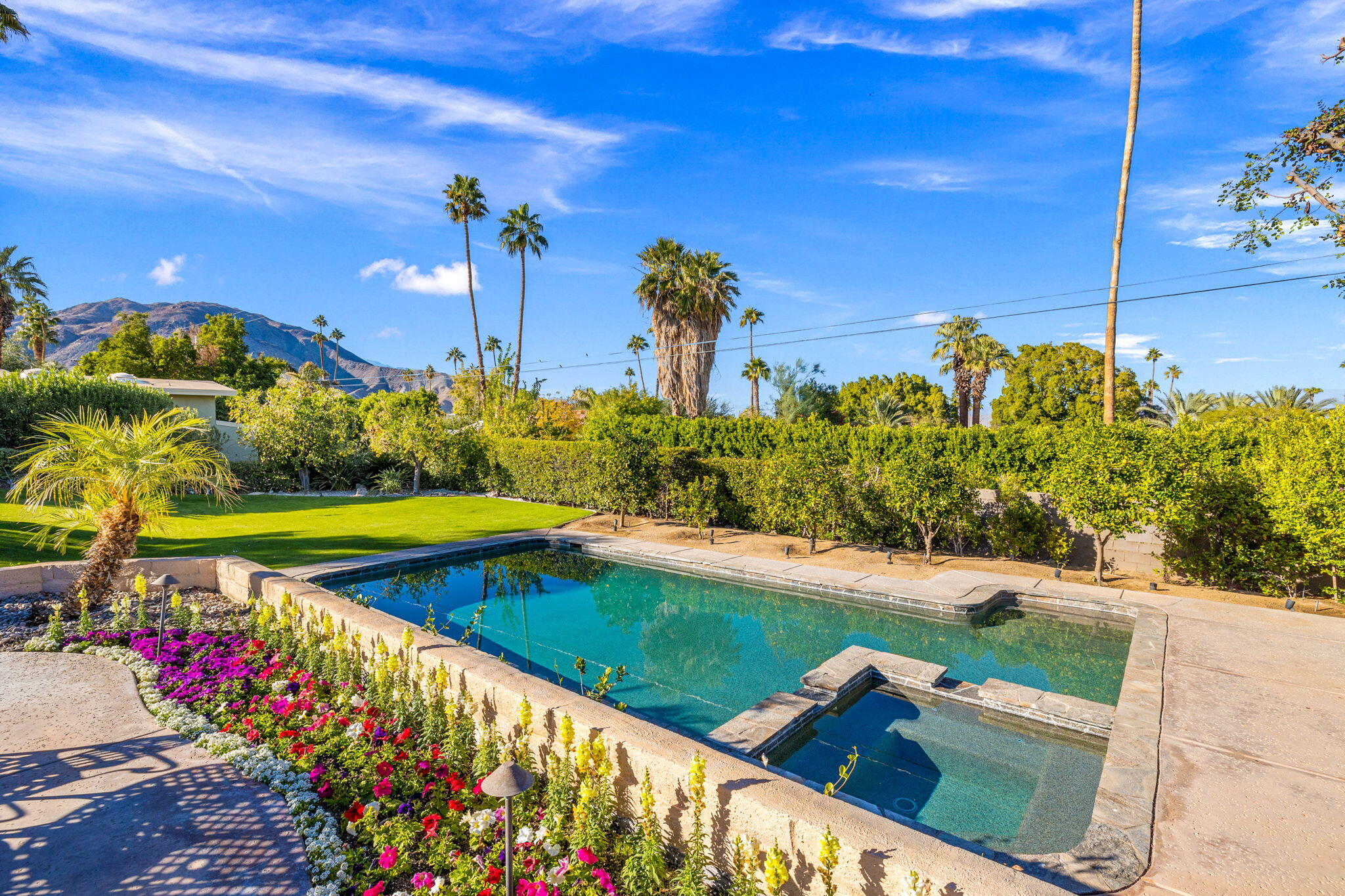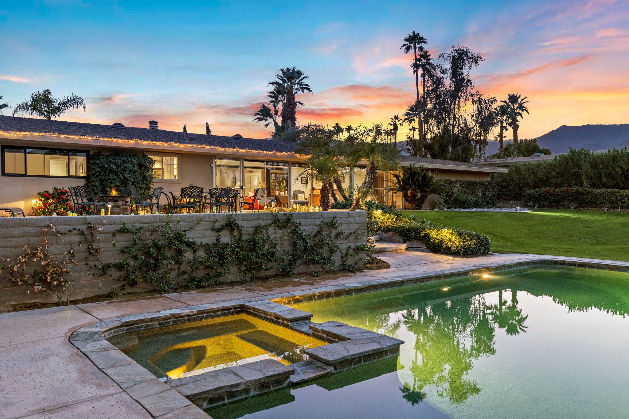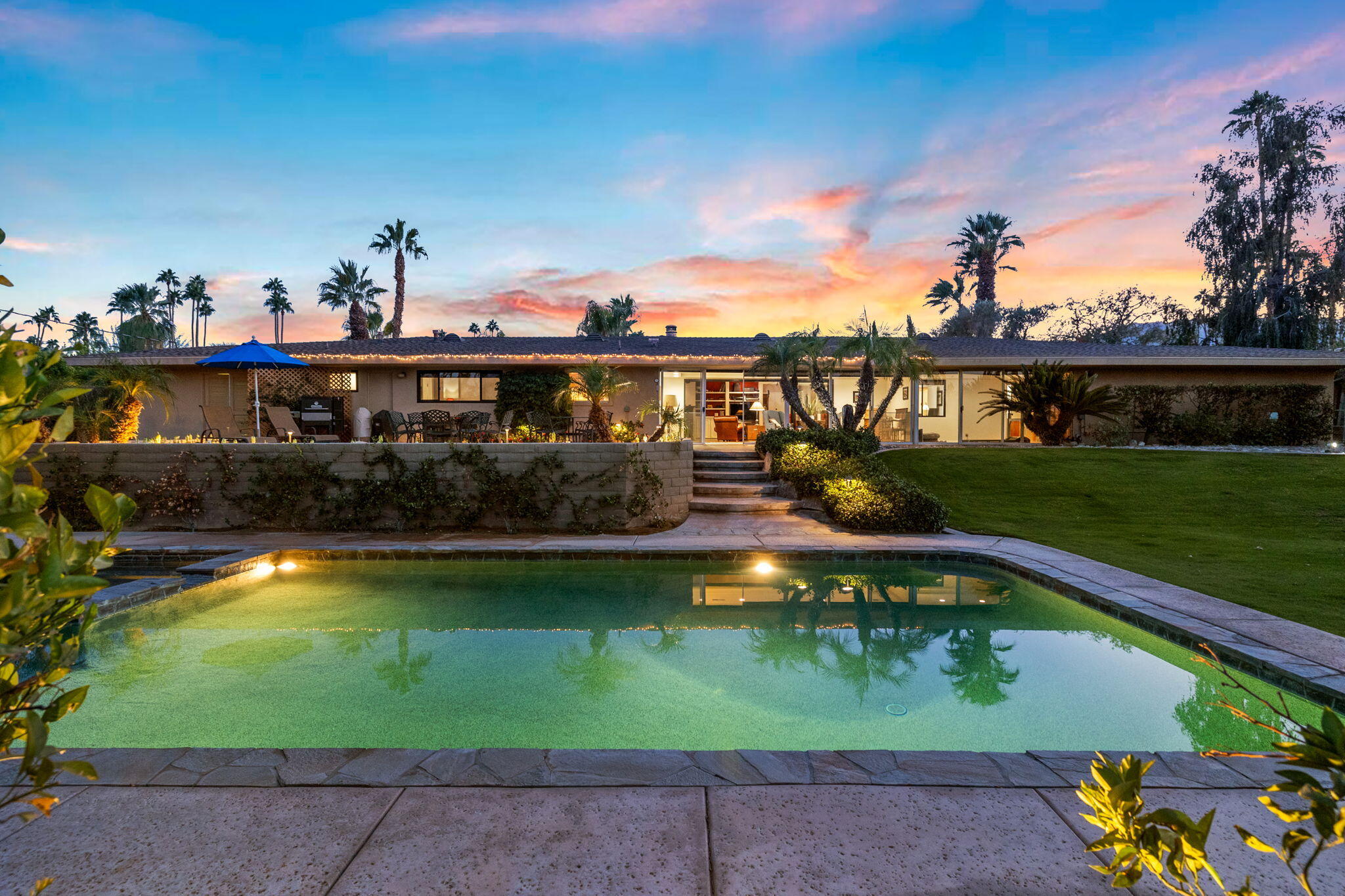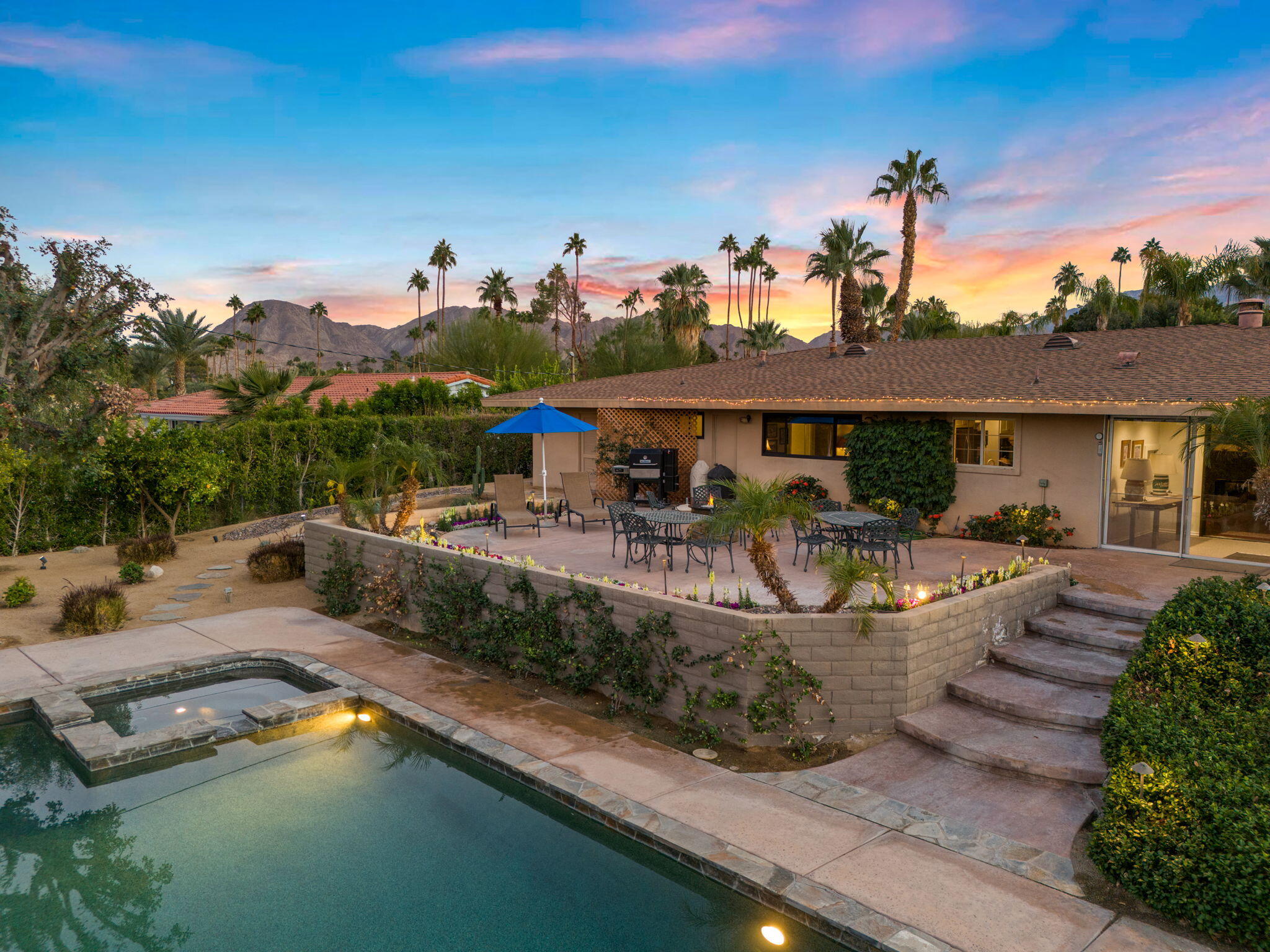 Back on the market. This is a rare opportunity to own a beautiful 1965 ranch house built in the early days of the Palm Desert community! This home has great curb appeal and is on a prime south location of a 0.41-acre site. The 4 Bedroom 3 Bath 2,837 sqft home has been upgraded and improved in its history. Features include a remodeled Kitchen with stainless steel appliances, double Frigidaire Ovens, double LG and Bosch dishwashers, LG refrigerator, Sharp microwave, Dacor Induction stovetop, all new country soft-close cabinets, new limestone backsplash and new leather-finished granite countertops. The Family room/Kitchen has hardwood floors and a two-way fireplace. A former covered patio was modified to be enclosed with HVAC and electrical service. Additional features of this entertainment friendly home includes a Living room with formal dining, a large laundry room, and a workout room off the Master BR. The Garage is oversized with room for 3 vehicles and is extra wide for your storage needs. The outdoor space is wonderful for gatherings or just lounging with a large Pebble Tech finish Pool and Spa, lots of patio space for outdoor dining, a large grass yard ideal for pets and numerous exotic Orange, lime and lemon fruit trees. Palm Desert is the place to be with world class shopping, schools, restaurants, golf courses, Theatres and sports arenas all within a very few miles of this beautiful indoor-outdoor home at an unbeatable location.Interested in this Listing?