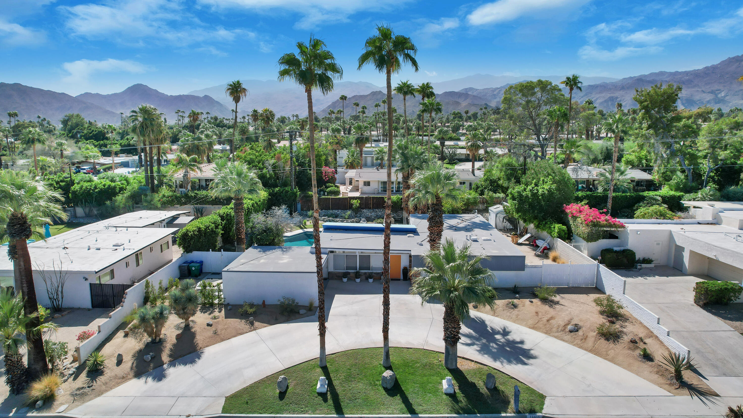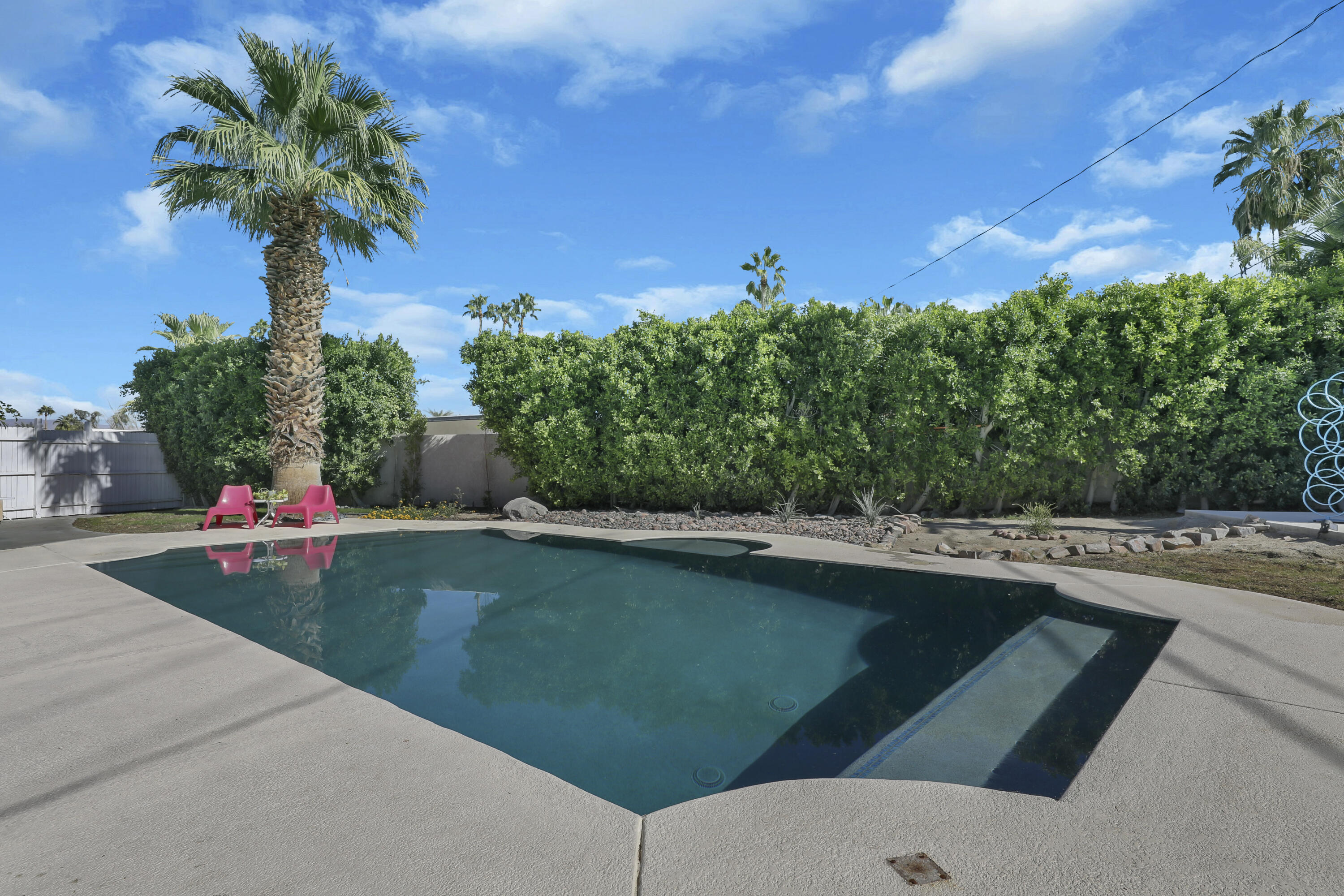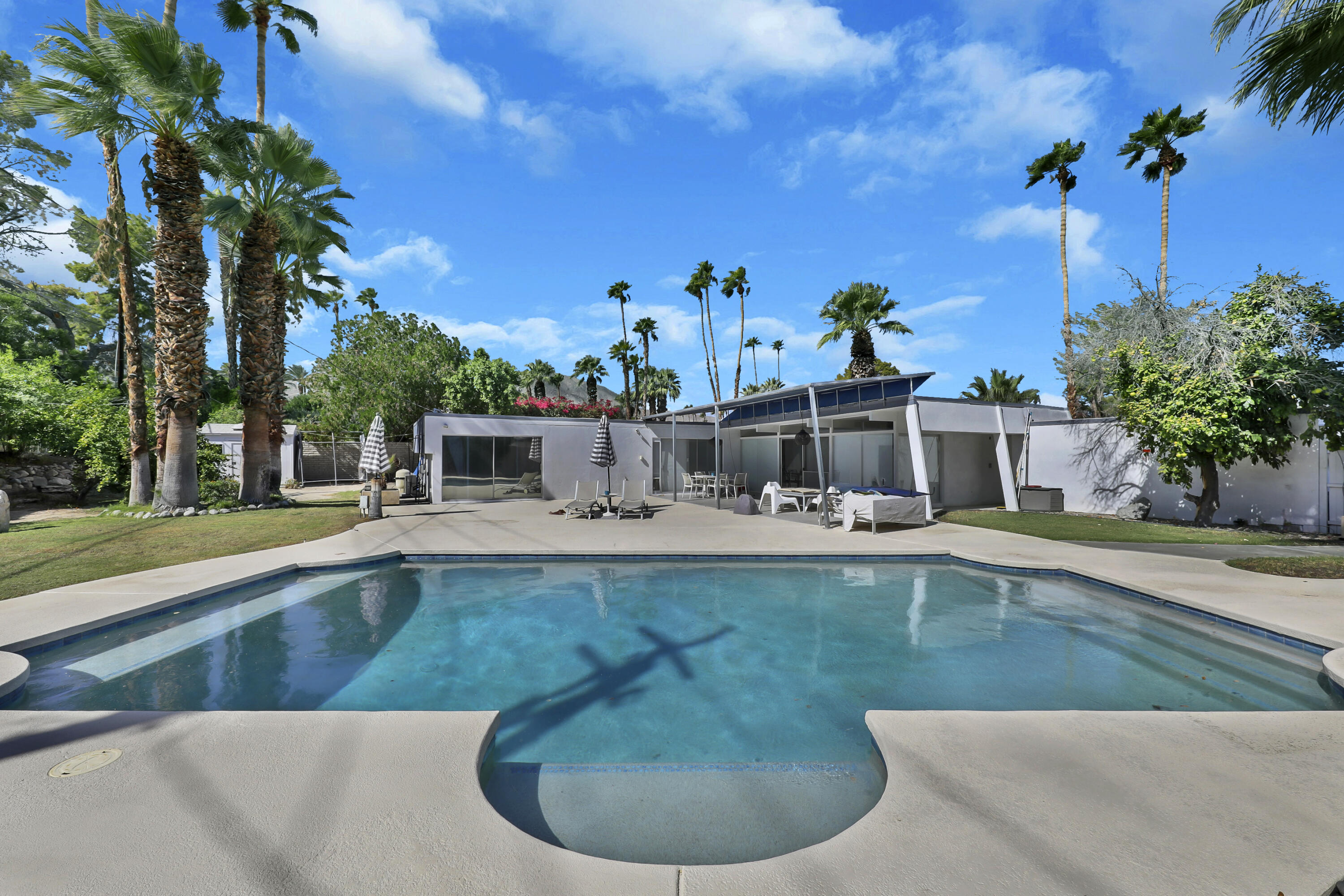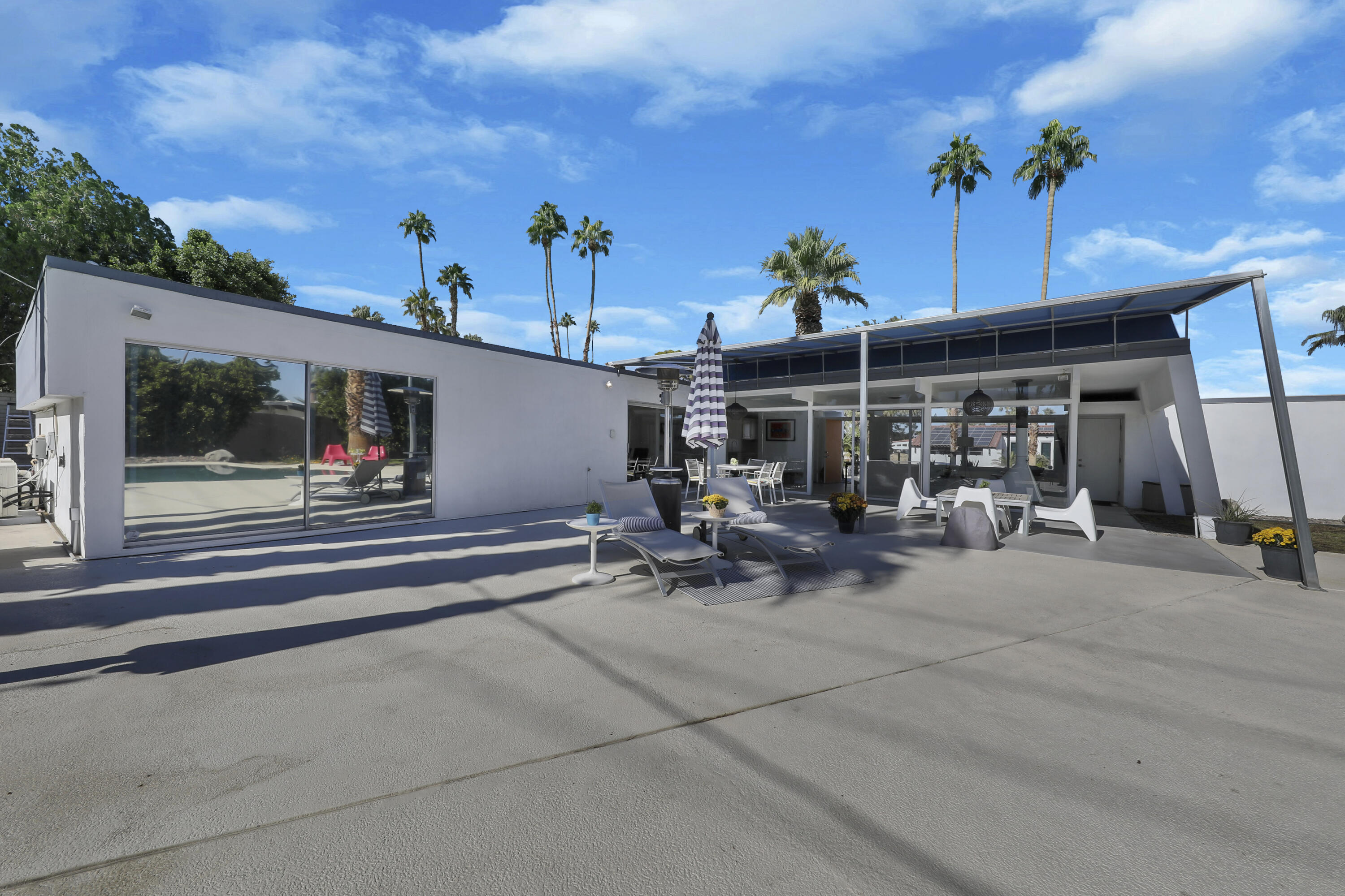 This MID CENTURY POST AND BEAM is ready to be taken to the next level. The property features a new foam roof, resurfaced pool with pebble finish, and new HVACs. Additionally, there is a new awning, resurfaced pool decking and new variable speed pool pump. There is a wonderful sense of arrival with floor to ceilings windows providing a spectacular view of the outdoors. Inside you'll find redone concrete floors with gray overlay, new kitchen appliances and 22' of counter space to display all incredible treats for your guests. Imagine outdoor entertaining - there's a large 18x36 pool, covered patio with misting, a pool deck with plenty of space for recliners, jacuzzi or firepit and a natural gas hookup for grilling. The private oversized lot leaves many possibilities to make your own special retreat. Location, Location, Location - the El Paseo shopping and restaurants are close by. South Palm Desert is still the most desirable neighborhoods in Palm Desert.Interested in this Listing?