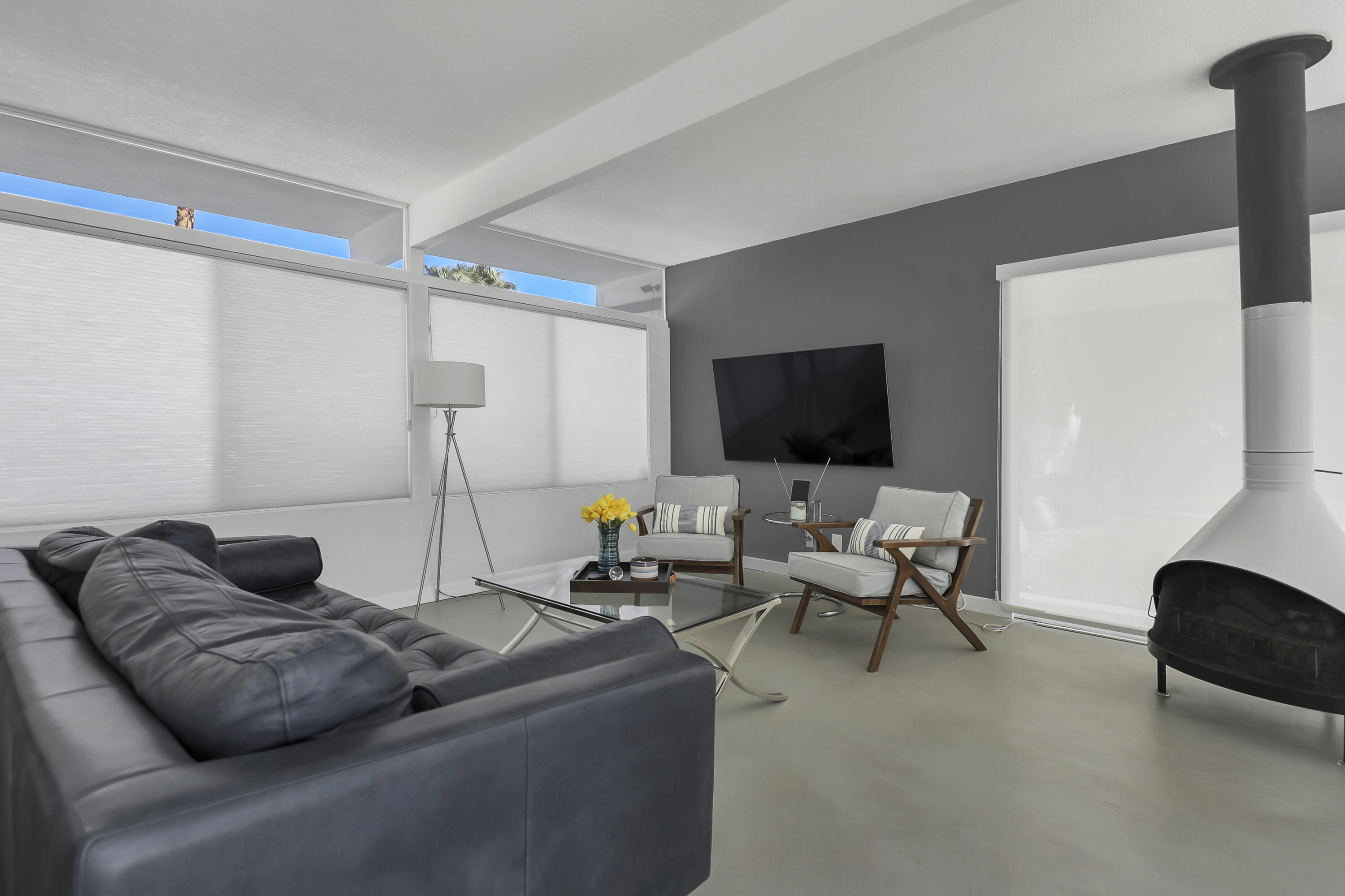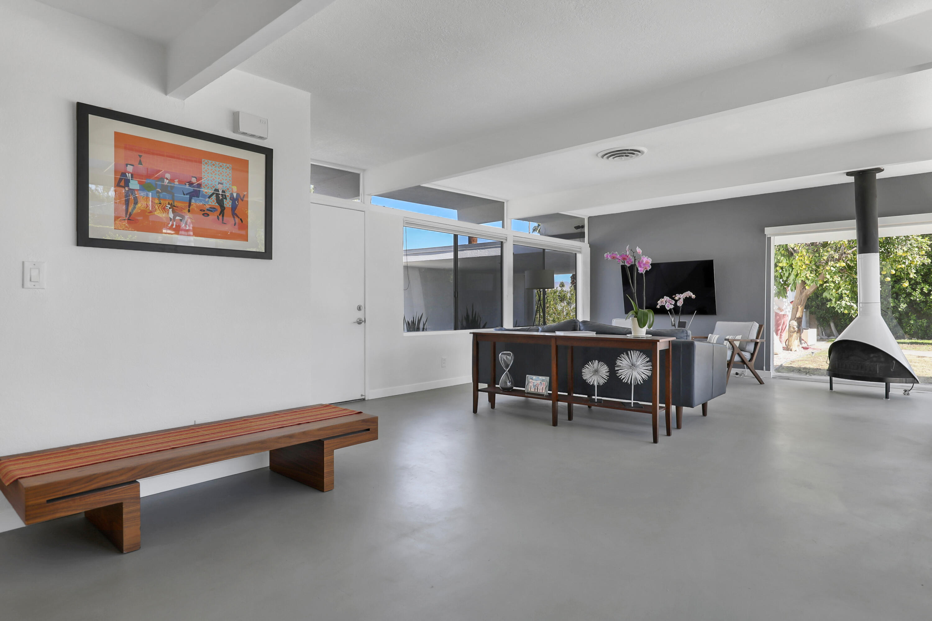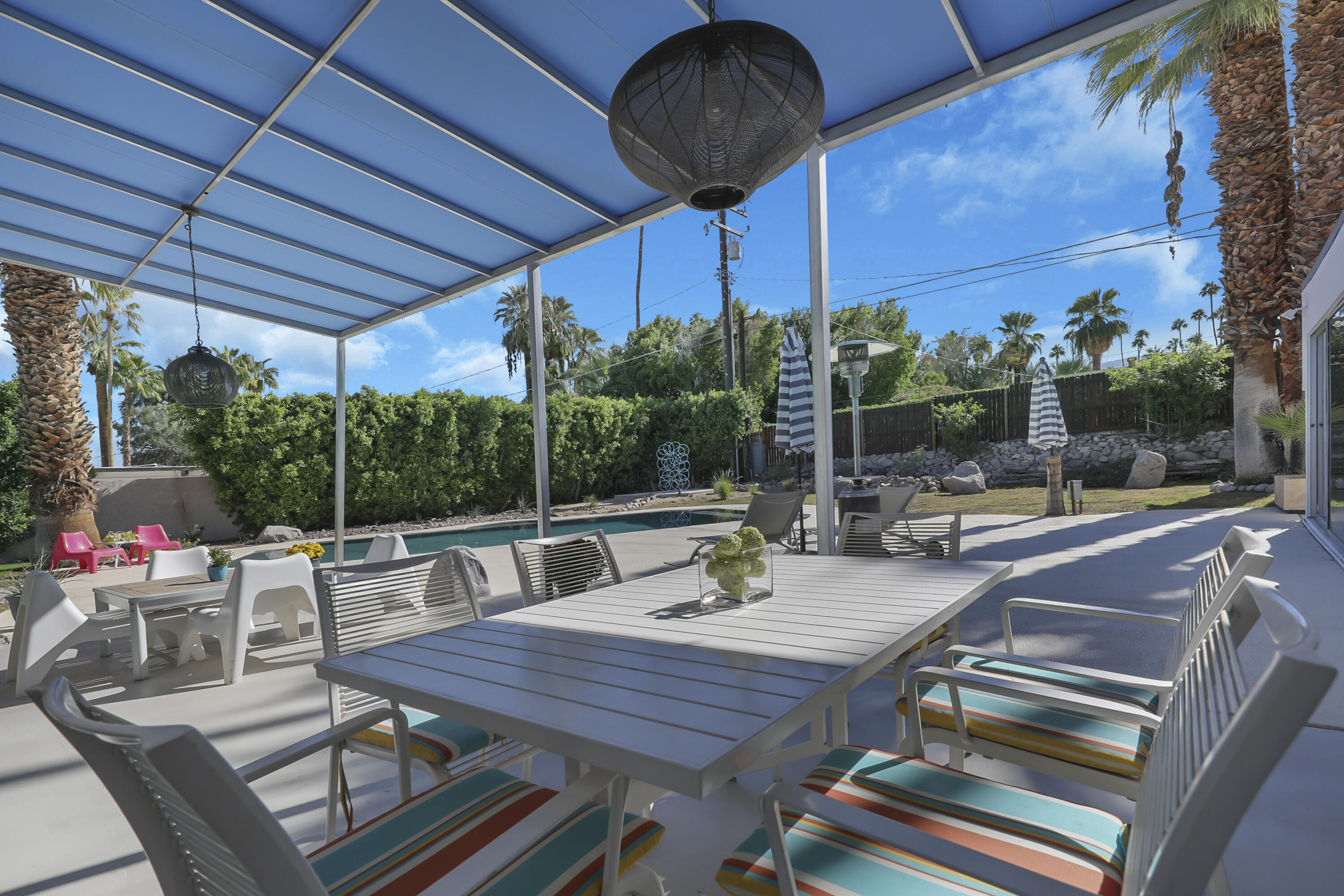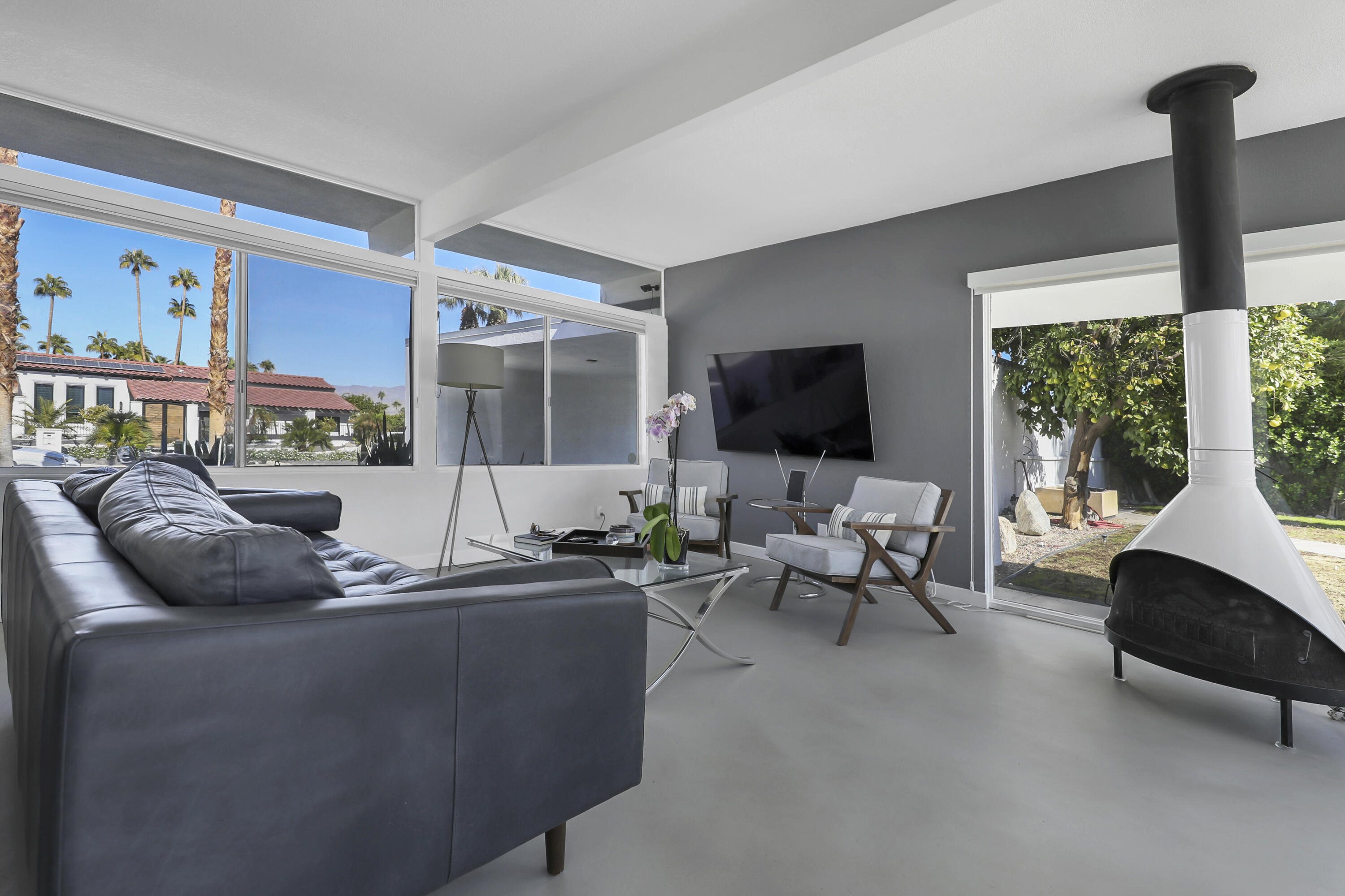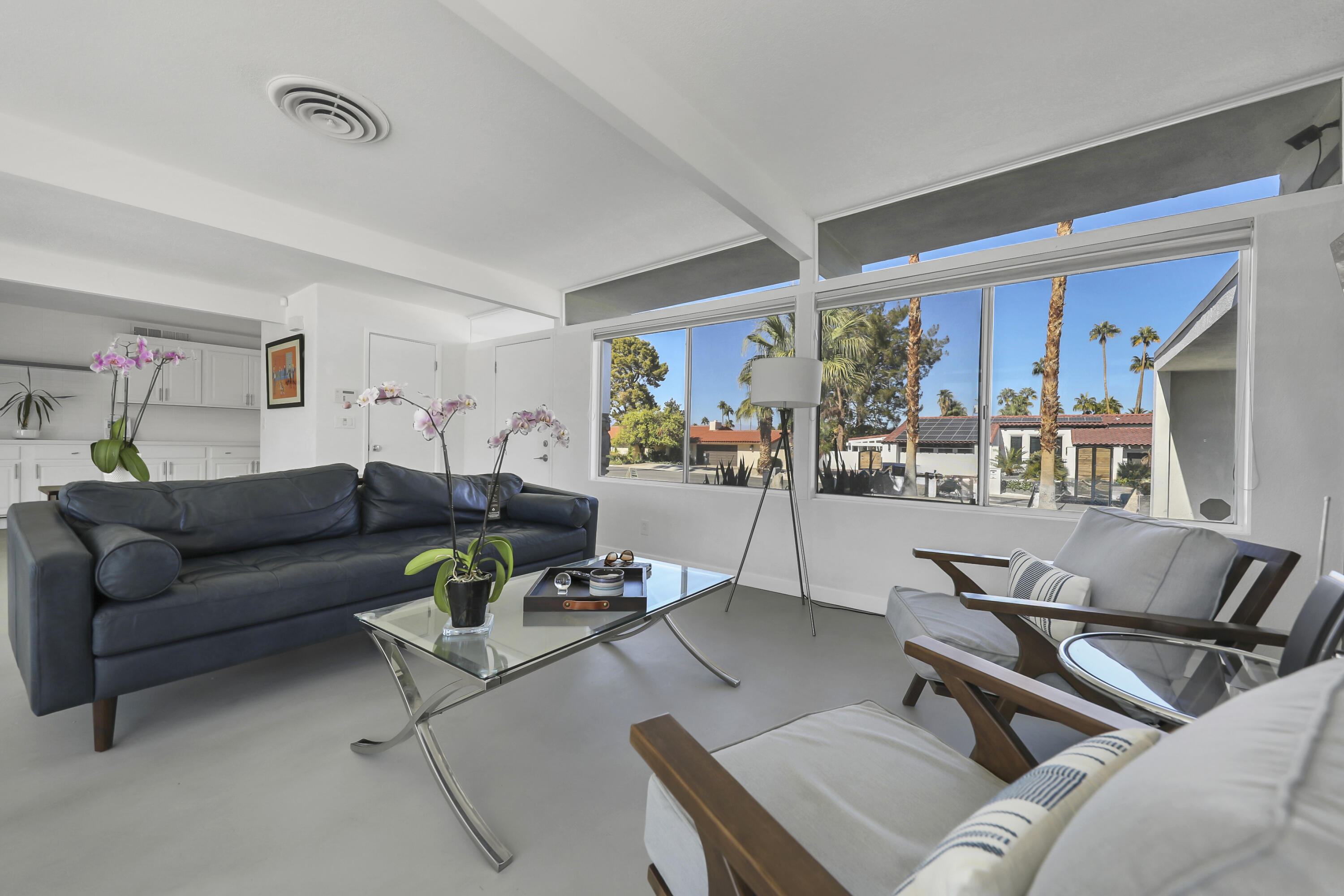 This MID CENTURY POST AND BEAM is ready to be taken to the next level. The property features a new foam roof, resurfaced pool with pebble finish, and new HVACs. Additionally, there is a new awning, resurfaced pool decking and new variable speed pool pump. There is a wonderful sense of arrival with floor to ceilings windows providing a spectacular view of the outdoors. Inside you'll find redone concrete floors with gray overlay, new kitchen appliances and 22' of counter space to display all incredible treats for your guests. Imagine outdoor entertaining - there's a large 18x36 pool, covered patio with misting, a pool deck with plenty of space for recliners, jacuzzi or firepit and a natural gas hookup for grilling. The private oversized lot leaves many possibilities to make your own special retreat. Location, Location, Location - the El Paseo shopping and restaurants are close by. South Palm Desert is still the most desirable neighborhoods in Palm Desert.Interested in this Listing?