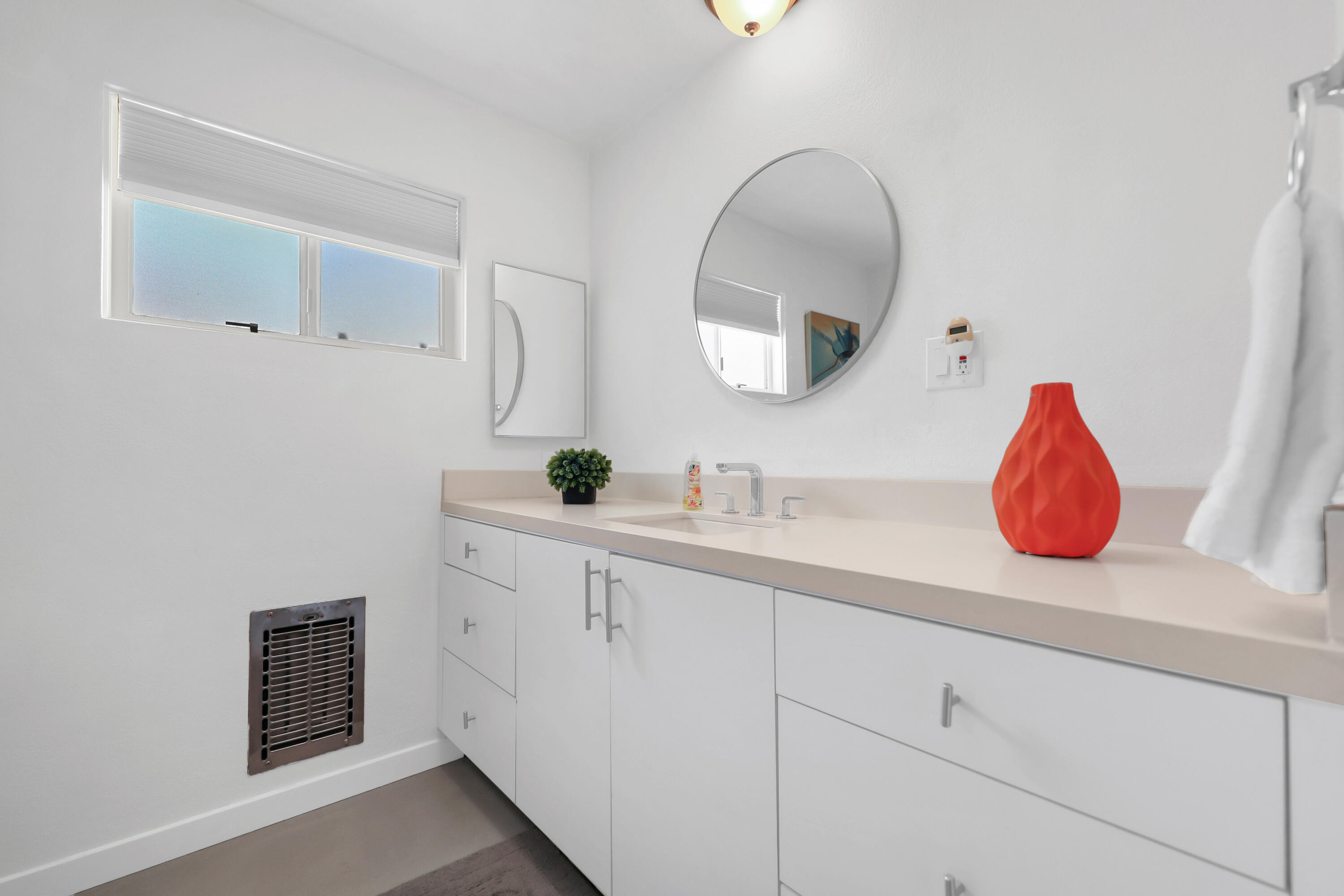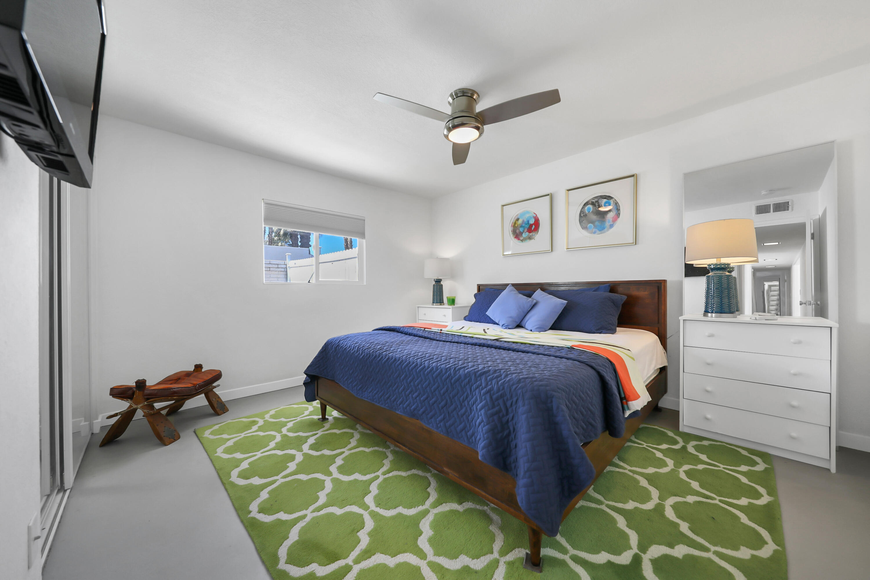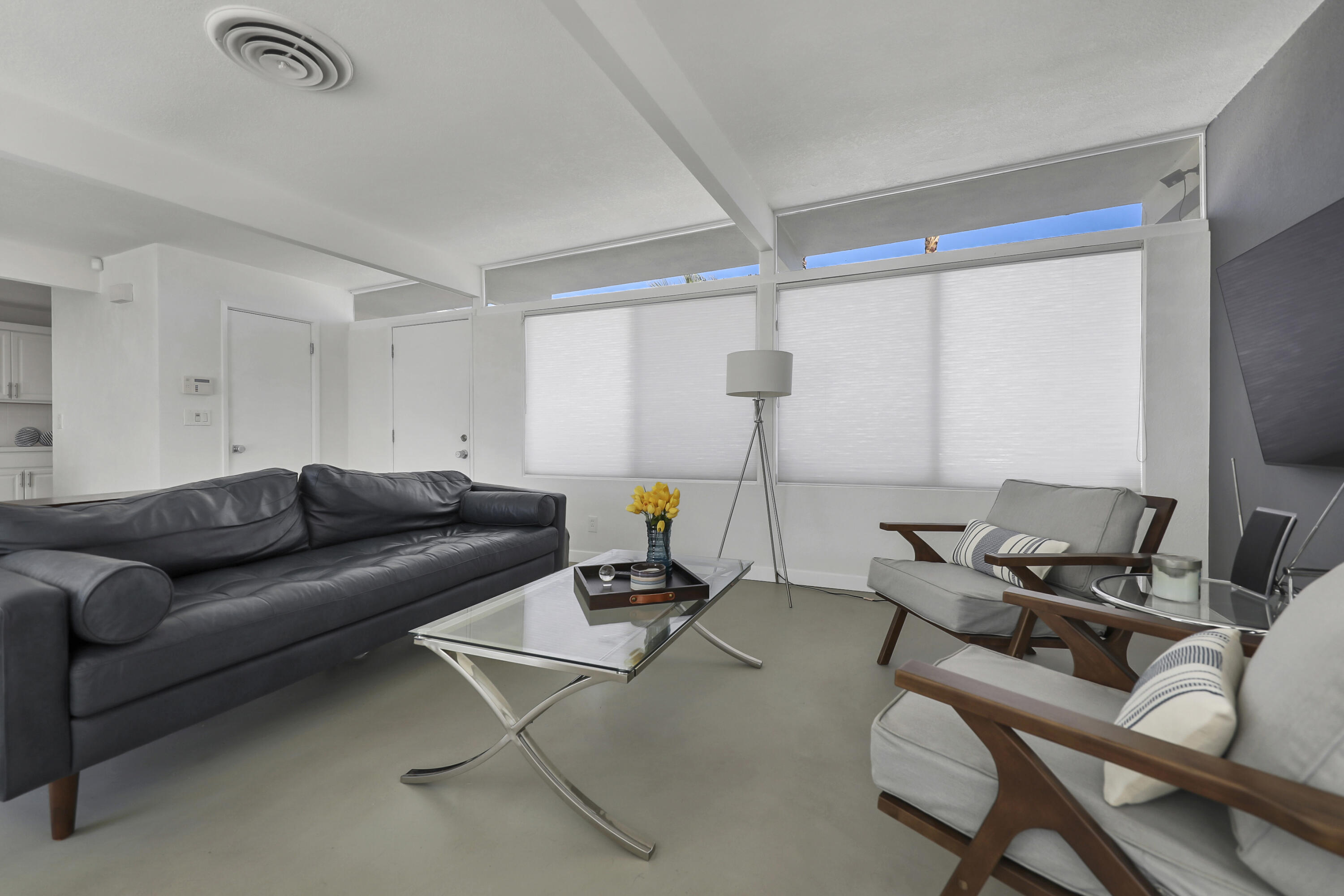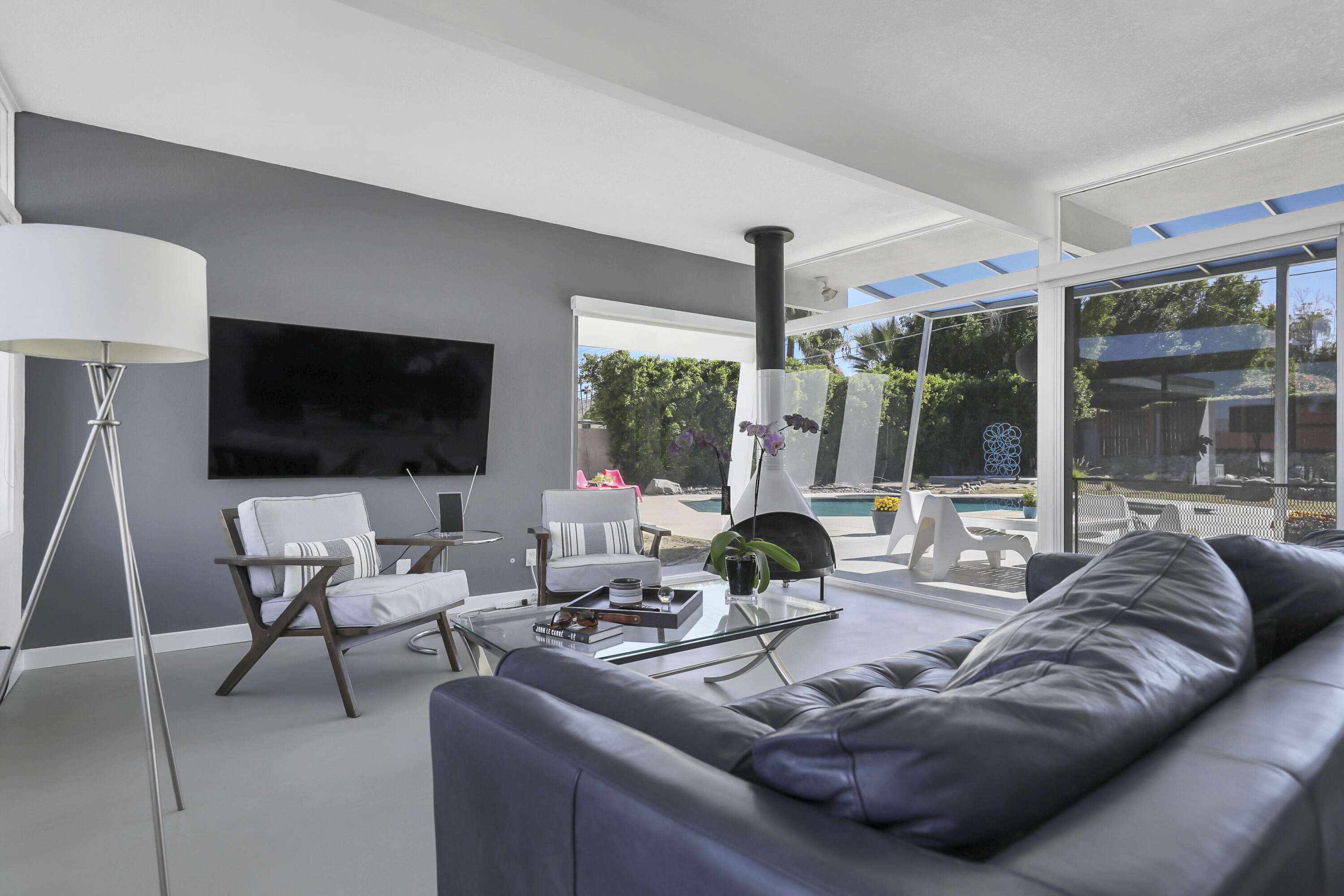 This MID CENTURY POST AND BEAM is ready to be taken to the next level. The property features a new foam roof, resurfaced pool with pebble finish, and new HVACs. Additionally, there is a new awning, resurfaced pool decking and new variable speed pool pump. There is a wonderful sense of arrival with floor to ceilings windows providing a spectacular view of the outdoors. Inside you'll find redone concrete floors with gray overlay, new kitchen appliances and 22' of counter space to display all incredible treats for your guests. Imagine outdoor entertaining - there's a large 18x36 pool, covered patio with misting, a pool deck with plenty of space for recliners, jacuzzi or firepit and a natural gas hookup for grilling. The private oversized lot leaves many possibilities to make your own special retreat. Location, Location, Location - the El Paseo shopping and restaurants are close by. South Palm Desert is still the most desirable neighborhoods in Palm Desert.Interested in this Listing?