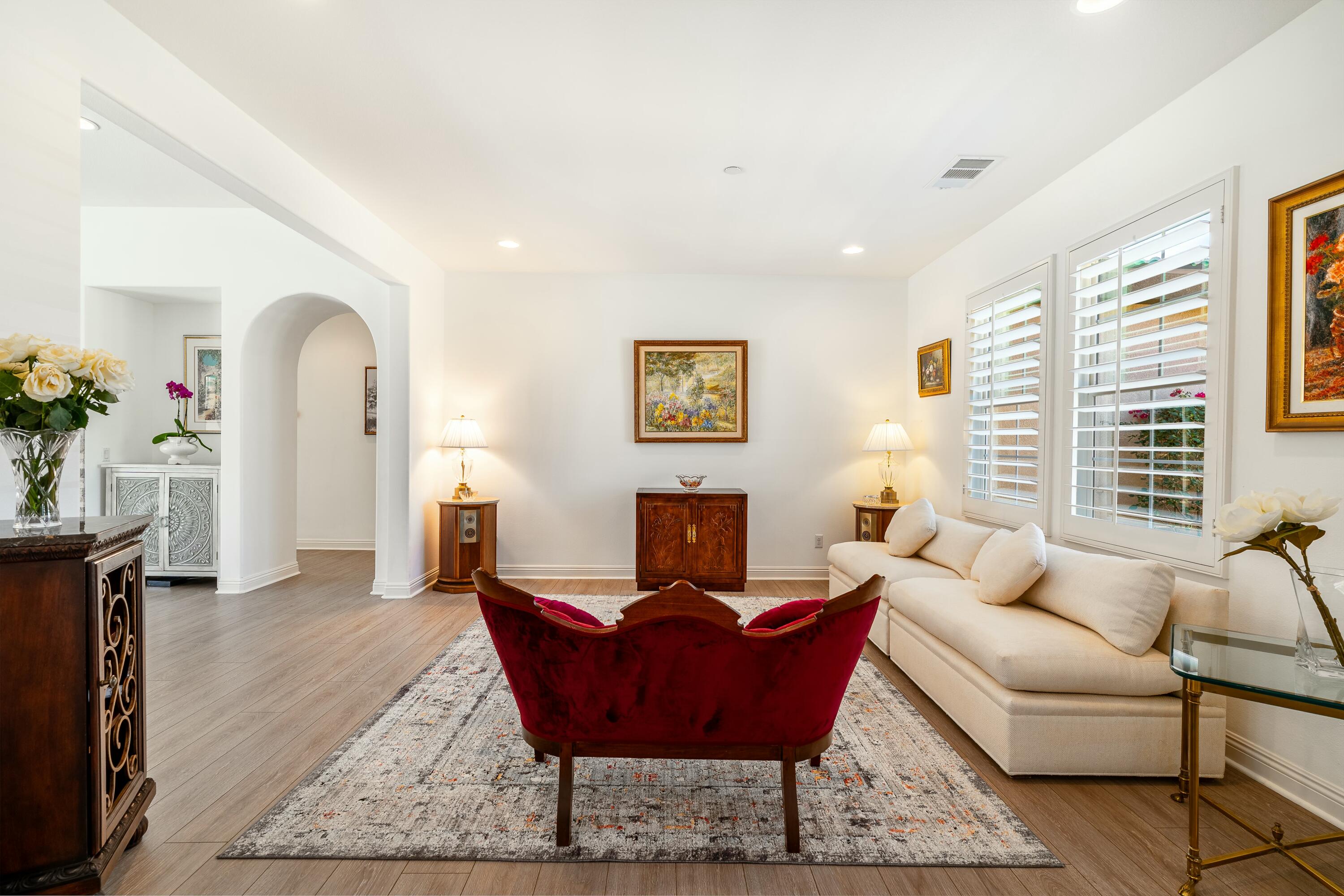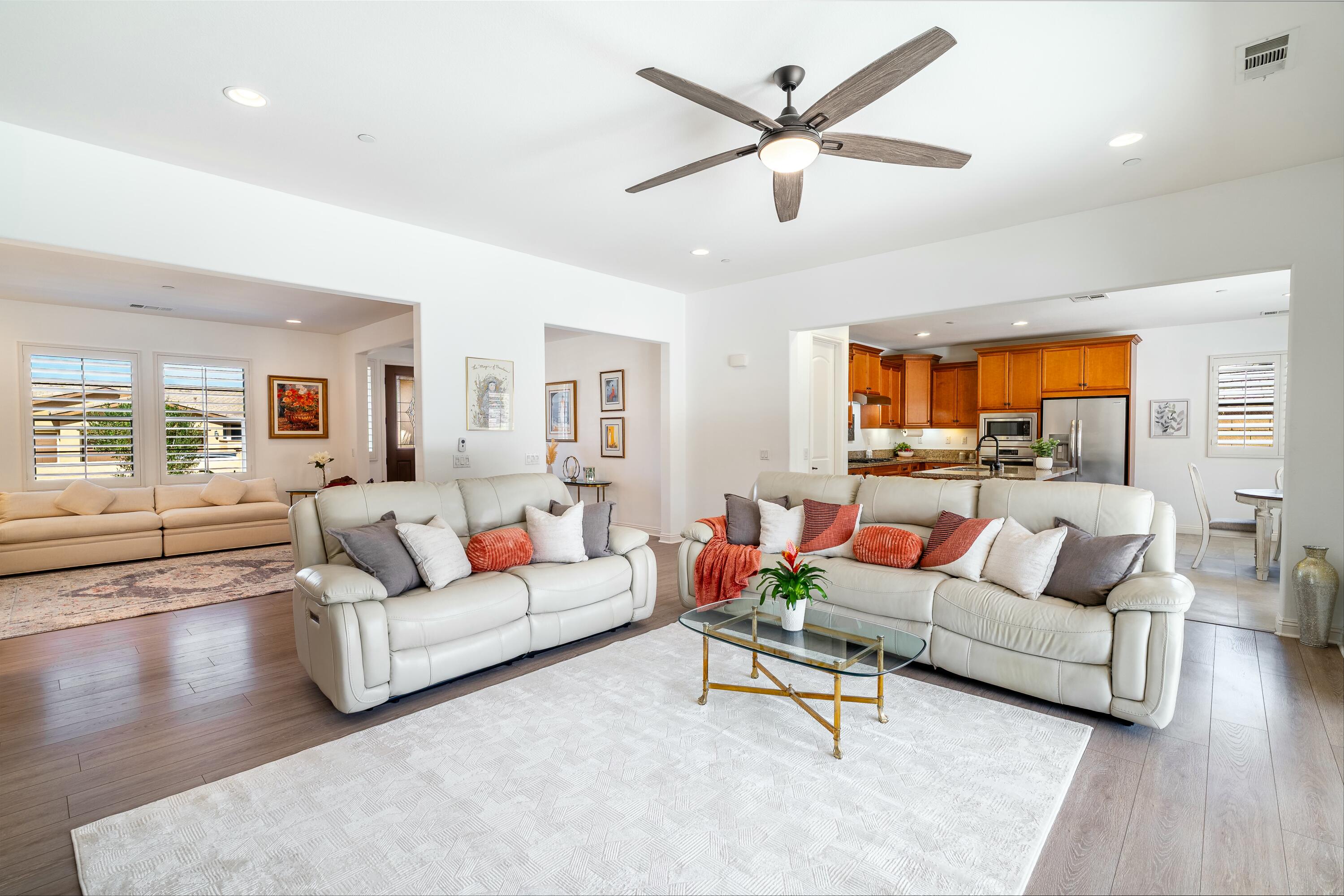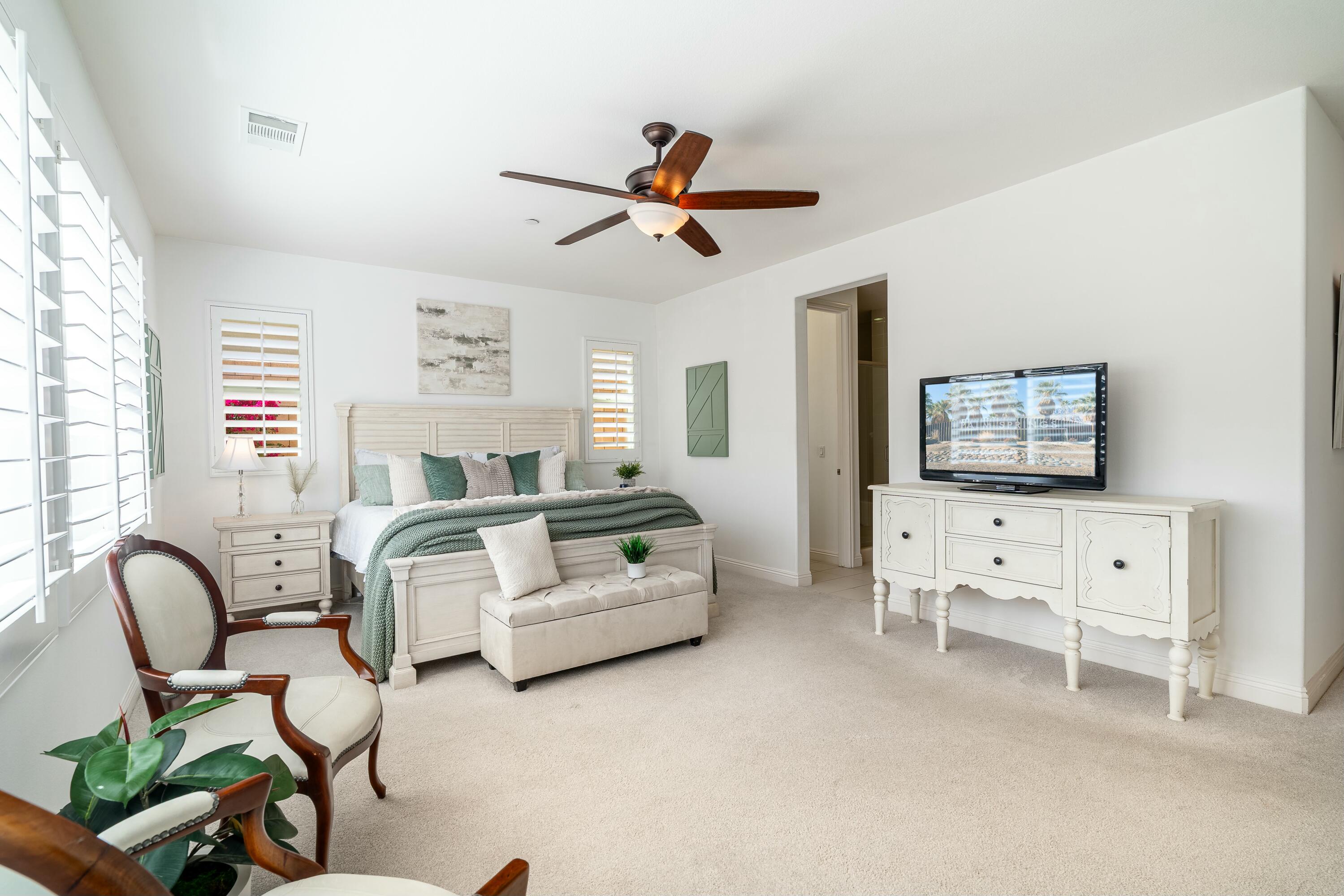 PRICE IMPROVEMENT! Located in the highly desirable community of The Gallery, this stunning home is centrally situated in Palm Desert, just minutes from El Paseo, premier shopping, dining, entertainment, and the highly anticipated Disney Cotino neighborhood.Nestled on an oversized lot, the backyard is a true oasis, featuring a Pebble Tec saltwater pool, a misting system, a spacious outdoor patio, and a cozy outdoor fireplace, perfect for entertaining or unwinding under the desert sky. OWNED solar panels provide energy efficiency and savings.Inside, the home showcases plantation shutters, new flooring, a whole-home water softener, and a custom front door, along with many other thoughtful upgrades that highlight true pride of ownership.Furnishings are negotiable to help ensuring an effortless transition. Plus, enjoy low HOA dues, which include cable and internet.Don't miss this incredible opportunity--schedule your showing today!Interested in this Listing?