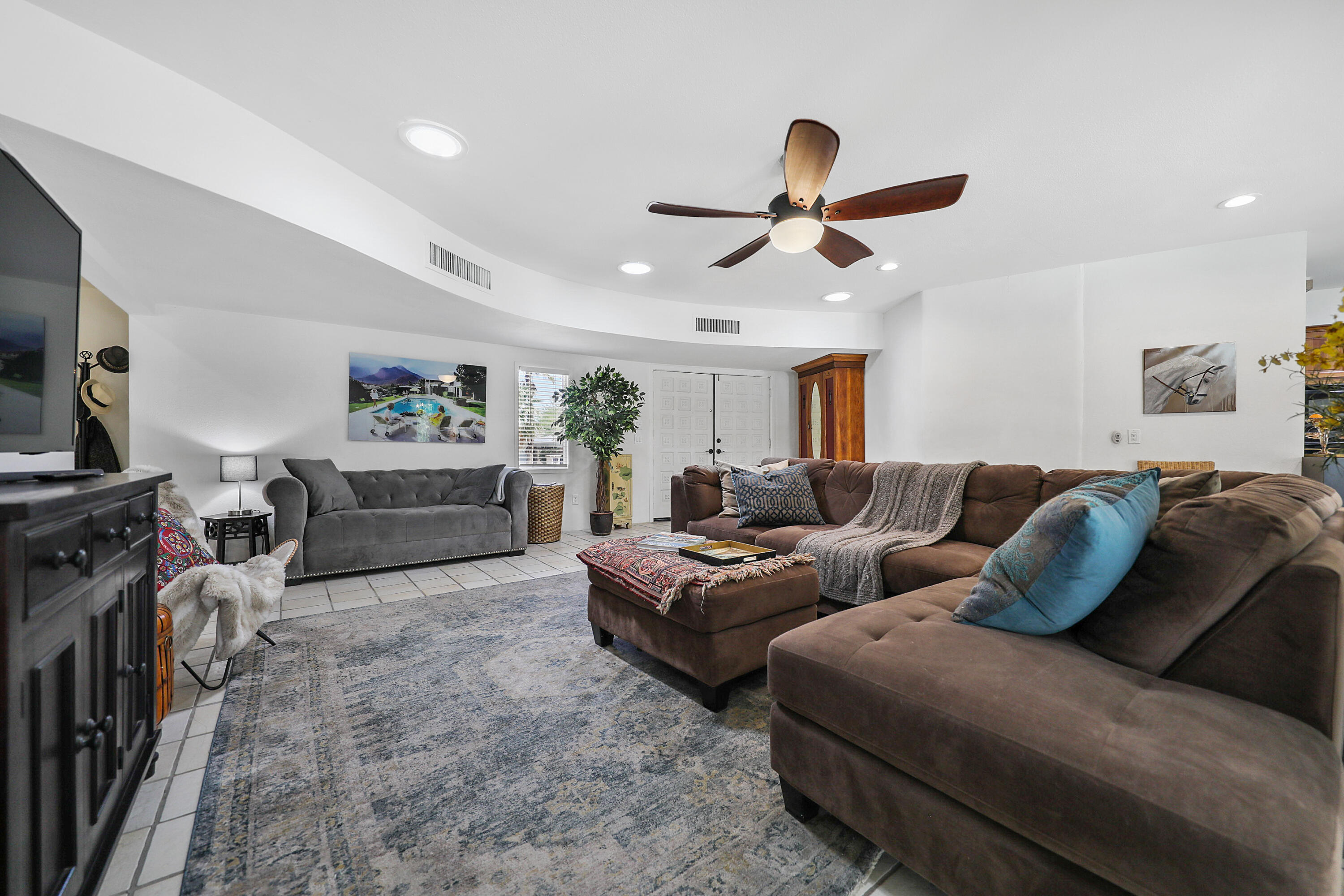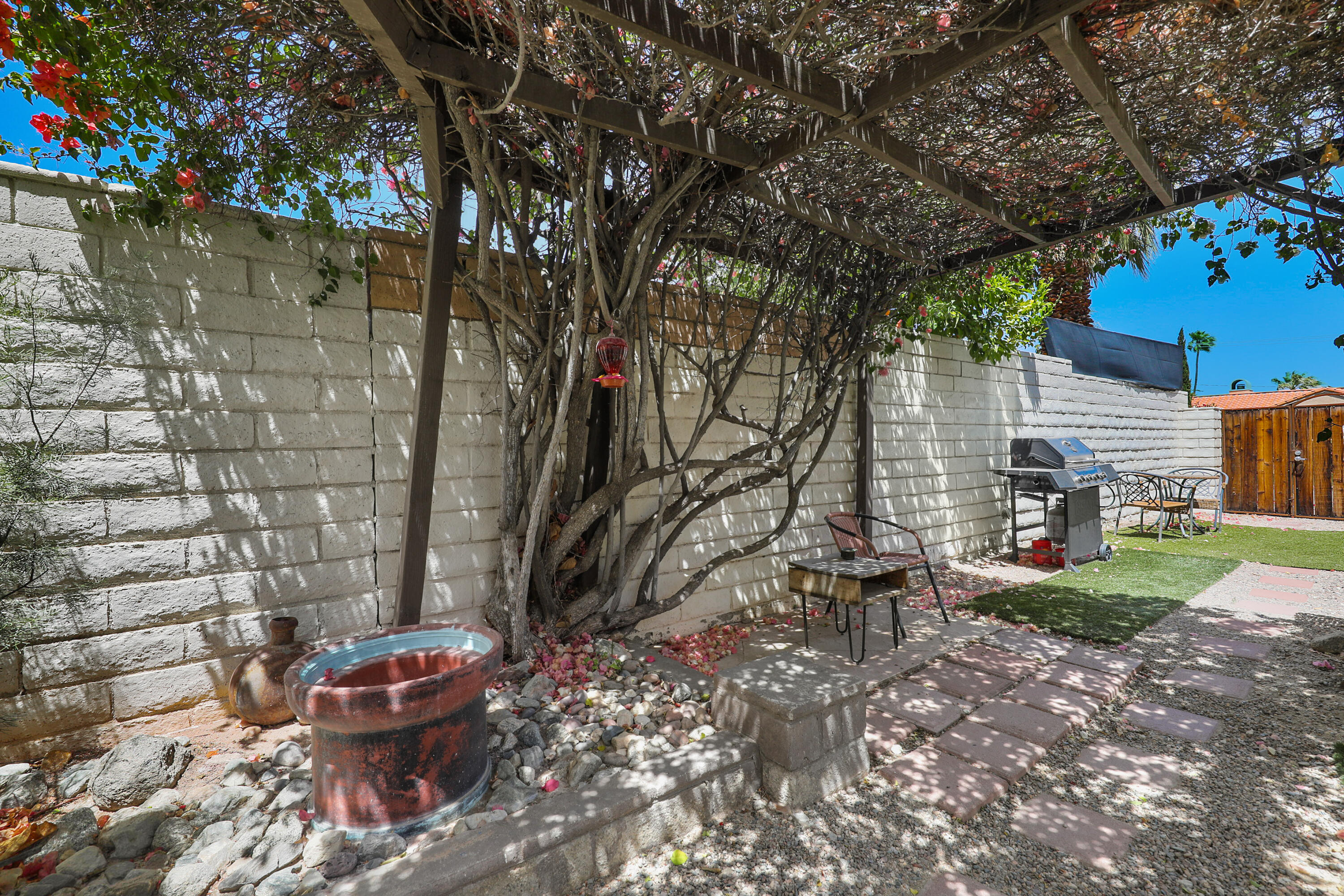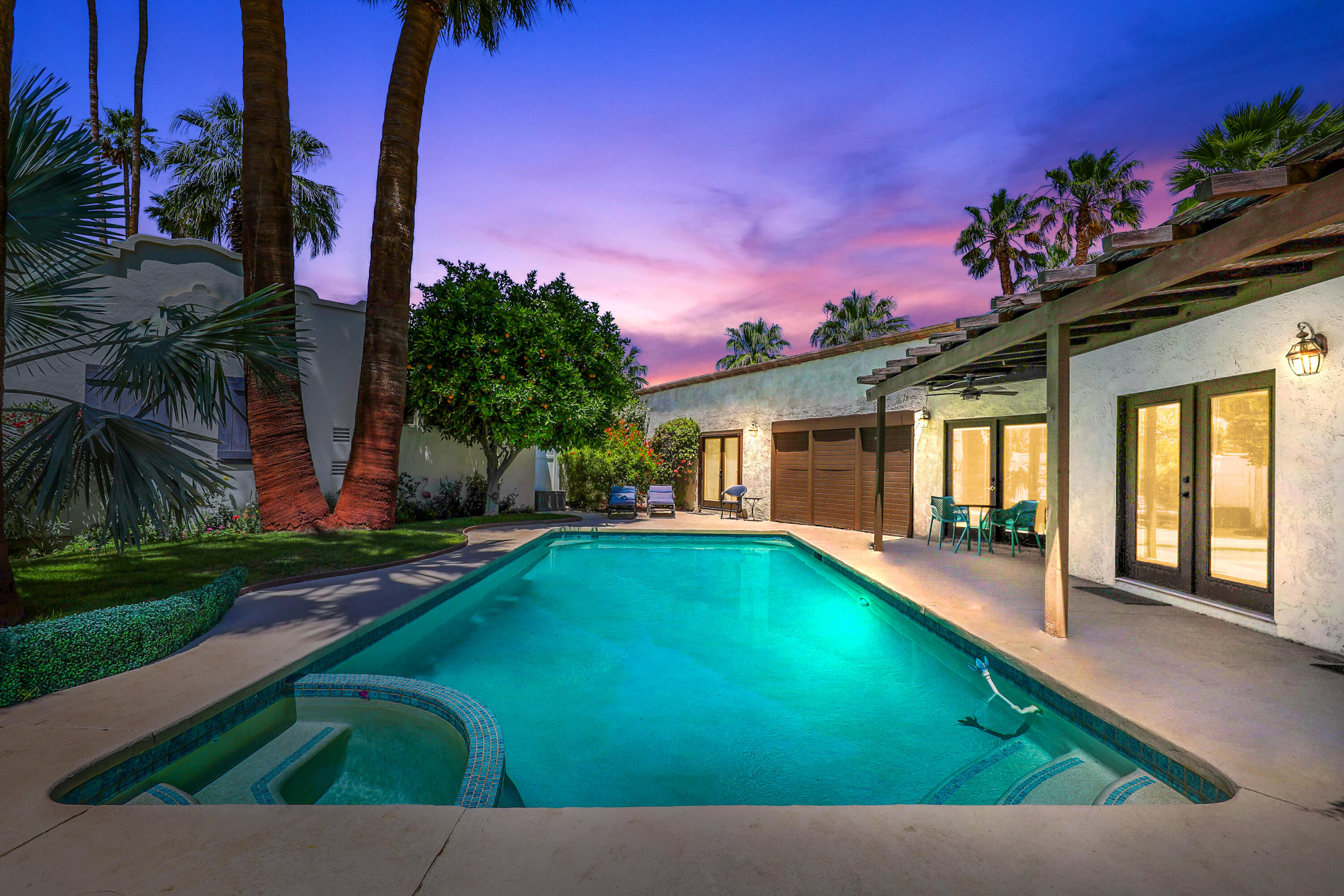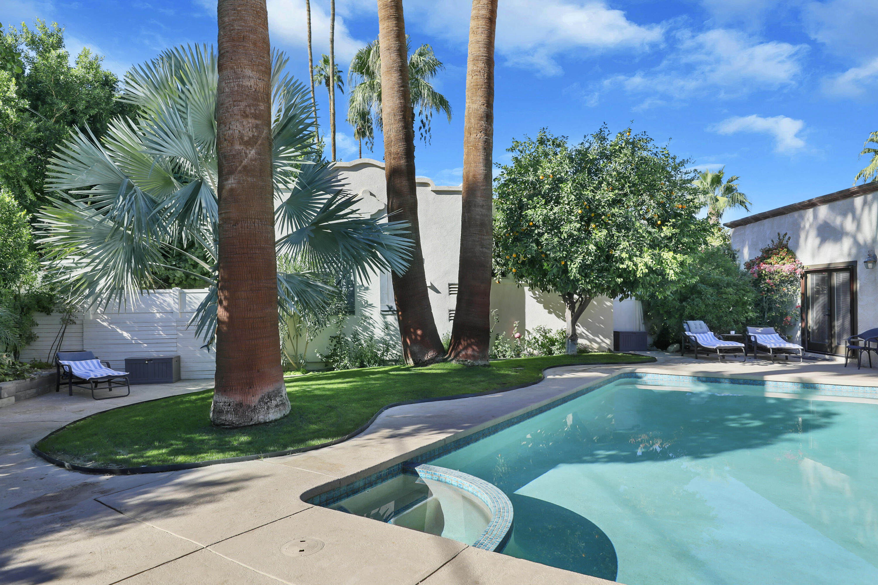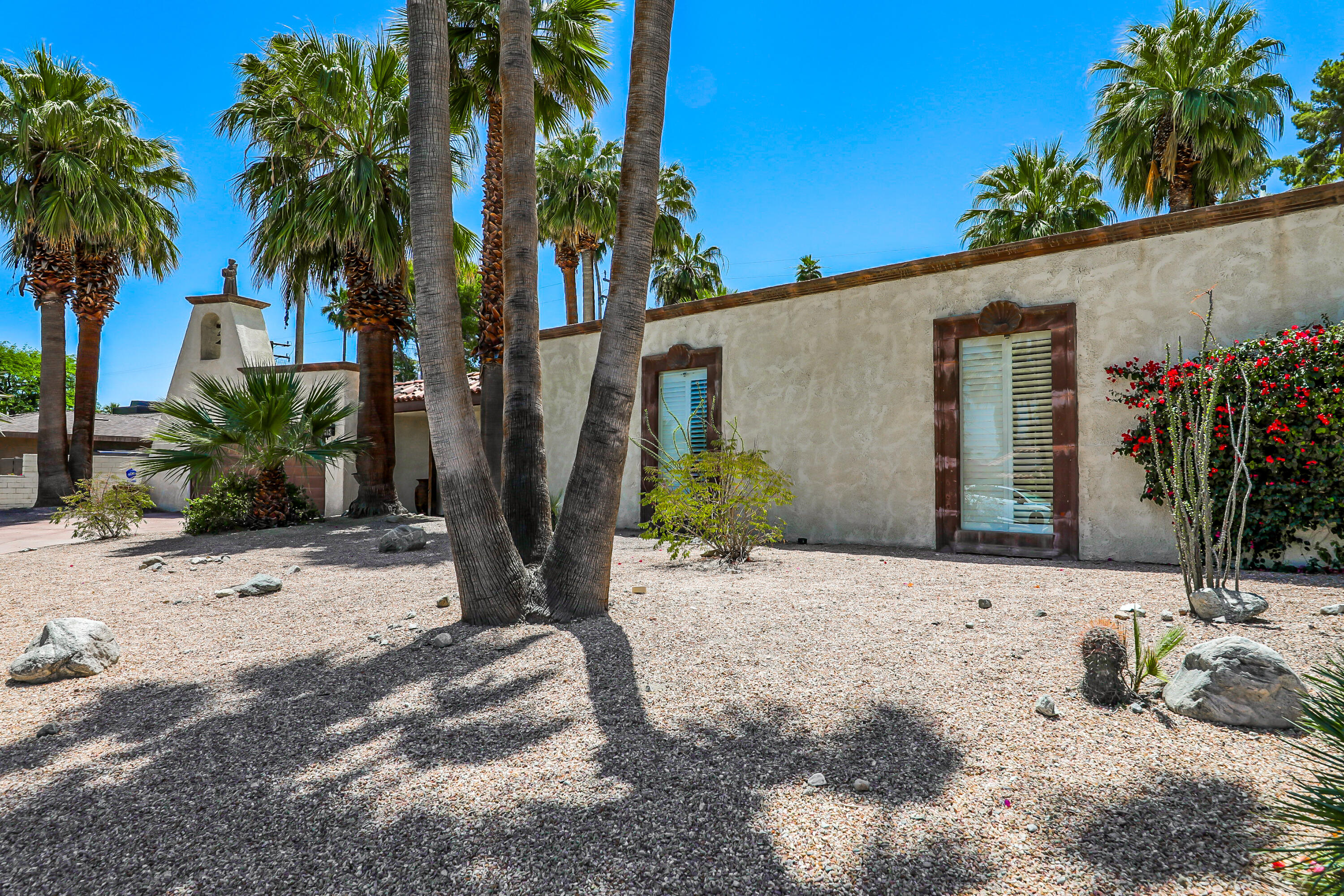 Beautiful, majestic Mission-style estate with a distinctive bell tower on an over 13,000 sq ft lot. The main residence has 3 bedrooms with 3 en suite bathrooms, abundant closets, including a second master suite that has a kitchenette and private entrance. Tucked away in the picturesque backyard, is a detached 1bd/1ba Mission-style casita with a kitchentte and stacked washer/dryer. This charming mini-dwelling boasts 10-foot ceilings and offers total privacy with it's own front and back courtyards. The versatility of this property is attractive for your guests, friends or renting out, if desired. Has a track record as a successful STR. The tranquil park-like backyard boasts a newly renovated pebbletec pool & spa, citrus trees, palm trees, a rose garden and more. Multiple windows and skylights let the sunshine in throughout. This sub-tropical paradise is located around the corner from El Paseo, 'the Rodeo Drive of the Desert' and convenient to everything you need. Call and make your appointment today to tour this exceptional property!Interested in this Listing?
