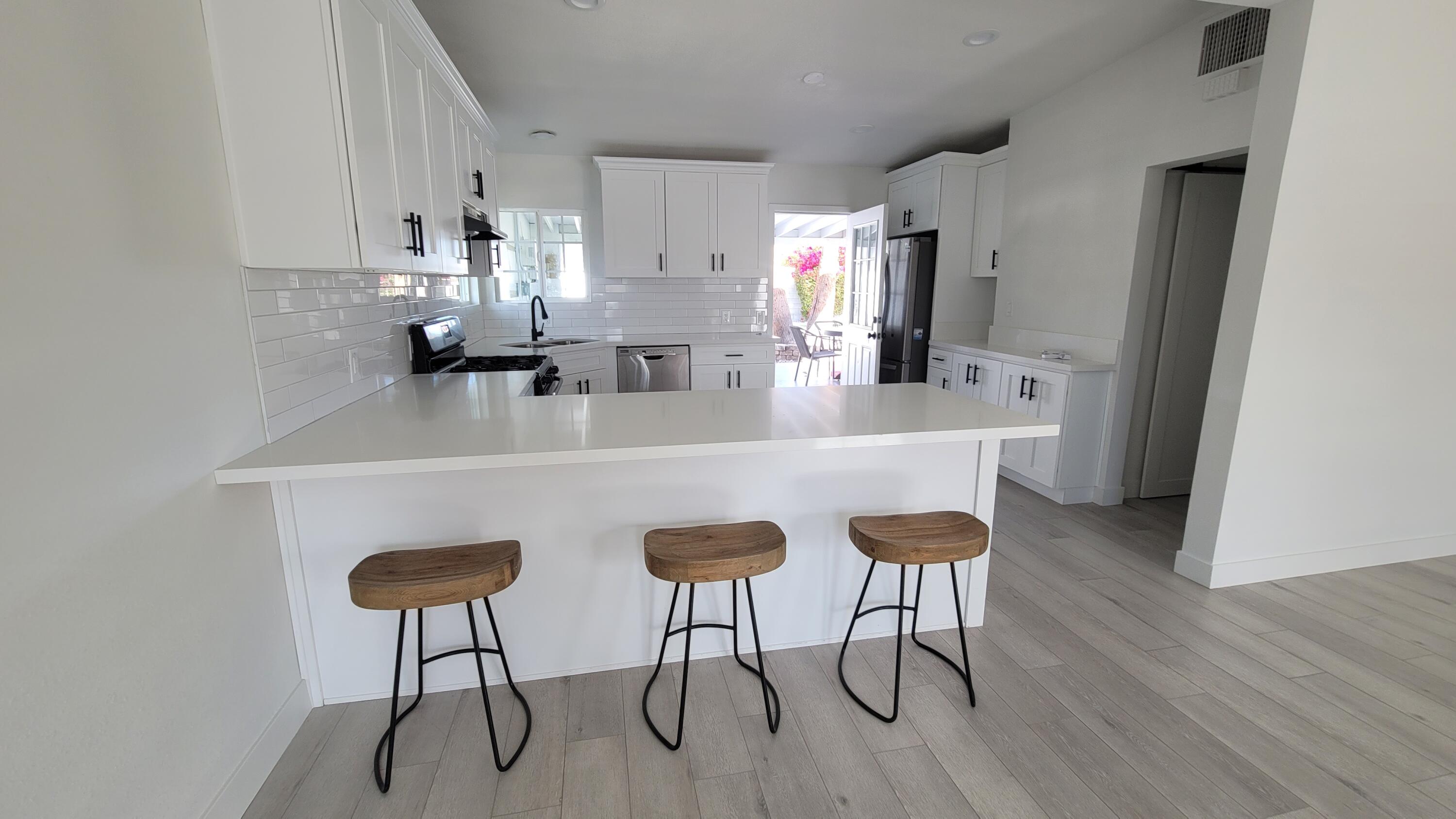 South Palm Desert - No HOA! Recently added new roof and solar! This beautifully preserved mid-century modern home is the perfect blend of vintage charm with contemporary updates! Nestled in the desirable south palm desert neighborhood, It's just a short walk to El Paseo shopping district! The main home has 2 bedrooms, 2 bathrooms, a spacious living area that offers an open concept for dining and entertaining. The main home updates Include quartz countertops, stainless steel appliances, walk in showers, woodgrain luxury vinal plank flooring. Beautifully updated backyard with low maintenance landscaping, artificial turf surrounding the pool & spa! The pool is set in the perfect position to have mostly full sunlight all day long, and you can take advantage of the covered patio for shade and outdoor dining! The separate guest house offers a full living room, kitchen, bedroom, and bathroom with a little TLC this guest house could transform into the perfect stylish space! Main home was just updated with all fresh interior paint, and newly installed leased solar! This home is priced to sell and won't last long!Interested in this Listing?