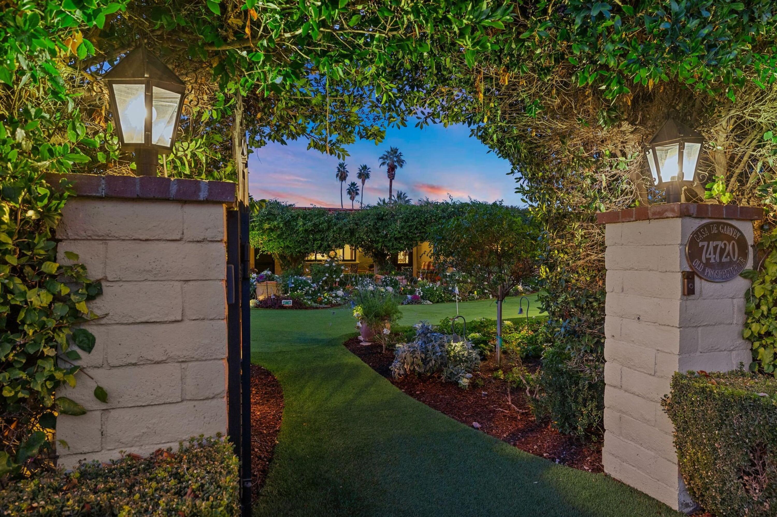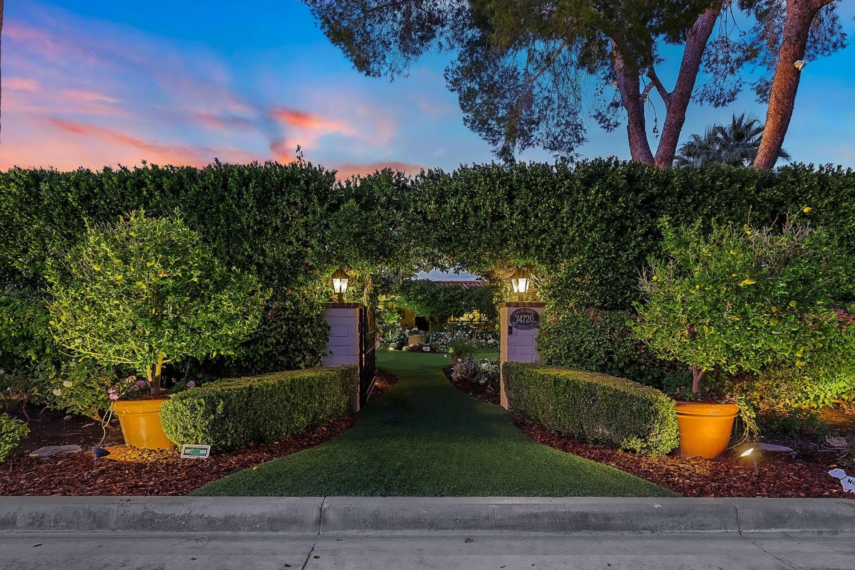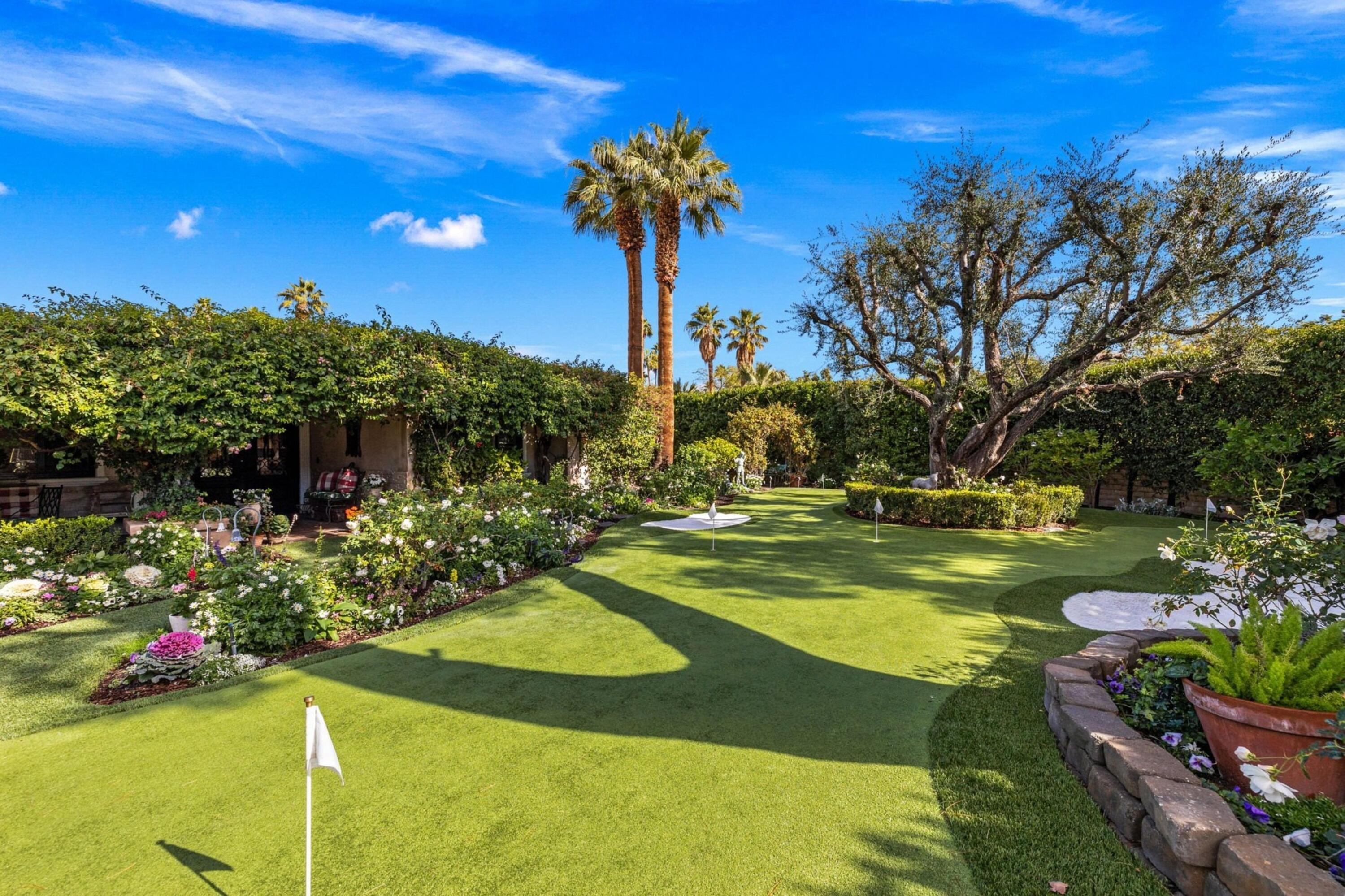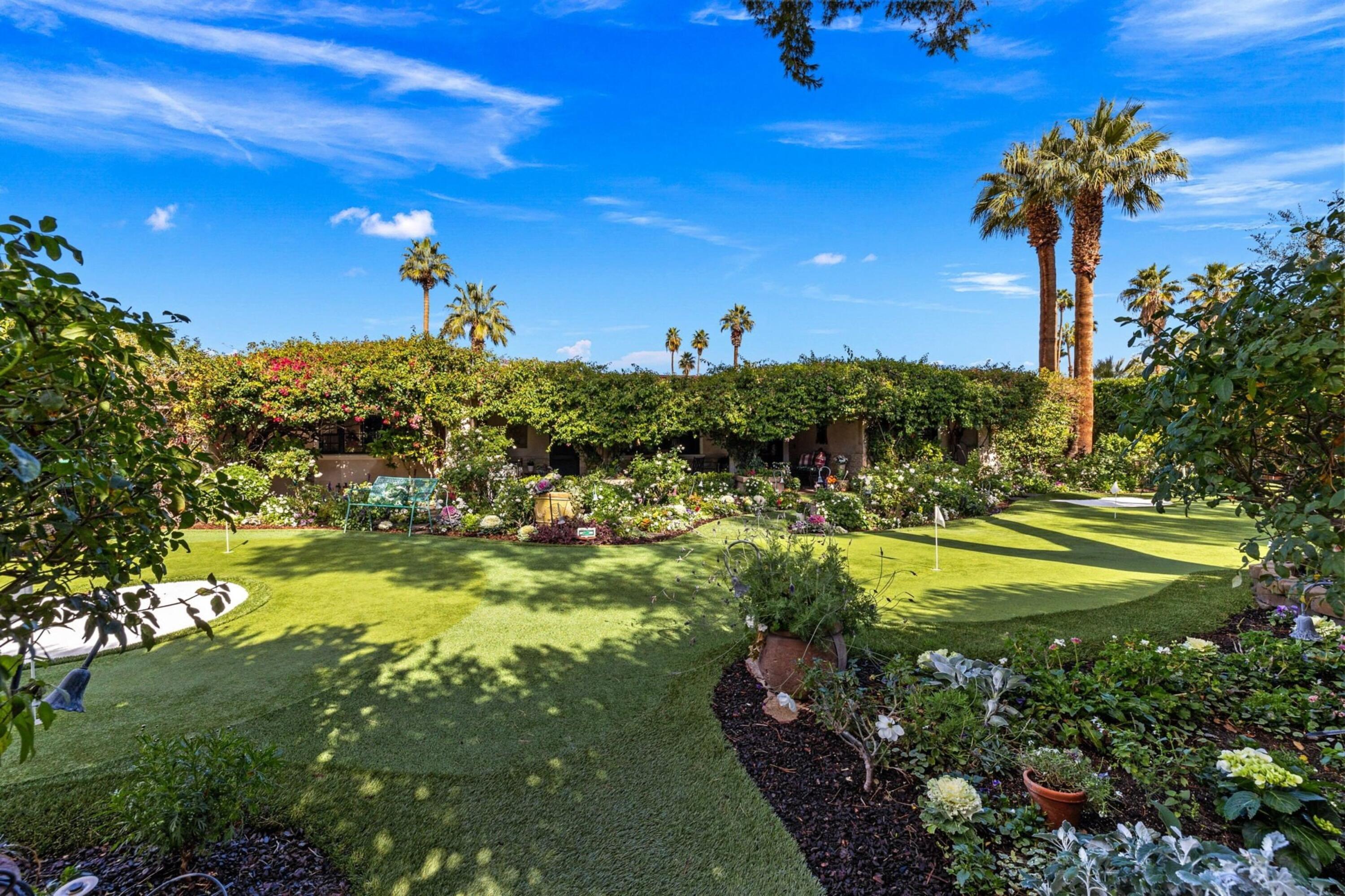 Deep Canyon Ranch Private Estate - One of twelve expanded lots in a special, highly sought after section of South Palm Desert. The sprawling Spanish Ranch is set among a splendidly landscaped, .77 acre lot, featuring mature trees, a spectacular custom putting and chipping course, and the heart of the home - the English gardens. The world around you disappears as you enter into the private, gated property. Warmth exudes upon entering the home. A cherished family home for the last 20 years, this is truly a place where memories are made. The living areas flow beautifully from indoor to out through large pocketing sliders. A covered patio area with built in heaters, a fireplace, and media cabinet is a great addition to the living space. The kitchen is a place where people will gather, with barstool seating around the island - a casual sitting area is adjacent to the kitchen. The formal dining room is luxurious and is finished in Ritz-Carlton Gray. The Primary Suite is a retreat - enjoy views out to the pool area, or cozy evenings by the fireplace. A spa-like soaking tub is a highlight of the newly renovated bathroom. Dual walk-in closets and dual water closets keep everyone happy! A handsome office with custom millwork opens to a private patio off the back of the home. Two Guest Suites, a media room, and a powder bath round out the main house. The Guest House features two bedrooms, two baths, and a living room with eating area and kitchenette. We look forward to sharing this home with you!Interested in this Listing?