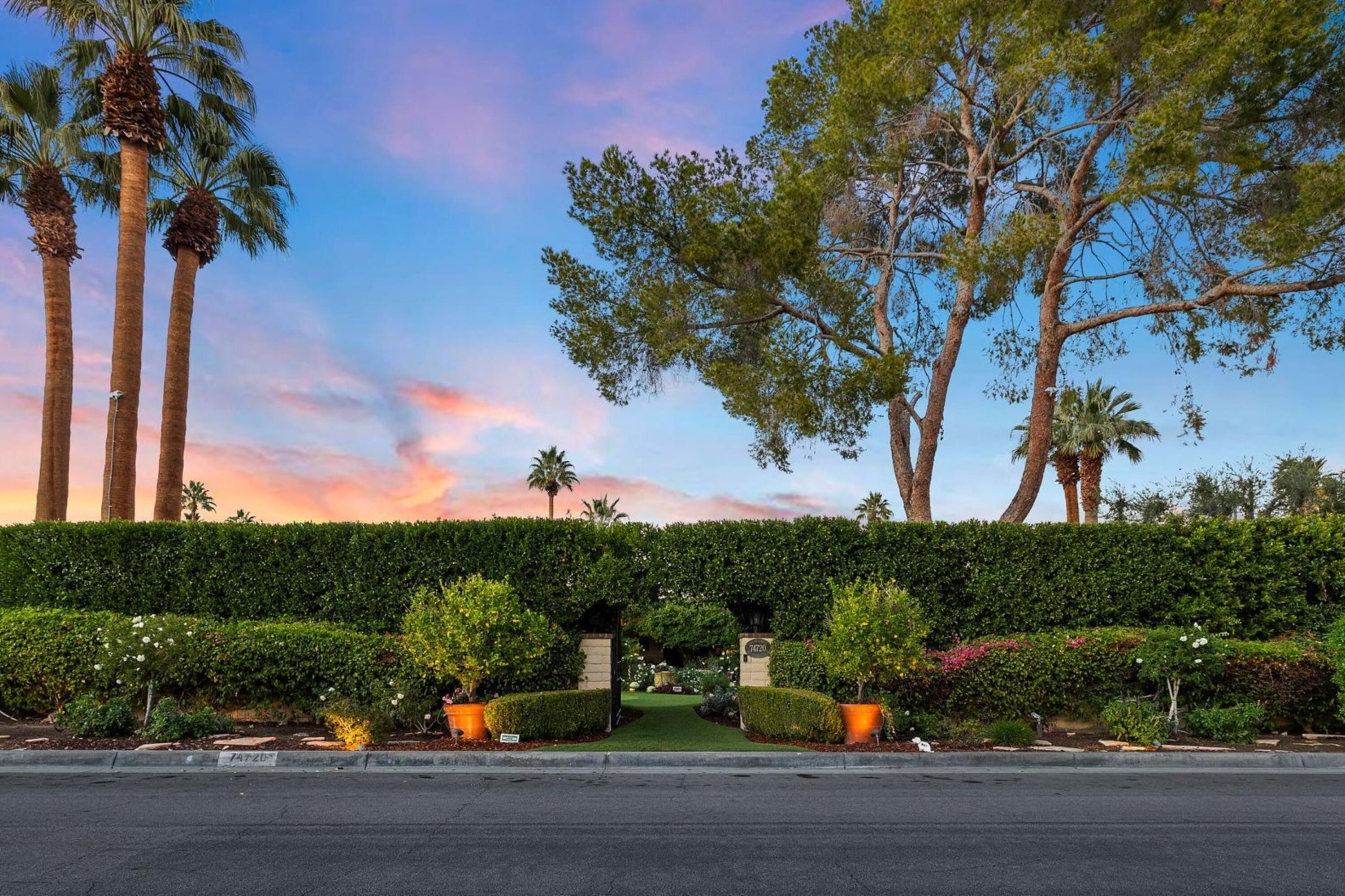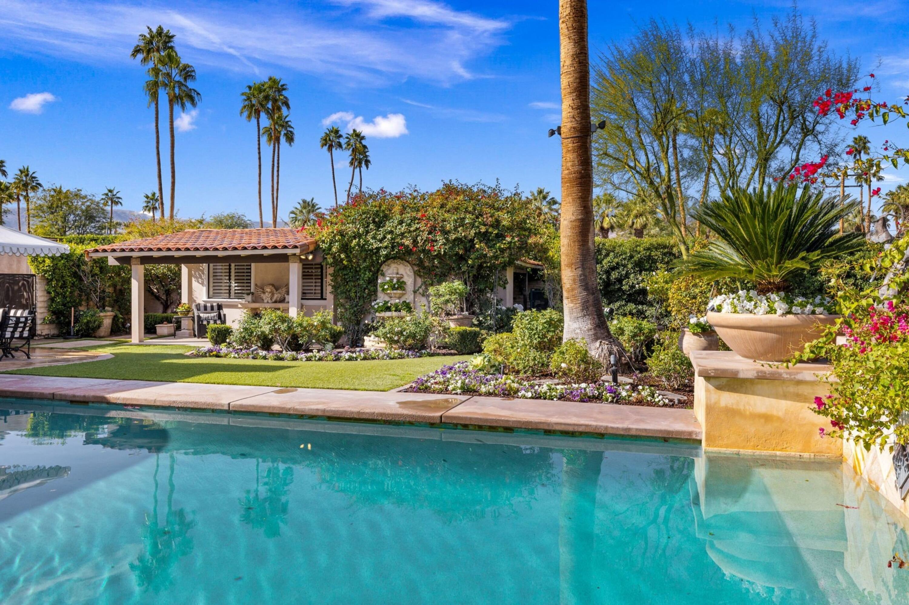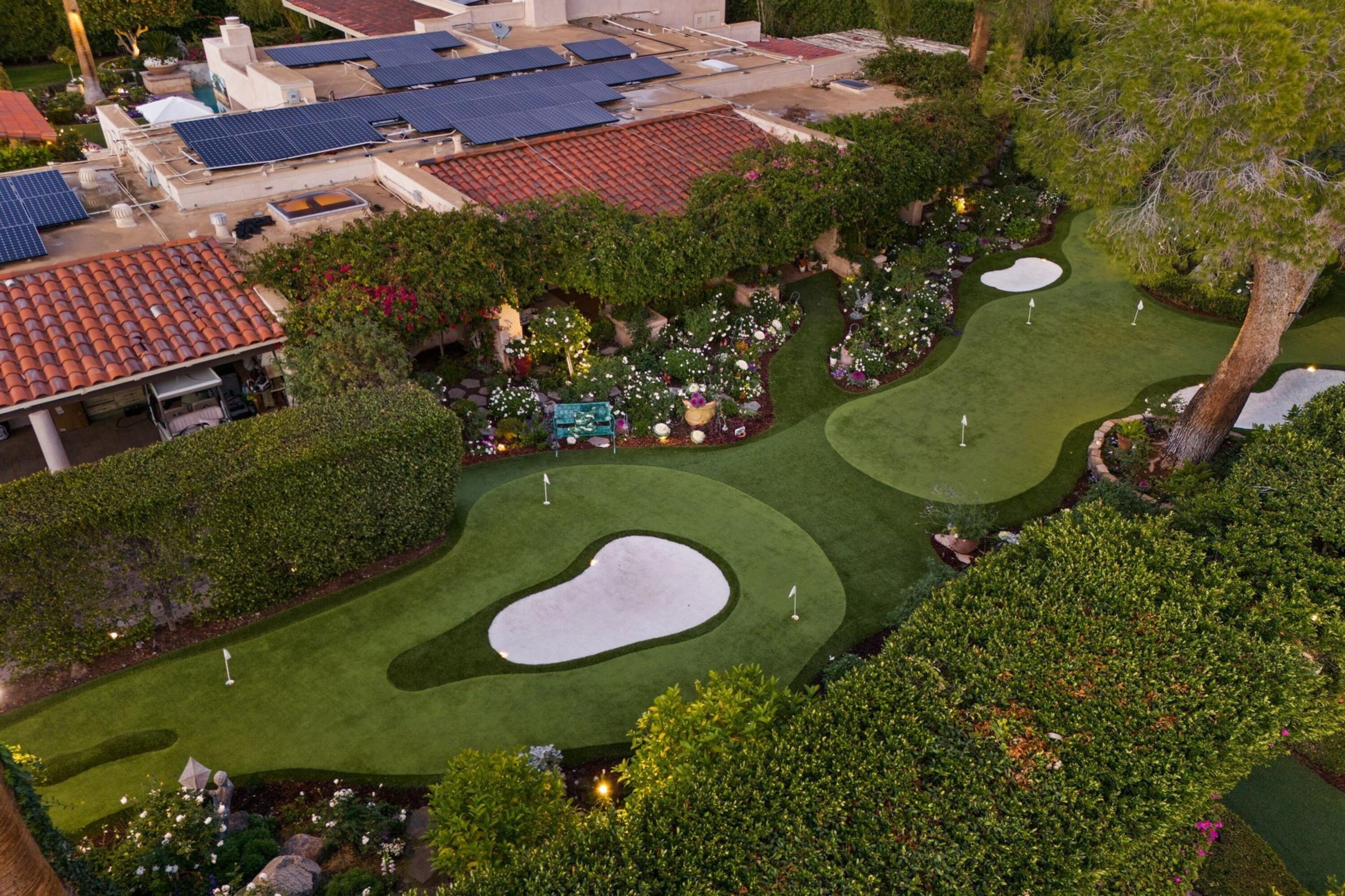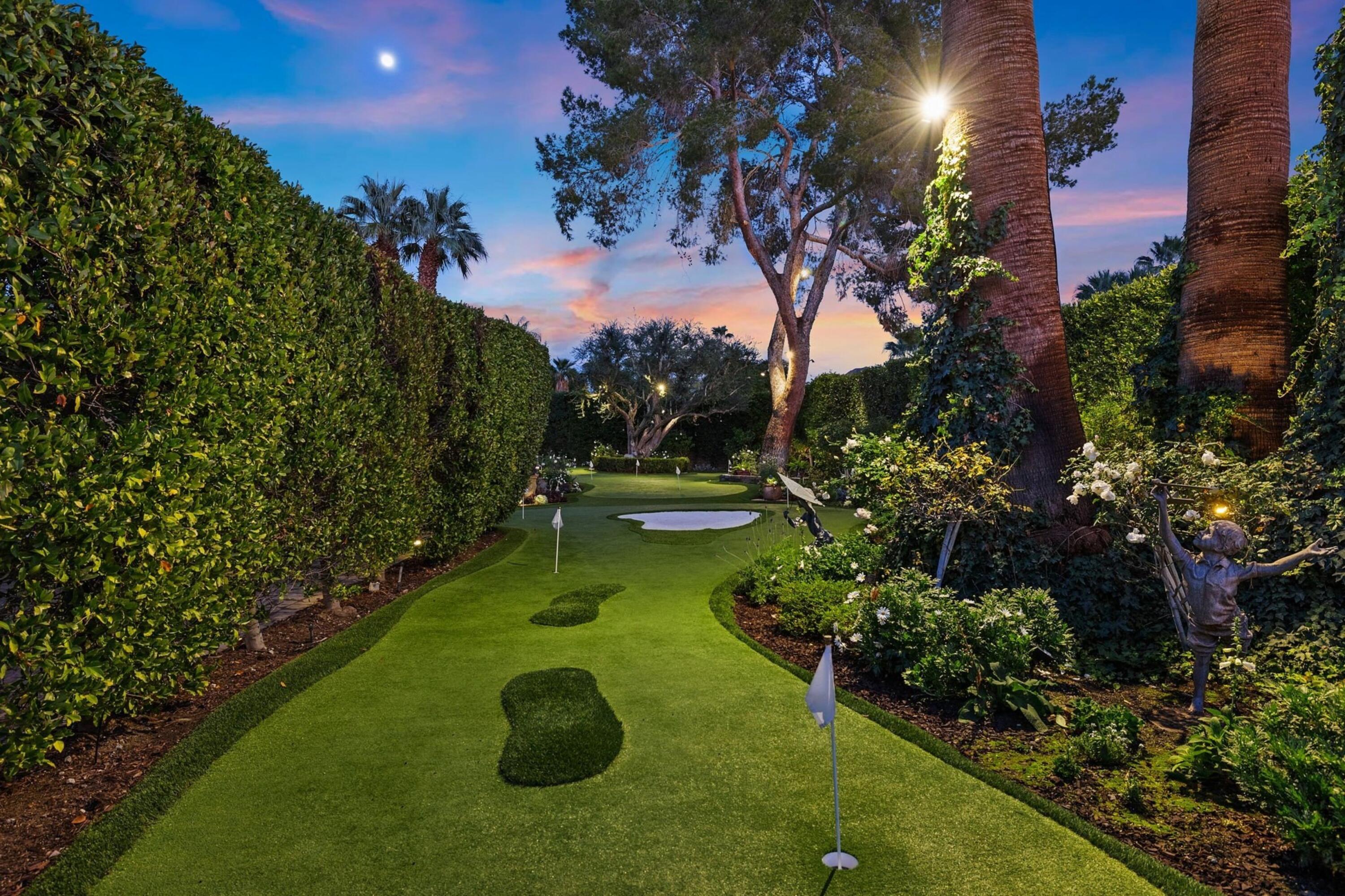 Deep Canyon Ranch Private Estate - One of twelve expanded lots in a special, highly sought after section of South Palm Desert. The sprawling Spanish Ranch is set among a splendidly landscaped, .77 acre lot, featuring mature trees, a spectacular custom putting and chipping course, and the heart of the home - the English gardens. The world around you disappears as you enter into the private, gated property. Warmth exudes upon entering the home. A cherished family home for the last 20 years, this is truly a place where memories are made. The living areas flow beautifully from indoor to out through large pocketing sliders. A covered patio area with built in heaters, a fireplace, and media cabinet is a great addition to the living space. The kitchen is a place where people will gather, with barstool seating around the island - a casual sitting area is adjacent to the kitchen. The formal dining room is luxurious and is finished in Ritz-Carlton Gray. The Primary Suite is a retreat - enjoy views out to the pool area, or cozy evenings by the fireplace. A spa-like soaking tub is a highlight of the newly renovated bathroom. Dual walk-in closets and dual water closets keep everyone happy! A handsome office with custom millwork opens to a private patio off the back of the home. Two Guest Suites, a media room, and a powder bath round out the main house. The Guest House features two bedrooms, two baths, and a living room with eating area and kitchenette. We look forward to sharing this home with you!Interested in this Listing?