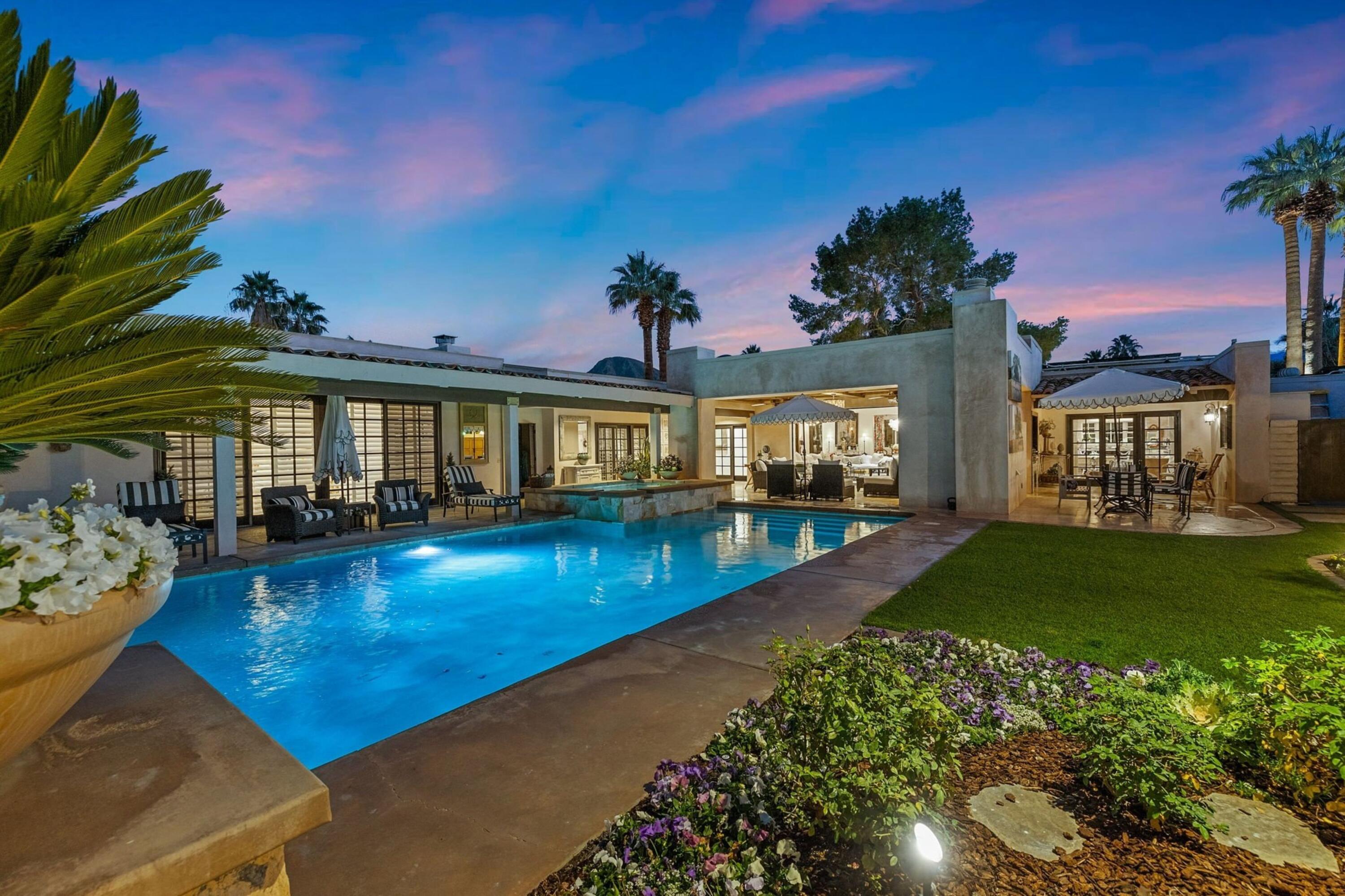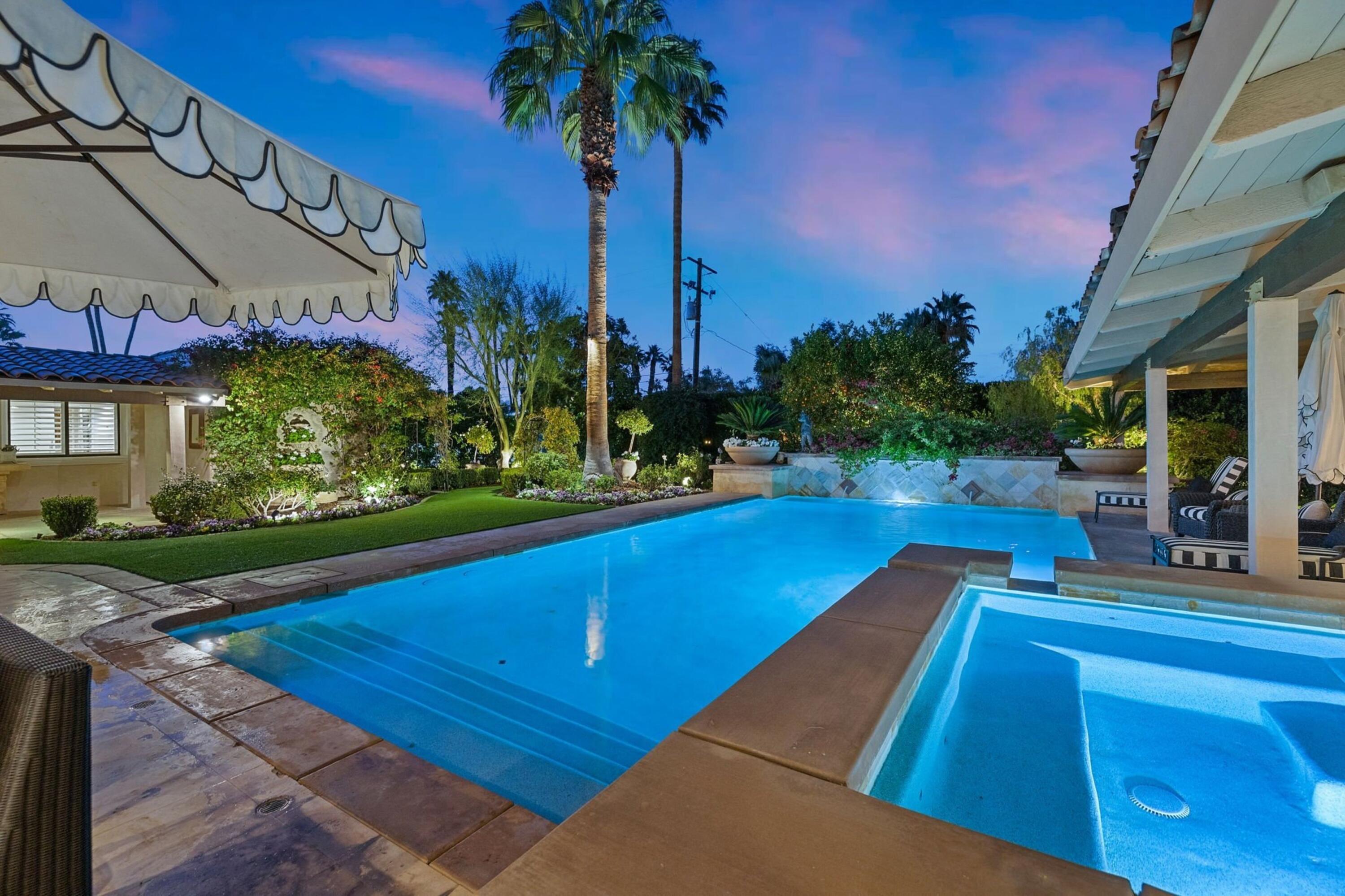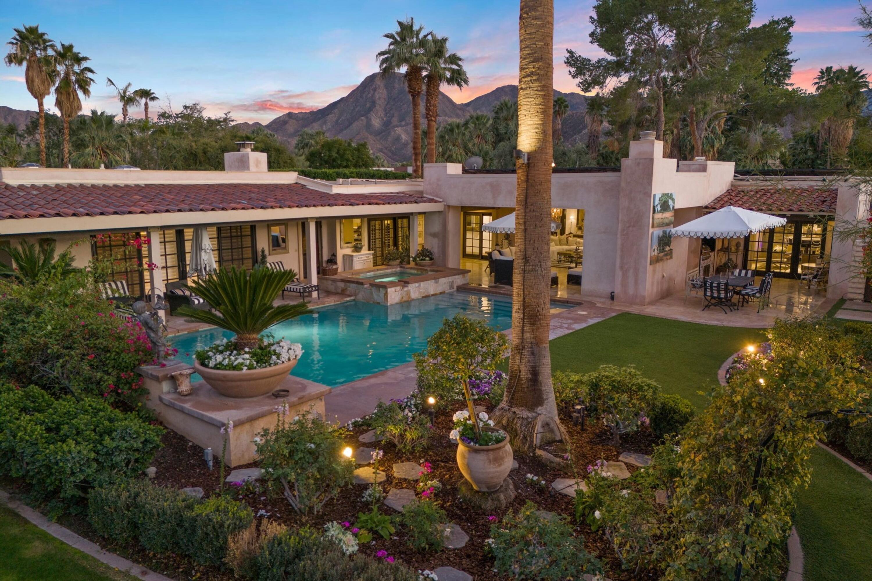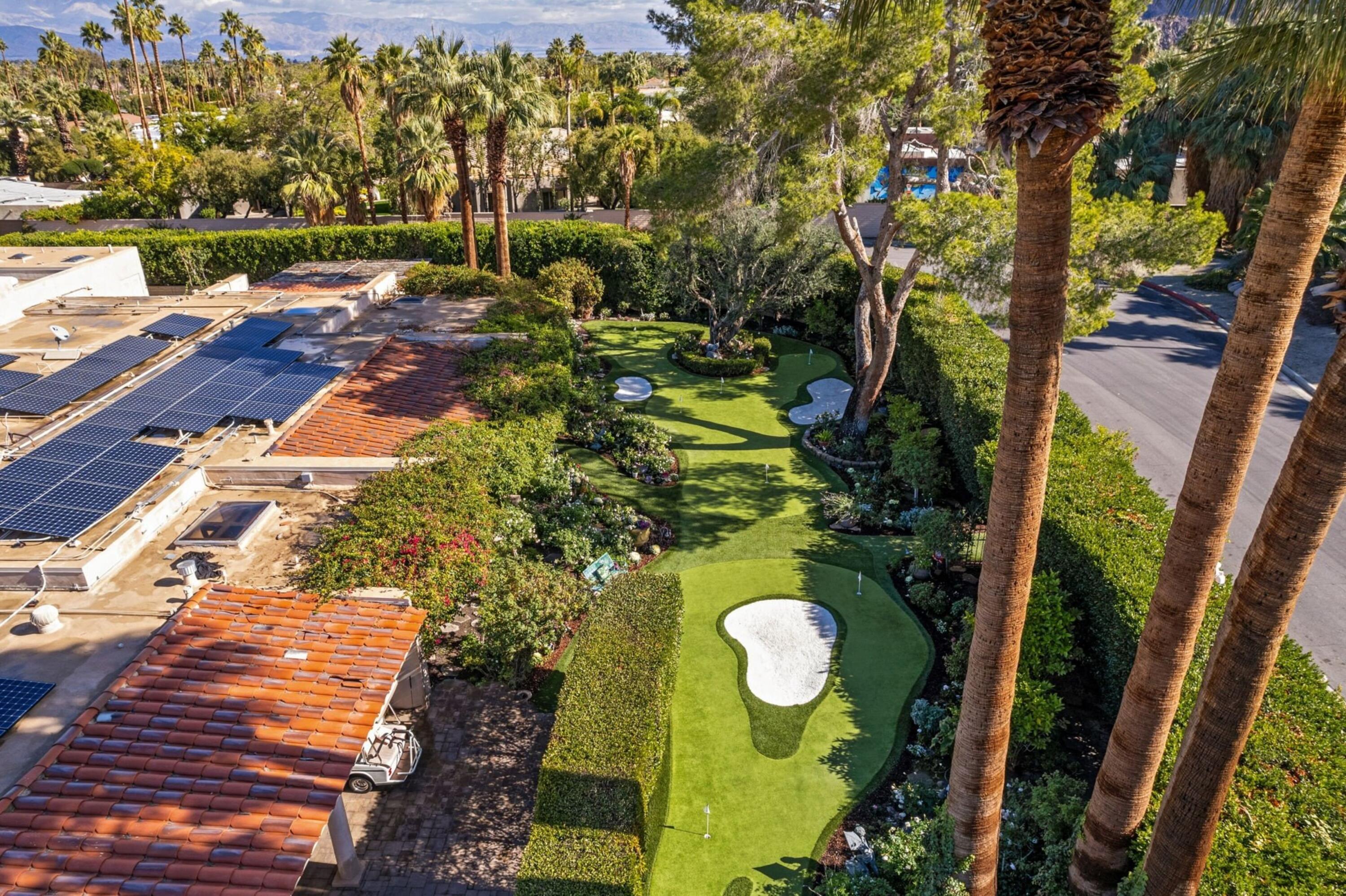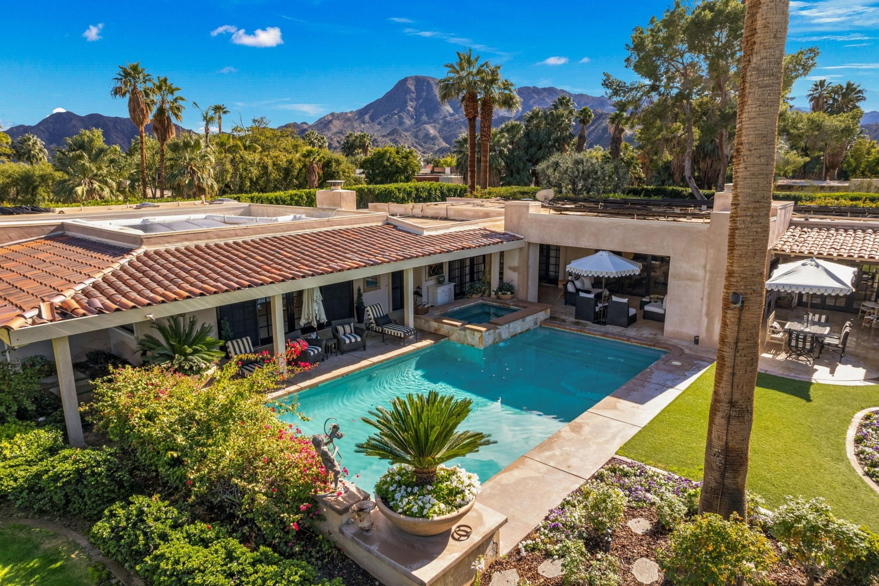 Deep Canyon Ranch Private Estate - One of twelve expanded lots in a special, highly sought after section of South Palm Desert. The sprawling Spanish Ranch is set among a splendidly landscaped, .77 acre lot, featuring mature trees, a spectacular custom putting and chipping course, and the heart of the home - the English gardens. The world around you disappears as you enter into the private, gated property. Warmth exudes upon entering the home. A cherished family home for the last 20 years, this is truly a place where memories are made. The living areas flow beautifully from indoor to out through large pocketing sliders. A covered patio area with built in heaters, a fireplace, and media cabinet is a great addition to the living space. The kitchen is a place where people will gather, with barstool seating around the island - a casual sitting area is adjacent to the kitchen. The formal dining room is luxurious and is finished in Ritz-Carlton Gray. The Primary Suite is a retreat - enjoy views out to the pool area, or cozy evenings by the fireplace. A spa-like soaking tub is a highlight of the newly renovated bathroom. Dual walk-in closets and dual water closets keep everyone happy! A handsome office with custom millwork opens to a private patio off the back of the home. Two Guest Suites, a media room, and a powder bath round out the main house. The Guest House features two bedrooms, two baths, and a living room with eating area and kitchenette. We look forward to sharing this home with you!Interested in this Listing?