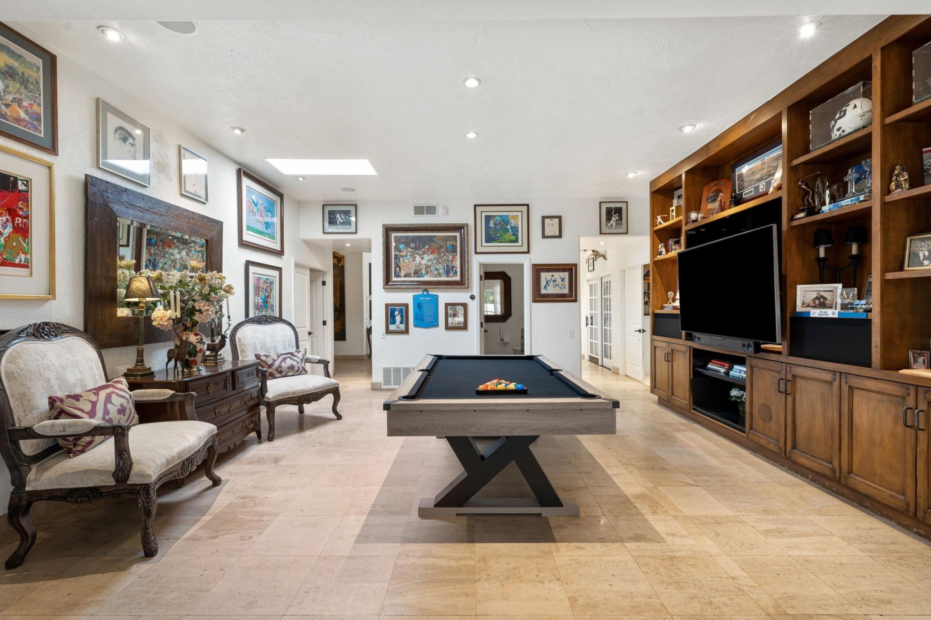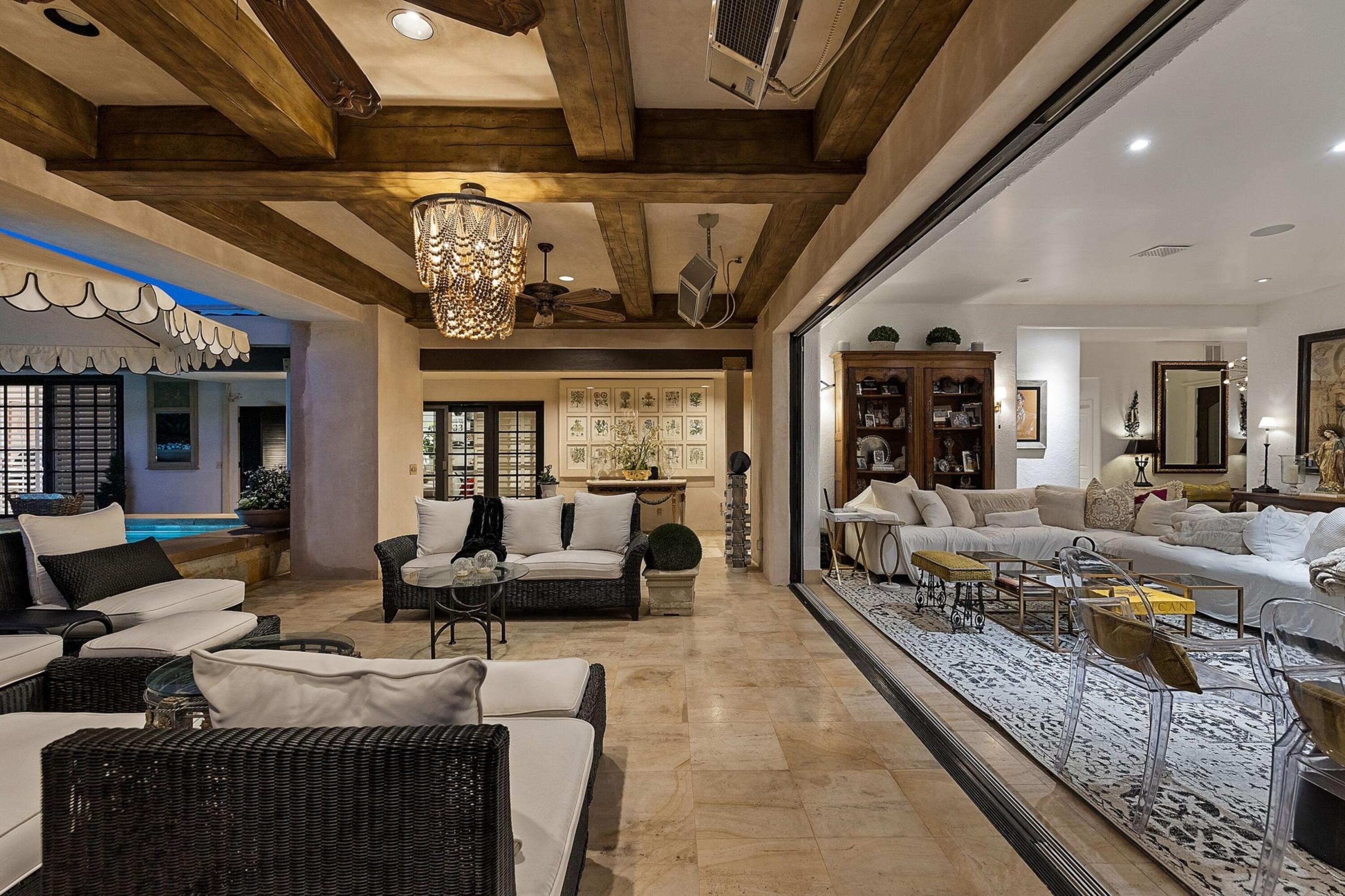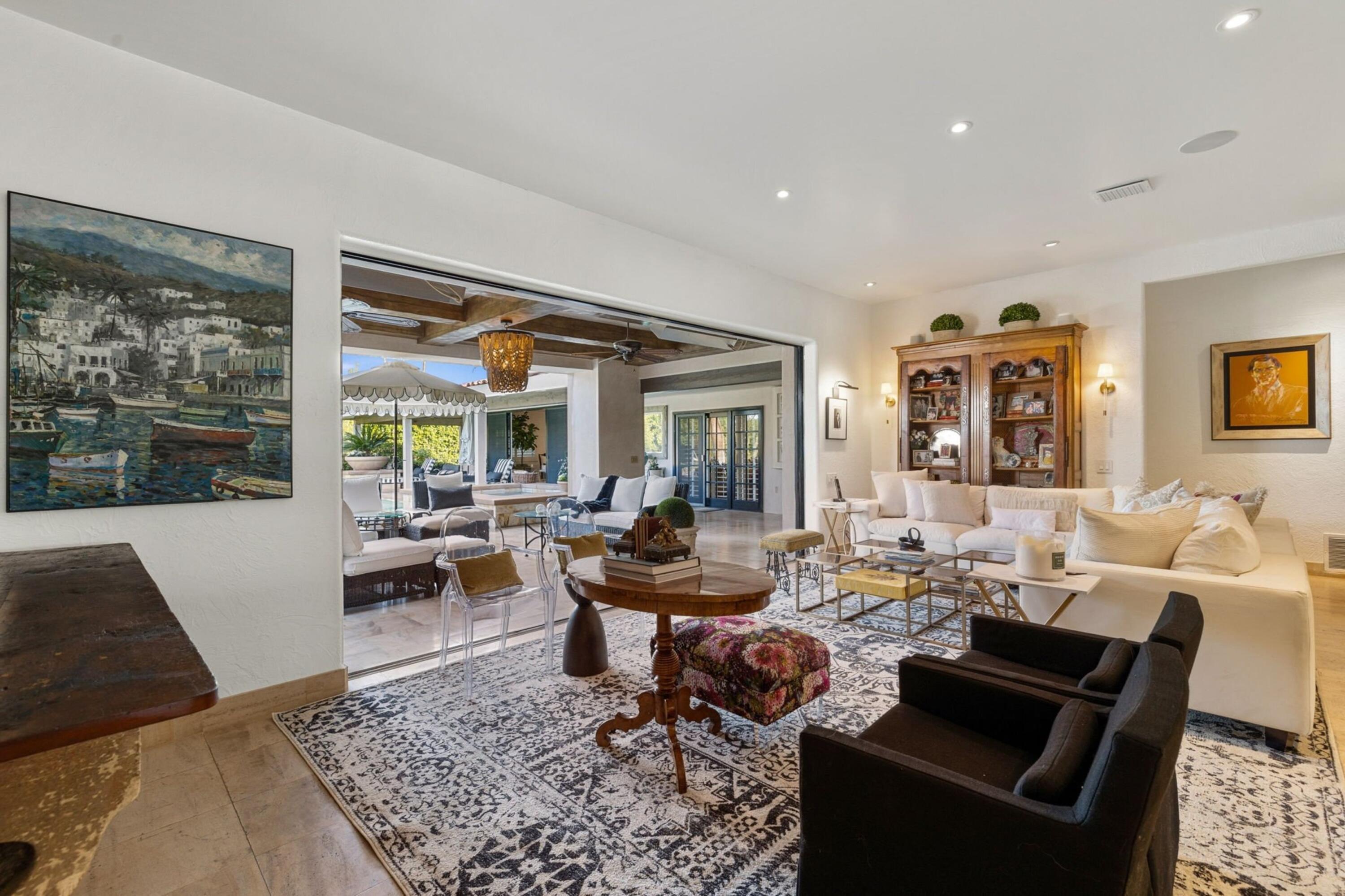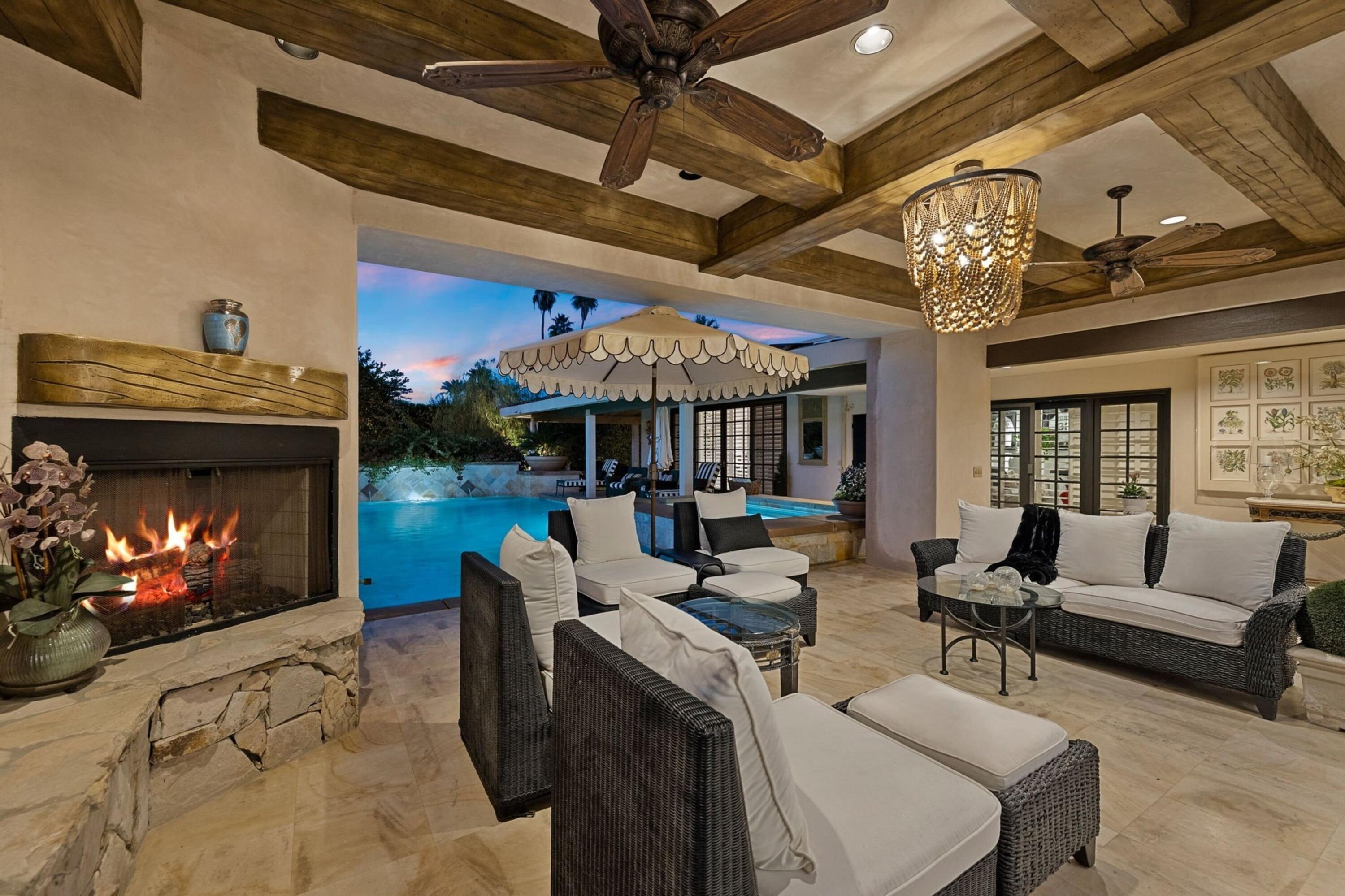 Deep Canyon Ranch Private Estate - One of twelve expanded lots in a special, highly sought after section of South Palm Desert. The sprawling Spanish Ranch is set among a splendidly landscaped, .77 acre lot, featuring mature trees, a spectacular custom putting and chipping course, and the heart of the home - the English gardens. The world around you disappears as you enter into the private, gated property. Warmth exudes upon entering the home. A cherished family home for the last 20 years, this is truly a place where memories are made. The living areas flow beautifully from indoor to out through large pocketing sliders. A covered patio area with built in heaters, a fireplace, and media cabinet is a great addition to the living space. The kitchen is a place where people will gather, with barstool seating around the island - a casual sitting area is adjacent to the kitchen. The formal dining room is luxurious and is finished in Ritz-Carlton Gray. The Primary Suite is a retreat - enjoy views out to the pool area, or cozy evenings by the fireplace. A spa-like soaking tub is a highlight of the newly renovated bathroom. Dual walk-in closets and dual water closets keep everyone happy! A handsome office with custom millwork opens to a private patio off the back of the home. Two Guest Suites, a media room, and a powder bath round out the main house. The Guest House features two bedrooms, two baths, and a living room with eating area and kitchenette. We look forward to sharing this home with you!Interested in this Listing?