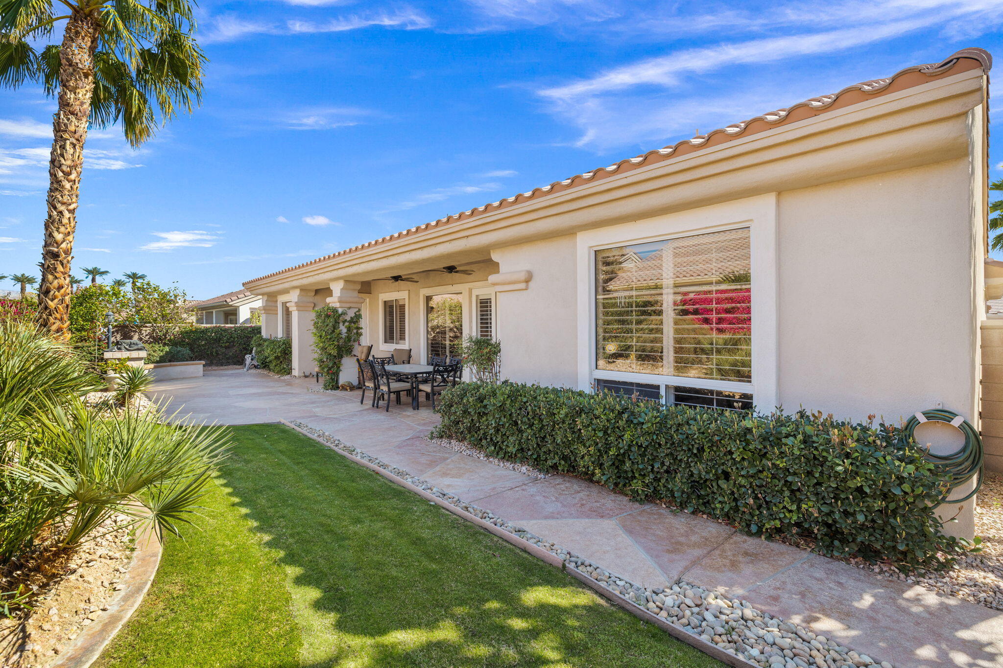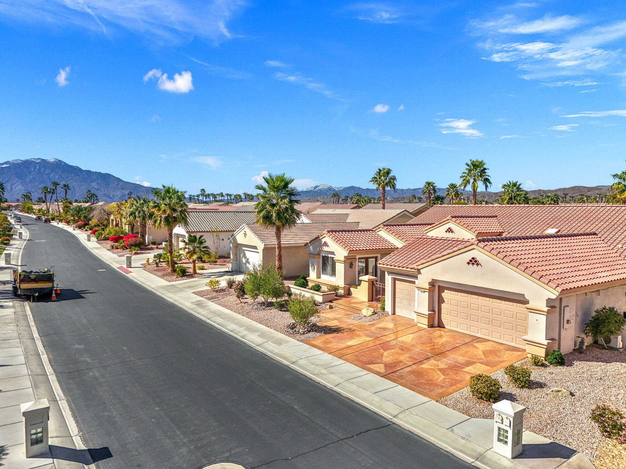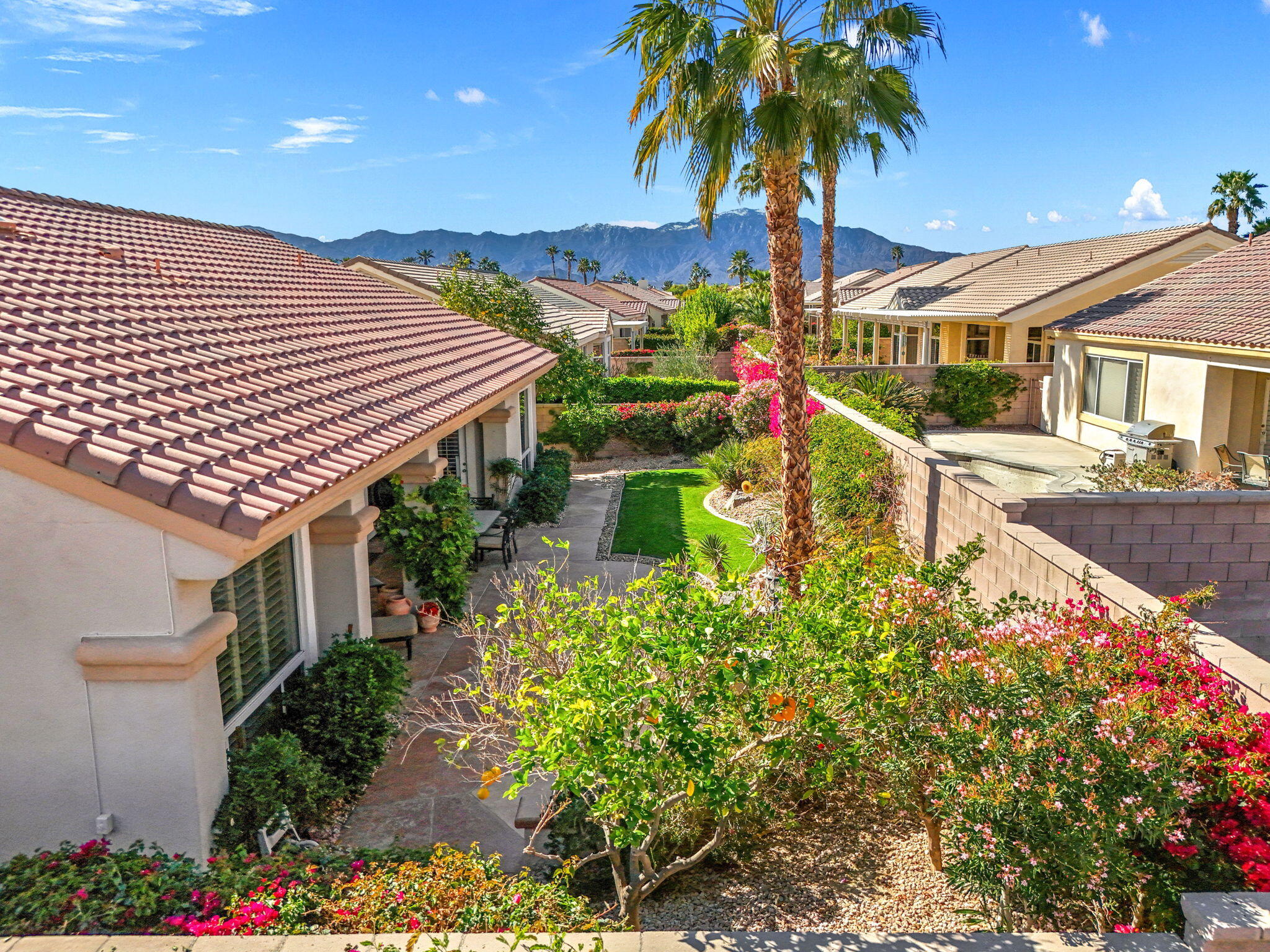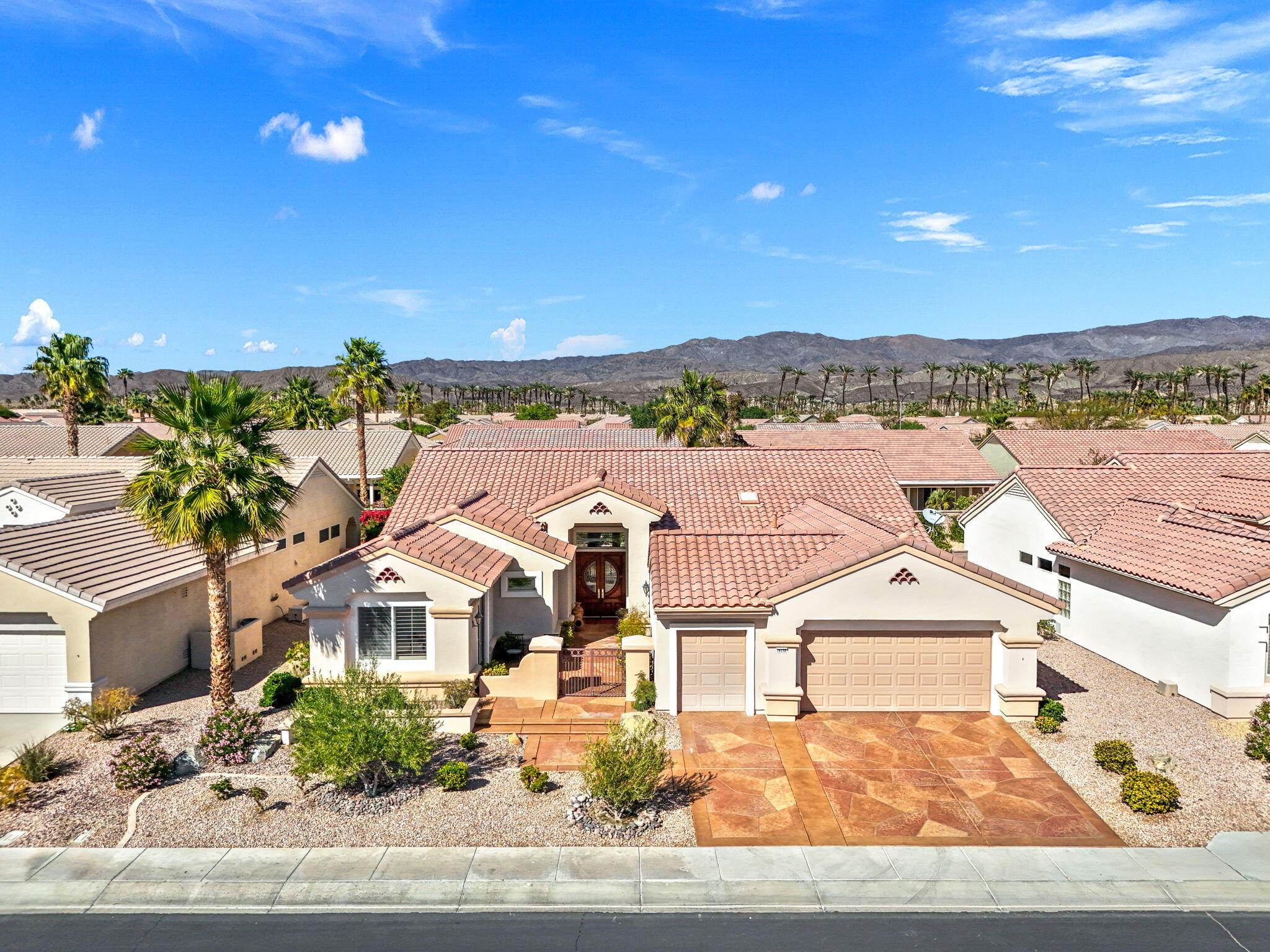 Located in the best 55+ community in the valley, Sun City Palm Desert, The Monaco is one of the most popular floor plans in the community. It is 2439 sq. ft. and has beautiful light travertine floors, rich bold interior colors, Plantation shutters and crown molding throughout. It has 2 NEWER AIR CONDITIONERS IN 2022. It has 2 bedrooms, a den, 2.5 bathrooms, and a 2 car garage plus a golf cart garage. The kitchen has slab granite, upgraded original maple cabinets with hardware, recessed lights, and a skylight. It's open to the family room and kitchenette area. The living and dining rooms have a wall of windows with a slider out to the backyard. The master bedroom is extended and also has a door out to the private, north-facing backyard, which has citrus trees, a patio cover, misters, a built-in BBQ, and gorgeous concrete overlay. The bathroom has a double vanity, a soaking tub, walk-in shower, and a walk-in closet. The extended guest bedroom is an ''attached casita'', with a separate entrance through double French doors in the courtyard. It has a full bathroom, and plenty of space for a sitting area or an office. The den has been opened up and has tray ceilings, plantation shutters, recessed lights and would be perfect for a guest room or office. The laundry has upper cabinets and includes the washer and dryer. The extended 2-car garage has a golf cart garage, lots of storage cabinets, a washer and dryer, and a newer mini-split A/C. What a beautiful home. Turnkey furnishings are available. SUN CITY PALM DESERT IS ALL ABOUT LIFESTYLE!! It has many clubs, activities, amenities, and low HOA dues. Play at 2 championship 18-hole golf courses and practice facilities, pickle ball, tennis, softball, bocci ball, 18-hole miniature golf course, an honor library, arts and crafts, a ballroom for special entertainment, and 4 saltwater pools kept at 87 degrees with hot tubs. Enjoy 2 great restaurants, a martini/coffee bar, and even a post office. It has a newly renovated classy indInterested in this Listing?