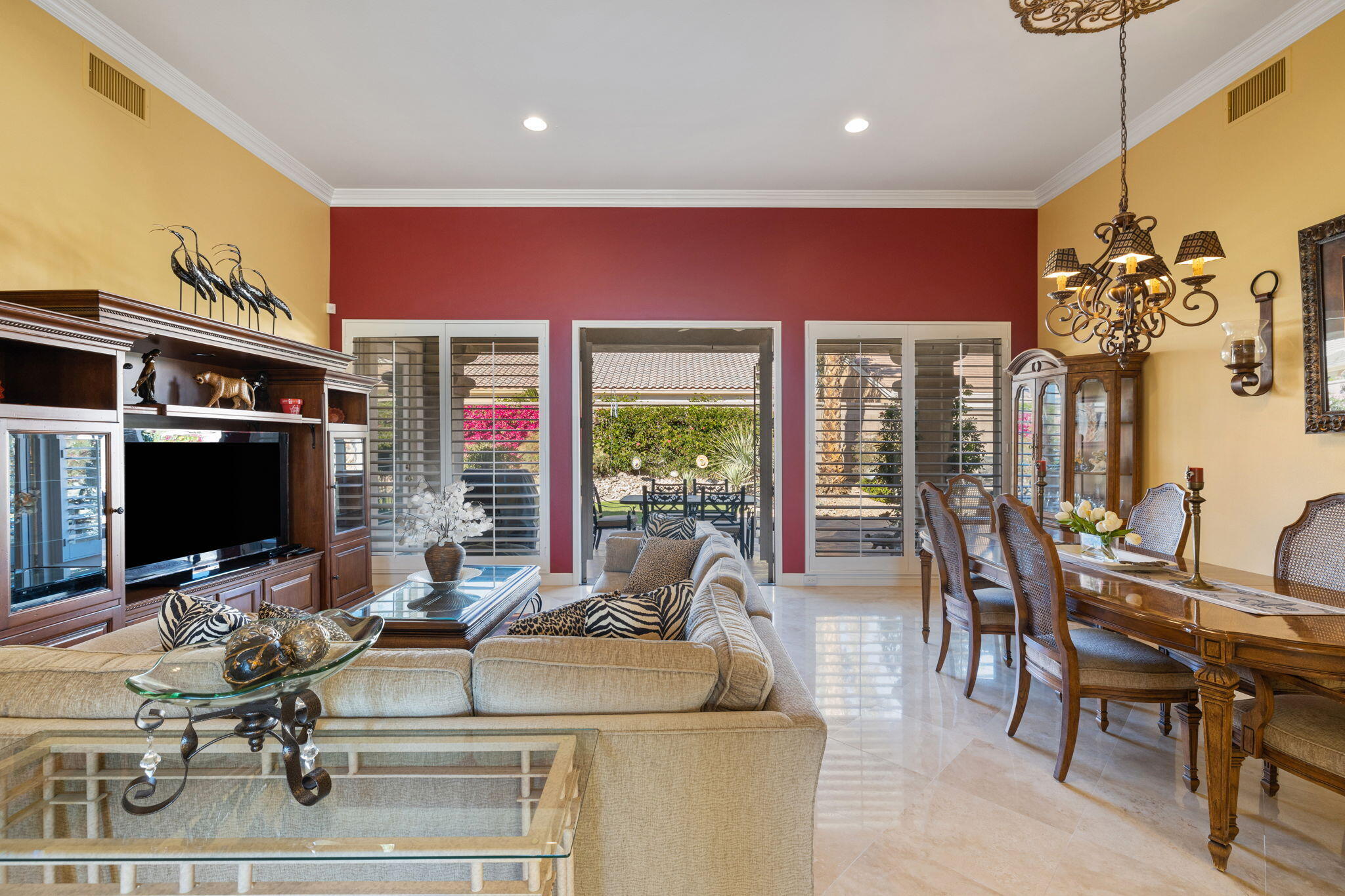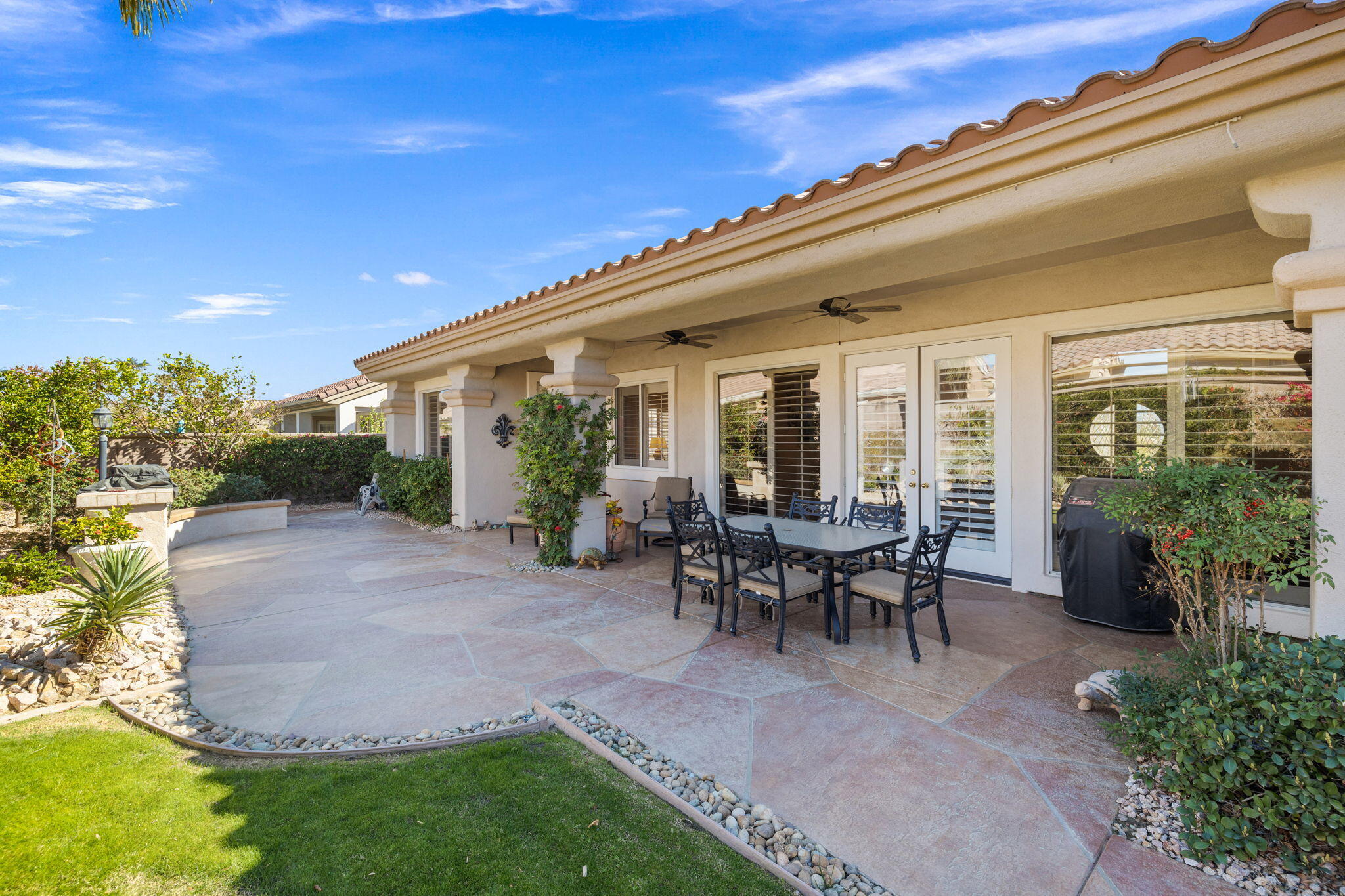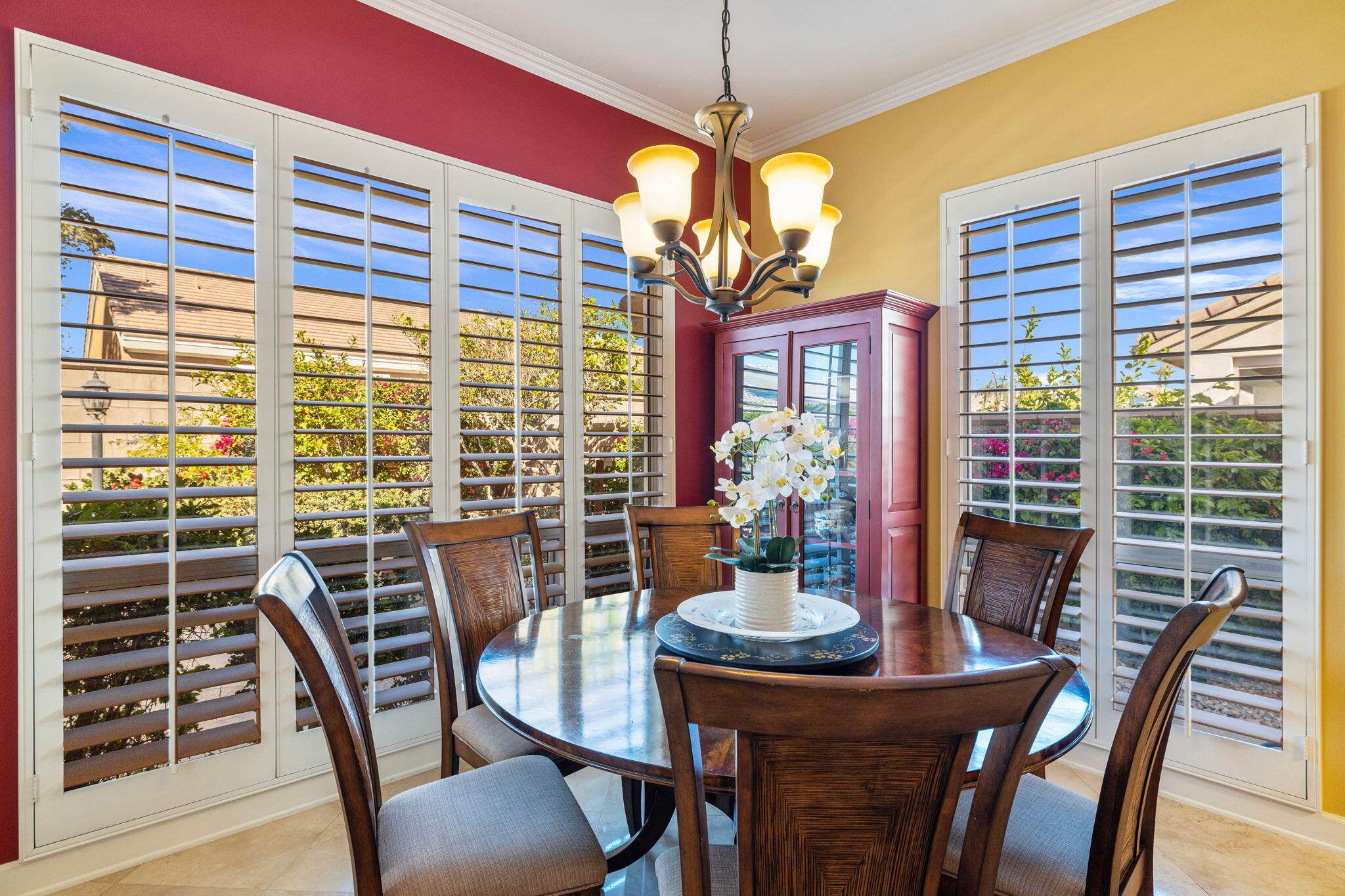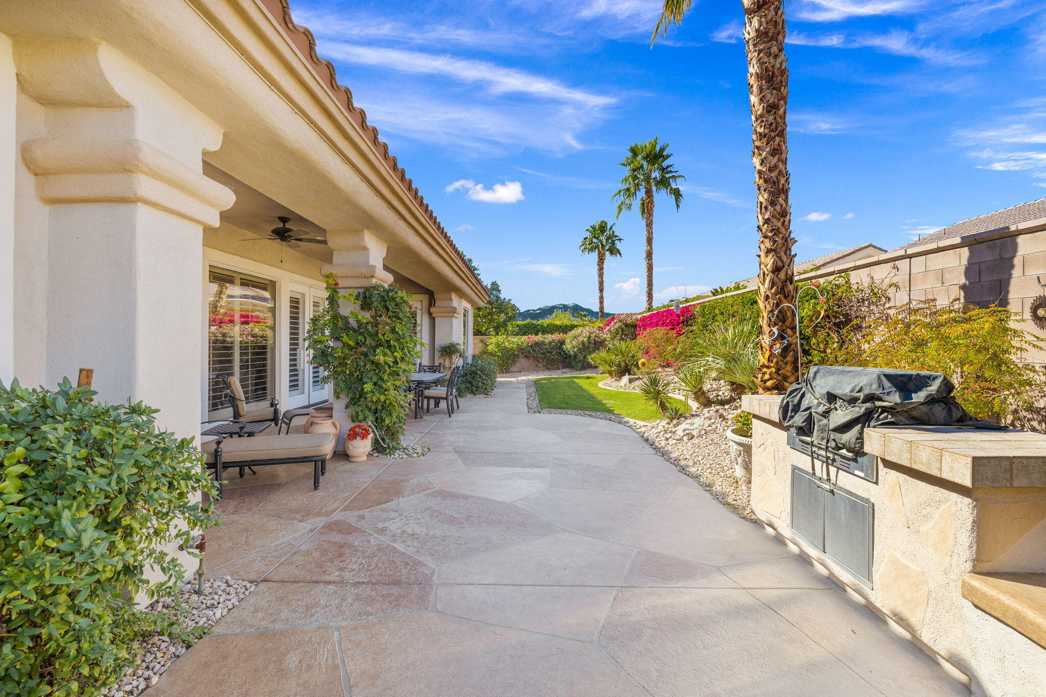 Located in the best 55+ community in the valley, Sun City Palm Desert, The Monaco is one of the most popular floor plans in the community. It is 2439 sq. ft. and has beautiful light travertine floors, rich bold interior colors, Plantation shutters and crown molding throughout. It has 2 NEWER AIR CONDITIONERS IN 2022. It has 2 bedrooms, a den, 2.5 bathrooms, and a 2 car garage plus a golf cart garage. The kitchen has slab granite, upgraded original maple cabinets with hardware, recessed lights, and a skylight. It's open to the family room and kitchenette area. The living and dining rooms have a wall of windows with a slider out to the backyard. The master bedroom is extended and also has a door out to the private, north-facing backyard, which has citrus trees, a patio cover, misters, a built-in BBQ, and gorgeous concrete overlay. The bathroom has a double vanity, a soaking tub, walk-in shower, and a walk-in closet. The extended guest bedroom is an ''attached casita'', with a separate entrance through double French doors in the courtyard. It has a full bathroom, and plenty of space for a sitting area or an office. The den has been opened up and has tray ceilings, plantation shutters, recessed lights and would be perfect for a guest room or office. The laundry has upper cabinets and includes the washer and dryer. The extended 2-car garage has a golf cart garage, lots of storage cabinets, a washer and dryer, and a newer mini-split A/C. What a beautiful home. Turnkey furnishings are available. SUN CITY PALM DESERT IS ALL ABOUT LIFESTYLE!! It has many clubs, activities, amenities, and low HOA dues. Play at 2 championship 18-hole golf courses and practice facilities, pickle ball, tennis, softball, bocci ball, 18-hole miniature golf course, an honor library, arts and crafts, a ballroom for special entertainment, and 4 saltwater pools kept at 87 degrees with hot tubs. Enjoy 2 great restaurants, a martini/coffee bar, and even a post office. It has a newly renovated classy indInterested in this Listing?
