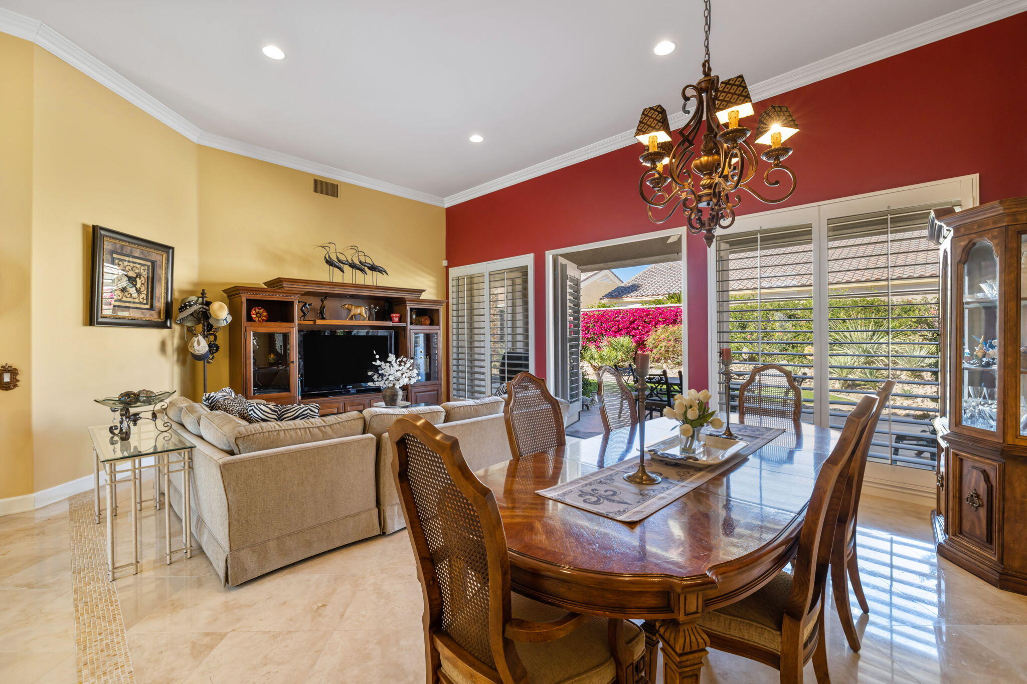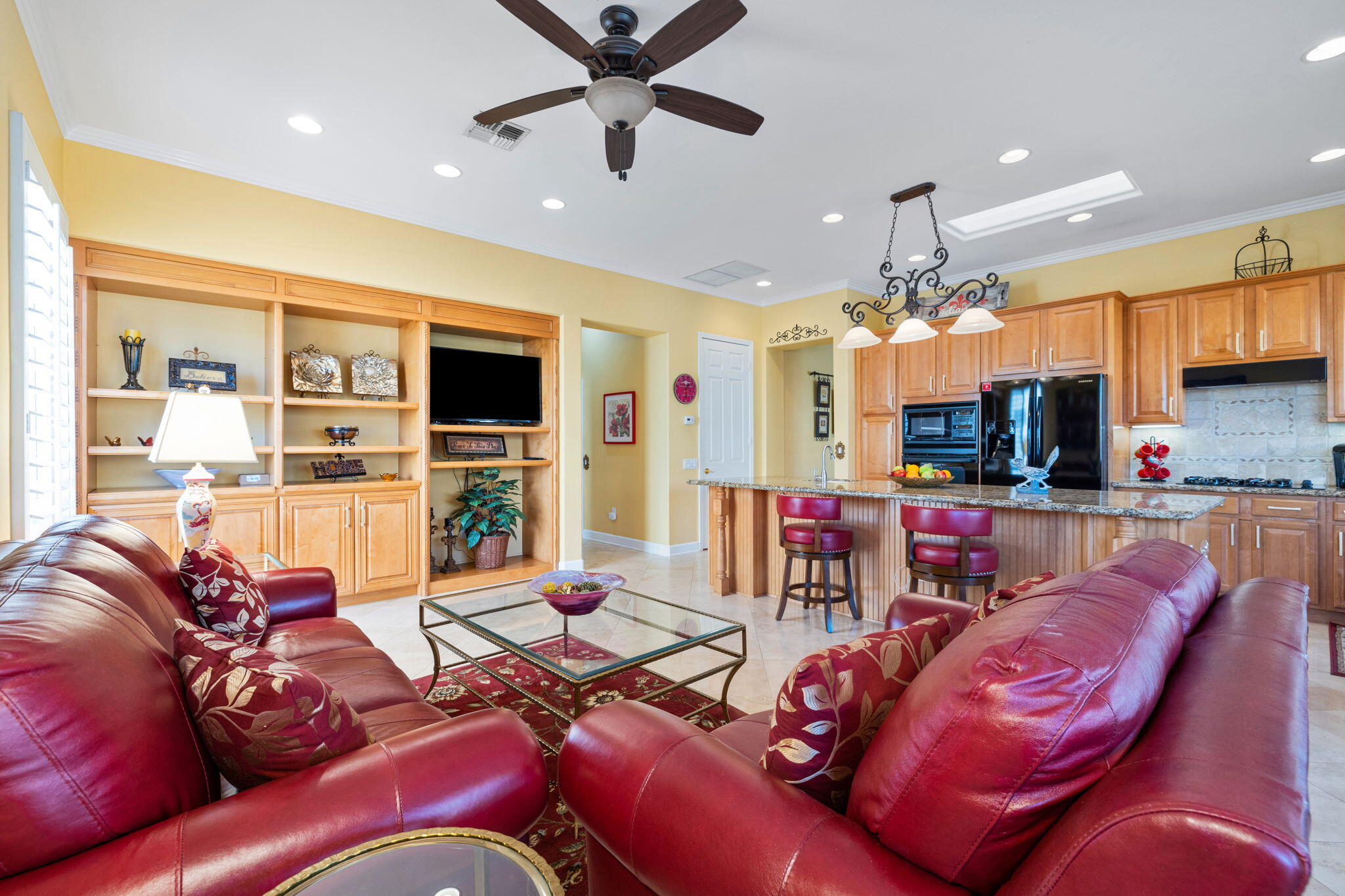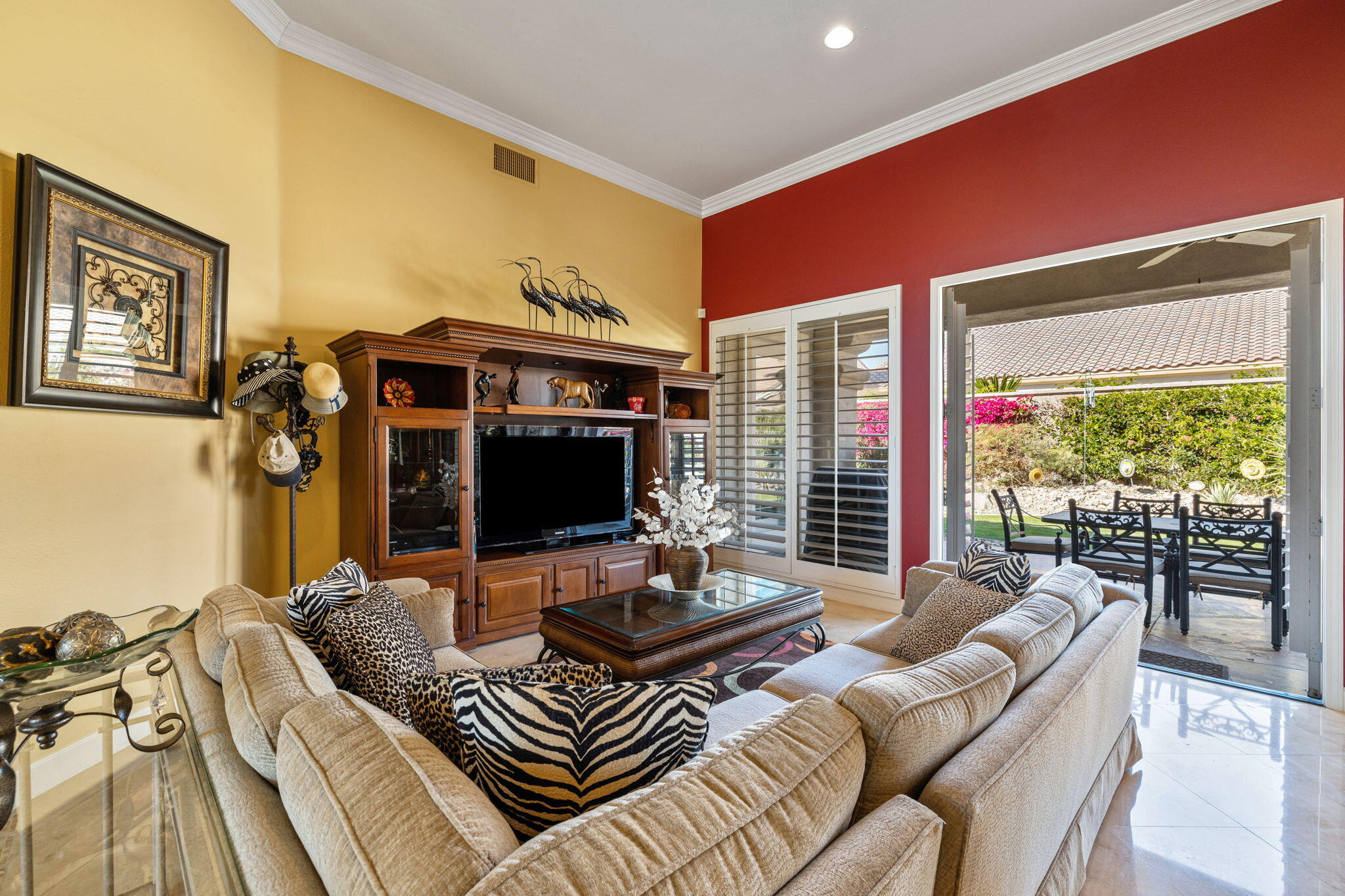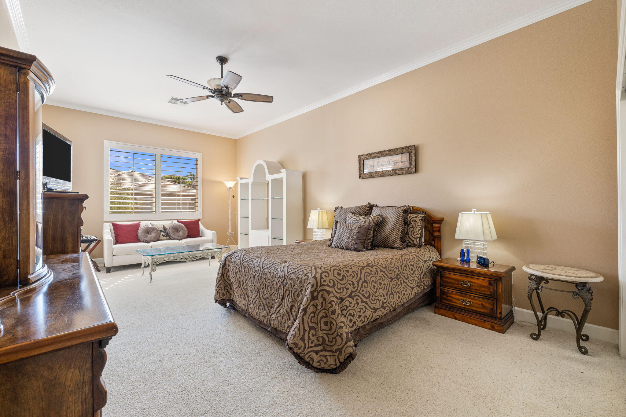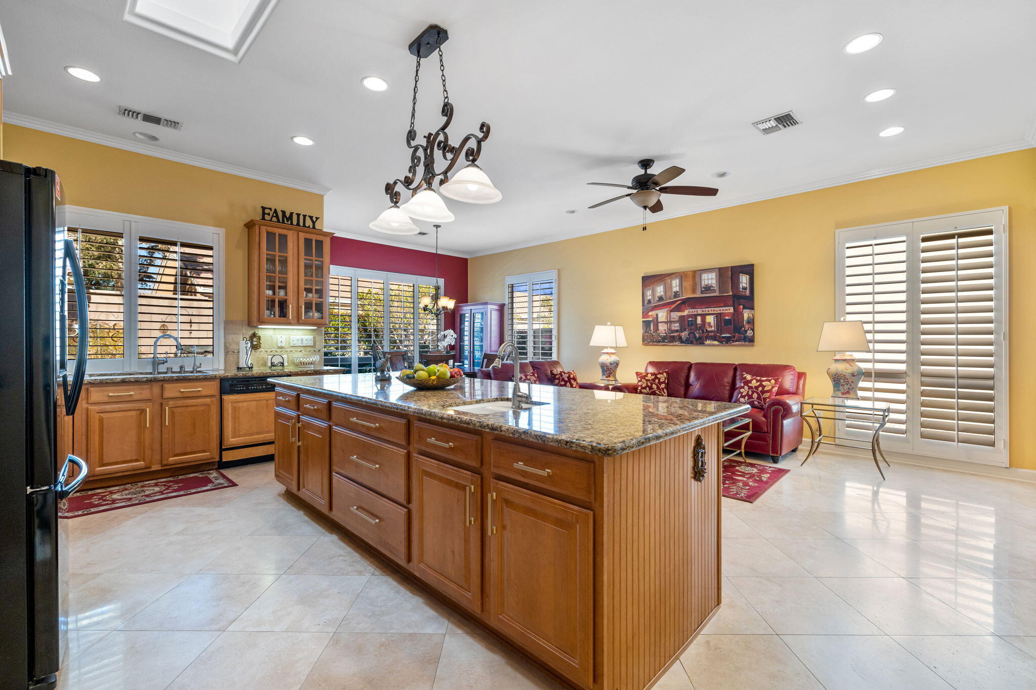 Located in the best 55+ community in the valley, Sun City Palm Desert, The Monaco is one of the most popular floor plans in the community. It is 2439 sq. ft. and has beautiful light travertine floors, rich bold interior colors, Plantation shutters and crown molding throughout. It has 2 NEWER AIR CONDITIONERS IN 2022. It has 2 bedrooms, a den, 2.5 bathrooms, and a 2 car garage plus a golf cart garage. The kitchen has slab granite, upgraded original maple cabinets with hardware, recessed lights, and a skylight. It's open to the family room and kitchenette area. The living and dining rooms have a wall of windows with a slider out to the backyard. The master bedroom is extended and also has a door out to the private, north-facing backyard, which has citrus trees, a patio cover, misters, a built-in BBQ, and gorgeous concrete overlay. The bathroom has a double vanity, a soaking tub, walk-in shower, and a walk-in closet. The extended guest bedroom is an ''attached casita'', with a separate entrance through double French doors in the courtyard. It has a full bathroom, and plenty of space for a sitting area or an office. The den has been opened up and has tray ceilings, plantation shutters, recessed lights and would be perfect for a guest room or office. The laundry has upper cabinets and includes the washer and dryer. The extended 2-car garage has a golf cart garage, lots of storage cabinets, a washer and dryer, and a newer mini-split A/C. What a beautiful home. Turnkey furnishings are available. SUN CITY PALM DESERT IS ALL ABOUT LIFESTYLE!! It has many clubs, activities, amenities, and low HOA dues. Play at 2 championship 18-hole golf courses and practice facilities, pickle ball, tennis, softball, bocci ball, 18-hole miniature golf course, an honor library, arts and crafts, a ballroom for special entertainment, and 4 saltwater pools kept at 87 degrees with hot tubs. Enjoy 2 great restaurants, a martini/coffee bar, and even a post office. It has a newly renovated classy indInterested in this Listing?
