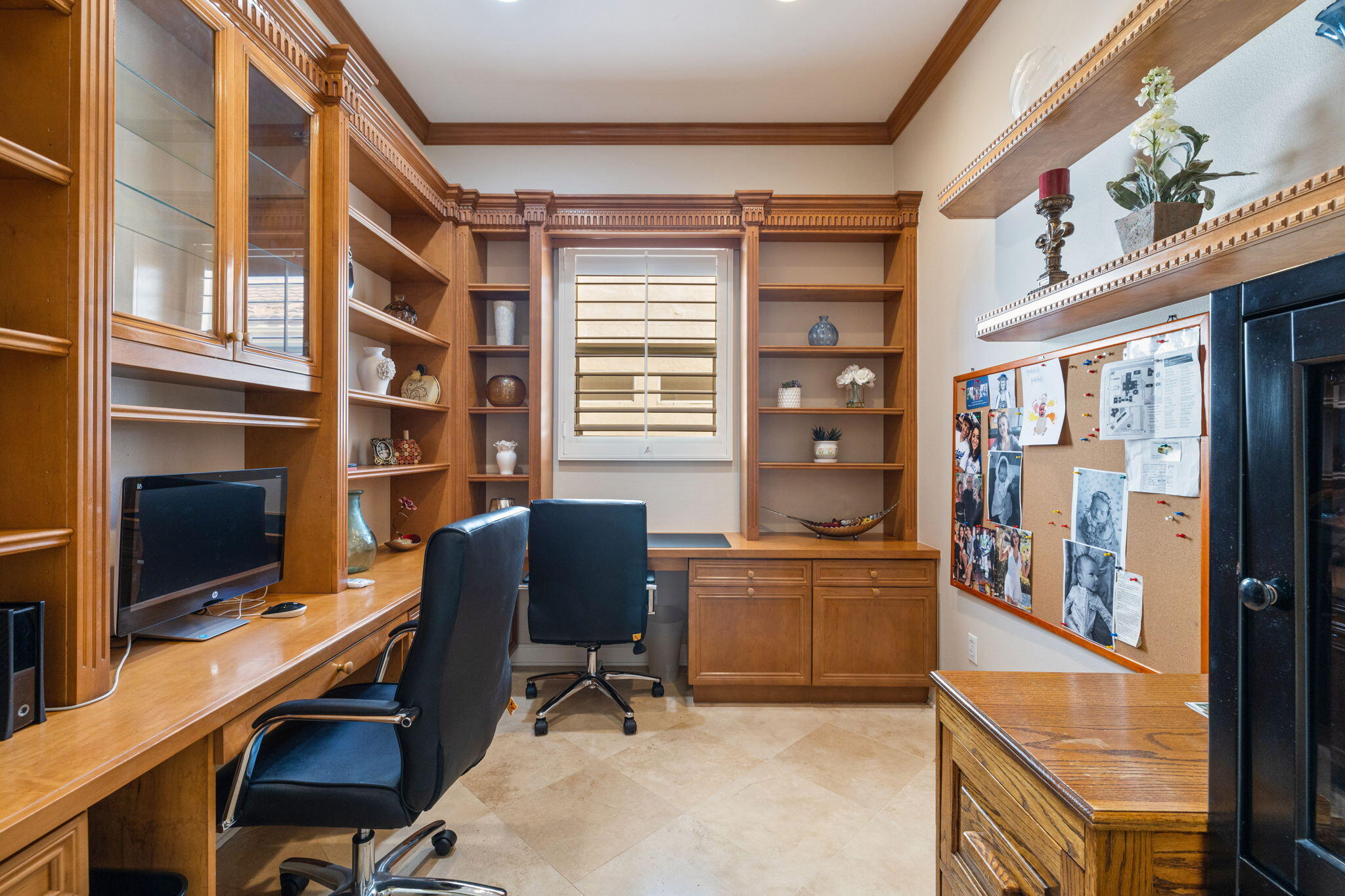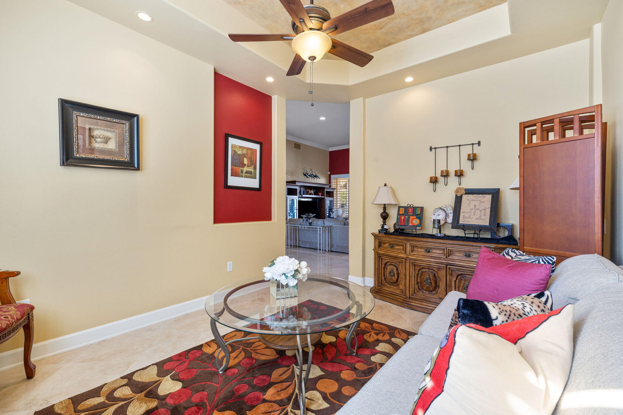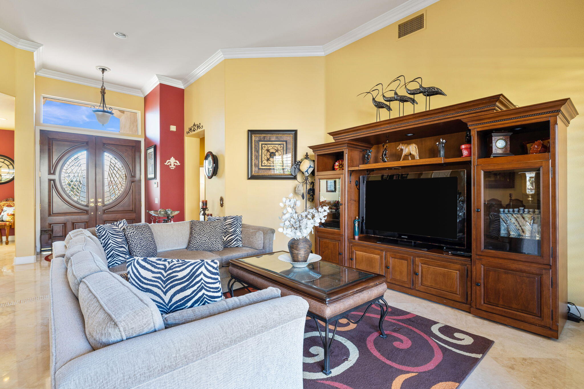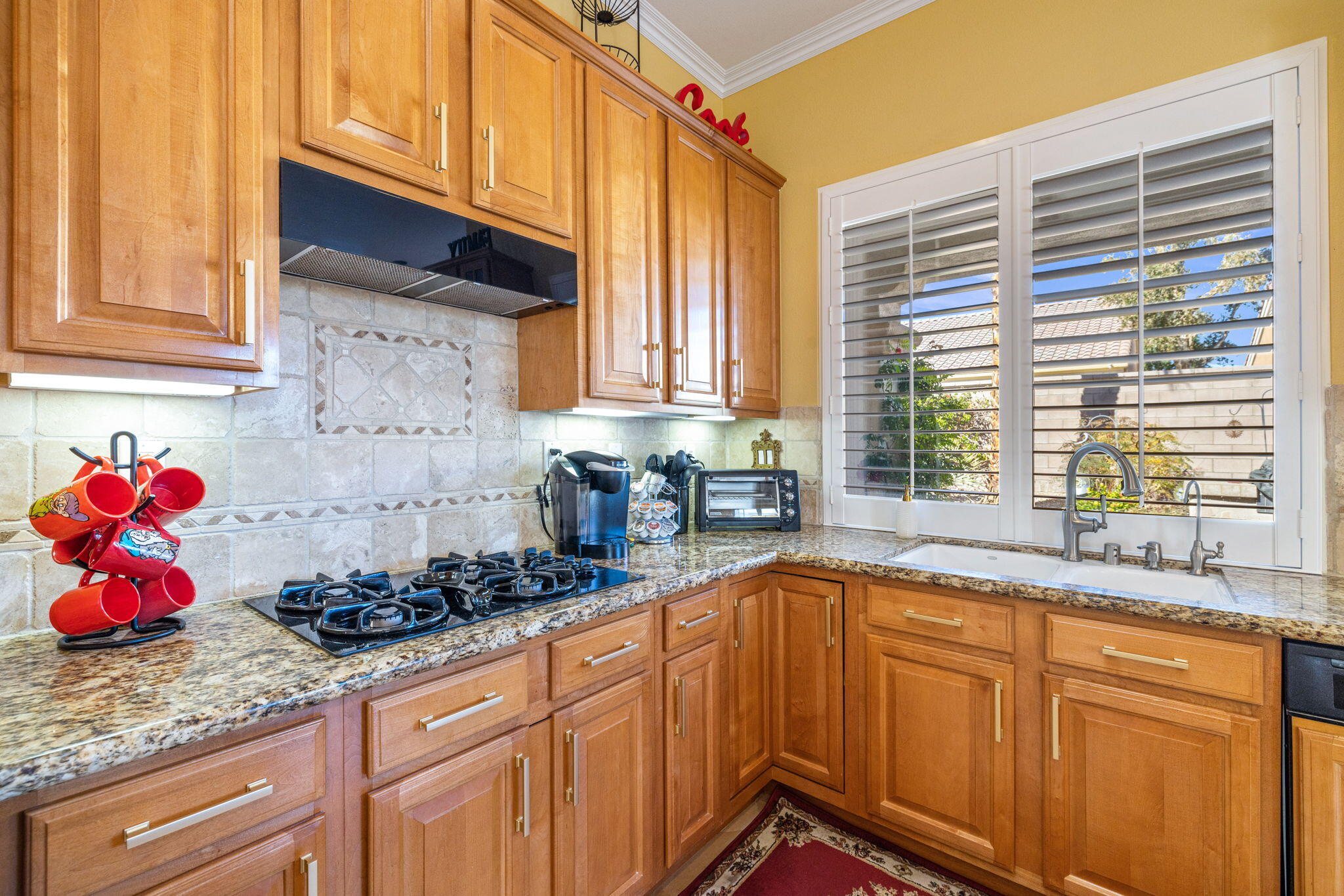 Located in the best 55+ community in the valley, Sun City Palm Desert, The Monaco is one of the most popular floor plans in the community. It is 2439 sq. ft. and has beautiful light travertine floors, rich bold interior colors, Plantation shutters and crown molding throughout. It has 2 NEWER AIR CONDITIONERS IN 2022. It has 2 bedrooms, a den, 2.5 bathrooms, and a 2 car garage plus a golf cart garage. The kitchen has slab granite, upgraded original maple cabinets with hardware, recessed lights, and a skylight. It's open to the family room and kitchenette area. The living and dining rooms have a wall of windows with a slider out to the backyard. The master bedroom is extended and also has a door out to the private, north-facing backyard, which has citrus trees, a patio cover, misters, a built-in BBQ, and gorgeous concrete overlay. The bathroom has a double vanity, a soaking tub, walk-in shower, and a walk-in closet. The extended guest bedroom is an ''attached casita'', with a separate entrance through double French doors in the courtyard. It has a full bathroom, and plenty of space for a sitting area or an office. The den has been opened up and has tray ceilings, plantation shutters, recessed lights and would be perfect for a guest room or office. The laundry has upper cabinets and includes the washer and dryer. The extended 2-car garage has a golf cart garage, lots of storage cabinets, a washer and dryer, and a newer mini-split A/C. What a beautiful home. Turnkey furnishings are available. SUN CITY PALM DESERT IS ALL ABOUT LIFESTYLE!! It has many clubs, activities, amenities, and low HOA dues. Play at 2 championship 18-hole golf courses and practice facilities, pickle ball, tennis, softball, bocci ball, 18-hole miniature golf course, an honor library, arts and crafts, a ballroom for special entertainment, and 4 saltwater pools kept at 87 degrees with hot tubs. Enjoy 2 great restaurants, a martini/coffee bar, and even a post office. It has a newly renovated classy indInterested in this Listing?