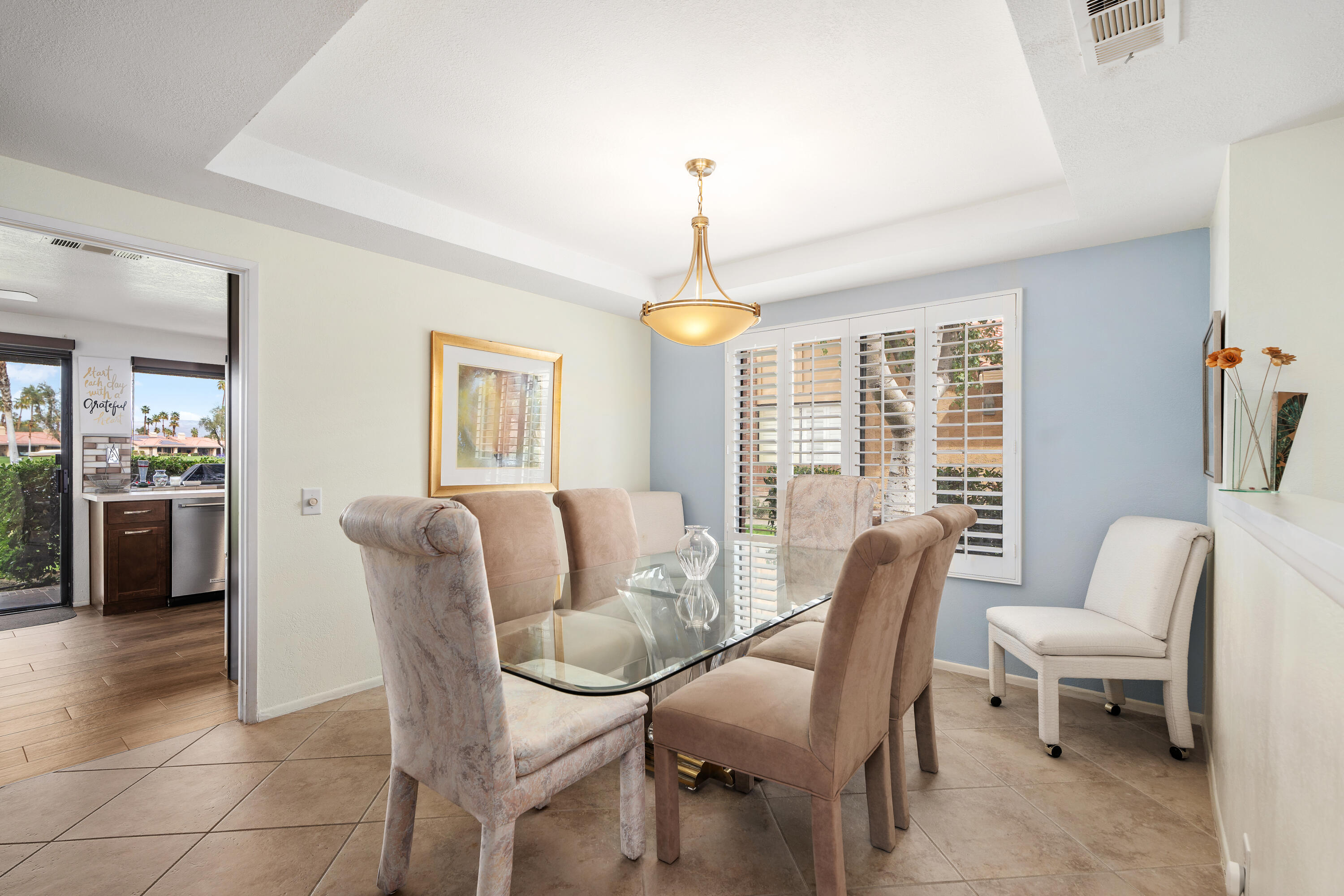 Welcome to your dream home! This upgraded 2,051 sq. ft. El Grande model condo offers 3 spacious bedrooms and 3 well-appointed bathrooms, ideal for comfort and style. The high ceilings create an open and airy atmosphere, enhanced by strategically placed solar tubes that flood the space with natural light.Step outside onto the tiled patio, where you can relax and watch golfers tee off on a picturesque 210-yard par 3 hole. The sparkling pool is just a short walk away, perfect for those sunny days. Plus, your HVAC has been recently updated, ensuring comfort year-round.The kitchen was beautifully remodeled just 3 years ago, featuring sleek new cabinets and stainless steel appliances, making it a chef's dream.Enjoy the convenience of being within walking distance to the clubhouse, offering dining, card games, pickleball, tennis, and a nearby fitness center. Chaparral Country Club is centrally located, providing easy access to fine shopping, dining, and entertainment in Palm Desert.Marvel at the stunning mountain views from nearly every direction, or simply unwind on your patio to the soothing sound of rustling palm fronds.Interested in this Listing?