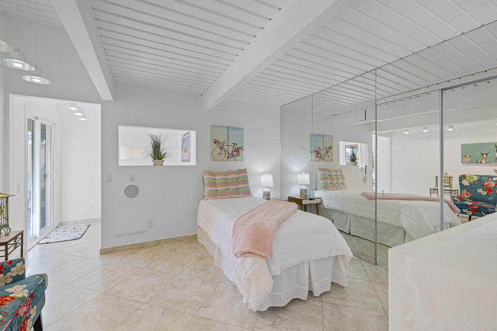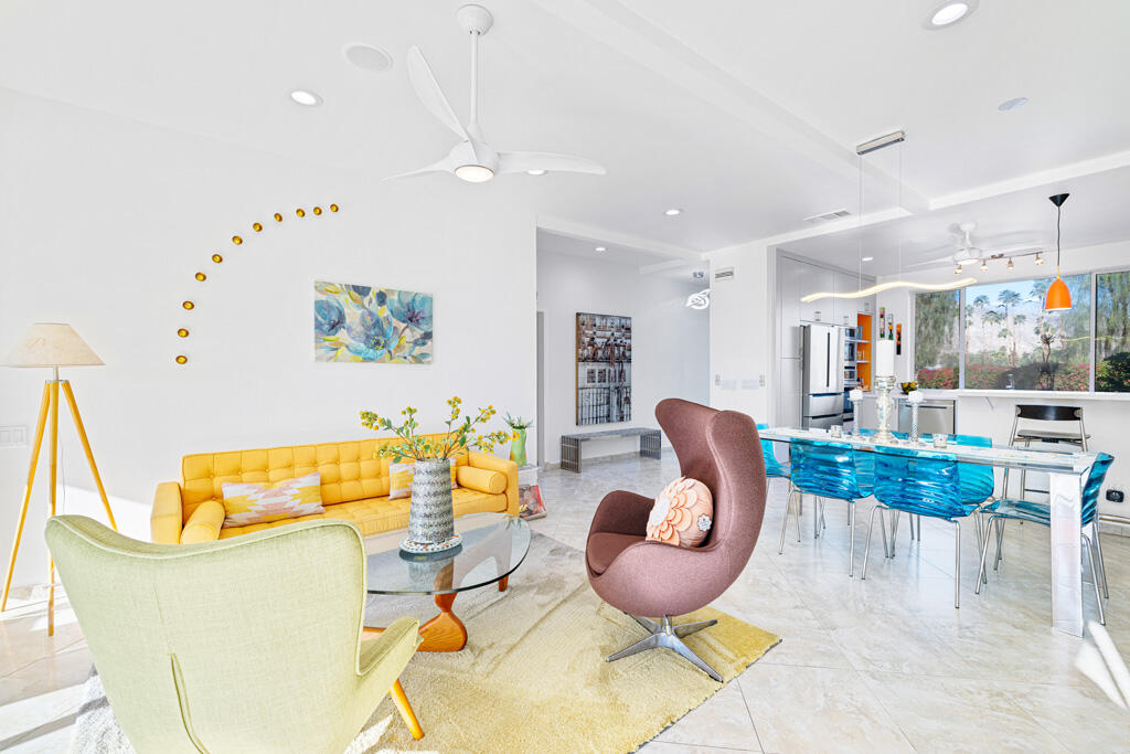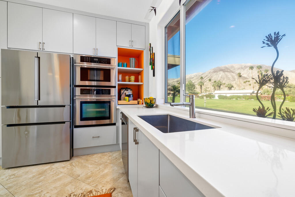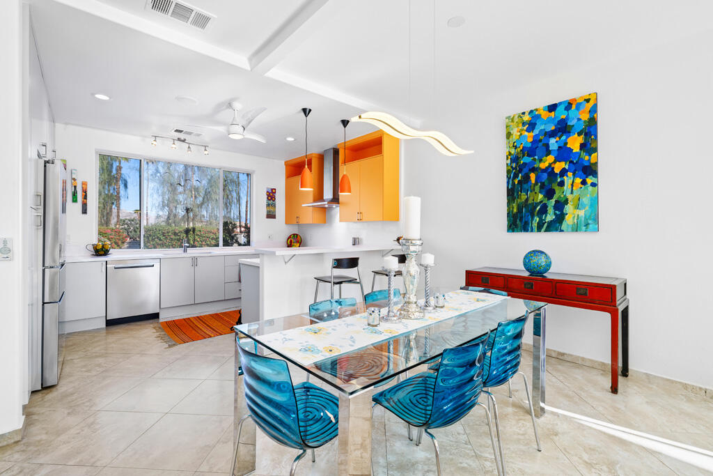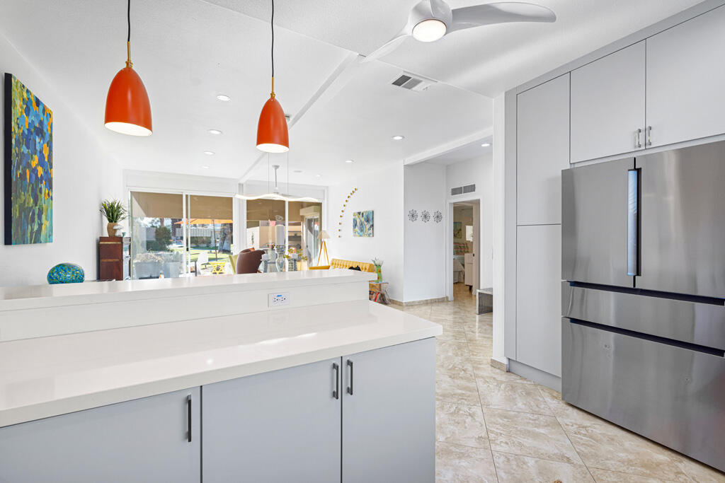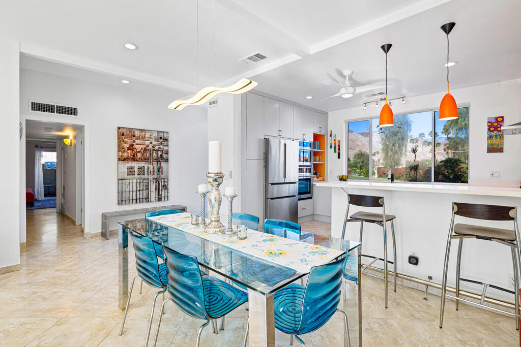 This expanded William Krisel designed Circle 1 Sandpiper home beautifully blends mid-century charm with thoughtful, modern enhancements. Its versatile layout allows for various living and sleeping arrangements for ultimate flexibility. A stunning 8-foot embellished front door welcomes all, while interior doors were replaced with custom flat doors for a fresh look. The light filled entry with 9-foot ceilings flawlessly merges relaxing indoor living with outdoor entertaining on the captivating ramada. Double pane picture windows and sliding doors frame extraordinary sunrises and sunsets with epic mountain views. The refreshed kitchen showcases sleek, custom cabinetry with new quartz counters, enhancing the airy atmosphere of the adjoining entertaining space. One large bedroom features a convenient indoor laundry closet and a spacious walk-in closet that doubles as a dressing room. The other bedroom options offer versatile configurations with great closet space and sliders out to private patios. Recent energy-efficient upgrades include a newer heat pump for heating and cooling, a double-depth foam roof and custom insulated exterior shades for added efficiency and privacy. Perfectly situated in the center of the Coachella Valley near El Paseo, this home is a true gem for those seeking a blend of history and modern, versatile living.Interested in this Listing?