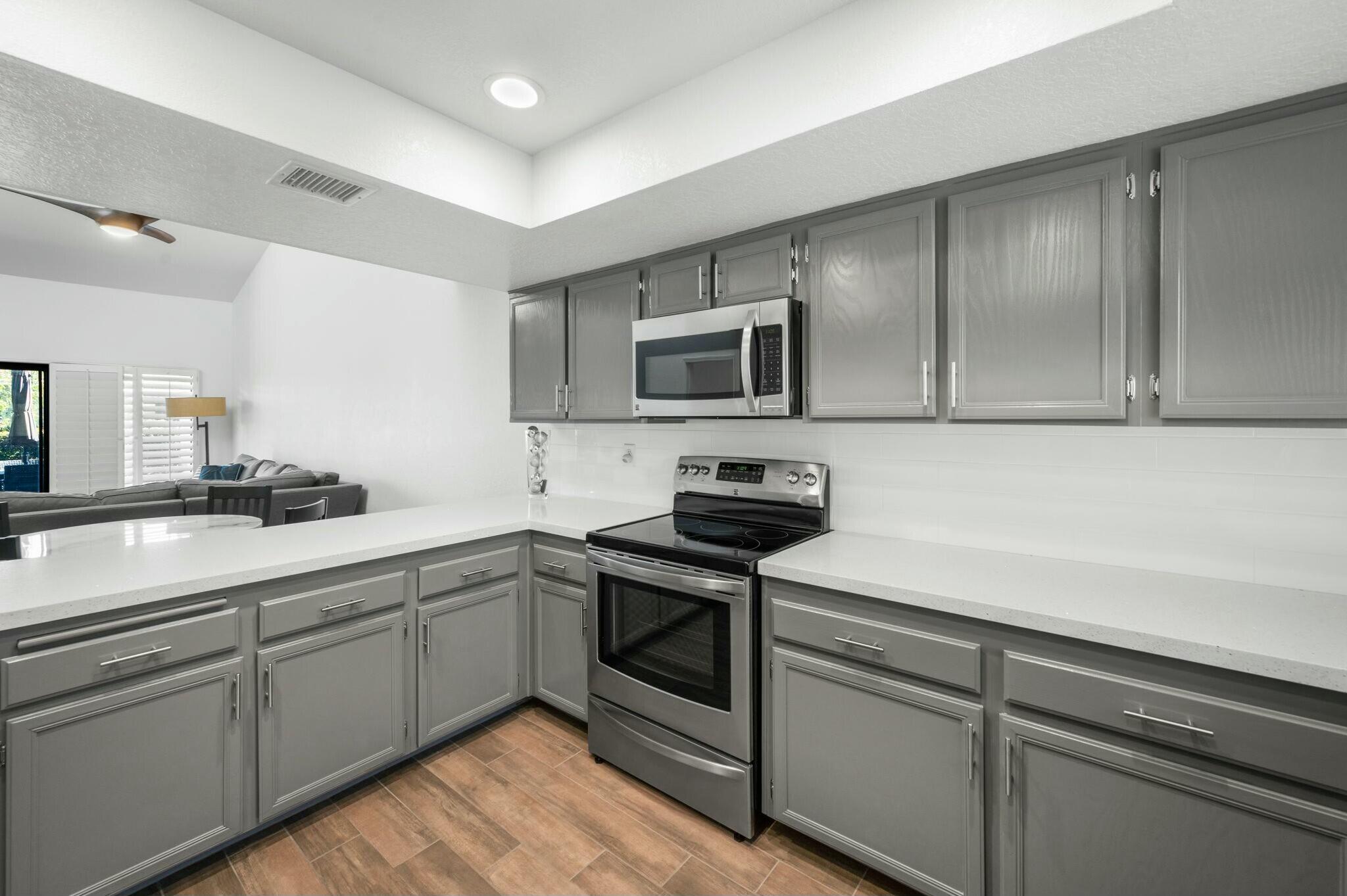 Gorgeous Fully Remodeled 2-Bedroom, 2-Bathroom Condo in a Gated Community!This beautifully updated condo offers a modern, open, and airy living space with 2 bedrooms and 2 bathrooms, perfect for comfortable living. The home has been completely remodeled and features hardwood tile throughout, creating a seamless and stylish look in every room.Recent updates include a brand-new HVAC system, roof, and front courtyard landscaping, all replaced within the last 3 years, providing peace of mind and energy efficiency.Step outside to enjoy your very own private back patio, an ideal spot for relaxing, entertaining, or enjoying a quiet morning coffee.The gated community offers fantastic amenities, including tennis and pickleball courts, as well as a refreshing pool, making it an ideal place to relax or stay active.With its bright and inviting atmosphere, this home is completely move-in ready, offering the perfect combination of convenience and luxury. Don't miss the opportunity to make this stunning condo your own! Seller is MotivatedInterested in this Listing?