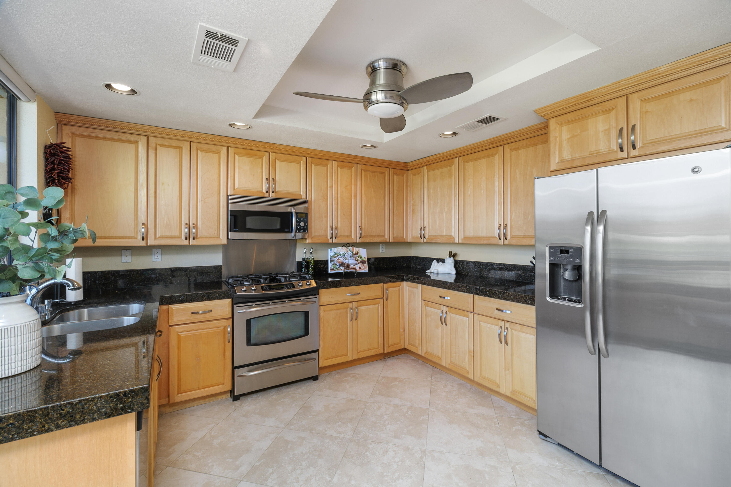 Welcome to Monterey Country Club-one of best locations in Coachella Valley! Sitting on a premium, wide fairway lot along the 1st fairway of the South Course, offering breathtaking panoramic views of the lush golf course and surrounding mountains. Step through a private, enclosed courtyard and into an elegant entryway, where a gorgeous custom medallion inlay sets the tone for the home's sophisticated design. Inside, the spacious living room features vaulted ceilings, celestial windows for abundance of natural light, creating a bright and airy ambiance. A custom-designed fireplace with built-in cabinetry making this the perfect space to relax or entertain. The updated kitchen, boasts granite countertops, stainless steel appliances, custom cabinets with pull-out shelves, and a Culligan water filtration system. The seamless indoor-outdoor flow allows for easy access to the extended back patio, where you can enjoy spectacular morning sun & sunsets. This home features two spacious bedrooms, two beautifully remodeled bathrooms, and a versatile den/office. French glass doors provide separation between the office, dining room, and bedroom, offering flexibility and style. The primary suite is a serene retreat, filled with natural light and designed for comfort. Monterey Country Club offers 27 holes of championship golf, 37 sparkling pools and spas, tennis, pickleball, bocce ball, fitness center, and a vibrant clubhouse with an on-site restaurant. Furnishings and Golf Cart included.Interested in this Listing?