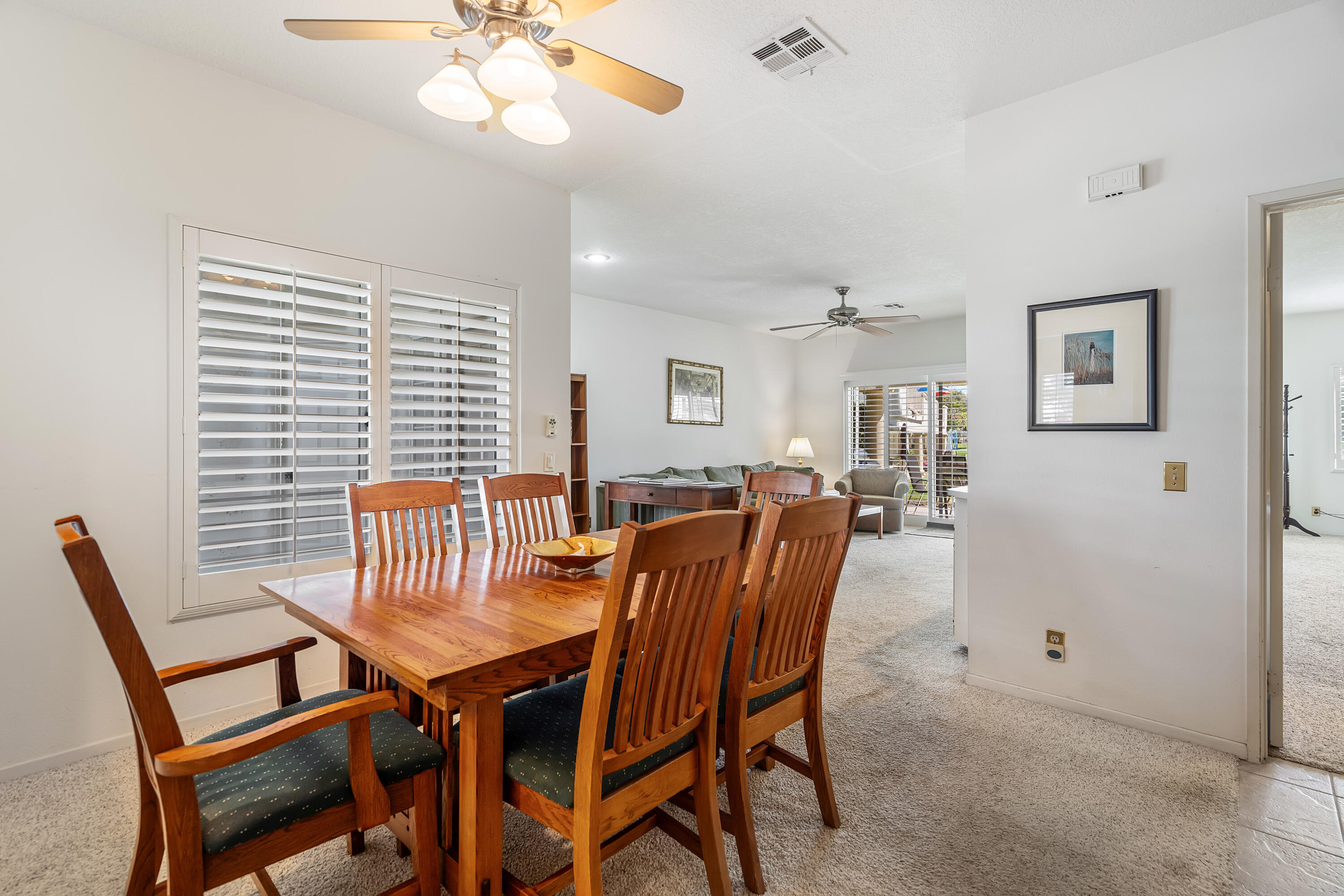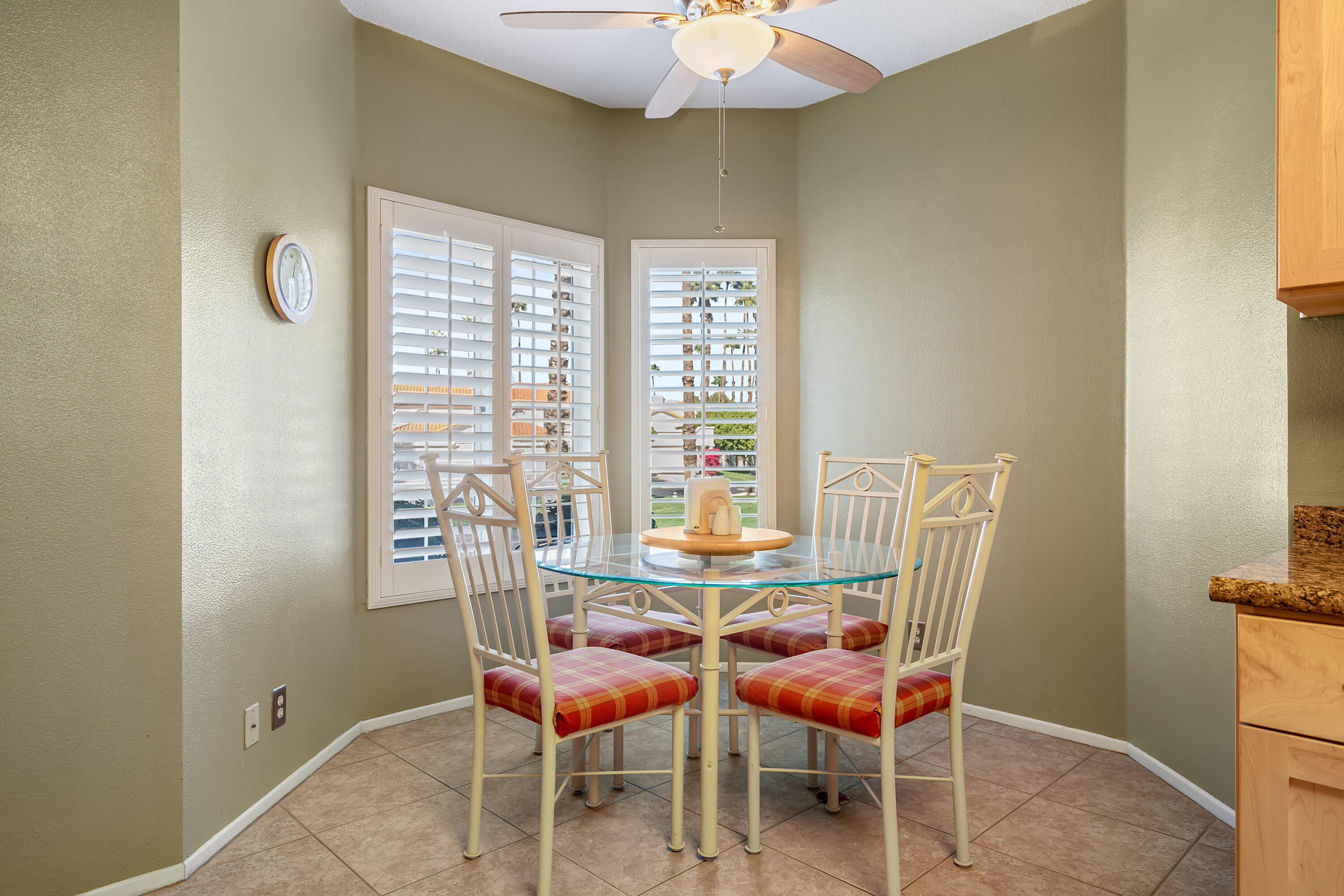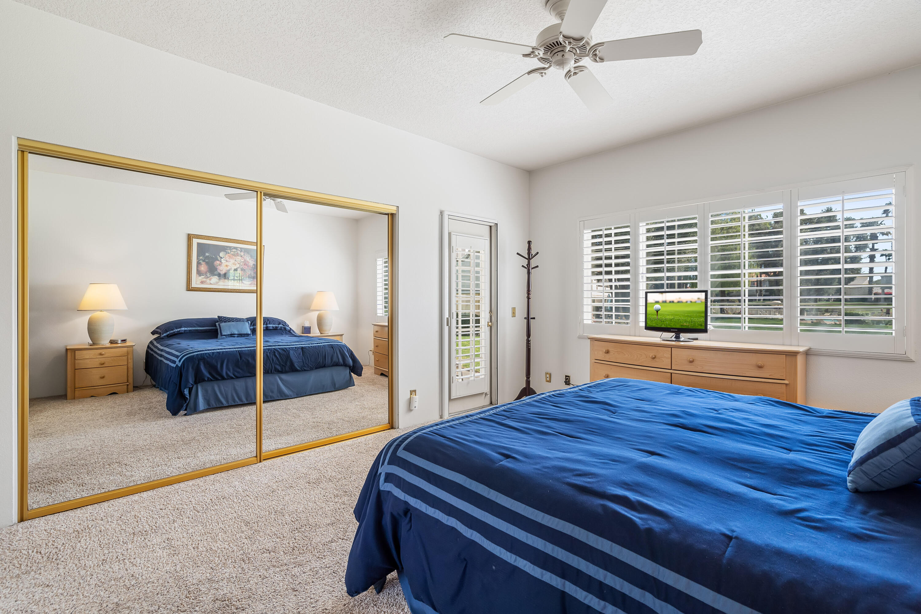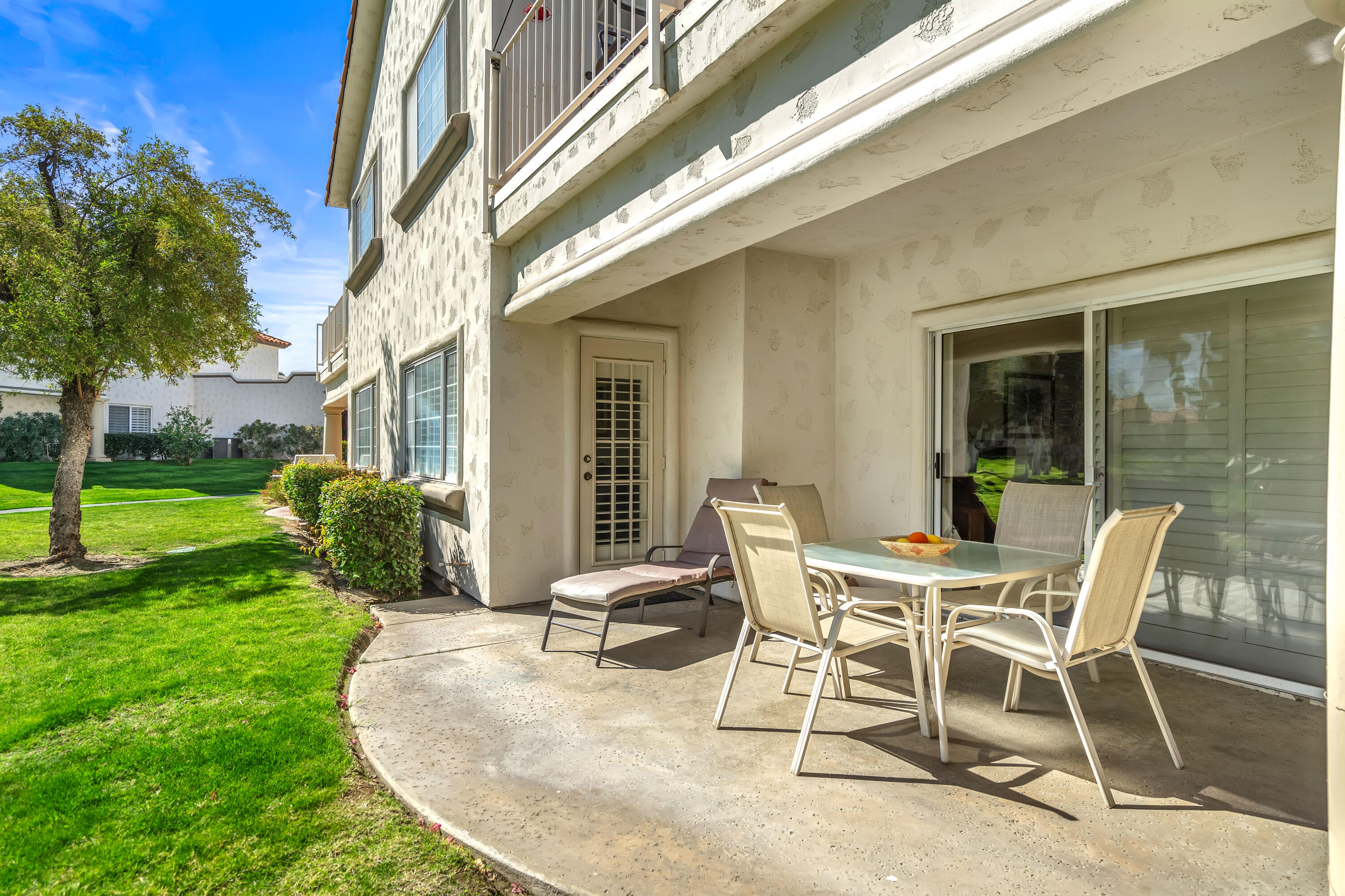 Enjoy the peacefully greenbelt setting with views of the trees and HUGE pool just steps away from this GROUND LEVEL 2 bedroom 2 bath condo in Desert Falls C.C. Featuring beautiful slab granite kitchen counters, stainless steel appliances, light maple cabinetry and cozy fireplace in the family room. The large primary suite also has slab granite counters, dual vanities, custom cabinetry and a French door to your sunny covered rear patio with views. Additional upgrades include Plantation shutters, garage storage cabs, replaced A/C unit, water heater and garage door opener. Desert Falls C.C. features an 18 hole golf course, pickle ball & tennis courts, fitness center, pools, clubhouse restaurant and more. Centrally located in the Coachella Valley. close to fabulous dining, shopping, Accusure Arena, Indian Wells Tennis gardens, casinos and great golf courses.Interested in this Listing?