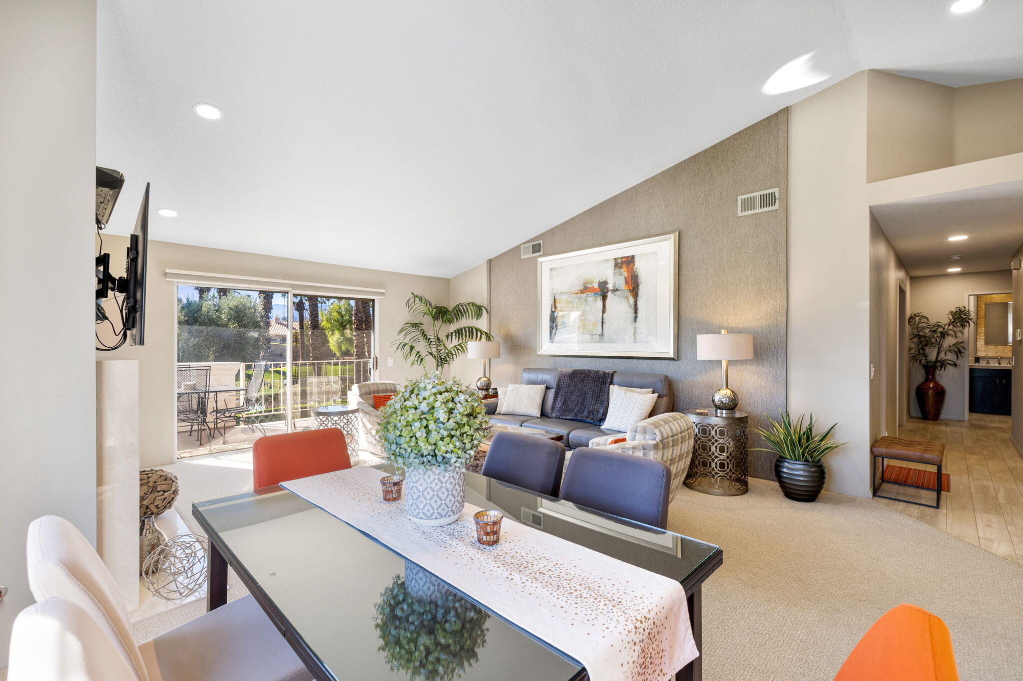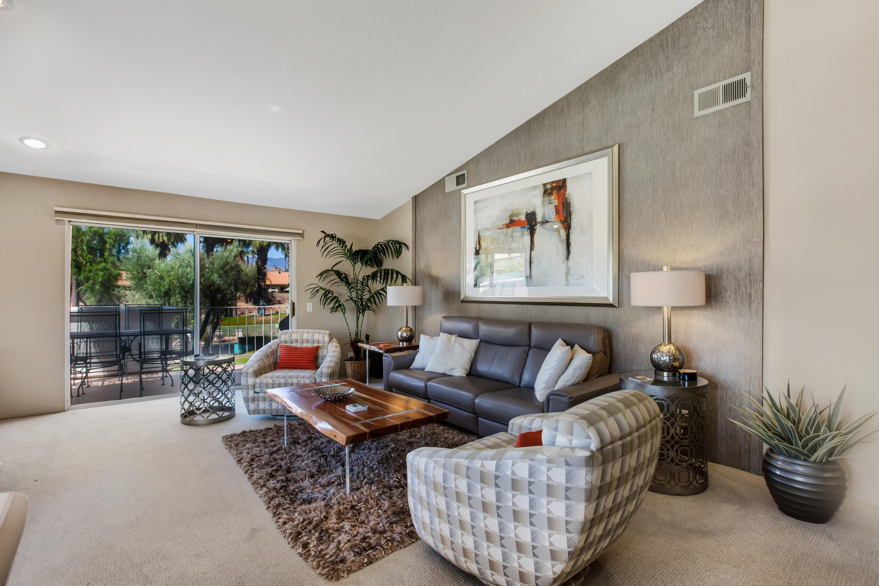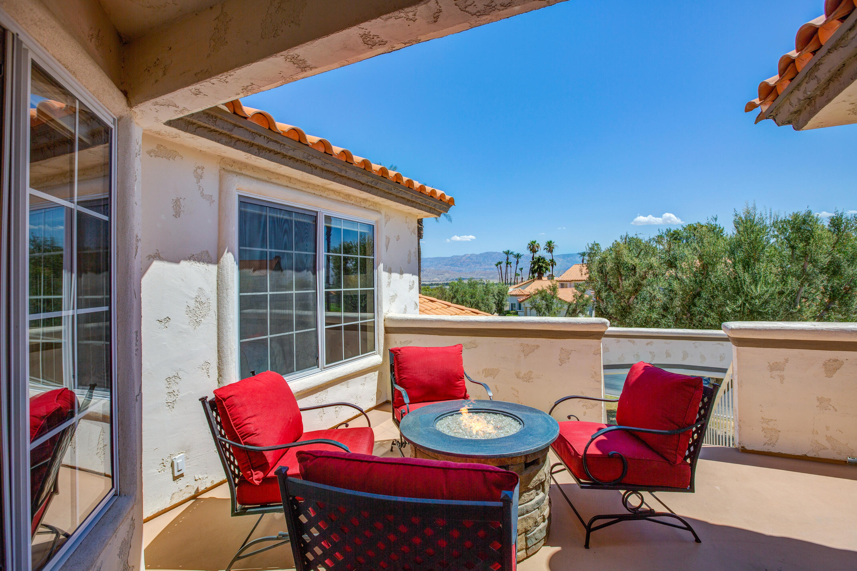 Now vacant and Easy to show!Stunning in all ways best describes this Full 3 bedroom, two gorgeous baths & one half, Sunshine filled upper-level Villa at Beautiful Desert Falls CC, located in the heart of Palm Desert. **Seller may finance with 25% down* Resort living at its finest.Upscale Remodel -Chef's kitchen-new upscale gas stove & SS appliances- gorgeous stone counters & custom cabinetry. Beautiful bathrooms - check out built-in headboard in second suite. Walkin closets in both suites. Custom furnishings & custom artwork. 99% of it all included! Mostly Tile flooring with carpeting in living room & two bedrooms. Morning Sun in breakfast nook with Southern exposure on back balcony - which is almost 42ft! Private BBQ. Has new awning. Overlooking plush park like setting & terrific pool & spa -unobstructed views of the San Jacinto mountains. View from large front balcony-see cozy firepit. HOA dues include all exterior, roof, m=Fitness Membership w/ Tennis & famous pickle ball! Wi-fi, cable, 24 hr. security. Semiprivate Championship Scottish Links Golf course, pay as you play or dine but several memberships also available. Close to so many restaurants, famous shopping on El Paseo, right off I 10, minutes to casinos, veterinarians close by, literally minutes to renown Eisenhower Medical & our new Acrisure Arena w/top notch entertainment & sports. 15 min. from PS A/P. Two car pristine garage with a custom golf cart which can be included! Call for your private tour -Don't let this one slip away!Interested in this Listing?