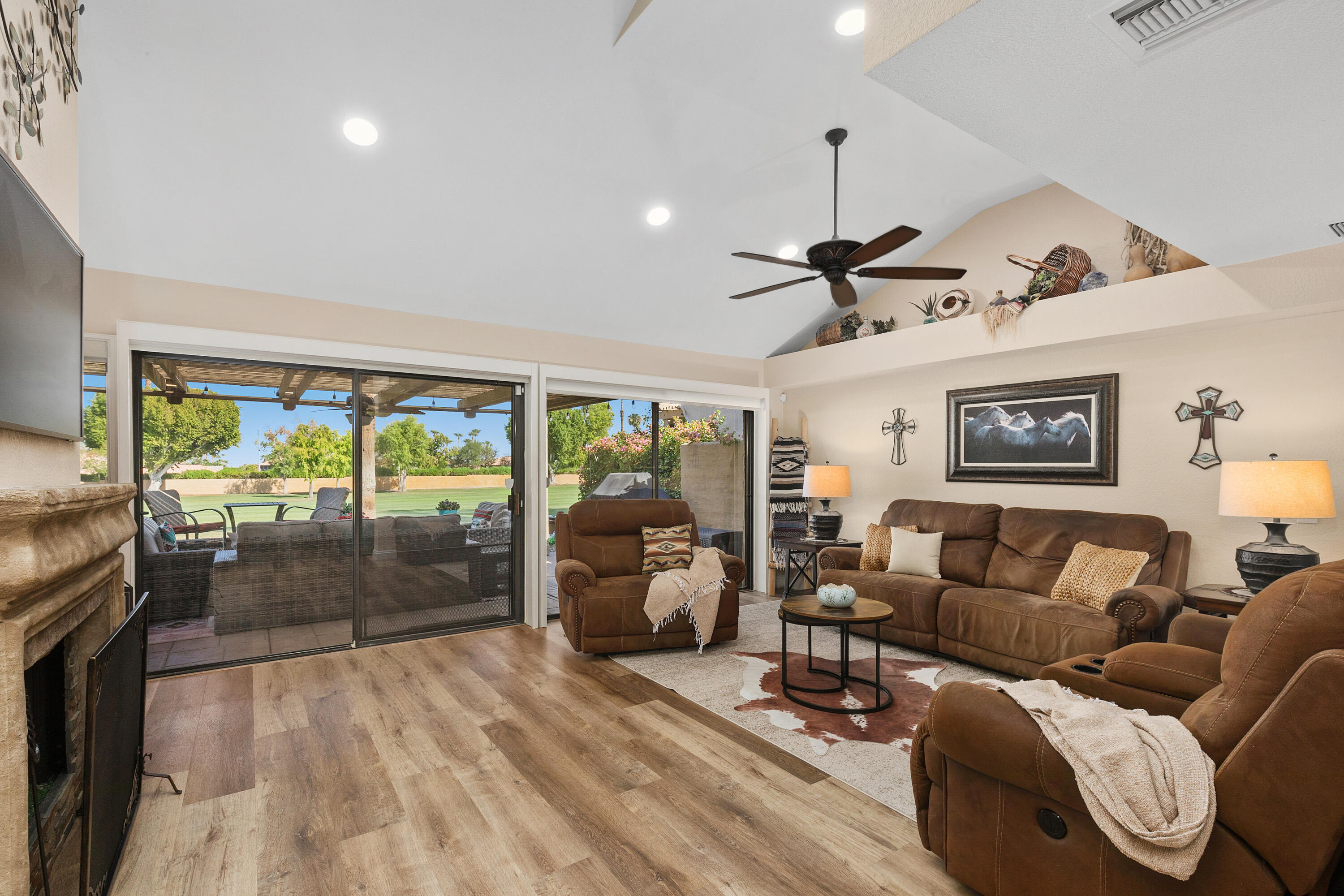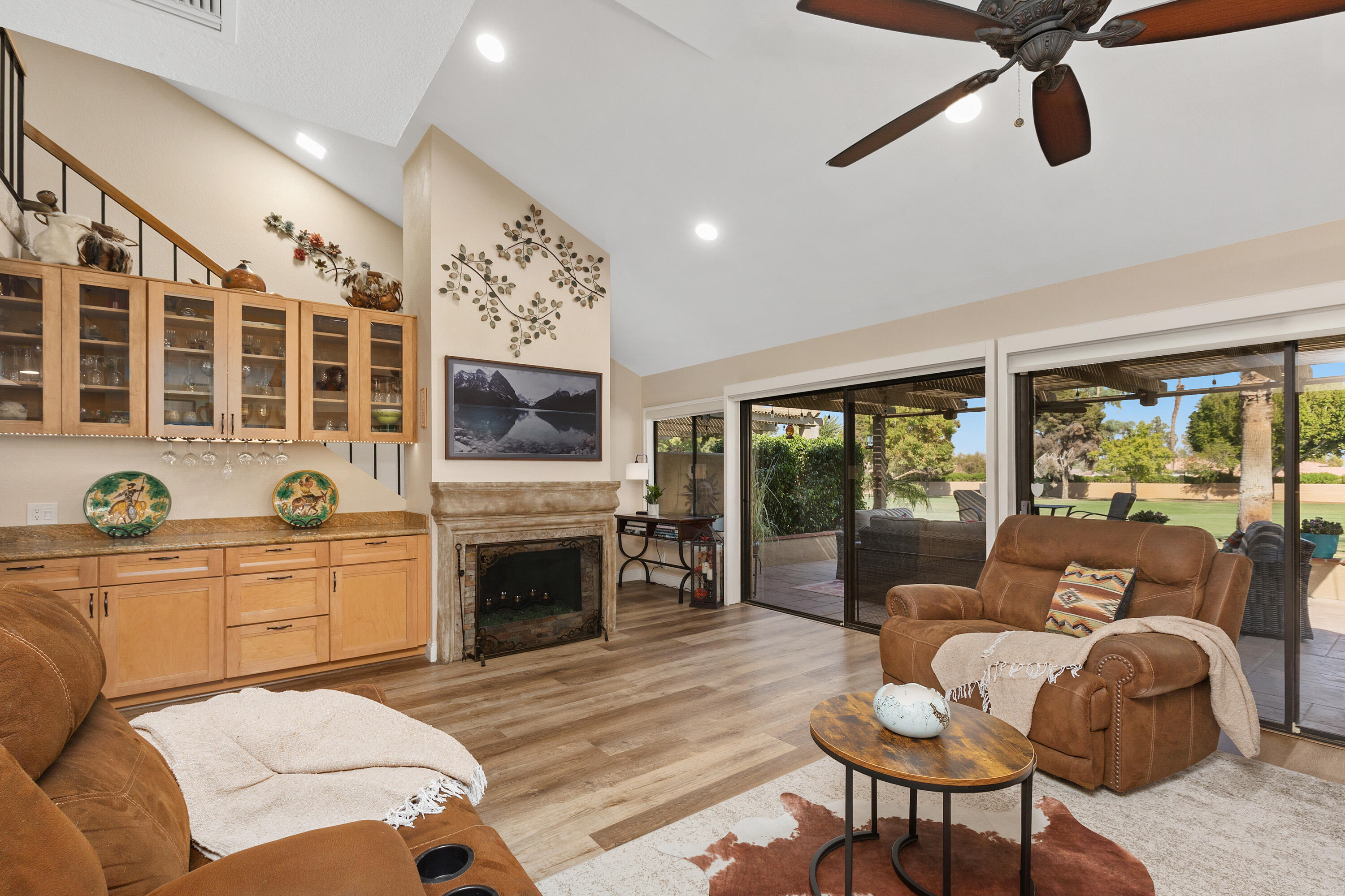 VERY MOTIVATED SELLERS!Step into your dream home! This beautifully renovated condo offers modern luxury and comfort in every corner. The updated kitchen features refreshed cabinets, new appliances, and granite slab surfaces, perfect for entertaining. Personal design touches include electric blinds in the living room, recessed LED lighting in living room & kitchen, custom sculpted fireplace, and extra storage added in in the powder room.The open floor plan connects seamlessly to the spacious living area, where guests can relax and enjoy scenic views of the golf course.With 1,892 sq. ft. of living space, with additional sitting and office space in the upstairs master this home boasts two generously-sized bedrooms, a large 'flex' room that can be used as a den/bedroom/office/dining room, new flooring throughout, and a formal dining room with an adjacent cozy sitting area--perfect for winding down with your favorite beverage. The rear patio features a French drain and refurbished patio slab. New skylight brings in extra natural light and more custom cabinetry added in the garage.Located in the exclusive Woodhaven Country Club, residents can enjoy an 18-hole golf course, a full clubhouse, dining options, a fitness center, tennis and pickleball courts, and four pools and spas--heated during the winter months.Plus, with shopping and dining just a short walk away, this centrally located desert paradise offers the perfect blend of convenience and resort-style living. Your dream home awaits!Interested in this Listing?