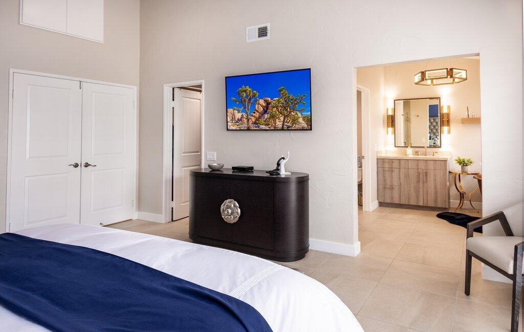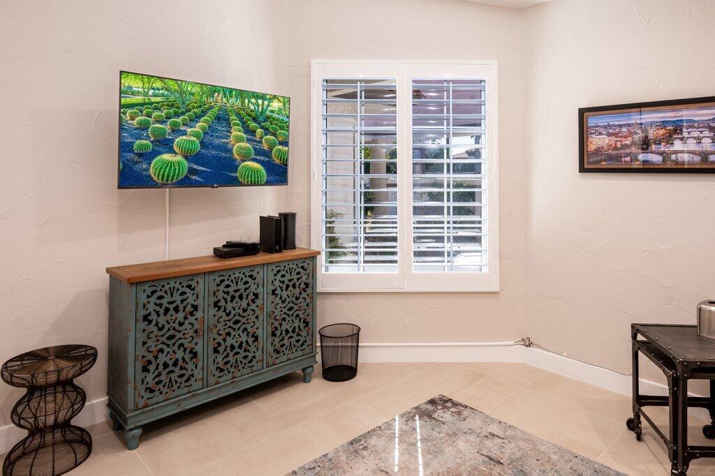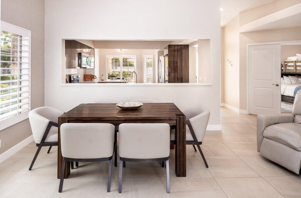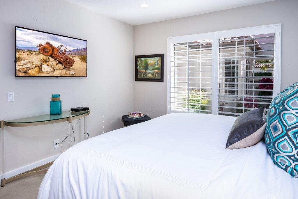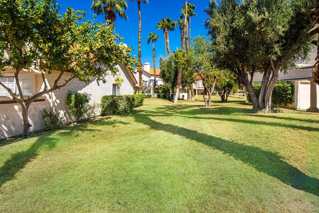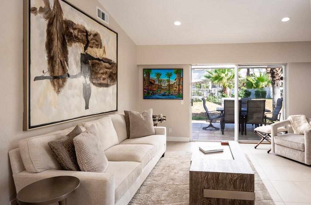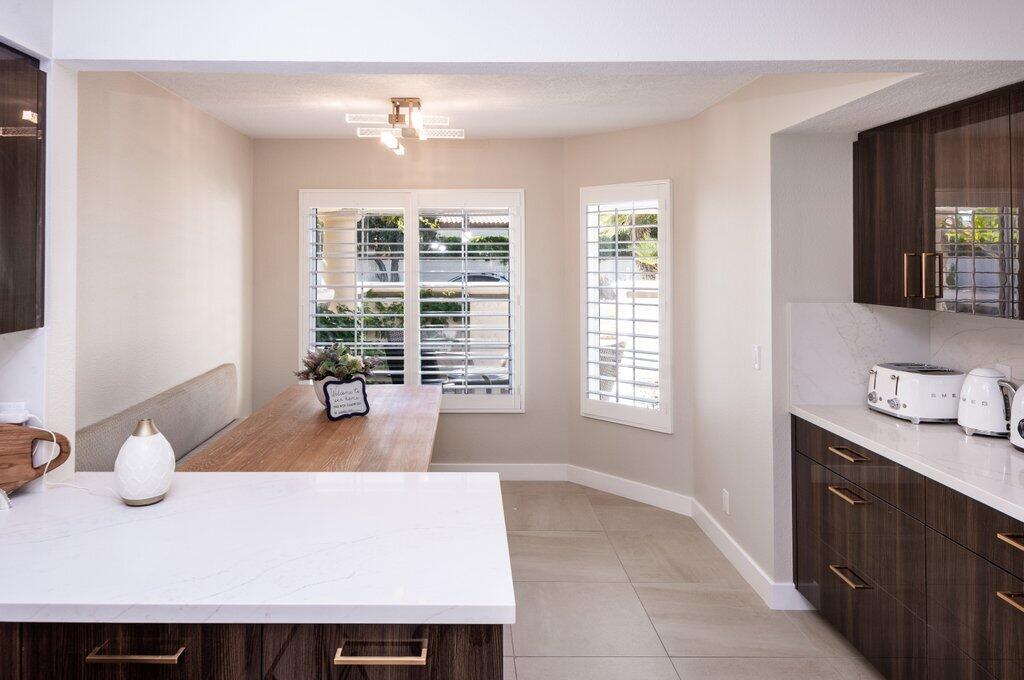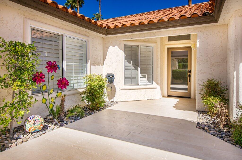 Very rare, seldom on the market, ideal location next to large greenbelt and pool/spa, this Plan 3 Villa offers 3 bedrooms, 2.5 baths, impeccably renovated in 2022 with attention to every detail. Kitchen opens to vaulted ceiling living room, dining nook with banquette, all new LED lighting, hardware, fixtures, custom tile floors, including both patios, new appliances, quartz counters, custom cabinetry and built-ins throughout. Living room complete with fireplace, electric blinds, custom window treatments everywhere else. Open plan feels larger than 1814 SF with front private courtyard and rear patio. Additional features include new built-in barbecue, closet upgrades, additional storage space, detached remodeled 2 car garage with cabinets and new epoxy floor. Desert Falls allows weekly rentals, no guest fees for using the state-of-the-art fitness center, 8 Pickleball courts, 7 tennis courts, 30+ pools and spas. 24-hour guard gated security, Association fees ($677 p/month) cover all exterior maintenance, building structure insurance, cable/internet package, trash, fitness and sport center. Golf course is private/public. A short golf cart ride to shopping centers, restaurants and Club amenities.Interested in this Listing?