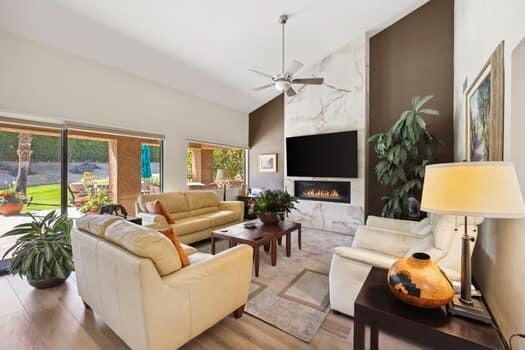 Situated in a prime cul-de-sac location near the Clubhouse, this home exudes quality and careful attention to detail. Blending the latest finishes and craftsmanship. The end result is a place to be proud of. Strategically situated with awe inspiring views of the golf course and the mountains beyond. While relaxing on the huge patio, you can enjoy the firepit and natural gas BBQ. This all private and secluded. This well thought out extensively remodel was meticulously carried out. The 6 burner Viking gas stove includes a griddle. It looks well near the Viking stainless steel refrigerator. There is a walk-in panty with ample space. The soft-tone wood design tile floor are soothing. Nothing was overlooked. Dazzling finishes. The main bath now incorporates a Jacuzzi tub with jets and shower for all your needs. Ample storage is available in the walk-in closet. The wine cooler allows for gracious guest entertaining. The fireplace was redone with a new insert and porcelain tile treatment. Upgraded lighting to set the proper mood for every moment. Even the garage was treated to a new 'rock' floor. The extra long driveway that works well for guest parking and entry walk way have nicely designed paverstones.Interested in this Listing?