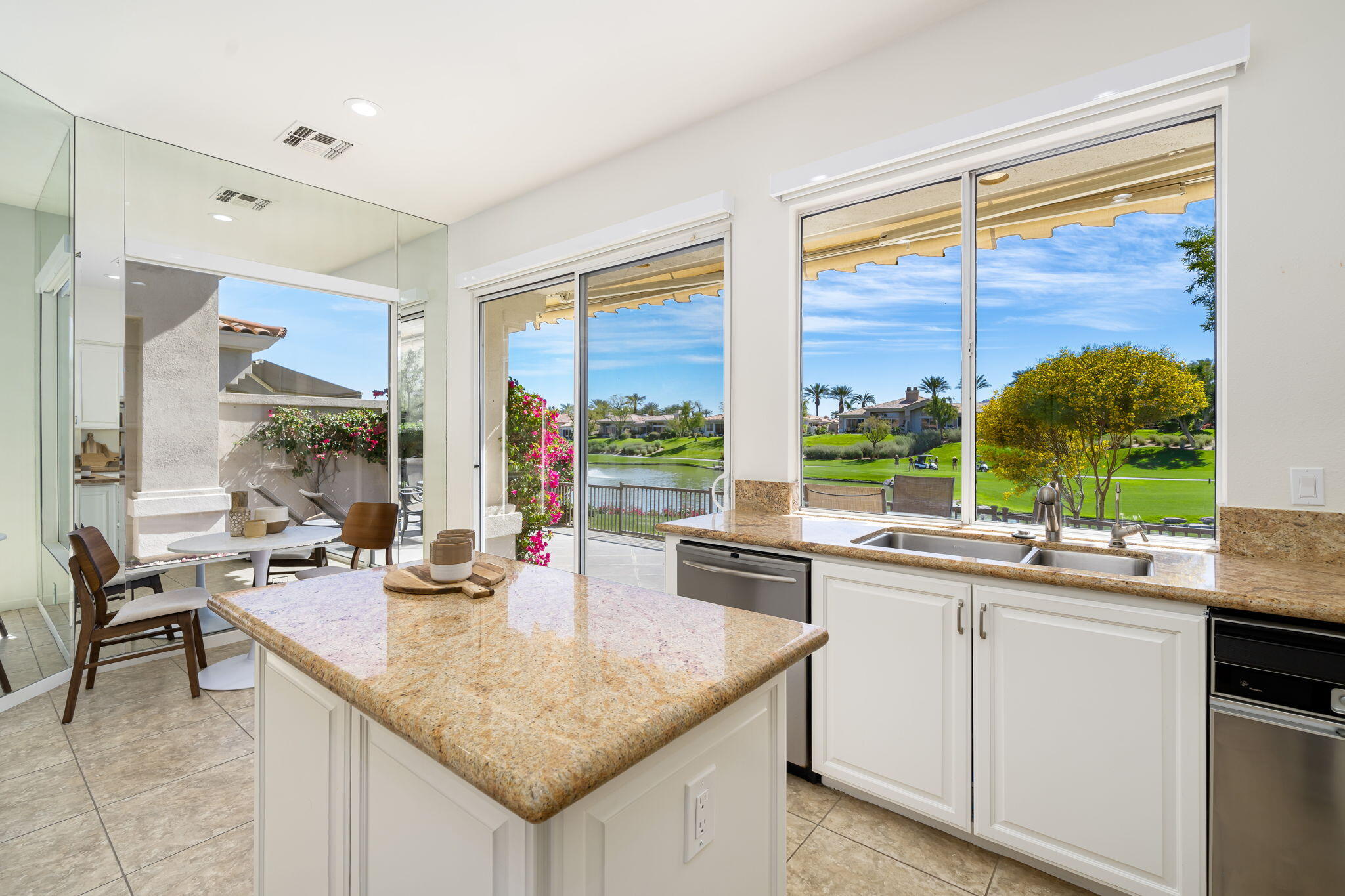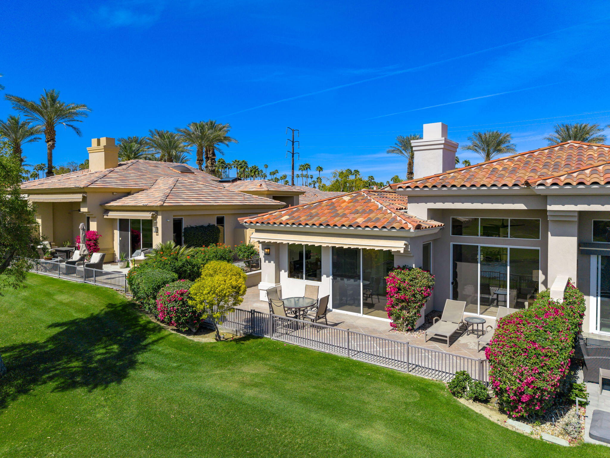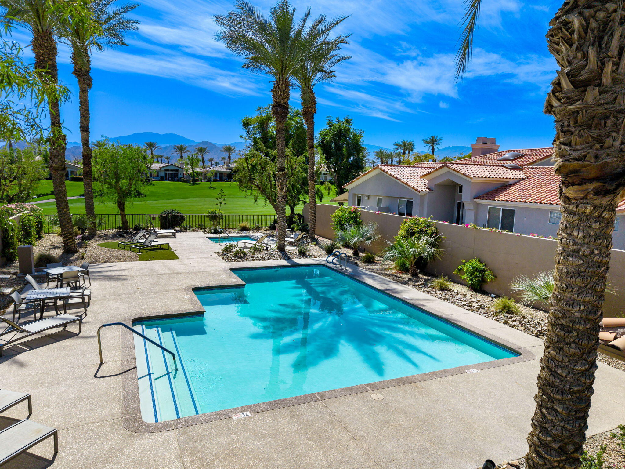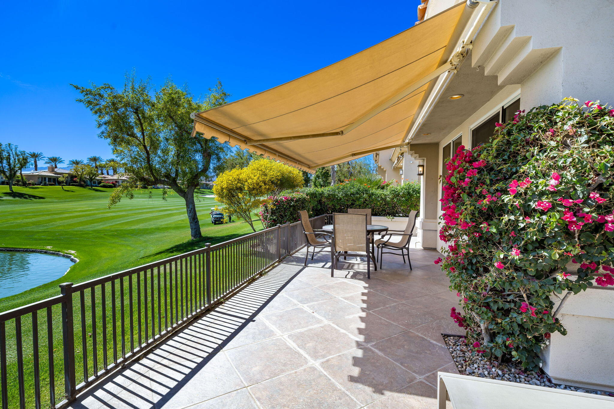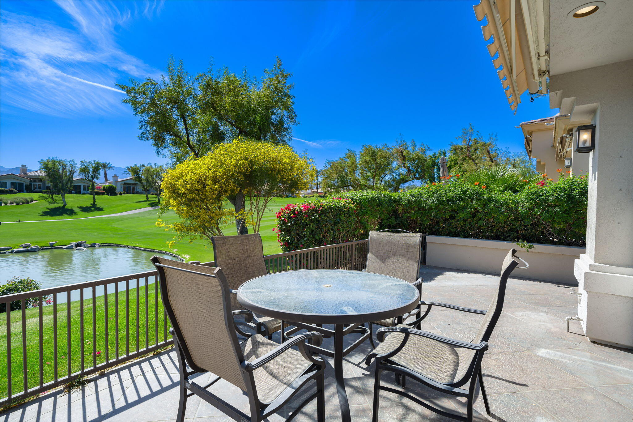 Updated with South Lake Views! CLUB Membership available for this home! Offered Turnkey Furnished, this Acacia 4 model condo features 3 bedrooms/3.5 bathrooms in the private, guard-gated Indian Ridge Country Club. The south-facing patio is fenced with electric awning and pavers, and provides expansive views of lake, mountains and Grove #7. Open floor plan with views and direct access to patio area from living room and kitchen - ideal for dining & entertaining. Living room features a fireplace, electric window blinds and wet bar. The separate dining area is open to the living room and adjacent to the kitchen. Light and bright with tile and laminate flooring throughout. New furnace, NEST thermostats & Ring doorbell. Kitchen has been updated with electric blinds, granite counters, stainless appliances, oven with a warming drawer and large island. The cozy breakfast nook looks out to the patio with the lake beyond. The Primary suite has a private patio and remodeled ensuite bathroom with raised granite counters, a free-standing tub, a separate shower and a large walk in closet. Both of the guest bedrooms are en suite, with the front bedroom currently set up as a den with office workspace. The attached 2-car garage has direct access in to the house via the laundry room. Great location - just two houses away from one of the many community pools & spas, and around the corner from ''Rover's Ridge'' dog park. HOA monthly dues include security, cable & internet, all gardening, exterior paint, roof maintenance, exterior water, exterior pest control and trash.Interested in this Listing?