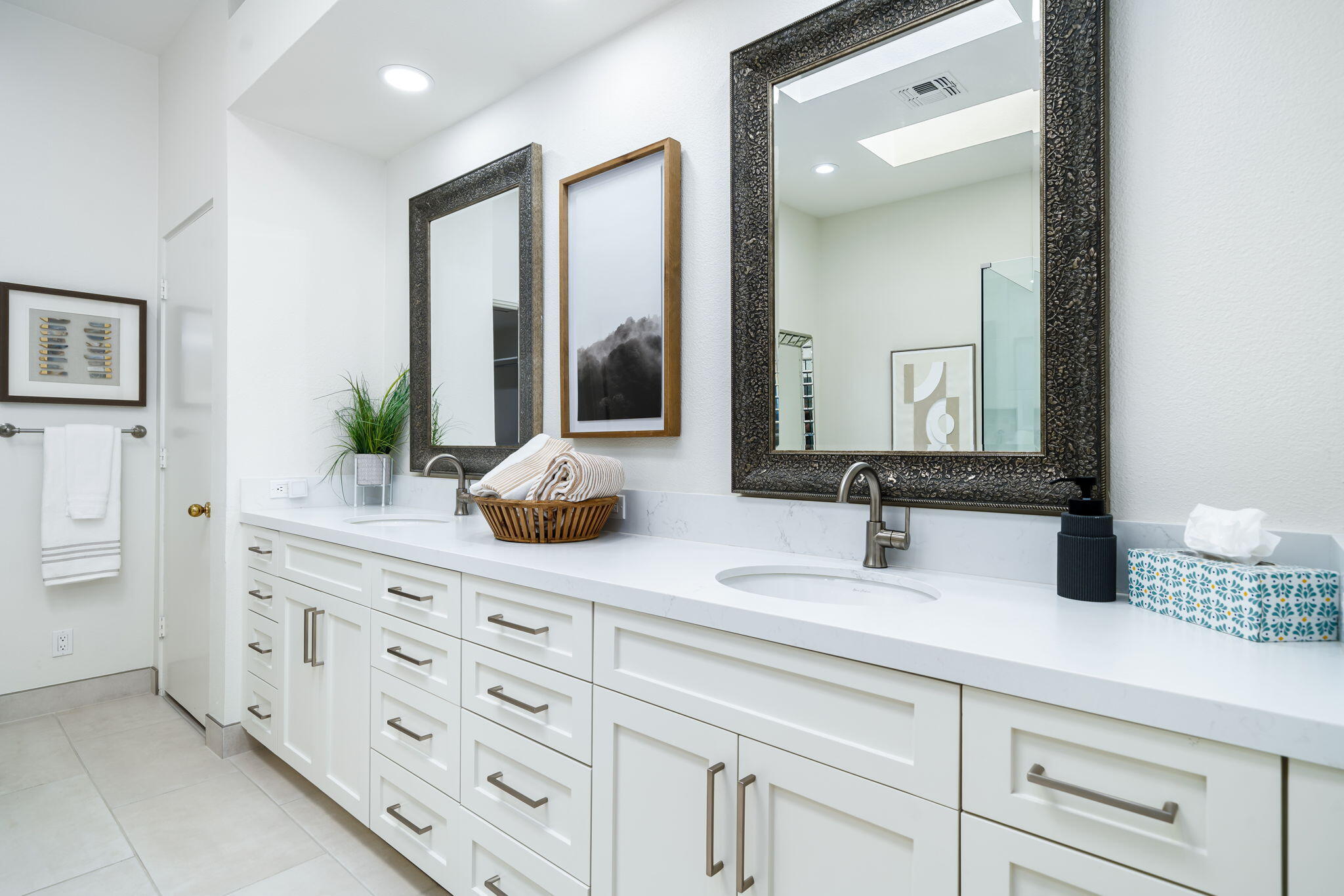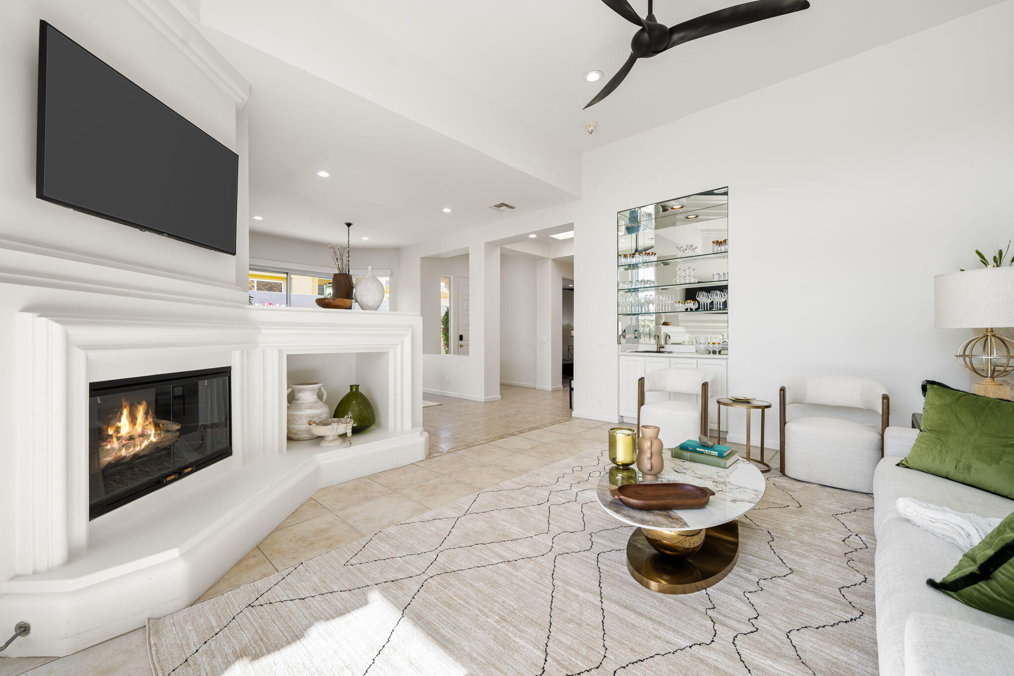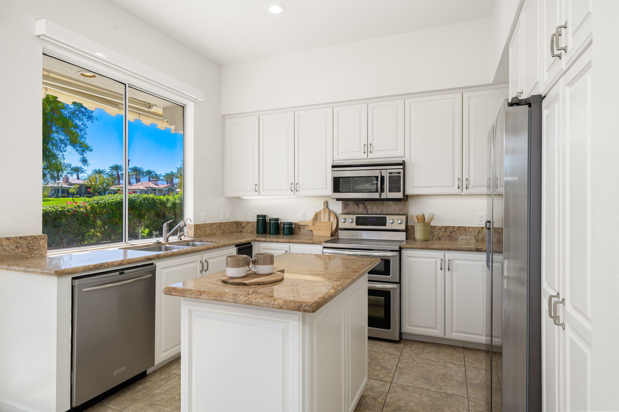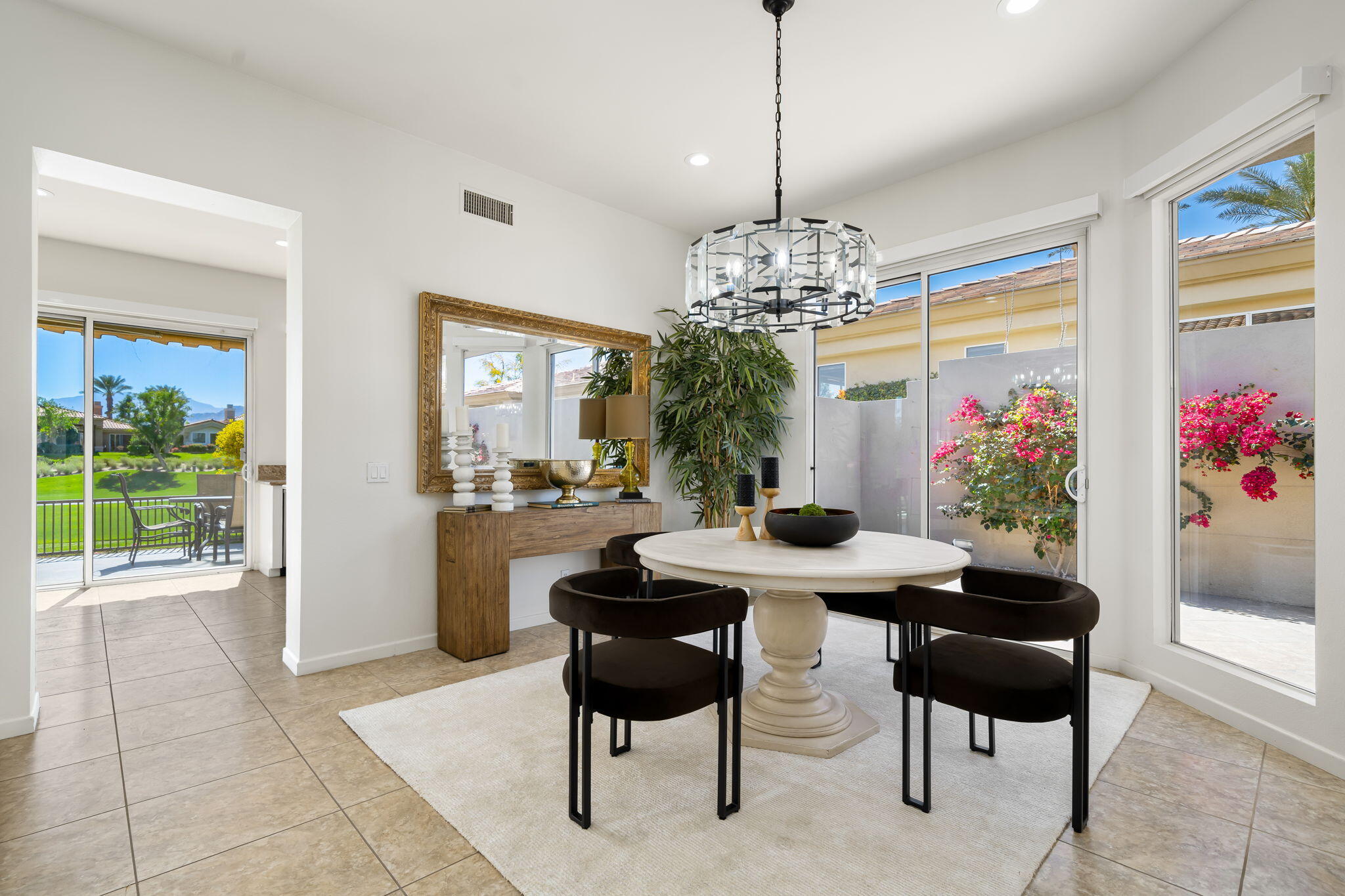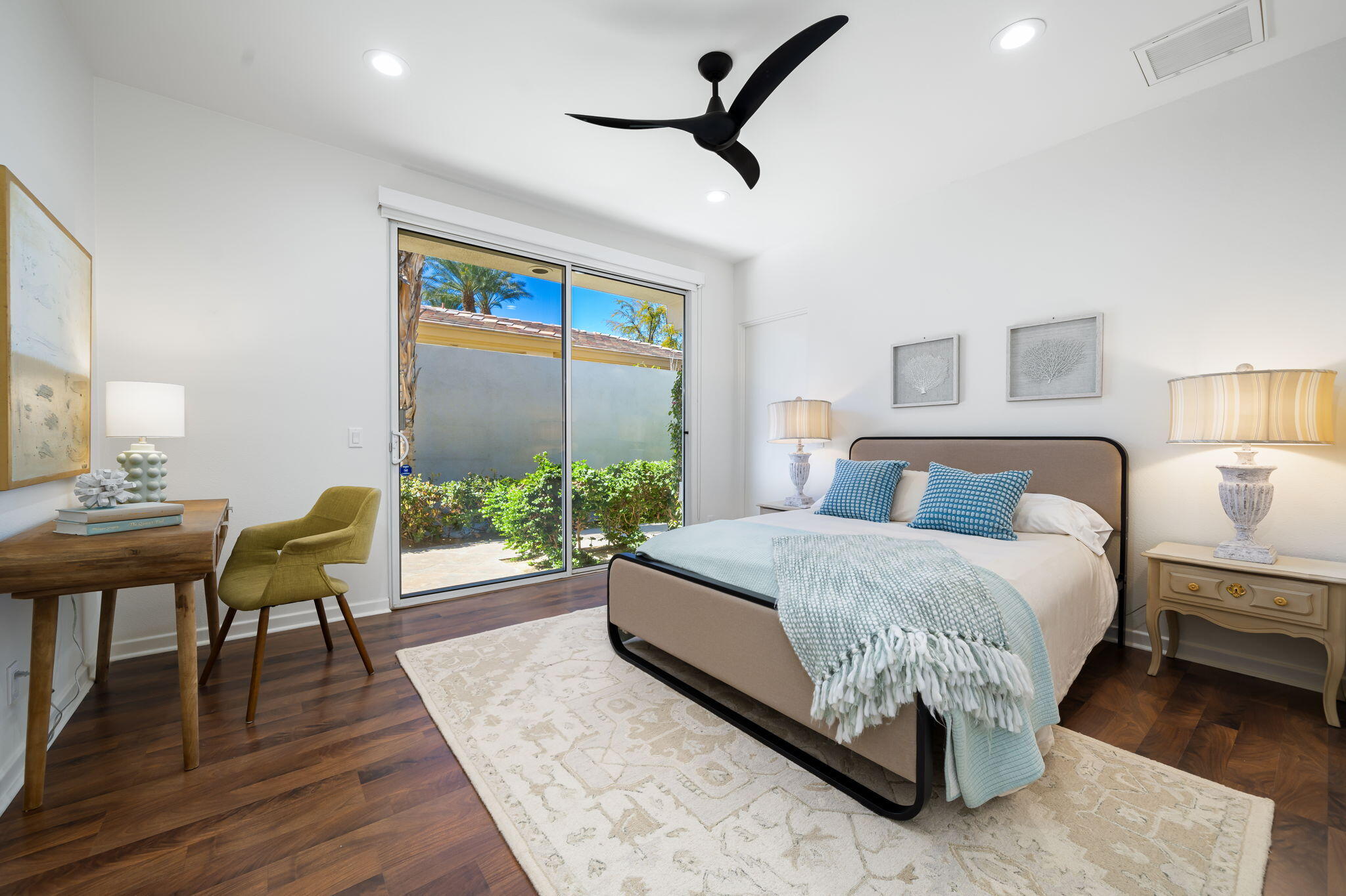 Updated with South Lake Views! CLUB Membership available for this home! Offered Turnkey Furnished, this Acacia 4 model condo features 3 bedrooms/3.5 bathrooms in the private, guard-gated Indian Ridge Country Club. The south-facing patio is fenced with electric awning and pavers, and provides expansive views of lake, mountains and Grove #7. Open floor plan with views and direct access to patio area from living room and kitchen - ideal for dining & entertaining. Living room features a fireplace, electric window blinds and wet bar. The separate dining area is open to the living room and adjacent to the kitchen. Light and bright with tile and laminate flooring throughout. New furnace, NEST thermostats & Ring doorbell. Kitchen has been updated with electric blinds, granite counters, stainless appliances, oven with a warming drawer and large island. The cozy breakfast nook looks out to the patio with the lake beyond. The Primary suite has a private patio and remodeled ensuite bathroom with raised granite counters, a free-standing tub, a separate shower and a large walk in closet. Both of the guest bedrooms are en suite, with the front bedroom currently set up as a den with office workspace. The attached 2-car garage has direct access in to the house via the laundry room. Great location - just two houses away from one of the many community pools & spas, and around the corner from ''Rover's Ridge'' dog park. HOA monthly dues include security, cable & internet, all gardening, exterior paint, roof maintenance, exterior water, exterior pest control and trash.Interested in this Listing?