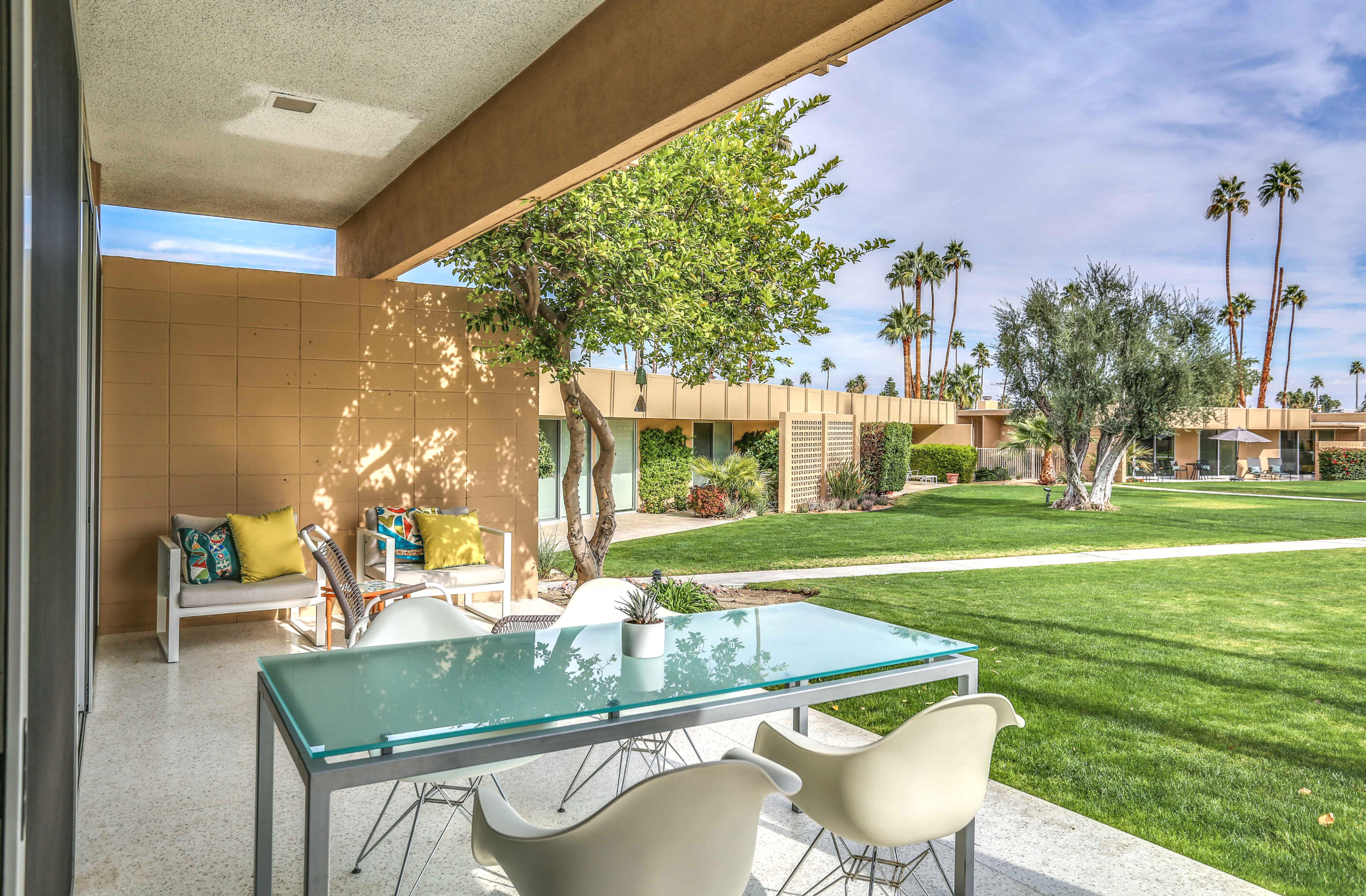 Enjoy the serene, relaxing setting of Sandpiper Palm Desert in one of William Krisel's most popular designs. This 2 bedroom 2 bath 1,531 square foot home features the best of mid-century modern design: high ceilings and clerestory windows to let in the light, Shadowal block walls and privacy screens, combined with modern updates including new double-pane doors and windows, elegant 4' square terrazzo floor tiles throughout, tastefully upgraded bathrooms, solar electric, and more. Walk through the private glass atrium entry and you'll notice the clean lines and modern finishes that lend a relaxed, zen feeling to space. The poolside patio has the signature Sandpiper vintage block walls with an eastern exposure that has gorgeous mountain, green space, and pool views. The master suite, featuring an en-suite bathroom with a spacious shower, affords stunning west-facing mountain views. The 2nd bedroom has a queen sleeper sofa and a large-screen TV that provides space for relaxing and reading. Sandpiper is walking distance to finest shopping and dining in Palm Desert. Rental rate is $6,950 Jan - Apr, $6,500 Oct - Dec, summer rates negotiable.
