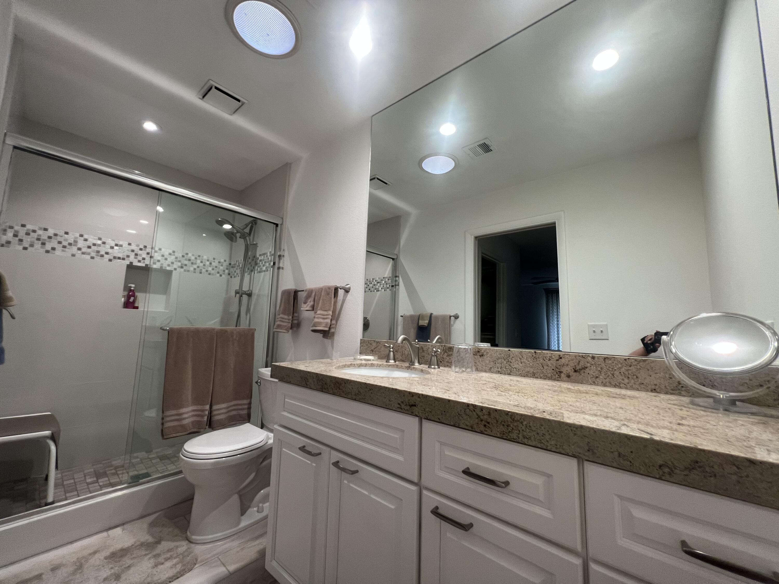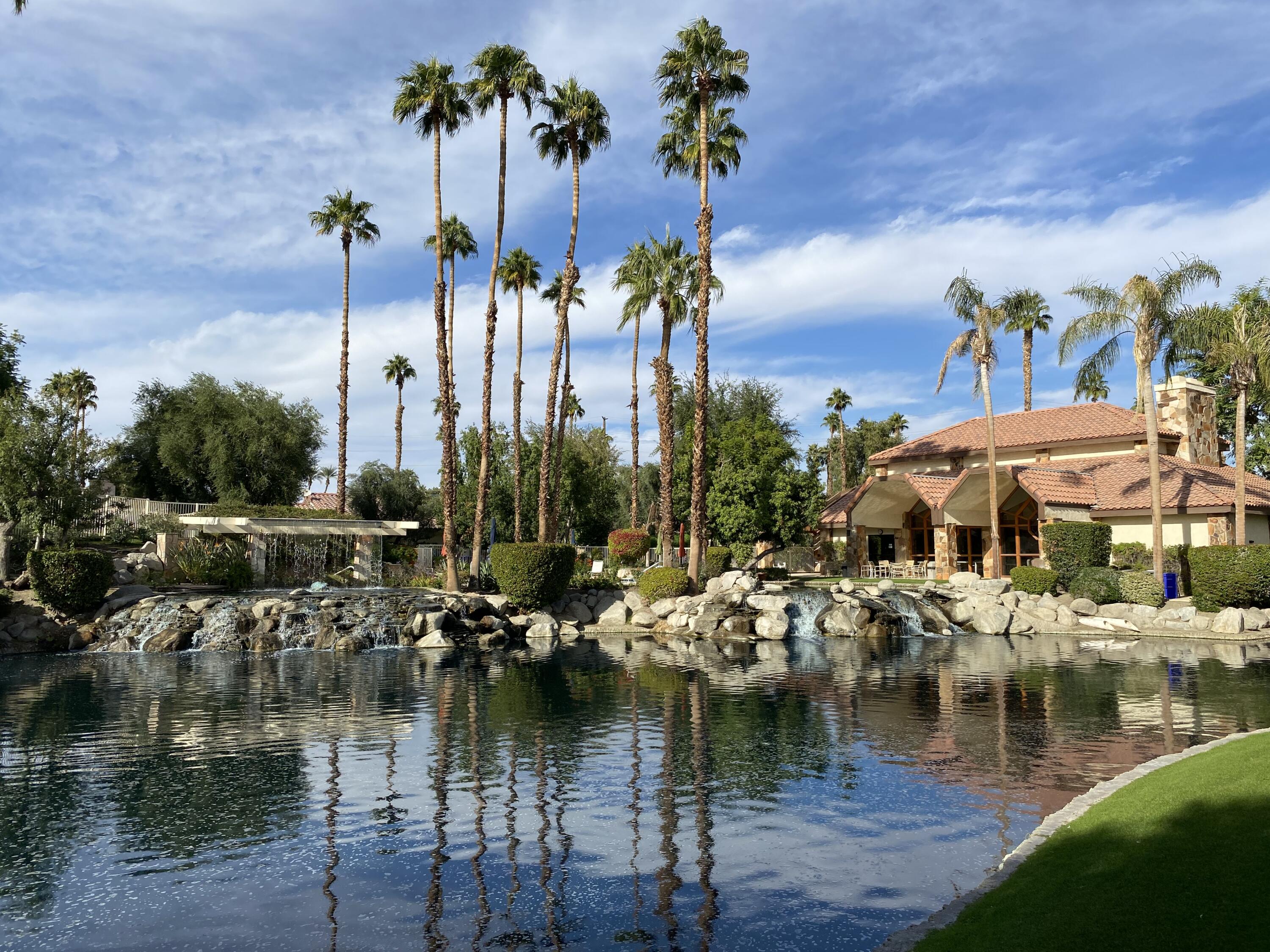 North patio views overlooking a green belt, lake, and San Jacinto Mountain range to the west. Modern bright condo renovated throughout including kitchen cabinets, counter tops, stainless appliances, hardware fixtures, bathroom vanities, shower enclosures, flooring, window treatments, recessed lighting, paint, upgraded furniture. Great room includes Living area, Dining area, Breakfast bar, Entertainment center, Fireplace and Wet bar opening to Patio. Primary Bedroom access to outdoor Patio includes private Bathroom ensuite, glass shower enclosure, walk-in closet. Guest bedroom with adjoining hallway Guest Bathroom completes the main floor. A private gated courtyard provides access to front entry door and attached two car garage. Park Palms is centrally located with private Club House, Pool/Spa, Tennis located within blocks to El Paseo Shopping District, Restaurants, Art Galleries, McCallum Live Theater, public Golf course, Living Desert Zoo, Casinos, Acrisure Arena-professional Ice Hockey/major Concerts, Indian Wells Tennis/BNP Paribas, access to #10 FWY and the Palm Springs Int'l Airport all for your ease of access to valley amenities and your entertainment pleasure. Vacation Rental Rates: January-April $4,500 November-December $3,500, May-October $3,000 per month.Interested in this Listing?