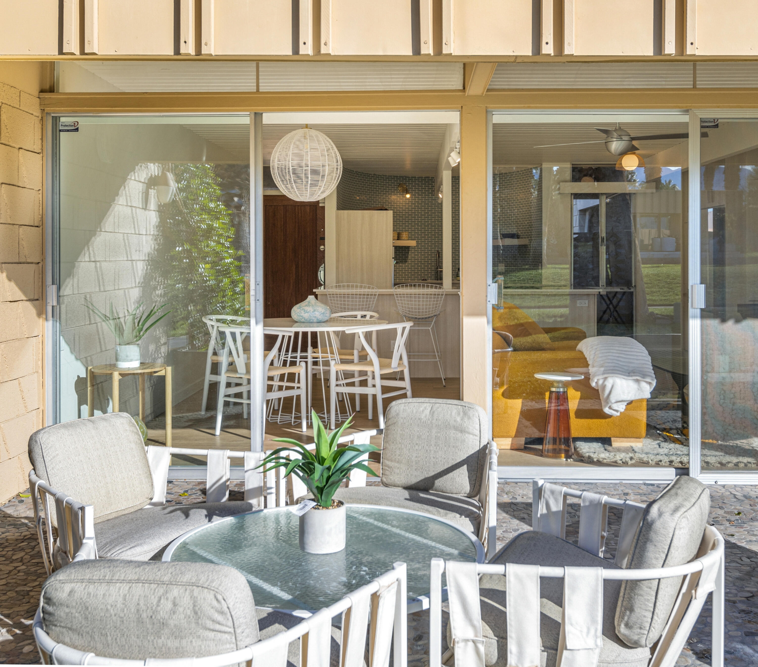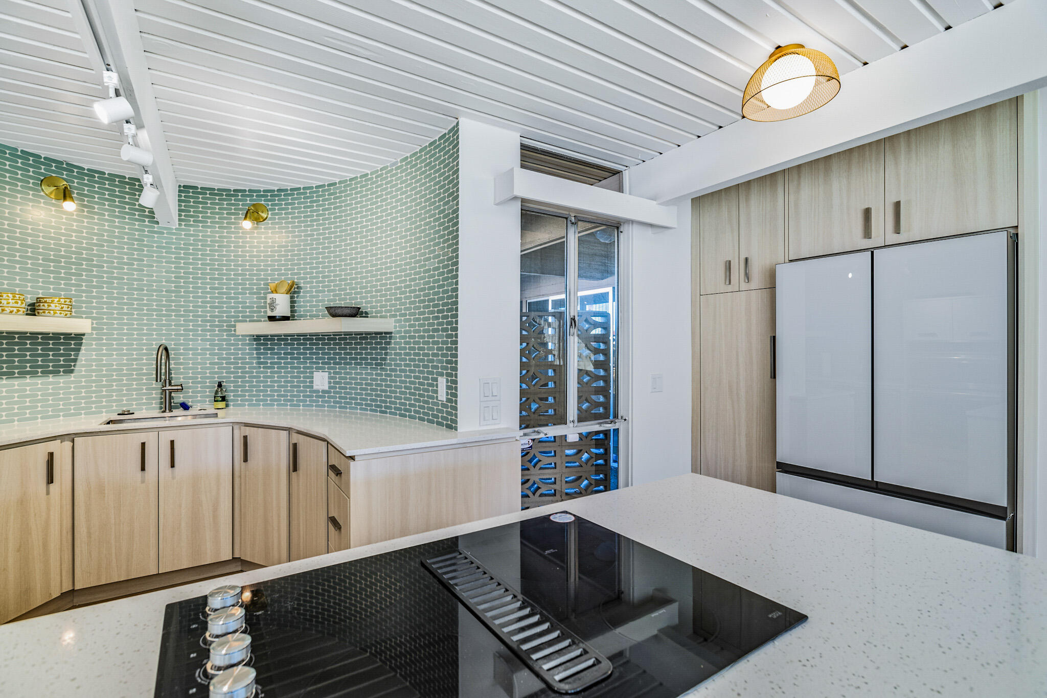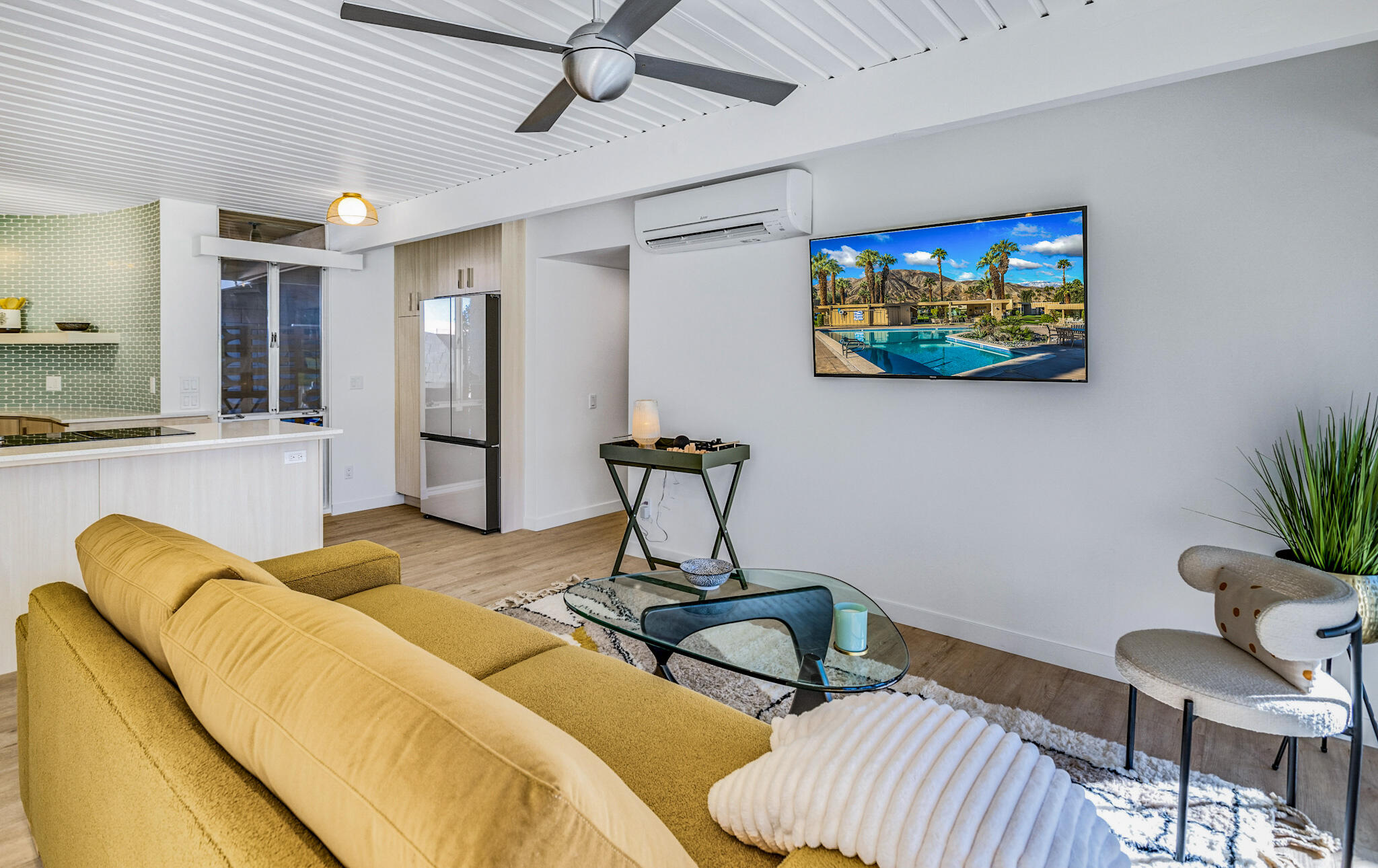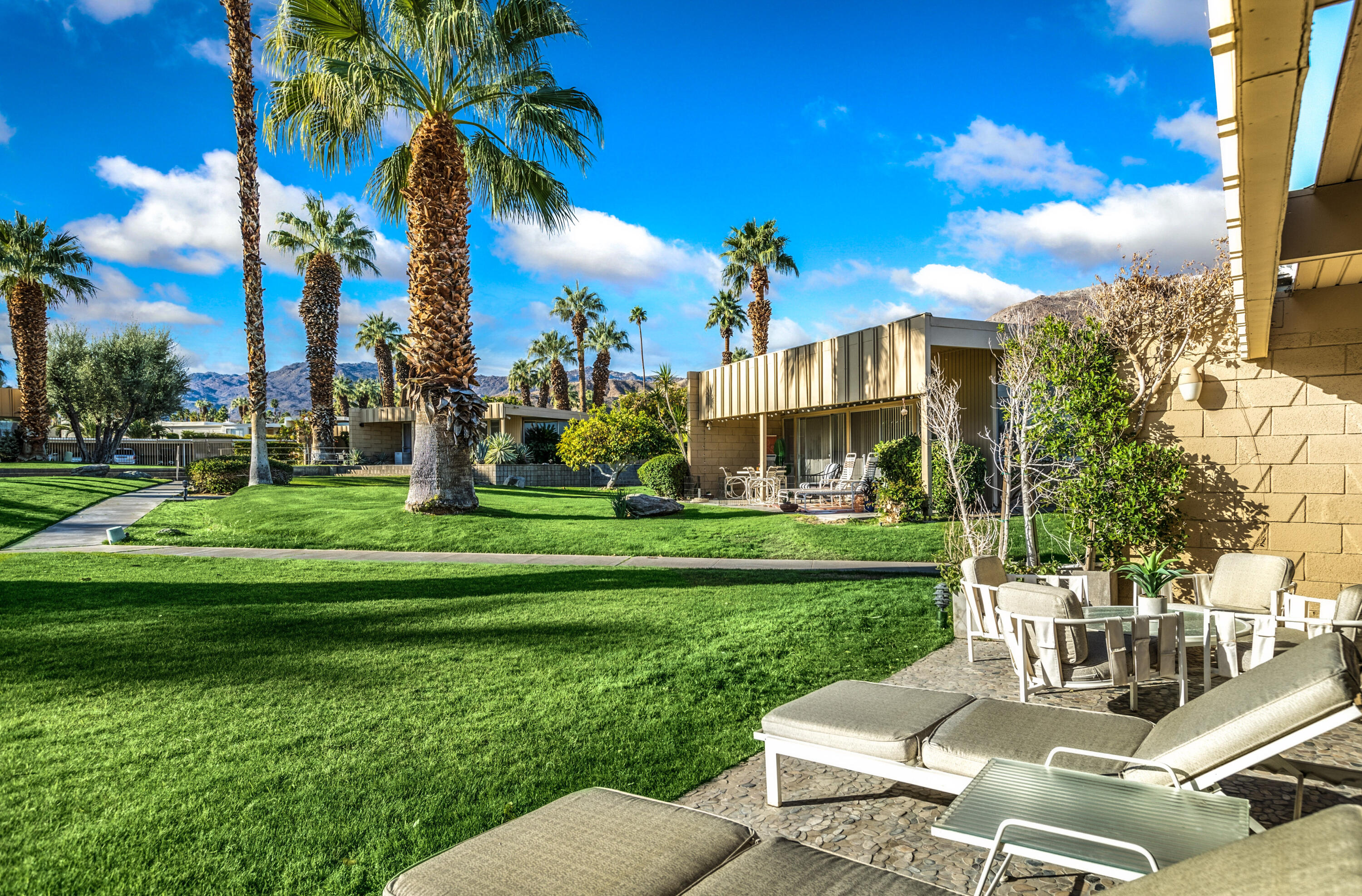 Escape to the ultimate desert getaway in this stunning three-bedroom, two-bath vacation rental located in the highly sought-after Sandpiper Palm Desert. Designed by renowned architect William Krisel, this mid-century modern condo boasts classic architectural elements such as concrete block walls, clerestory windows, and tongue & groove wood plank ceilings. Newly updated with exquisite finishes, this condo is beautifully furnished and features wood-look tile flooring, modern quartz countertops, and designer touches throughout. With four ductless mini-split systems, enjoy separate temperature controls in each room. Floor-to-ceiling windows offer a breathtaking view of the greenbelt, palm trees, and mountains, and the south-facing patios are flooded with sunlight all day long. Enjoy a dip in the pool or cook up a delicious meal in the covered outdoor cooking and dining area with a built-in BBQ. This condo is in one of the best locations in Palm Desert. It couldn't be more convenient! Just walk across the street and find a Starbucks, a juice bar, a pilates studio, a nail salon, and great restaurants. World-class public golf courses, tennis courts, and pickleball courts are just minutes away, and you'll enjoy easy access to nearby hiking trails and luxury shopping on El Paseo, the ''Rodeo Drive of the Desert''. Book your stay today and experience the best of Palm Desert living! Monthly Rental Rates: Jan- Apr $7,500 , May $6,000, Jun - Aug $4,500, Sep - Dec $6,500