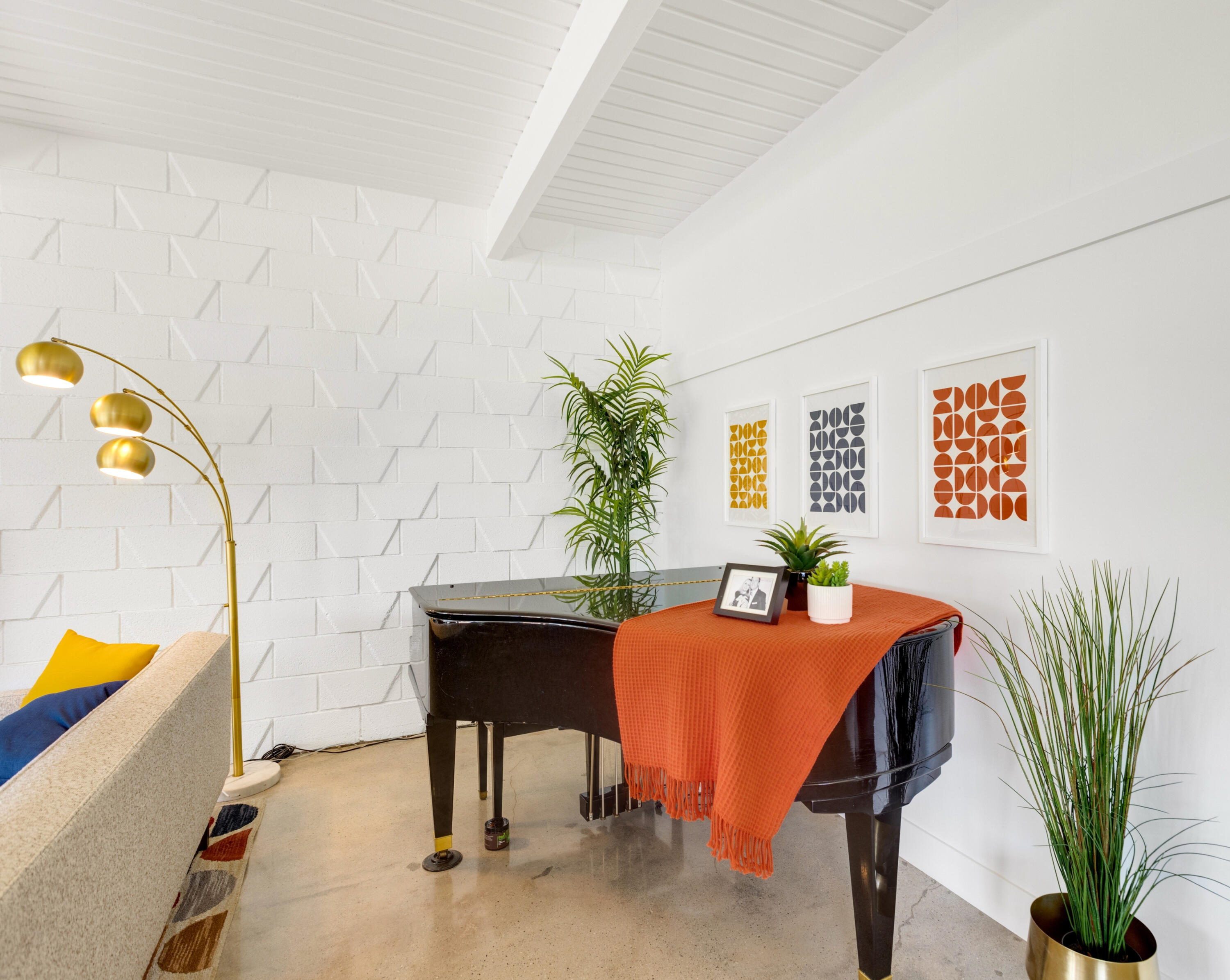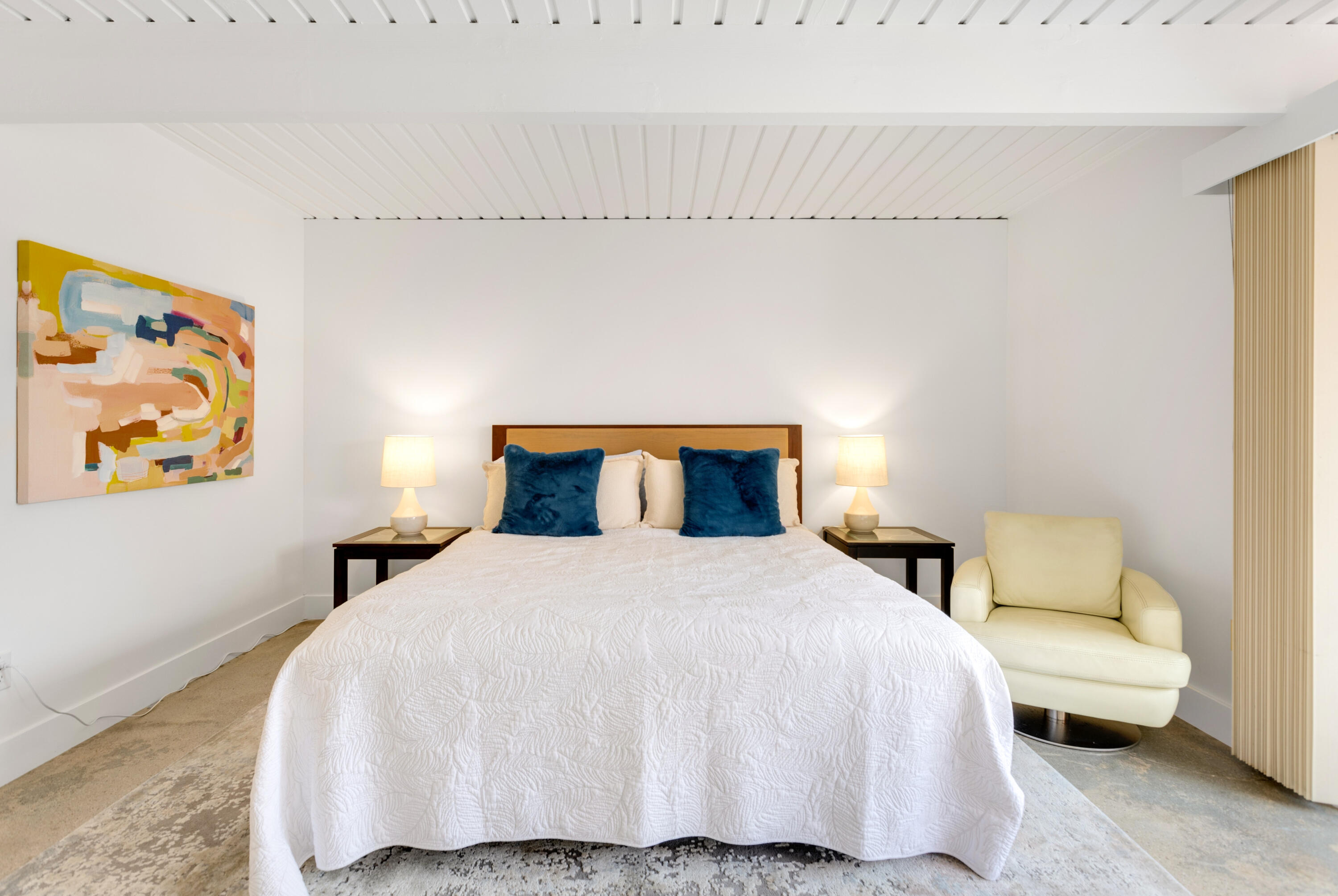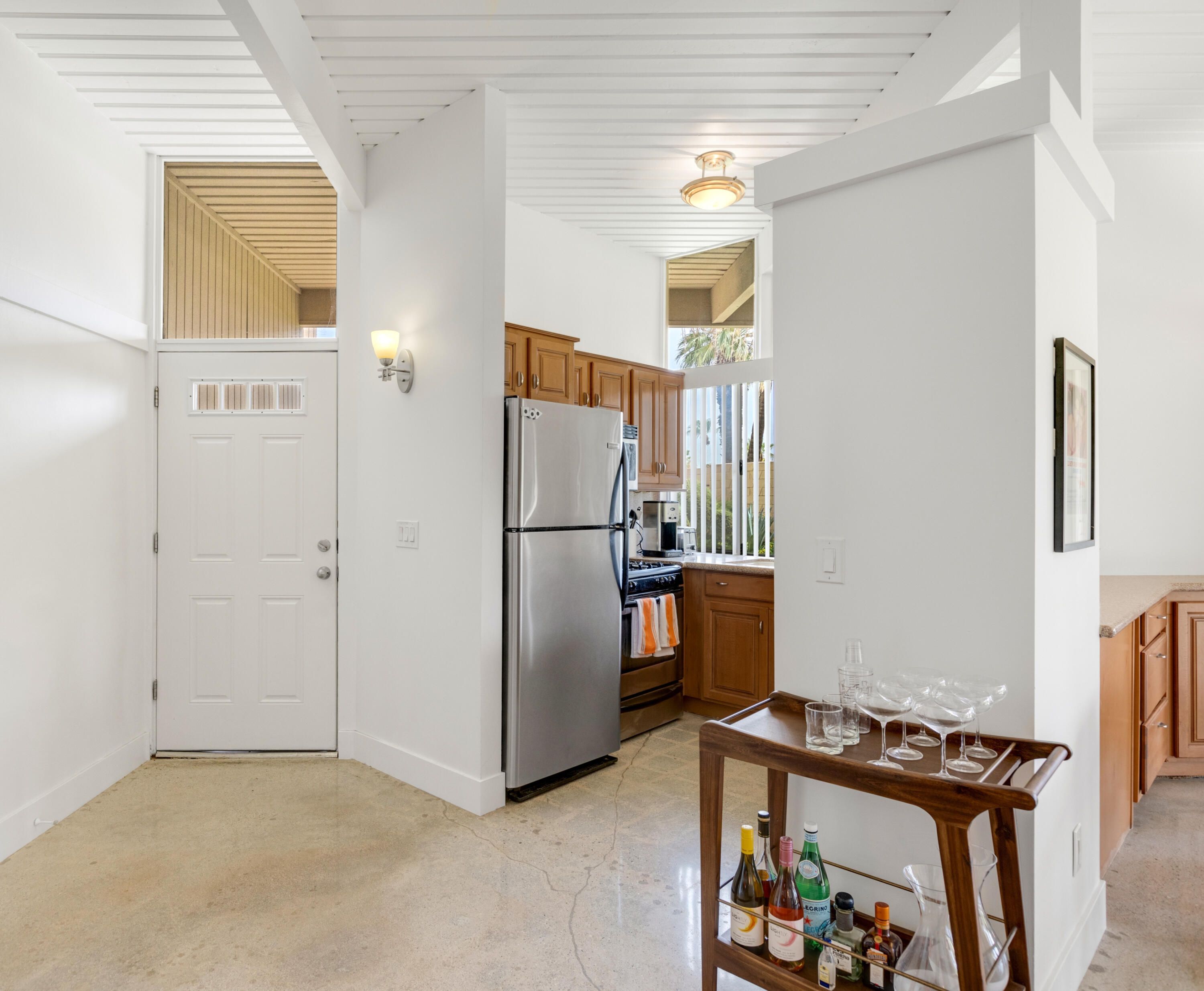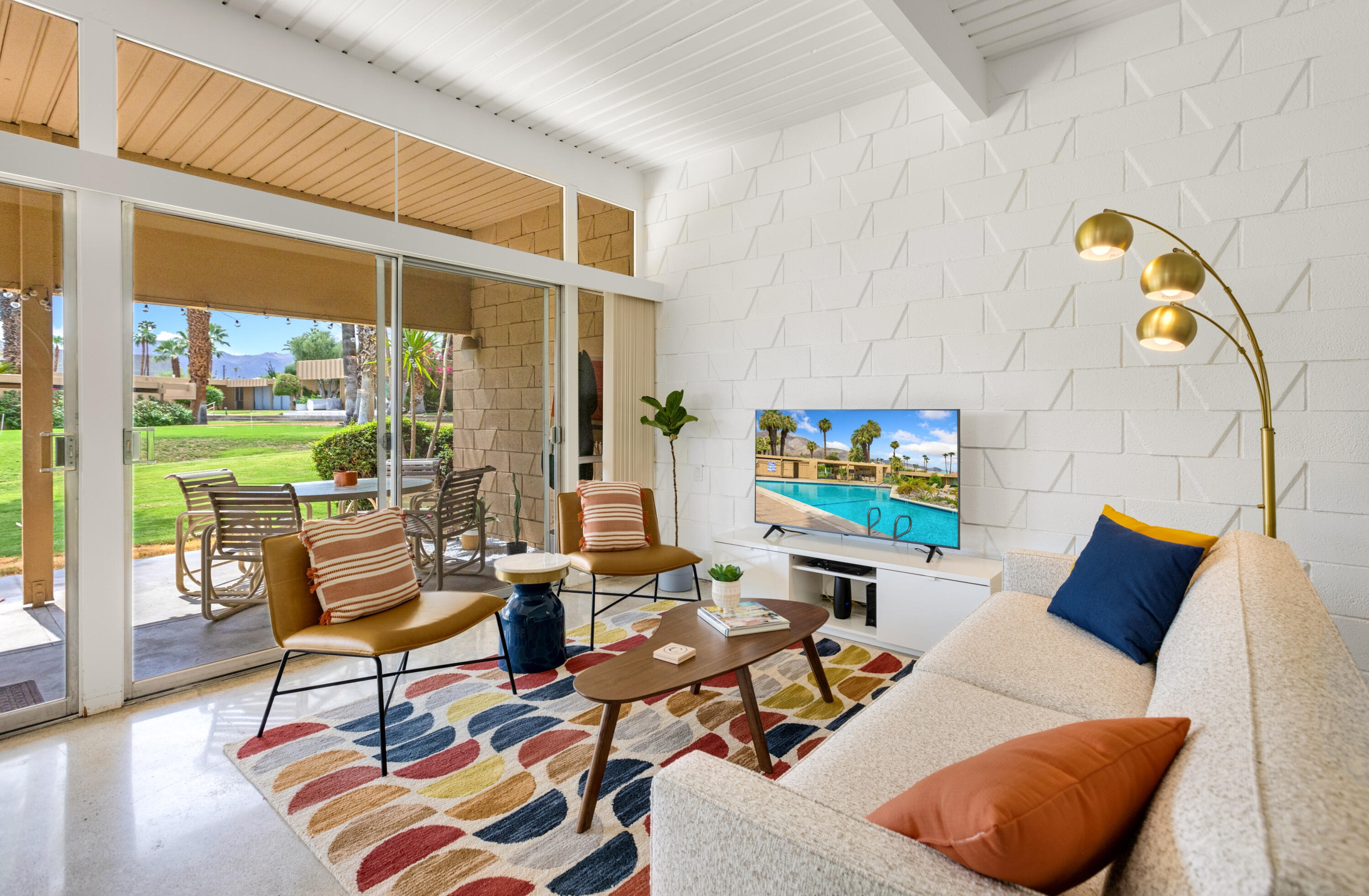Here's your chance to experience one of the first William Krisel designs built in Sandpiper, Palm Desert. This mid-century modern features classic mid-century modern architectural details, including exposed concrete block walls, clerestory windows, and tongue & groove ceilings wood plank ceilings throughout. Natural light from the wall of windows in the living room brightens this home, and the east-facing patio offers serene views of the greenbelt, palm trees, and mountains. This home features beautiful, easy-to-maintain polished concrete floors and an updated kitchen and bathrooms. The kitchen is well-equipped and offers a gas range, a microwave/range hood, and everything you need to prepare a delightful meal to be enjoyed on your patio dining table. A cocktail cart is ready for you to serve up cocktails and wine pre-dinner. Located within walking distance of the finest shopping and dining in Palm Desert, including the fabulous Shops on El Paseo -- the ''Rodeo Drive of the Desert'' -- you'll have easy access to some of the best restaurants in the area. And many of the area's best hiking trails are just a few minutes away. Monthly Rental Rates: January - April $4,700 , May $4,000, June - September $3,500, October - December $4,000.Interested in this Listing?