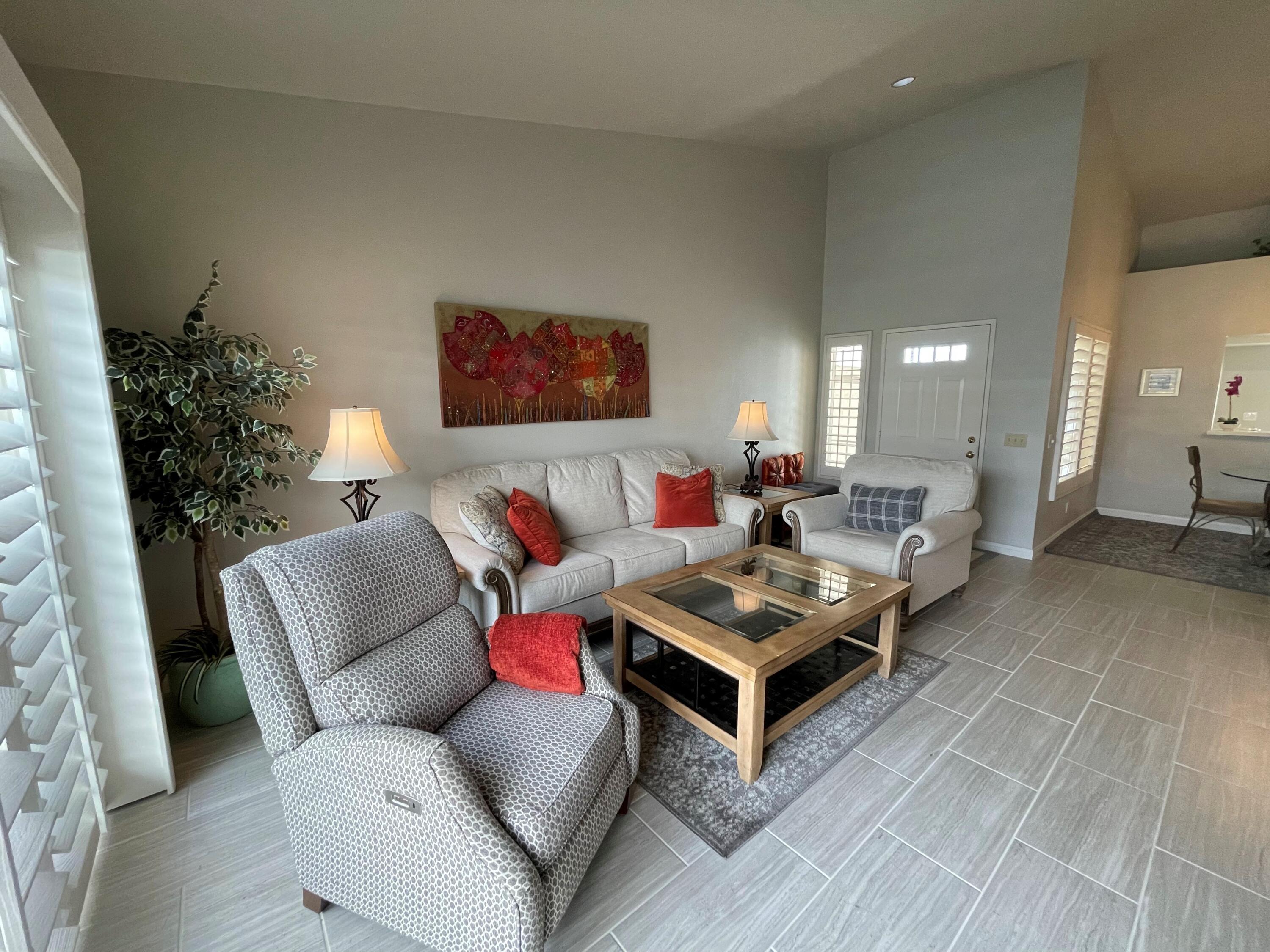 This is the off season rate. Available May 2024. Fabulous seasonal rental opportunity! Spectacular single level Villa overlooking beautiful pool/spa, and greenbelt! No one above or below your Villa! Great patio with BBQ. Kitchen upgrades include newer stainless appliances, cabinetry and quartz counters. Master bath upgraded with newer cabinetry, quartz counters and custom shower. Guest bath newer cabinetry. All tile floors in the main living area. High ceilings, custom interior paint! Updated furnishings! Fireplace! Media center! Plantation shutters! Large master suite with double mirrored closets! Opulent master bath with double sink vanity, walls of mirrors and a custom tile walk in shower! Guest suite and guest bath separated from the master suite for privacy! Well stocked kitchen open to the dining and great room! Utility room! Large garage with storage cabinets! Enjoy the Desert Falls lifestyle in this perfect setting! Available June 1st. Leased Jan-April 2024. Lower rates in the off season.Interested in this Listing?