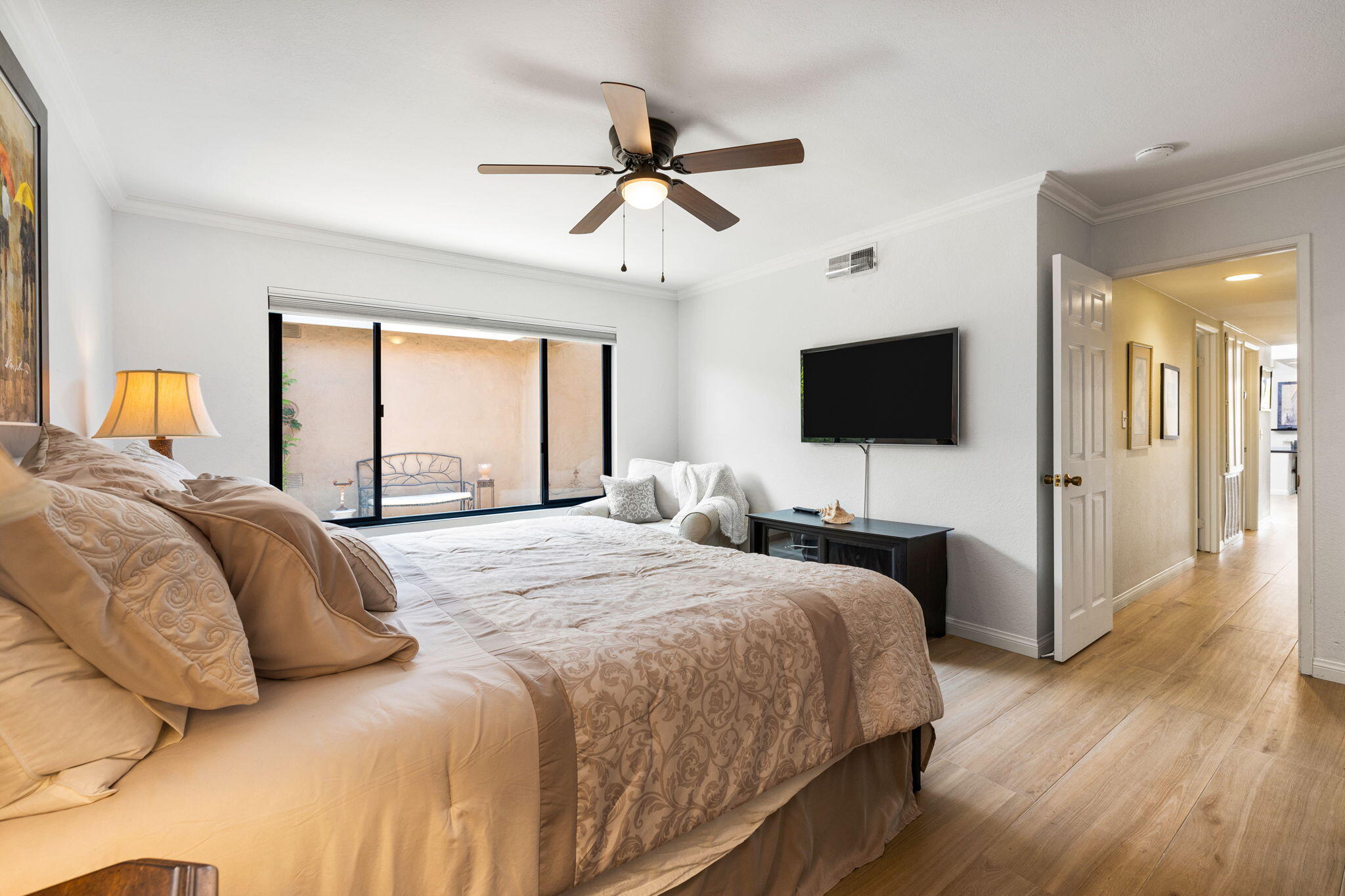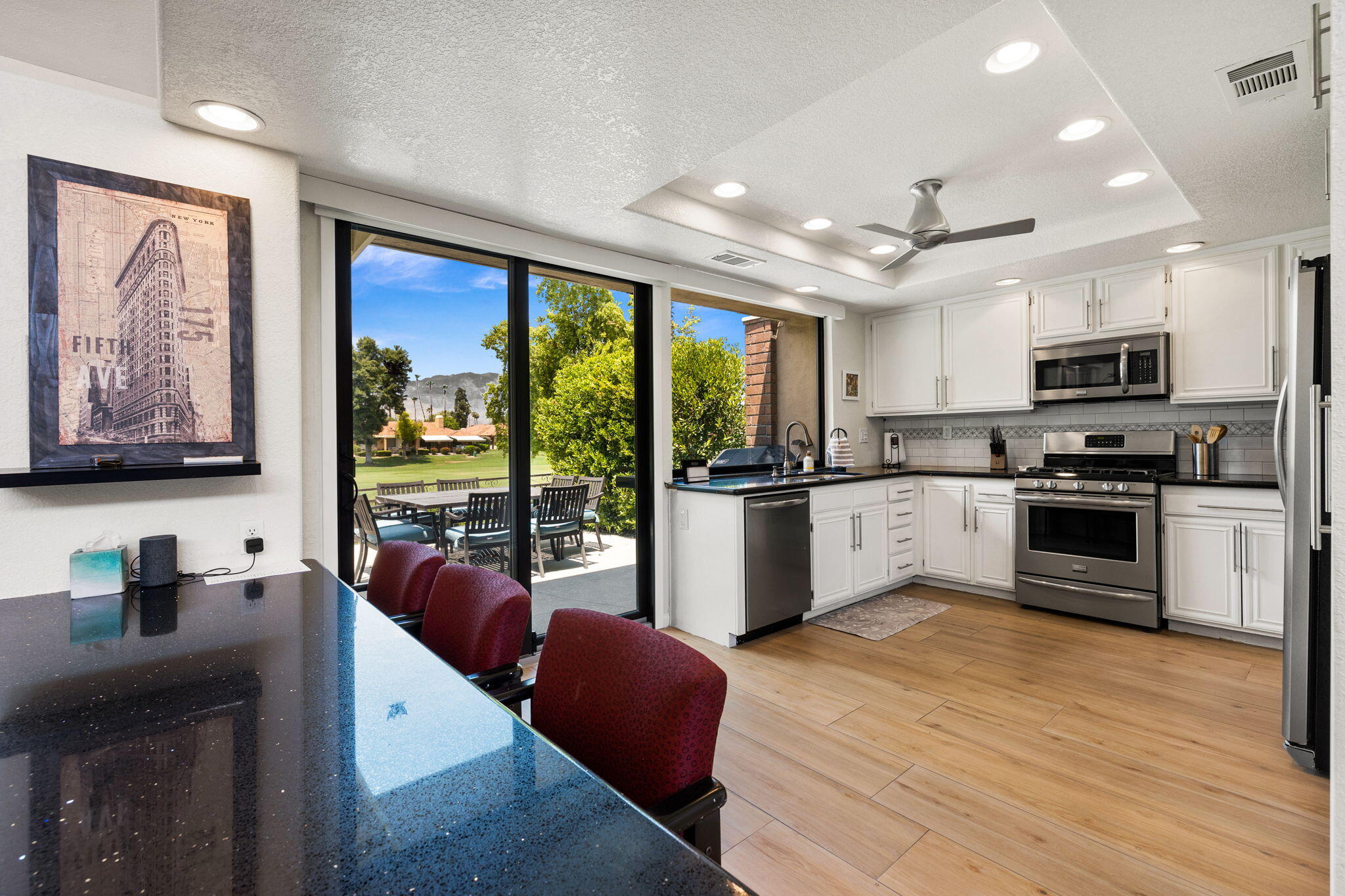 Booked February-March 2026 available all other times. Membership available and tenants can play golf. Discover unparalleled luxury living at this exquisite vacation rental, now available for the first time in the esteemed Monterey Country Club. Offers 3 bedroom and a den with a Queen Murphy bed. Nestled amidst sweeping mountain vistas, this meticulously updated golf course home offers a seamless blend of elegance and comfort.Included with your stay: bicycles, pool toys, for a small fee access to the golf course tennis, pickle and bocce ball courts, fitness room and club house. Step into a sunlit open kitchen, featuring wood-like tile flooring and a spacious breakfast island bar with sleek black granite countertops. Newly installed electric window shades frame unobstructed panoramic views, complemented by new windows that invite natural light into every corner. With the recent addition of a third bathroom, each bedroom is now an en-suite oasis.Vaulted ceilings with can lighting create a bright and airy ambiance throughout the expansive living space, which seamlessly extends to a picturesque patio overlooking the manicured greens of the golf course. A converted atrium, cleverly transformed into a versatile room with a Murphy bed, adds to the home's allure, offering both functionality and charm.Interested in this Listing?