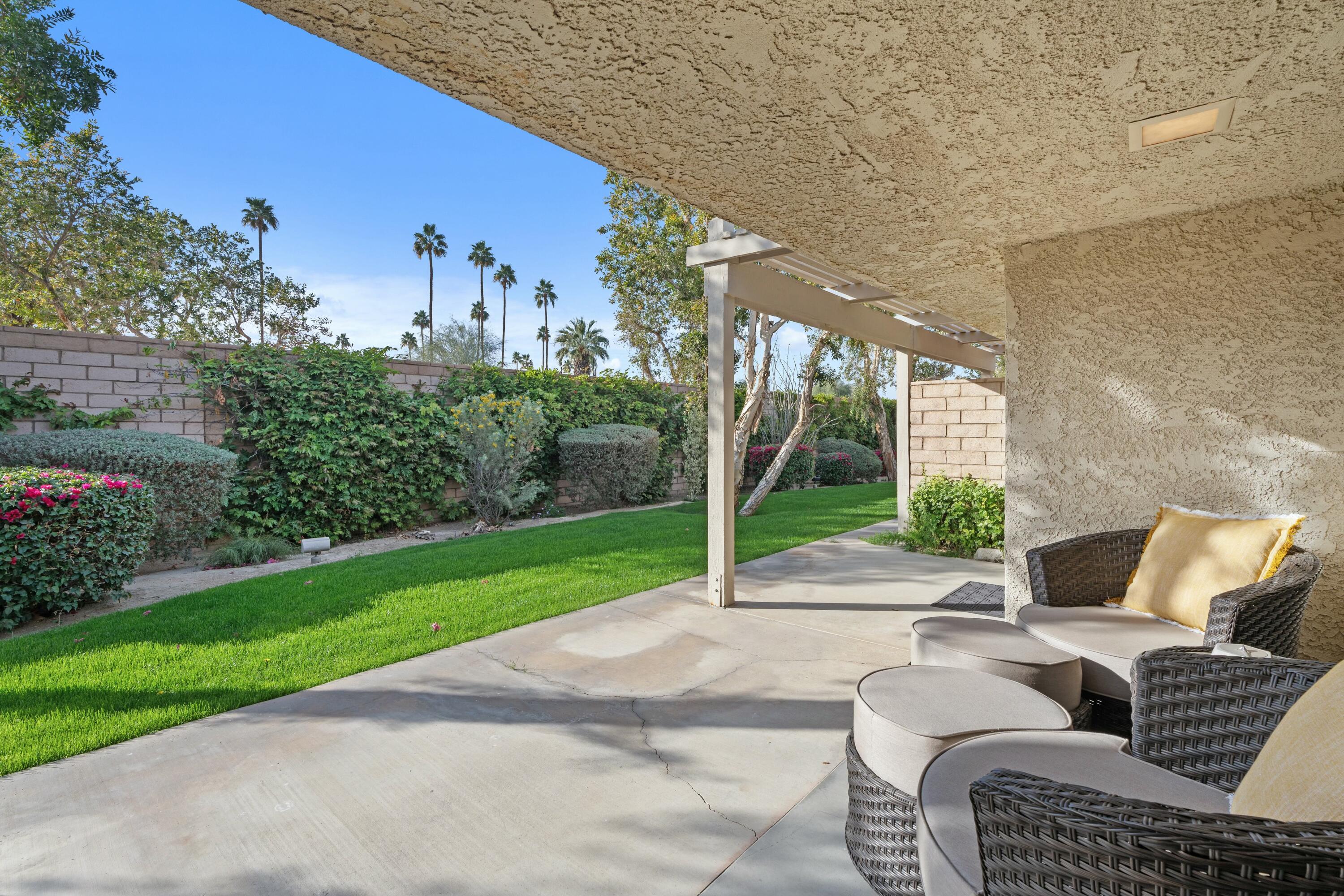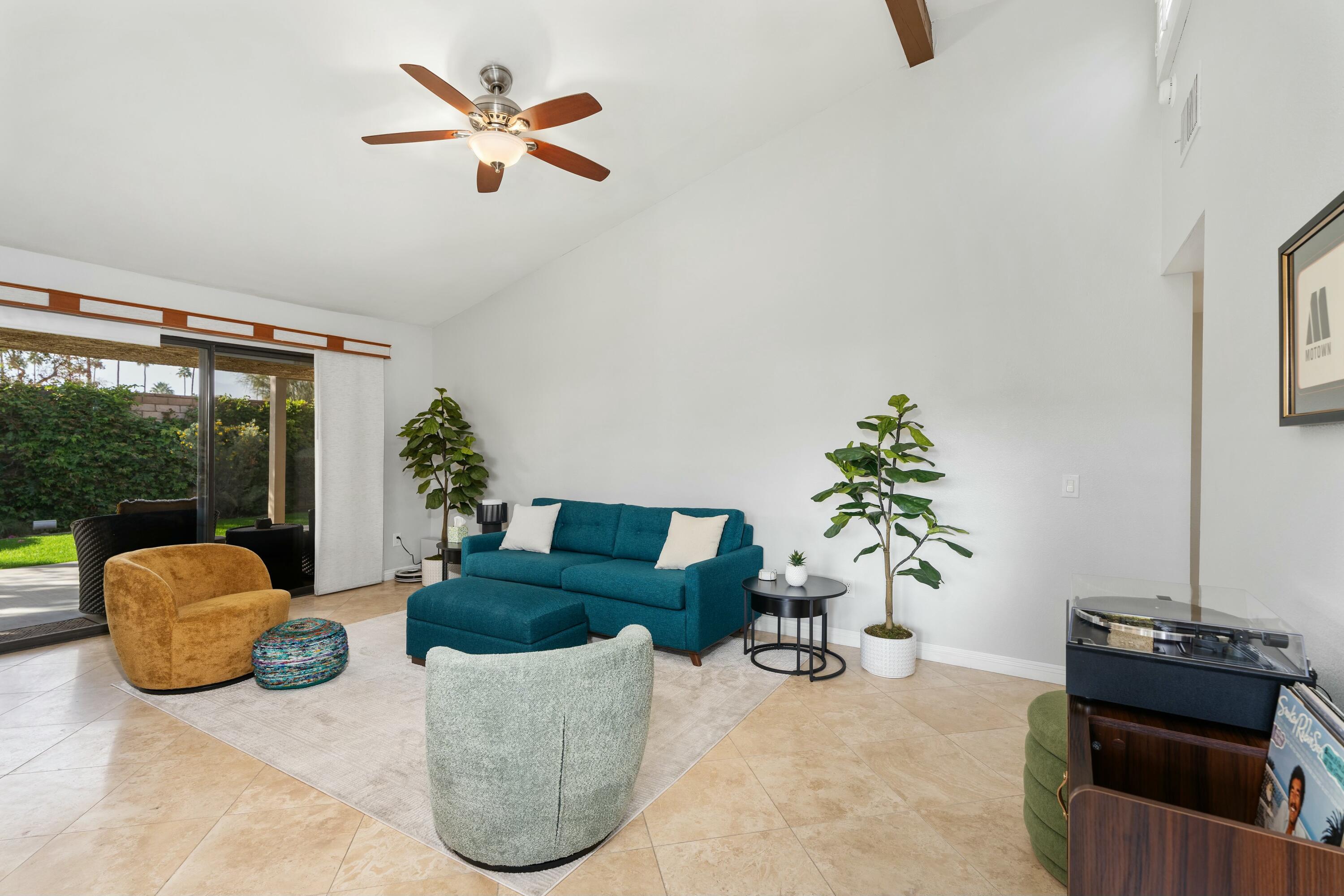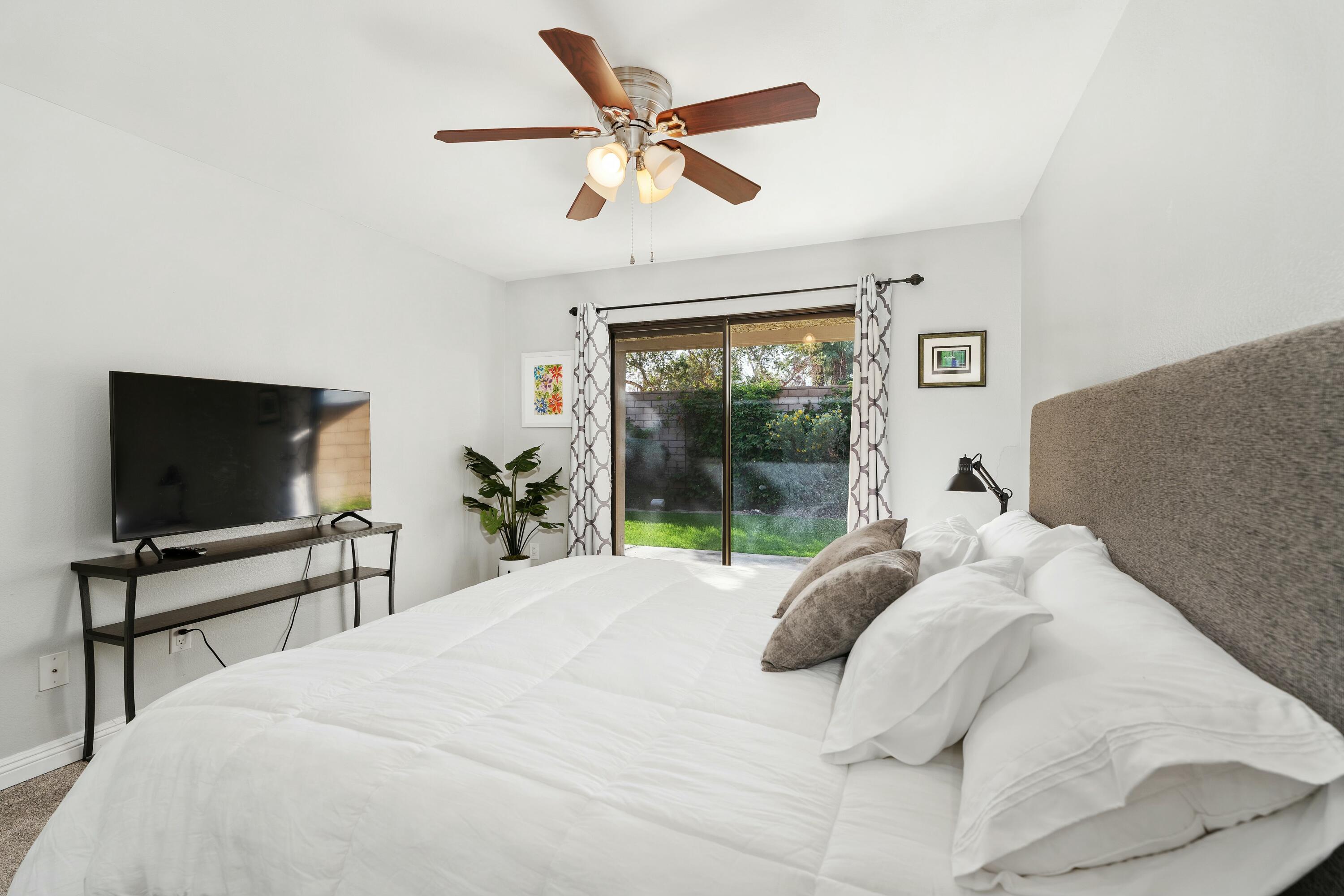 Experience the perfect desert retreat in this beautifully updated 2-bedroom, 2-bathroom condominium in Palm Desert. Offering 1,042 square feet of thoughtfully designed living space, this condo combines modern comforts with a relaxed, resort-style ambiance. Step inside to find an open-concept layout flooded with natural light, featuring high ceilings and stylish updates throughout. The modern kitchen is fully equipped with stainless steel appliances, granite countertops, and a sophisticated dining area, making it ideal for home-cooked meals or entertaining guests. The bathrooms boast modern finishes, one with a tile & glass shower and one with a showr-tub, including ample vanity space for ultimate comfort. Unwind in the private outdoor space, where a large west-facing covered patio provides the perfect setting for alfresco dining, complete with a BBQ grill and comfortable seating. A large two-car garage with direct access adds convenience. Located in a gated community, this property offers resort-style amenities, including two large pools, perfect for swimming laps, each with a spa, and a tennis & court. Ideally situated near El Paseo's premier shopping and dining, hiking trails, The Living Desert, Acrisure Arena, and more, this vacation rental provides an unbeatable combination of relaxation and accessibility to the best of the Coachella Valley. Whether you're seeking a weekend getaway or an extended stay, this stylish condo is the perfect home base for your desert escape. Monthly Rental Rates: $5,000 Jan-Apr, $4,500 Oct-Dec.