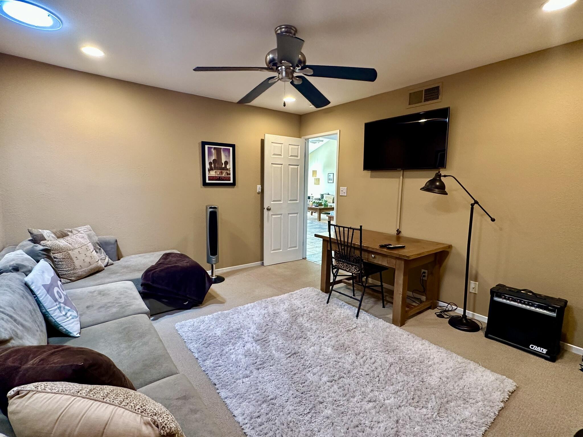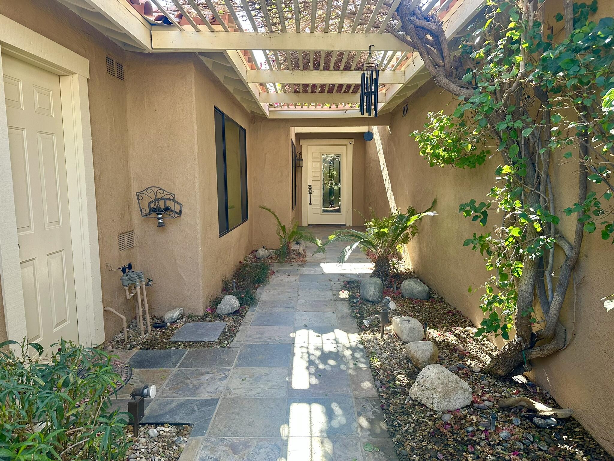 This stunning home features 2 bedrooms, a versatile den, 2 baths and bright south-facing views. The spacious living room boasts vaulted ceilings, slate tile flooring, and large plantation-shuttered windows that fill the space with natural light.The updated kitchen includes white cabinetry, stainless steel appliances, and ample storage. The primary bedroom offers plush carpeting and a serene ambiance, while the additional rooms provide flexibility for a home office or guest space.Situated in a great location right next to the clubhouse, this home perfectly combines style, comfort, and convenience. Don't miss out!Interested in this Listing?