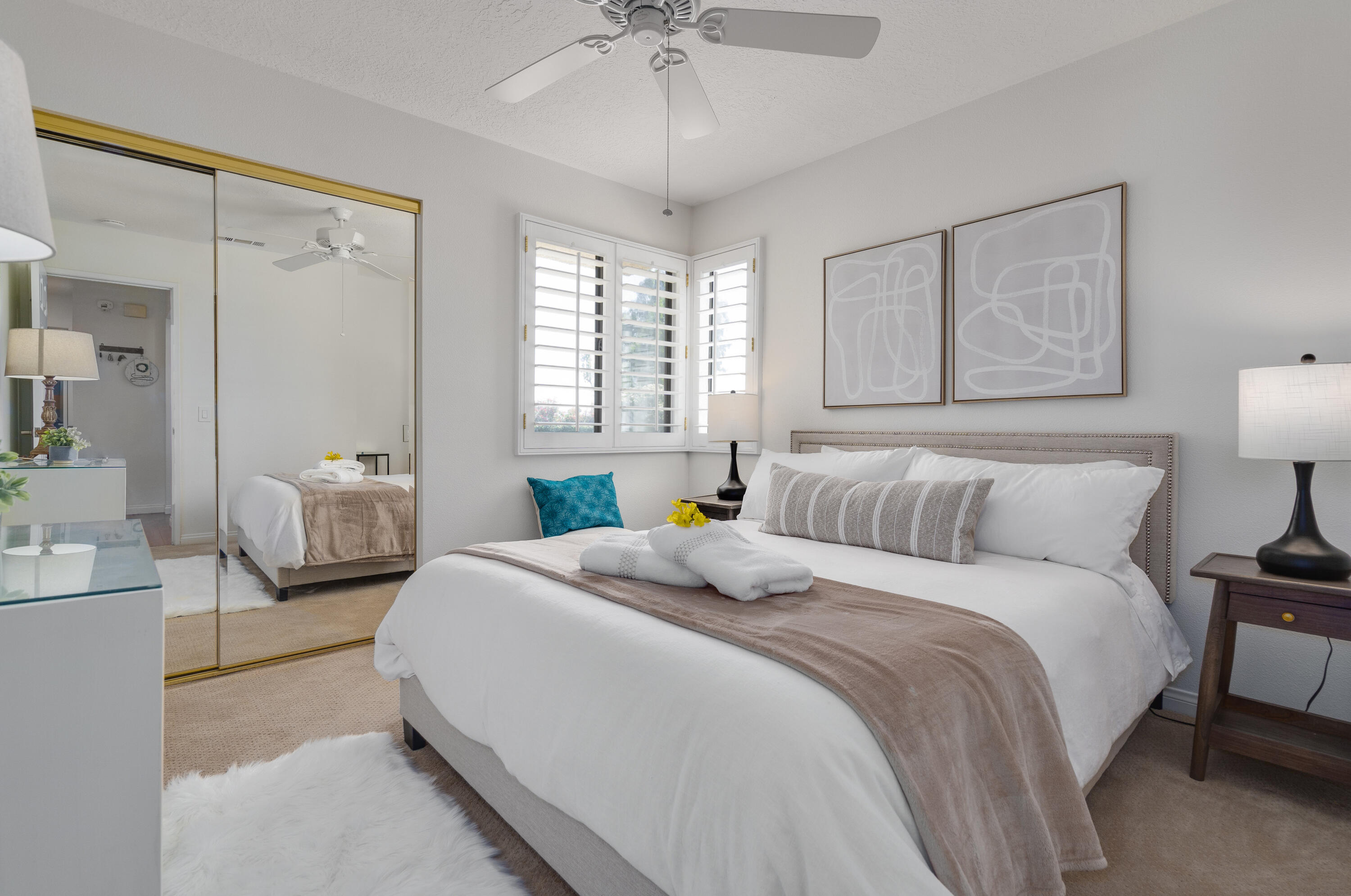 No amenities have been overlooked. A lovely covered patio, fire pit table, BBQ and a 1 car garage complete this perfect 2 bedroom and 2 bath condo that has been fully remodeled. Located on the second fairway with great views. Palm Desert Resort and Country Club (in the heart of Palm Desert) is a very active and lively club. Newly renovated clubhouse, a large pickleball club,18 holes of championship golf, 20 pools and spas, there is something for everyone!This property is leased from November 1 through April 3,0th 2026. It is available for all other months. Asking $6,000 in prime months and is negotiable on the remaining months.Interested in this Listing?