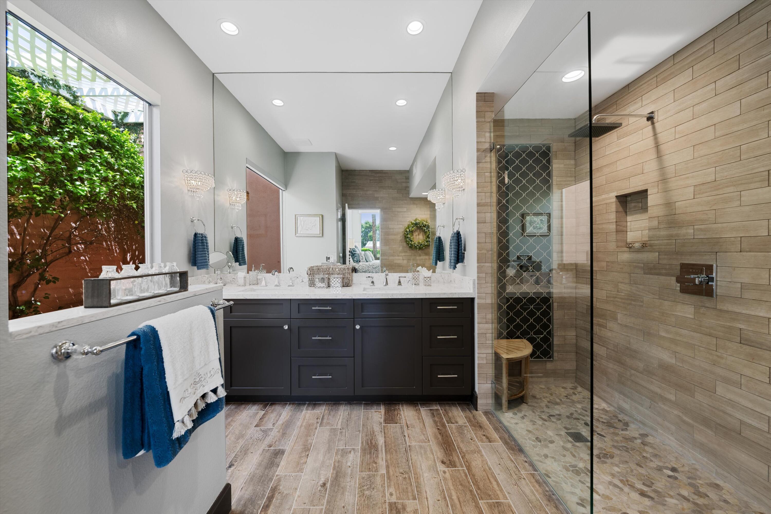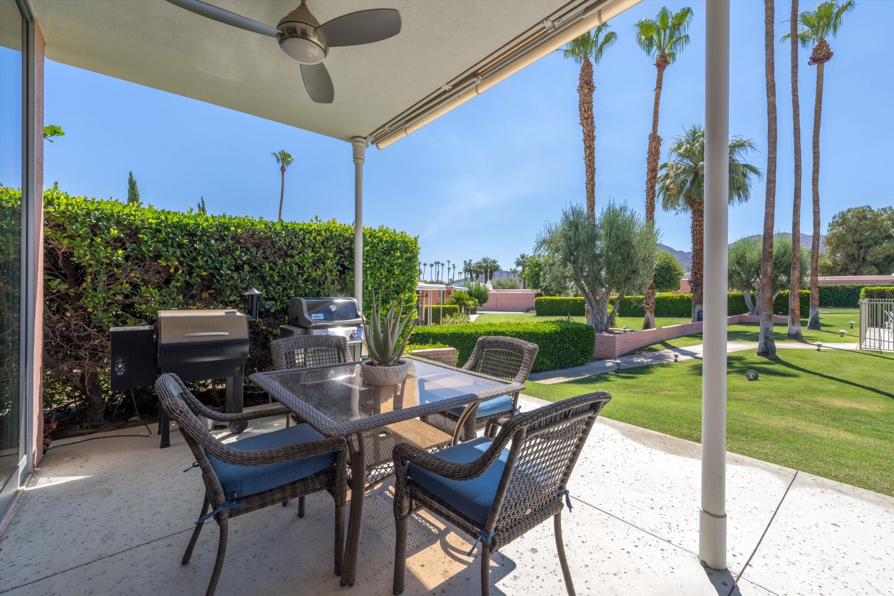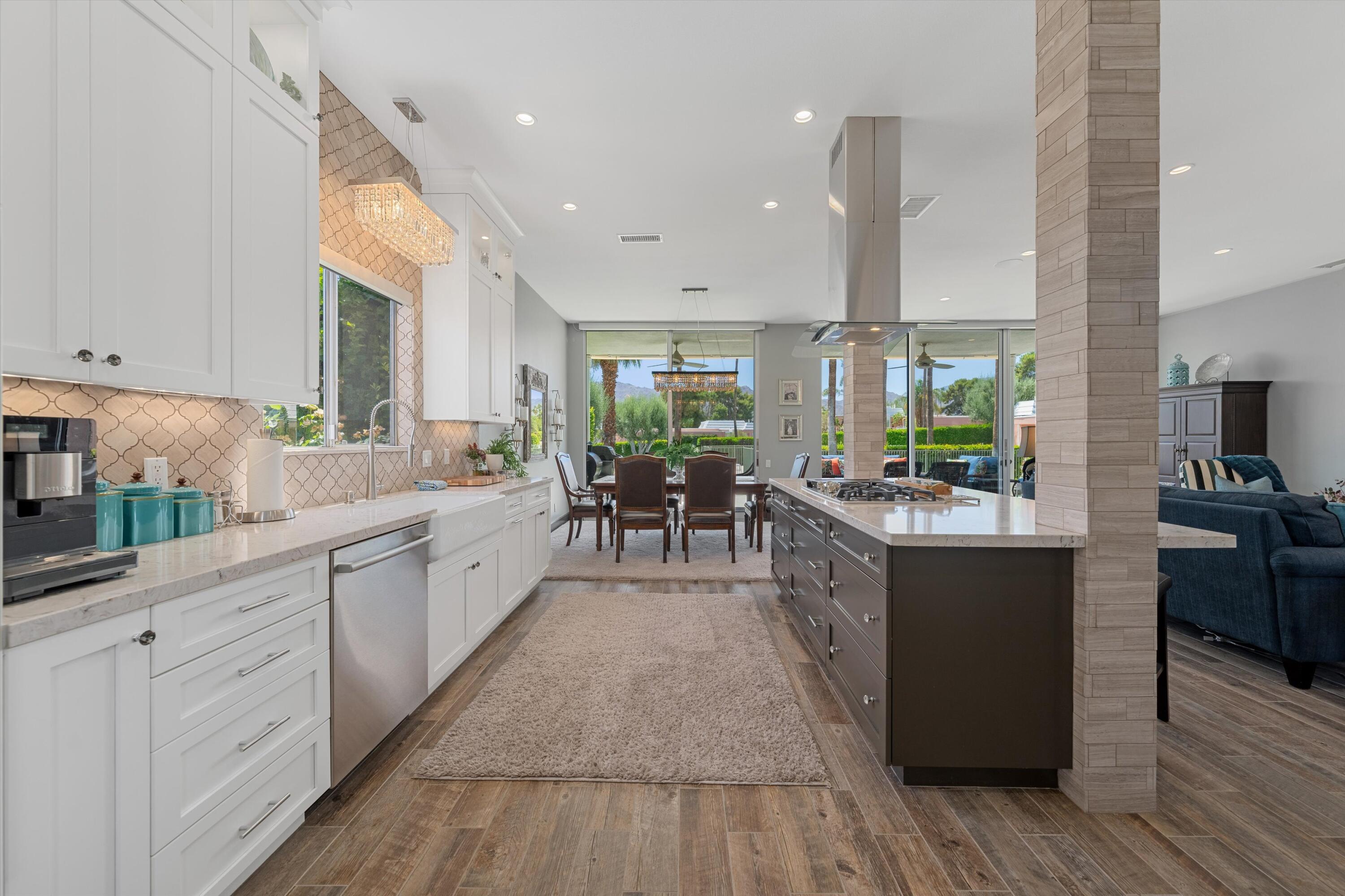 RENTED Dec 13, 2025 - March 31, 2026. Enjoy your unforgettable Desert vacation in this fully remodeled Hollywood Regency gem with state-of-the-art modern features. Nestled in the iconic Marrakesh Country Club on a quiet street with beautiful mountain views and close to the clubhouse, this home offers perhaps the very best location in the club. Attention to every detail and gorgeous finishes are seen throughout this meticulously upgraded home. Walls of glass create an airy feeling and bring in the beauty of the outdoors for an exceptional indoor-outdoor living experience. Entirely reimagined open concept chef's dream kitchen features breakfast bar, two-toned custom cabinets, gas cooktop, counters are topped with quartz slab and striking matte marble tile backsplash for an elegant touch. Both bedroom suites offer lavish bathrooms inspired by dream magazines with striking honed marble brick subway tiles, luxurious vanities and curbless showers. Primary en-suite bathroom features a free-standing soaking tub that exudes luxury and comfort. Porcelain wood-look plank tiles, all new double pane sliders, fireplace, motorized window screens and retractable awnings complete this amazing home. Marrakesh is located just minutes away from the famed El Paseo Drive with world-class shopping and dining and within close proximity to the McCallum Theater and the world-renowned Indian Wells Tennis Gardens. Renter seasonal club priviledges are available and may be added with additional cost.Interested in this Listing?